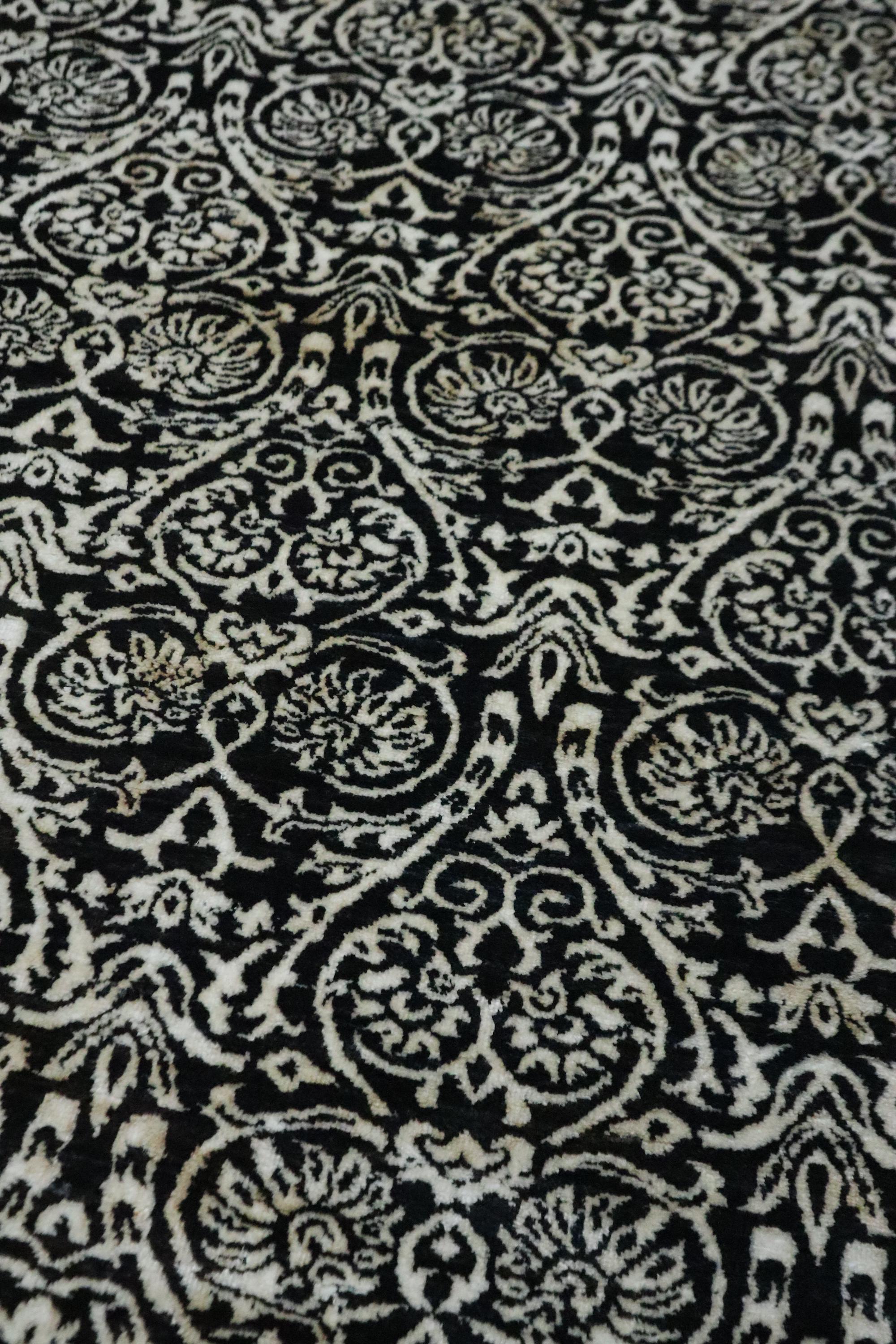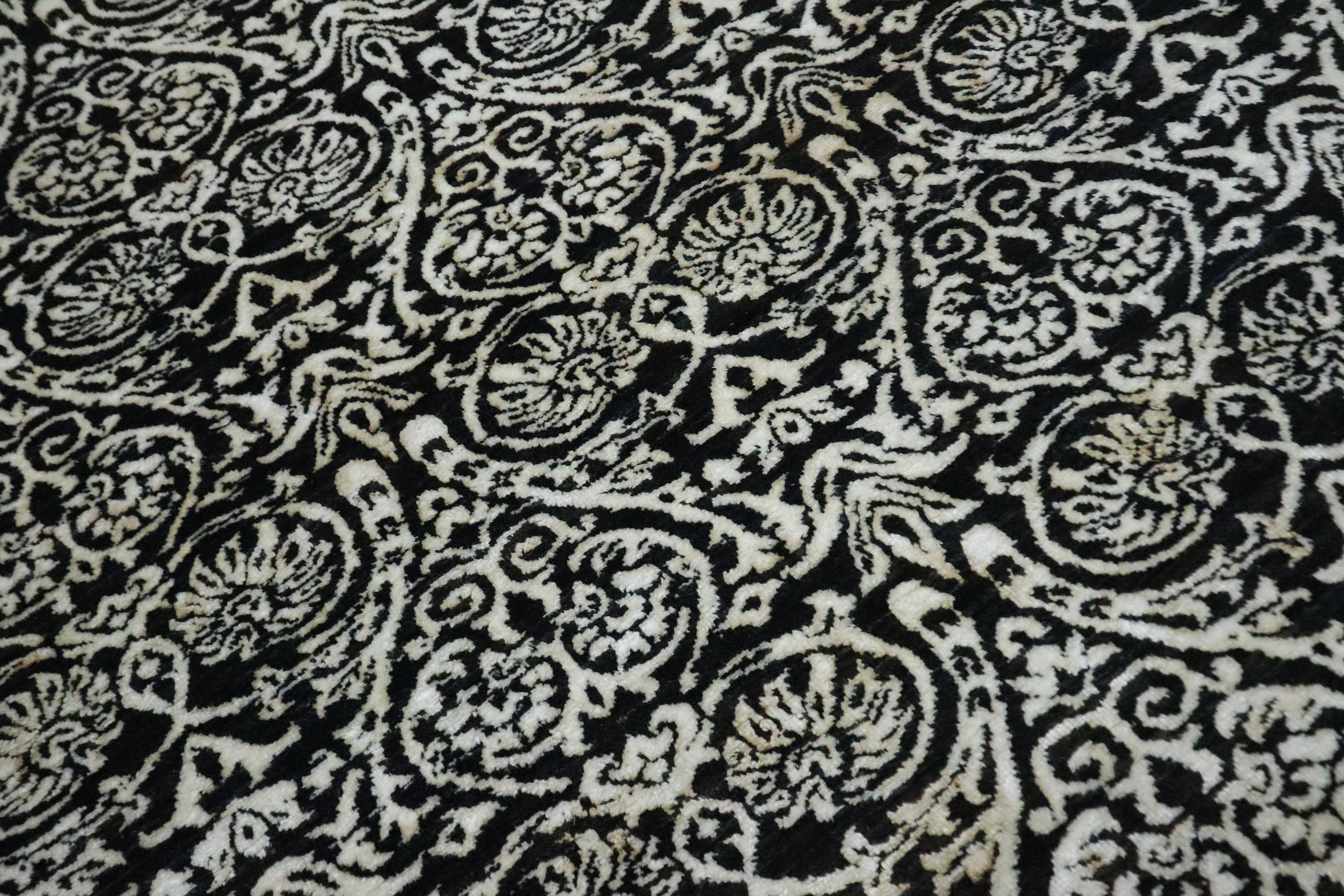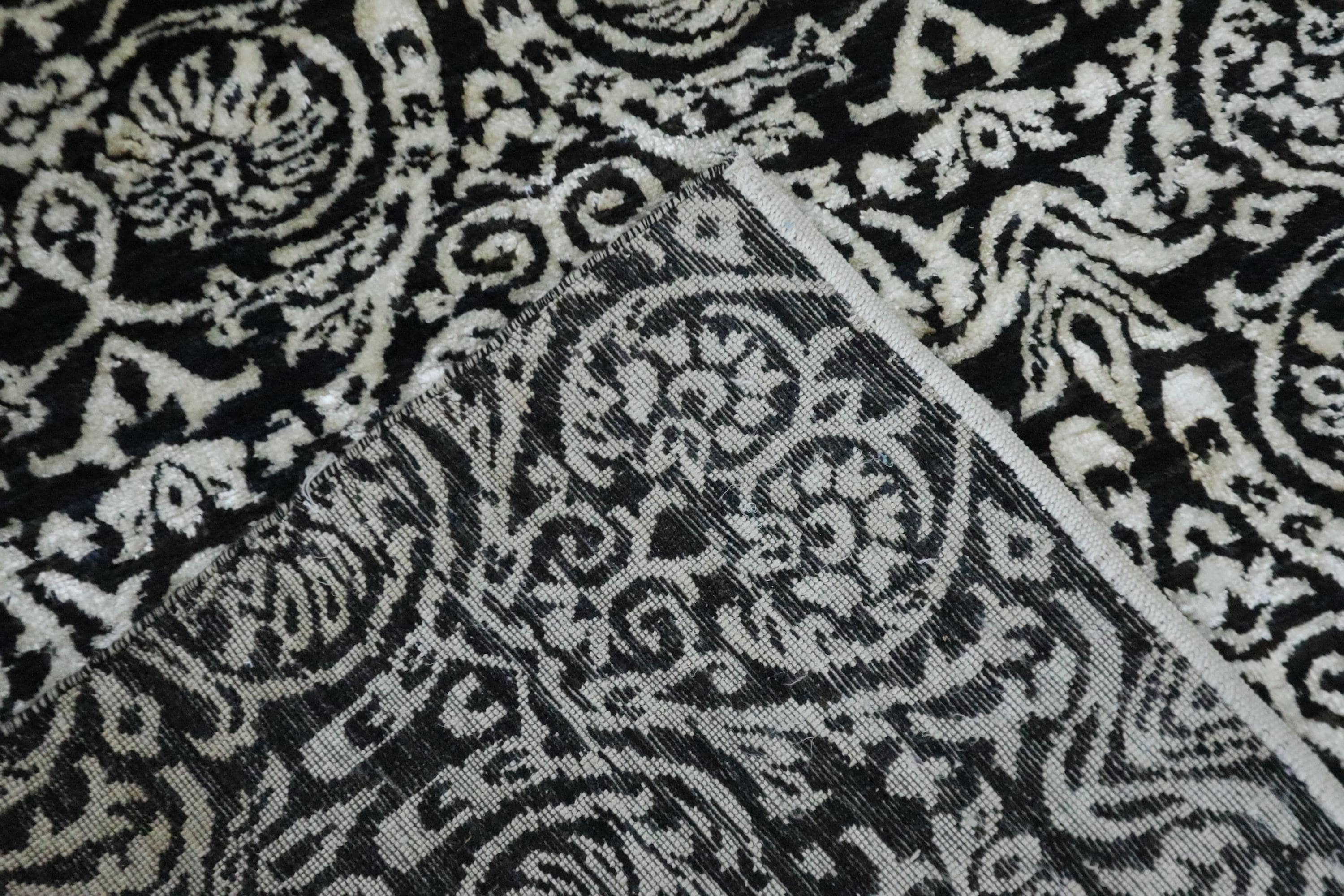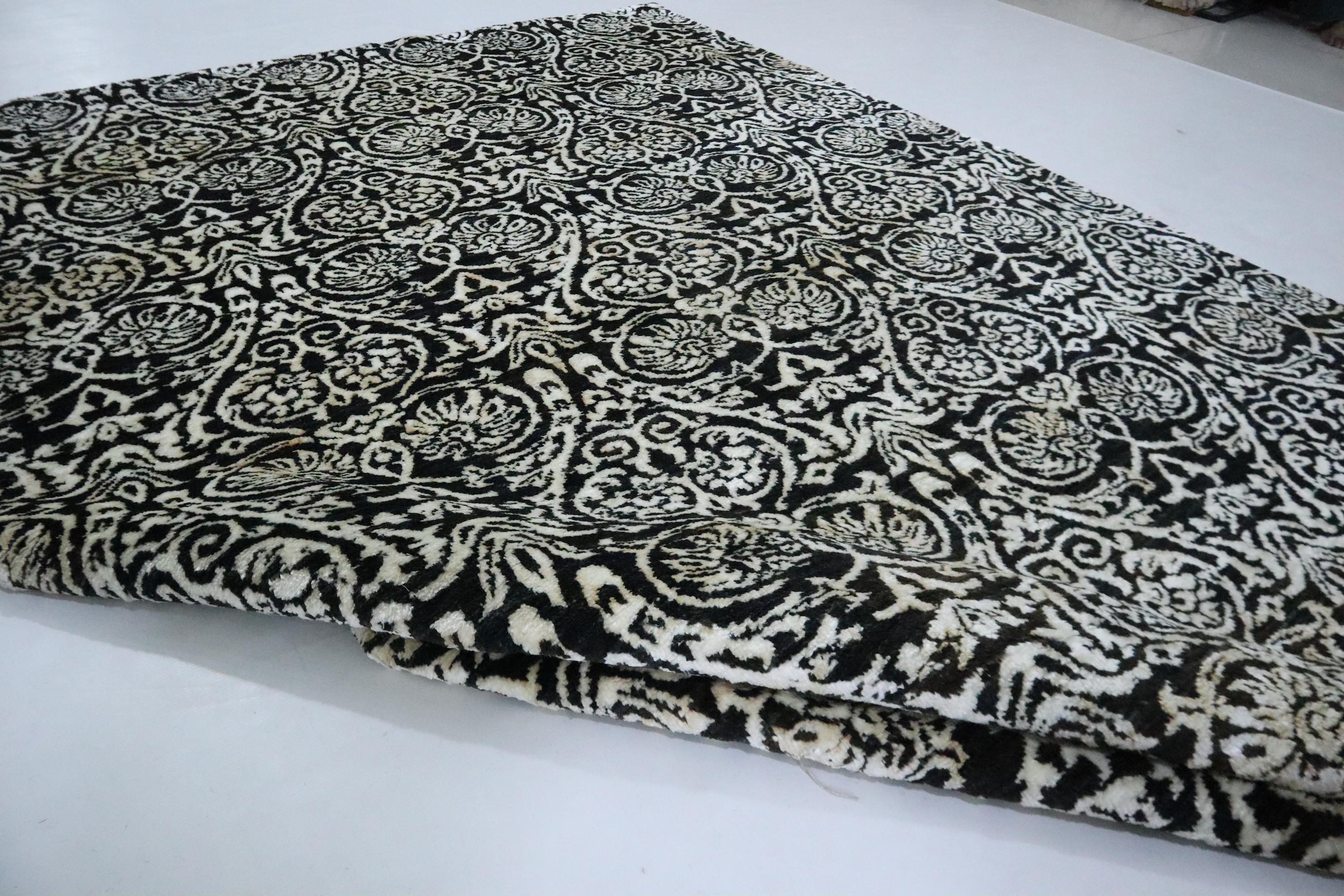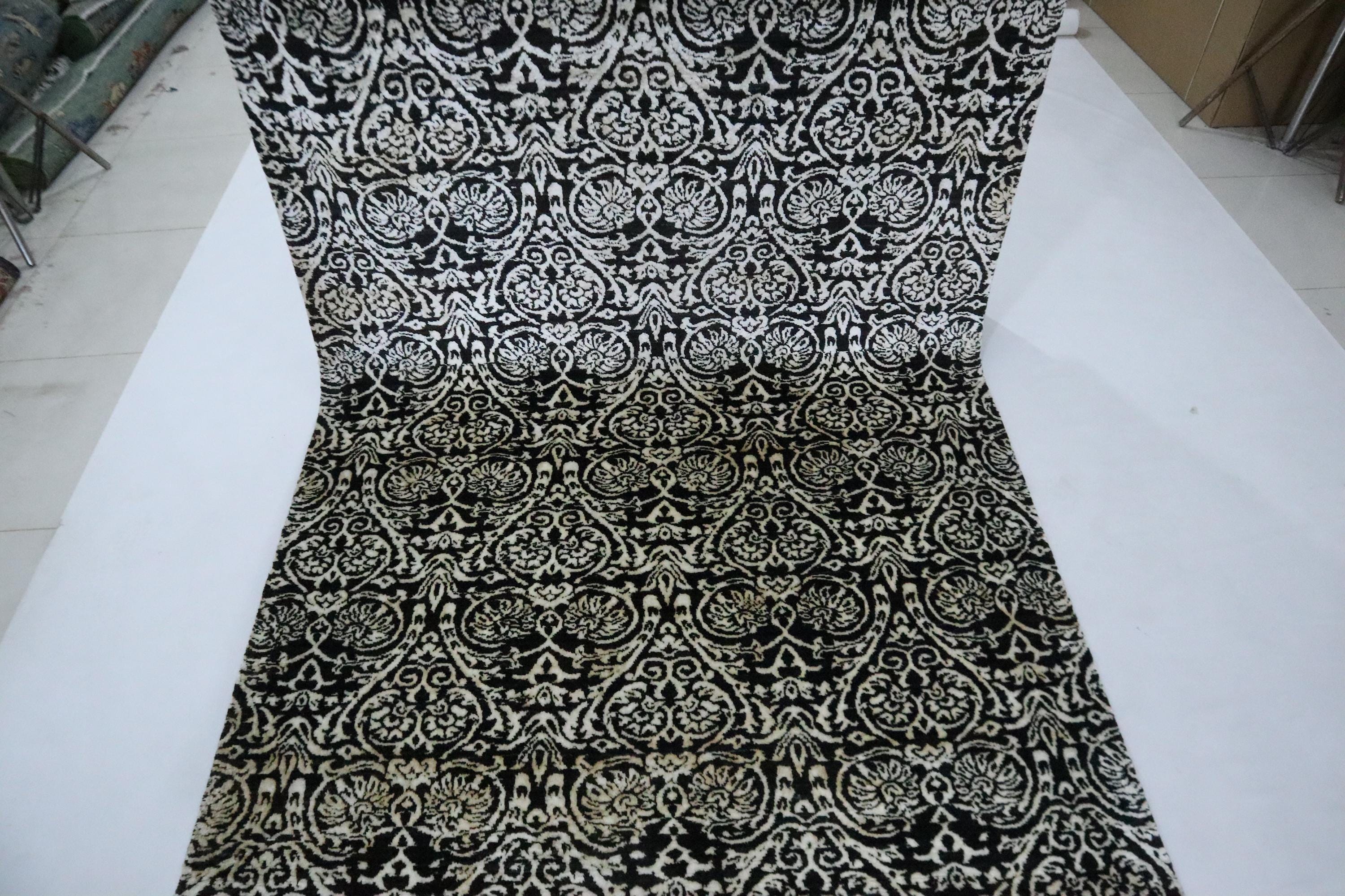 5'4x7'7 Floral Area Rug, Black White Rug, Hand Knotted Silk Touch Wool Rug, Modern Rug, Contemporary Rug, Bedroom Rug, Living Room Rug
