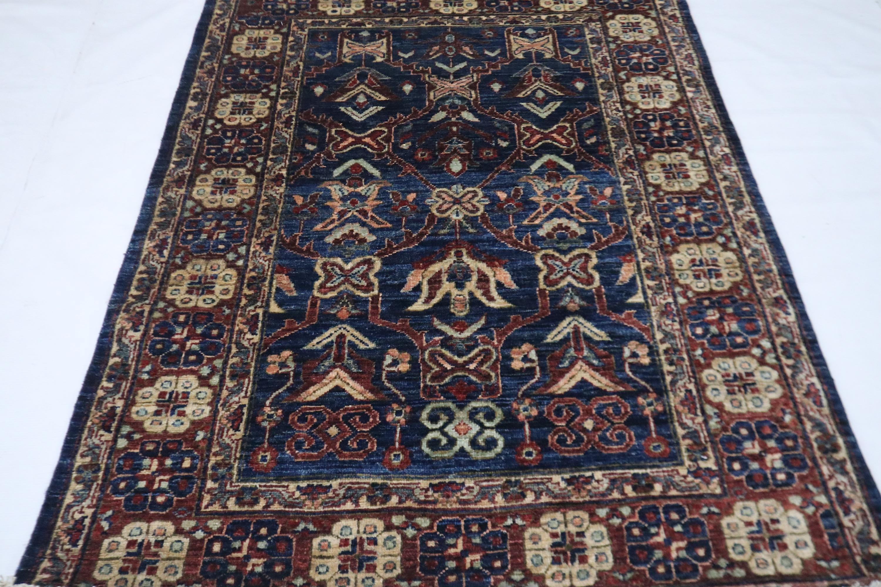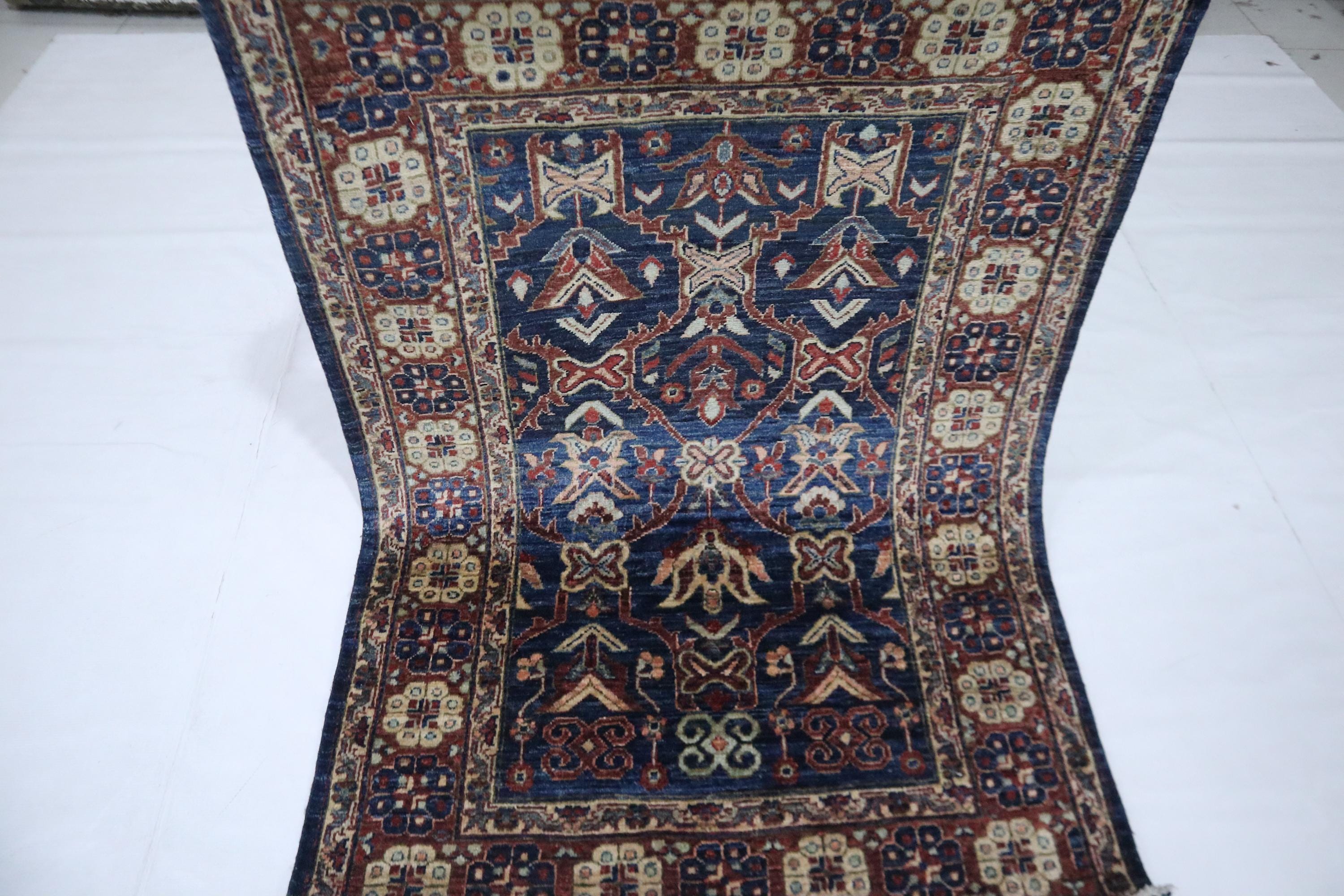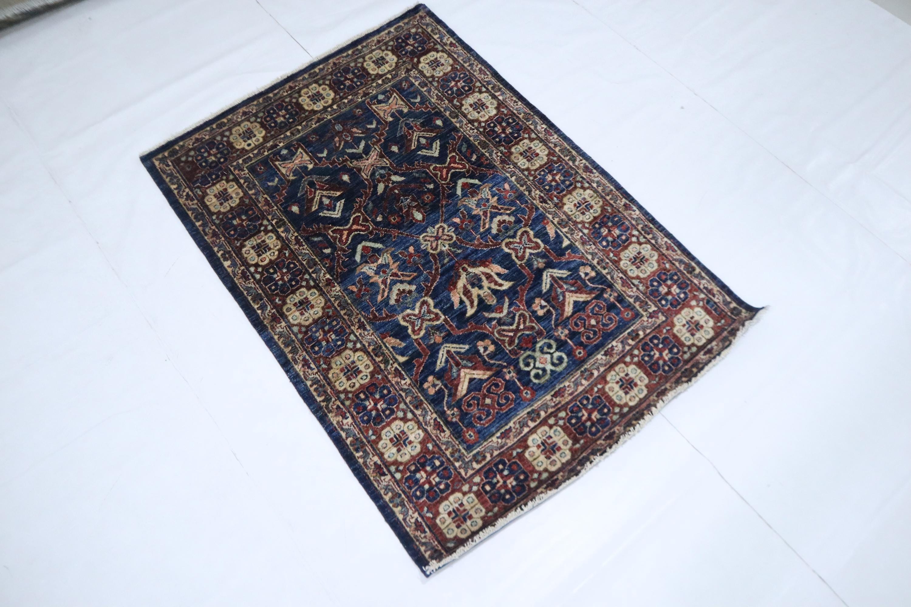 3x5 Ft Chobi Area Rug, Blue Afghan Hand Knotted Traditional Organic Dye Wool Rug, Floral Rugs, Oriental Rug, Kitchen Rug, Study Room Rug