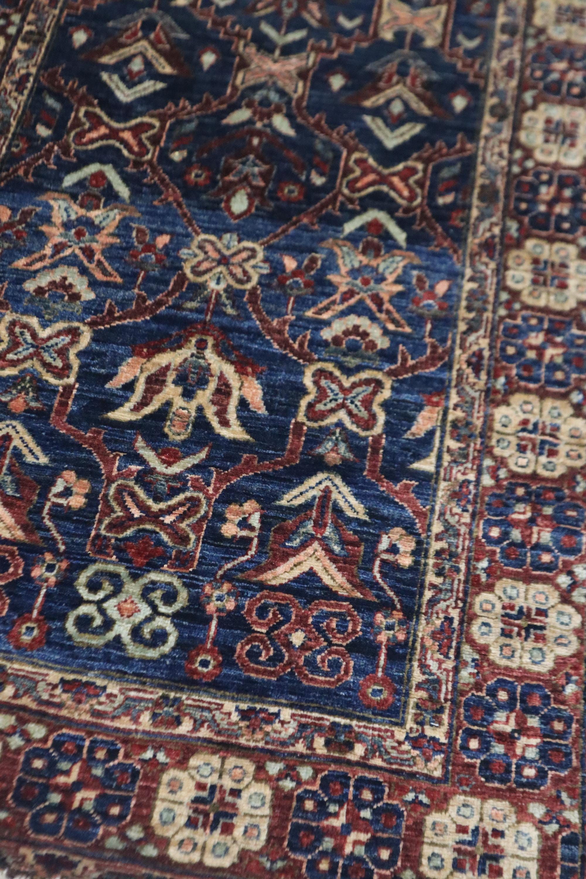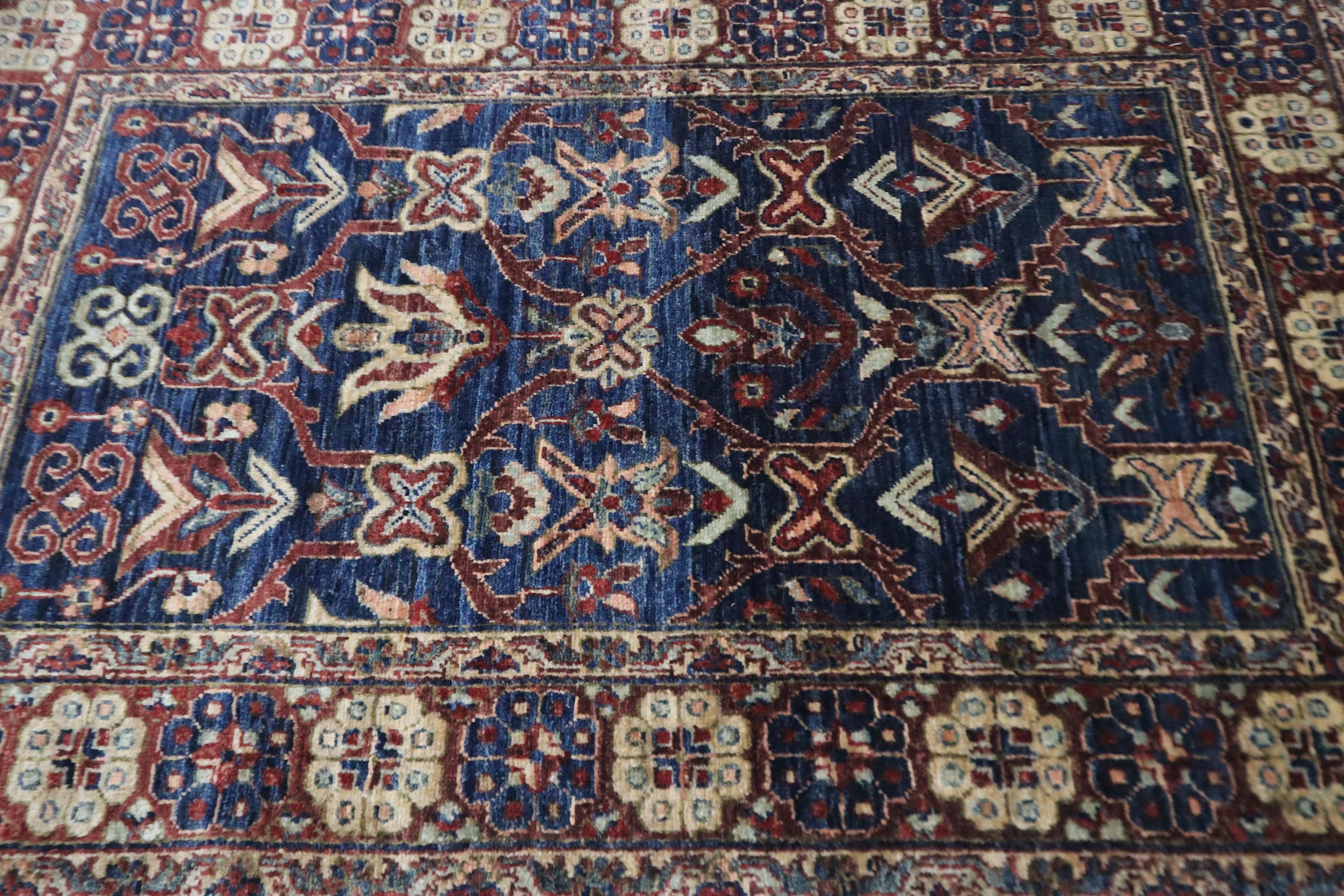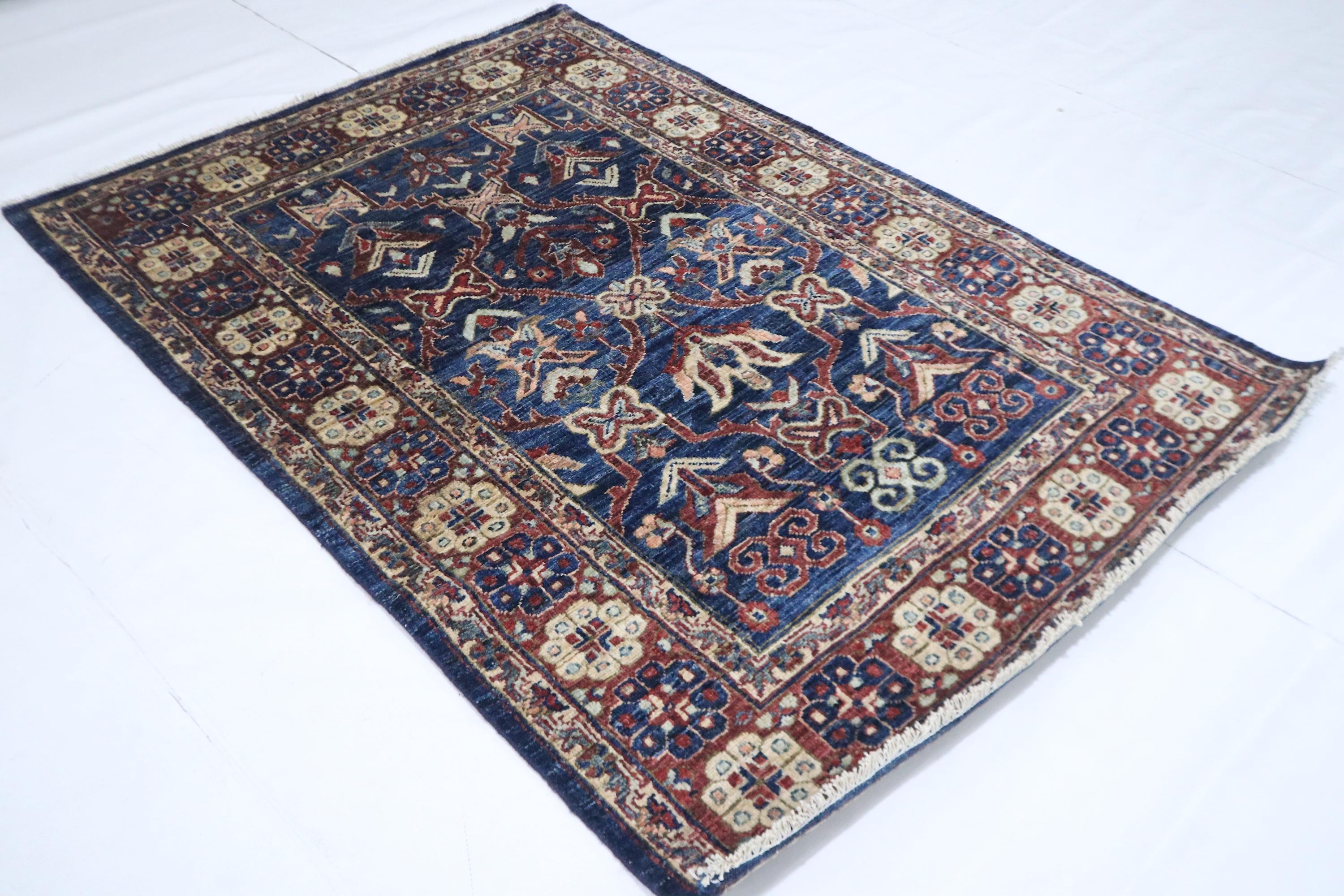 3x5 Ft Chobi Area Rug, Blue Afghan Hand Knotted Traditional Organic Dye Wool Rug, Floral Rugs, Oriental Rug, Kitchen Rug, Study Room Rug