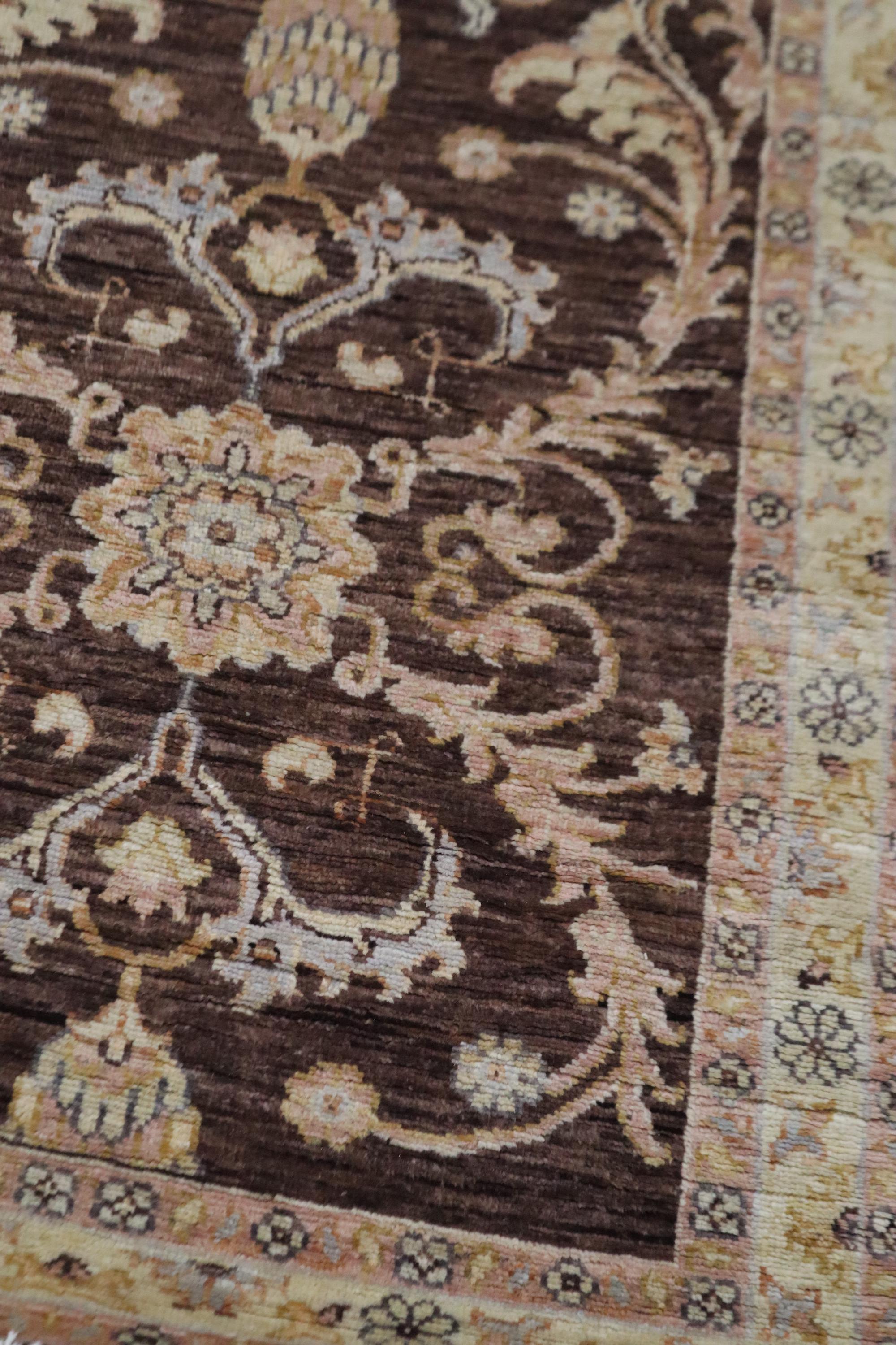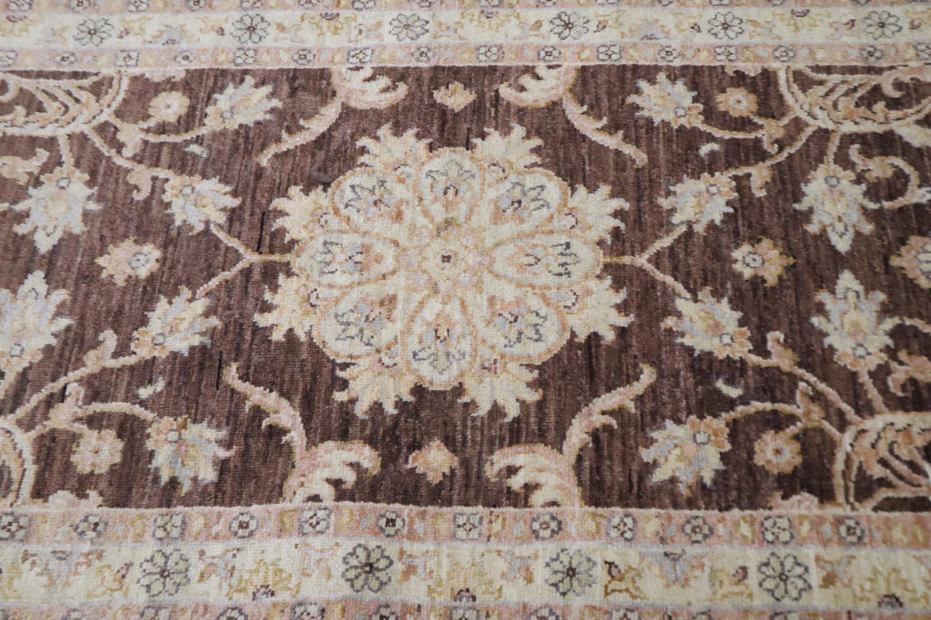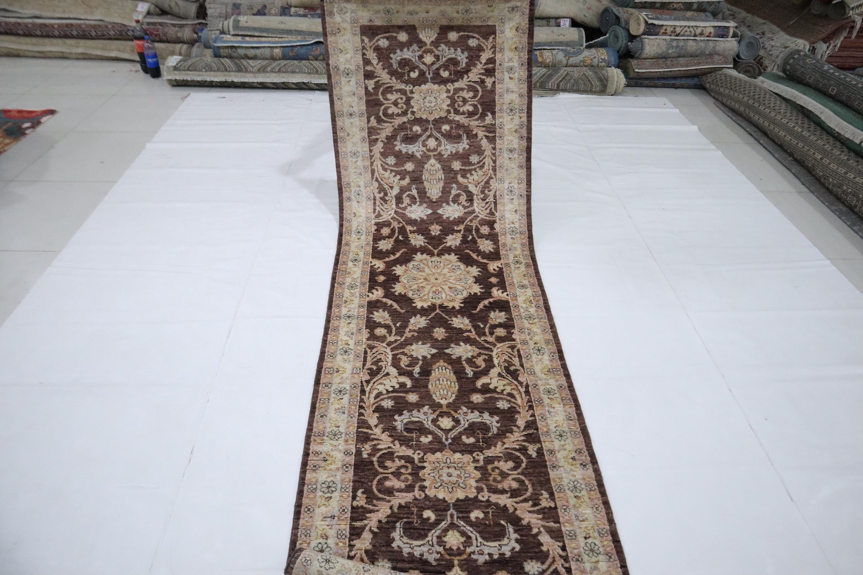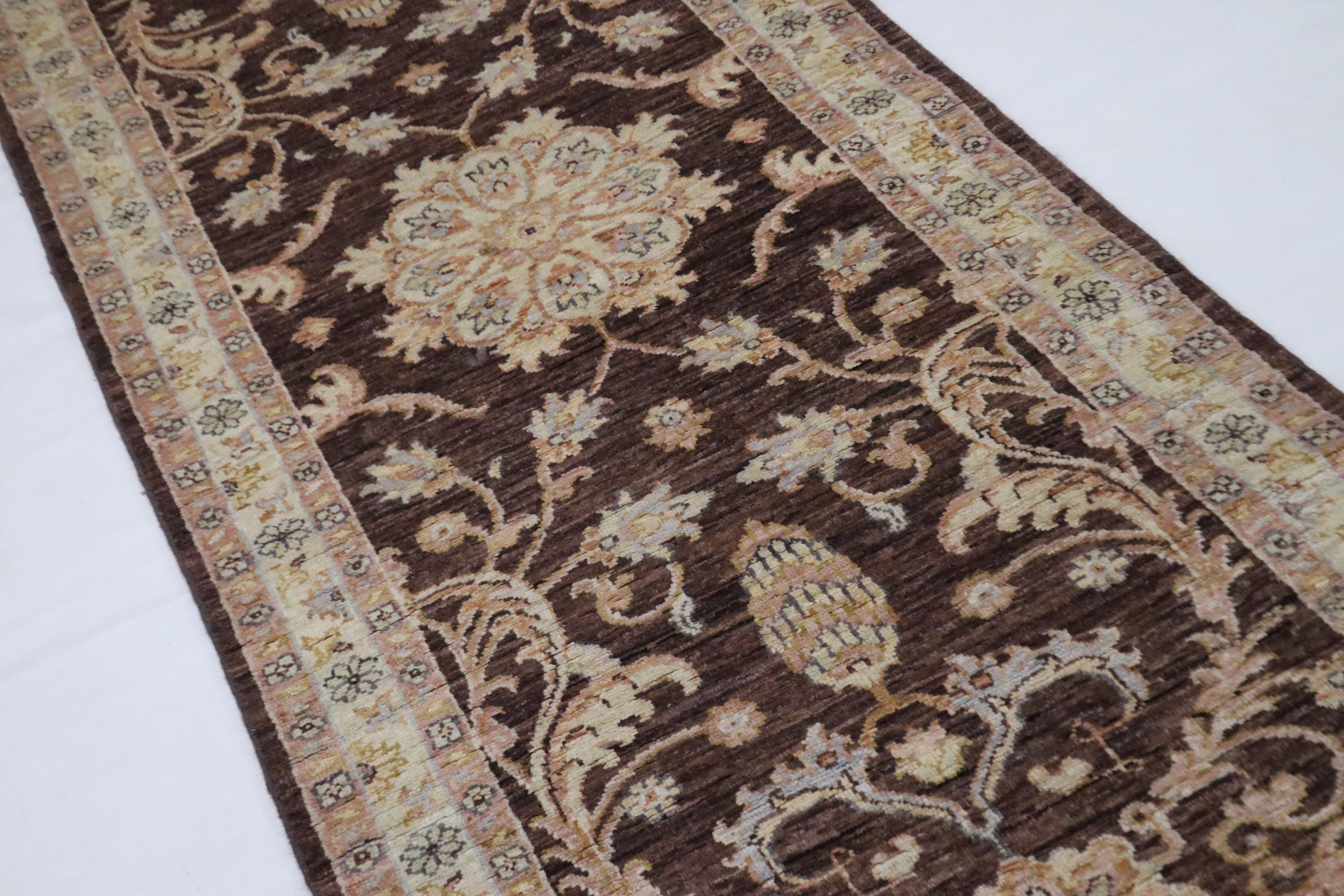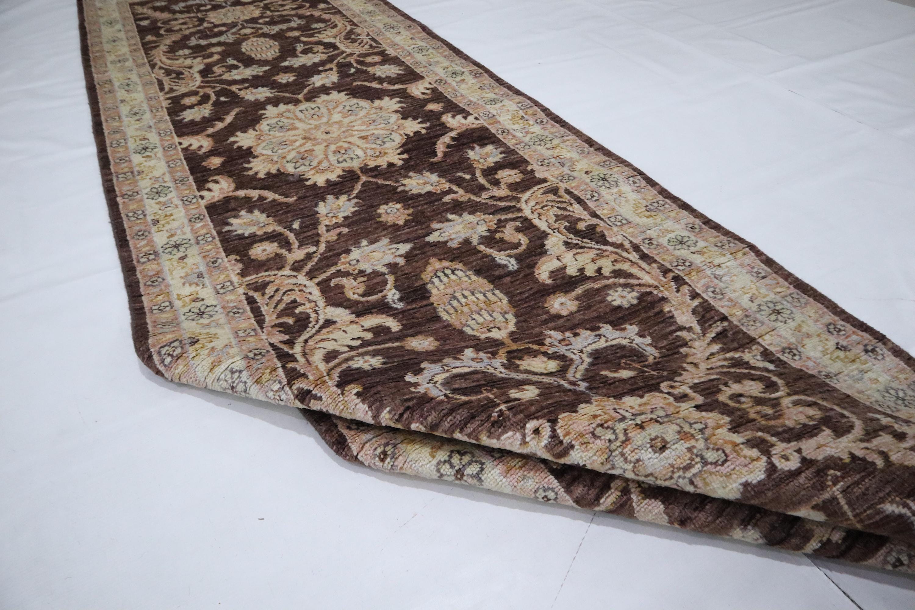 8 Ft Chobi Runner Rug, Choco Brown Afghan Hand Knotted Organic Dye Wool Runner, Floral Runner, Traditional Runner, Bedroom Runner, Runners