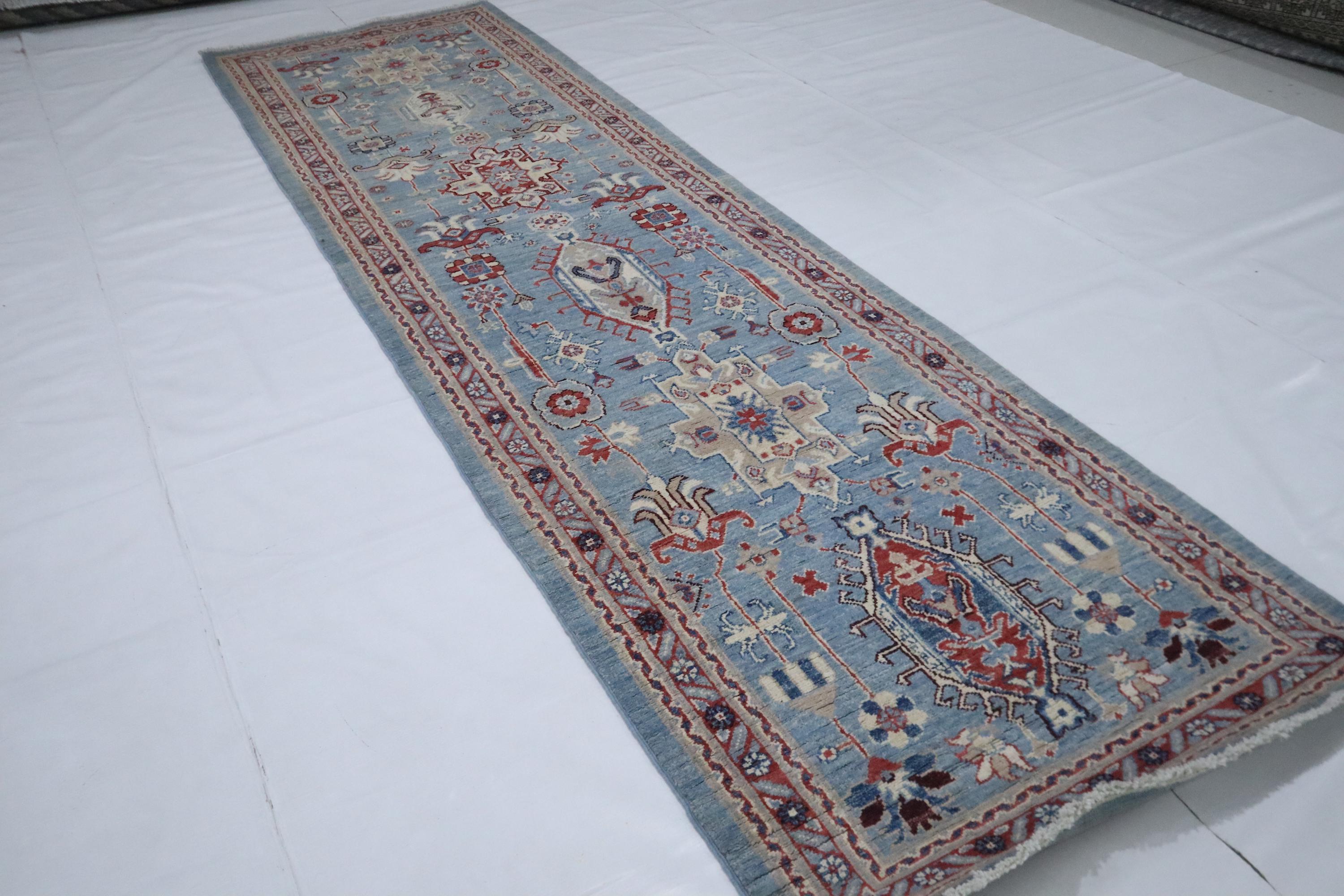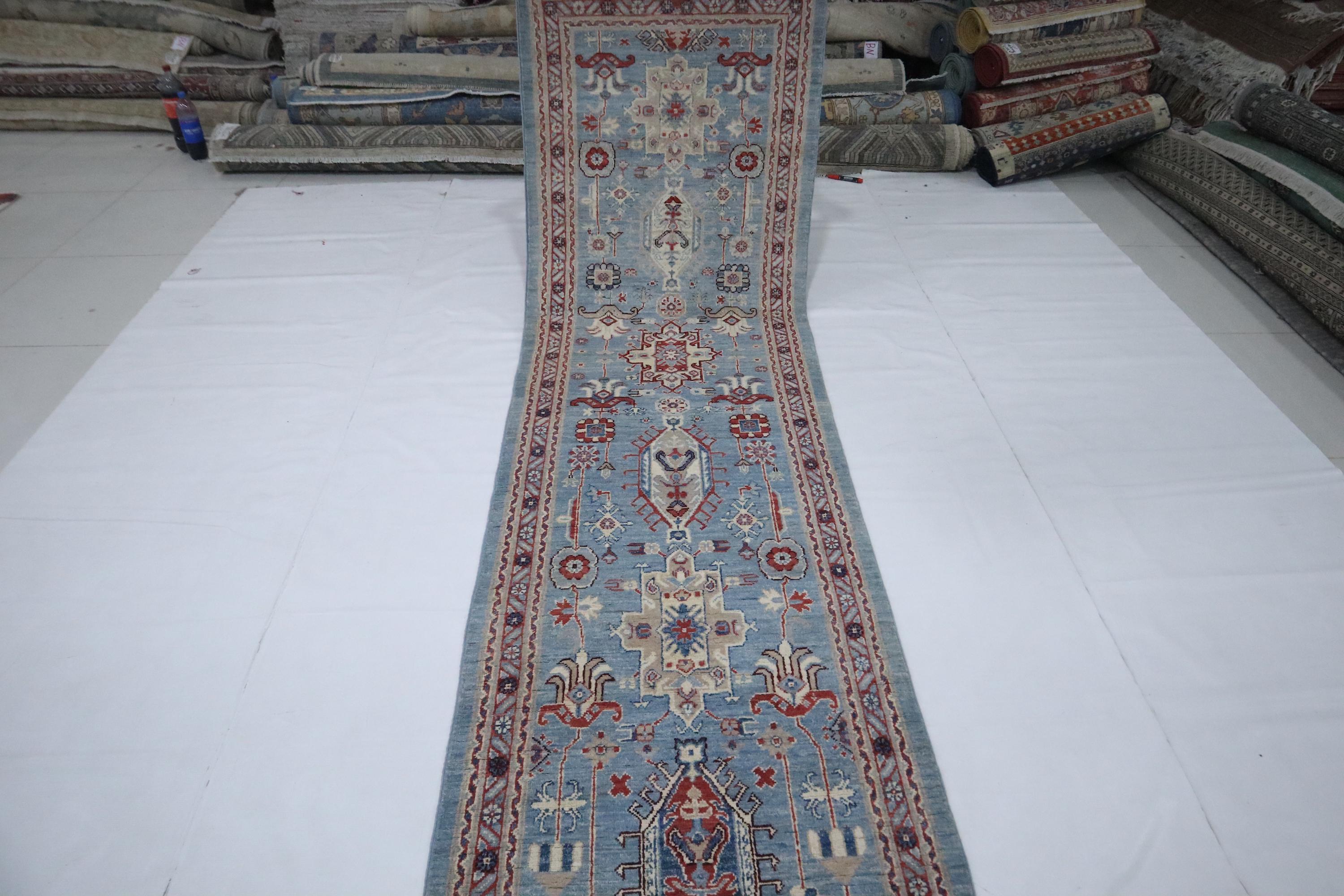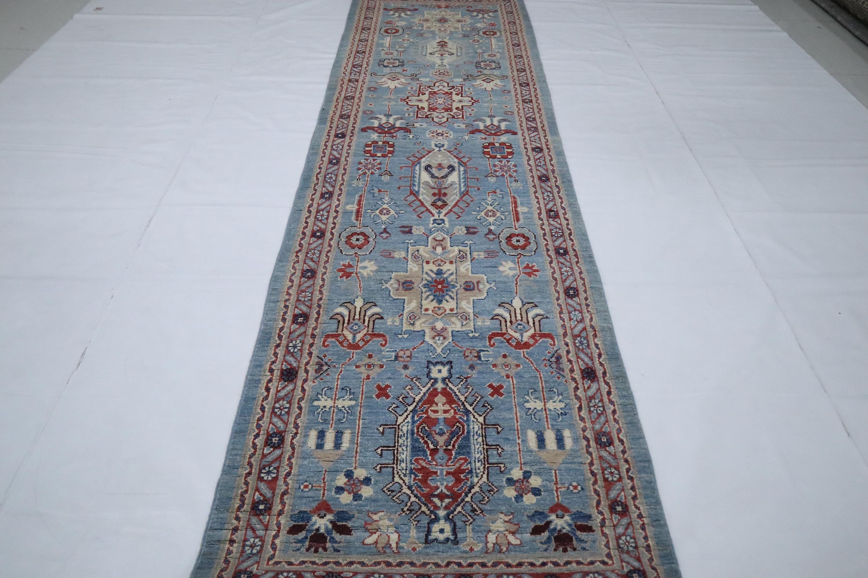 10 Ft Chobi Runner Rug, Light Blue Runner, Afghan Hand Knotted Wool Runner, Floral Runner, Traditional Runner, Entryway Runner, Runners