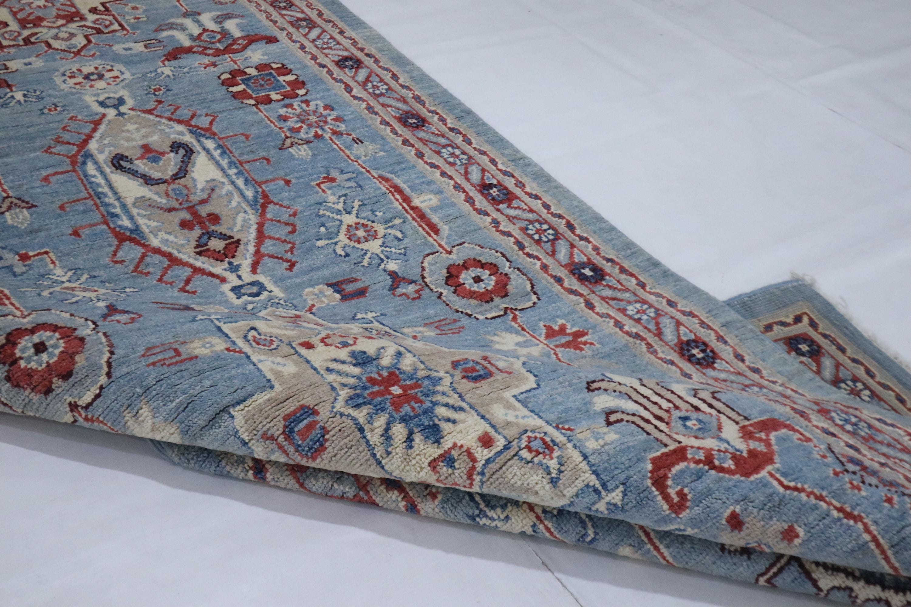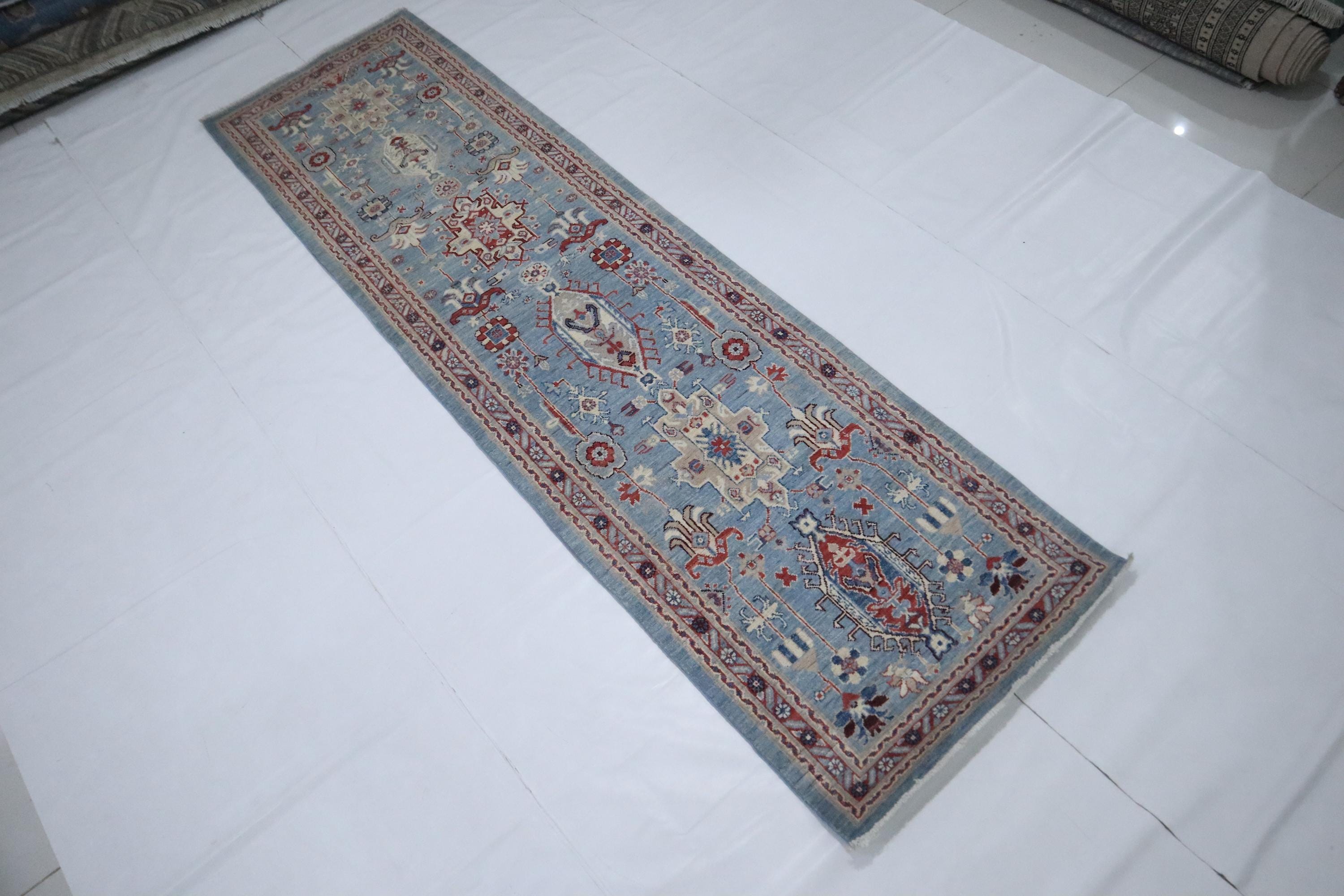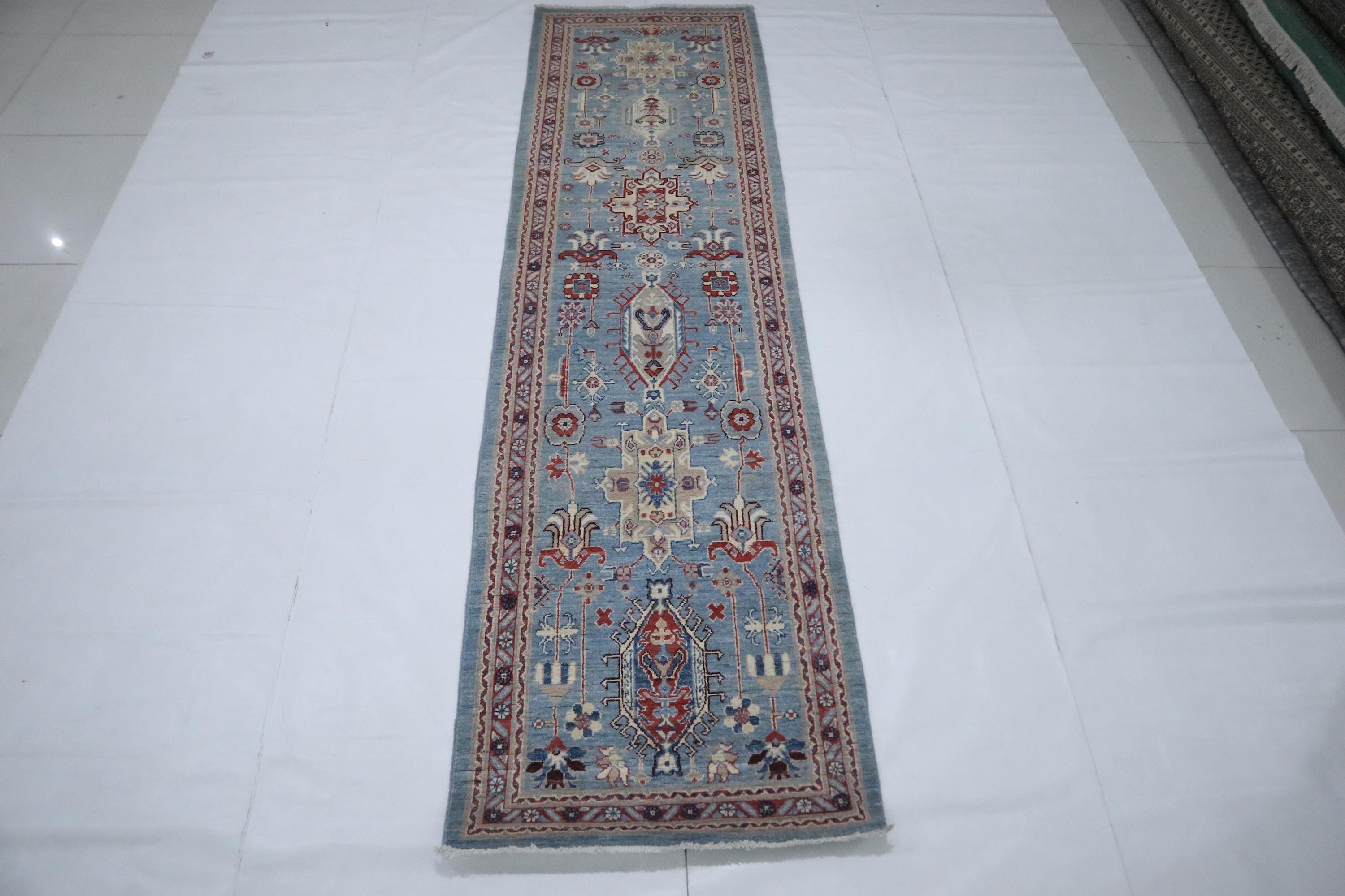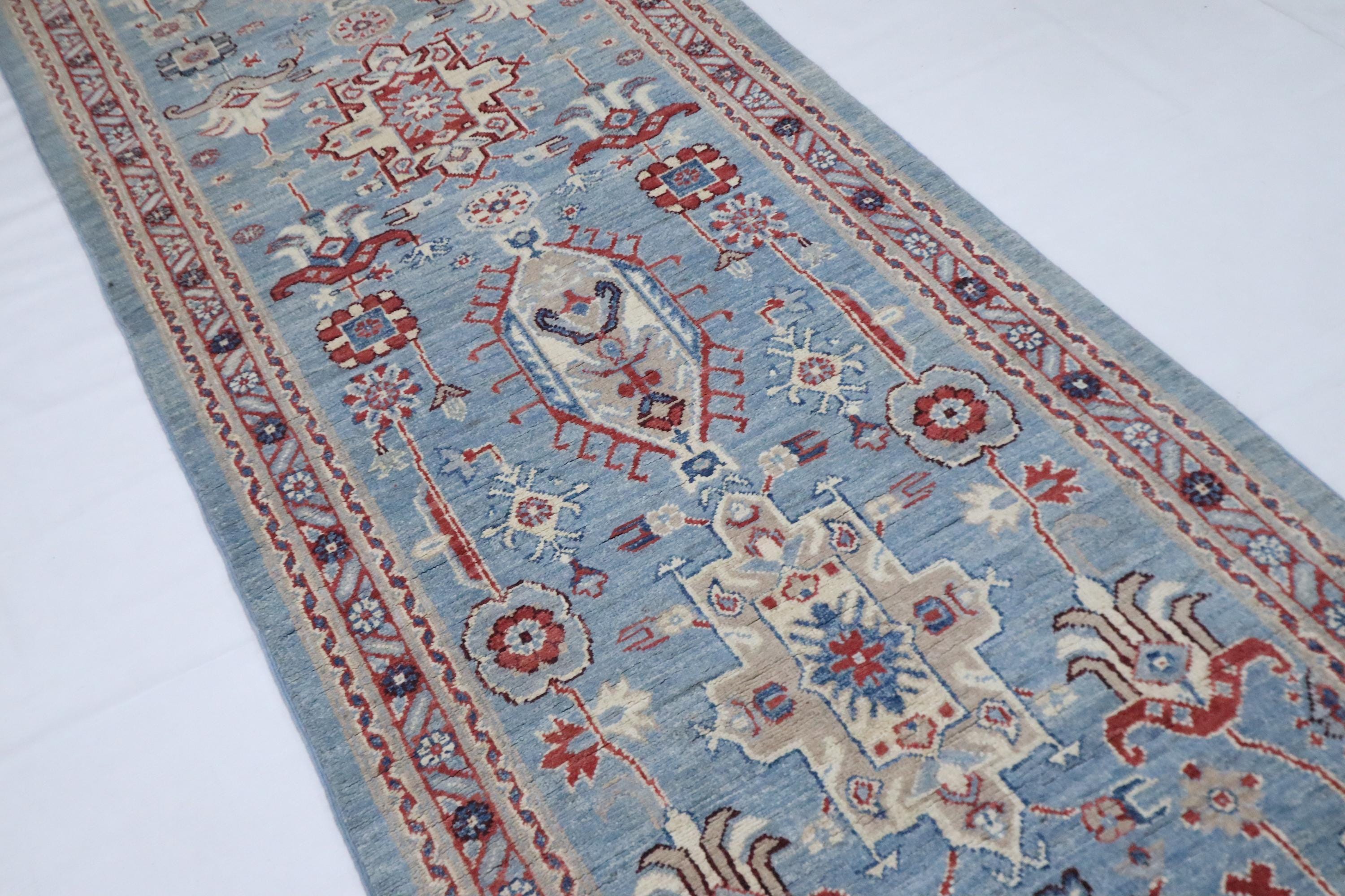 10 Ft Chobi Runner Rug, Light Blue Runner, Afghan Hand Knotted Wool Runner, Floral Runner, Traditional Runner, Entryway Runner, Runners