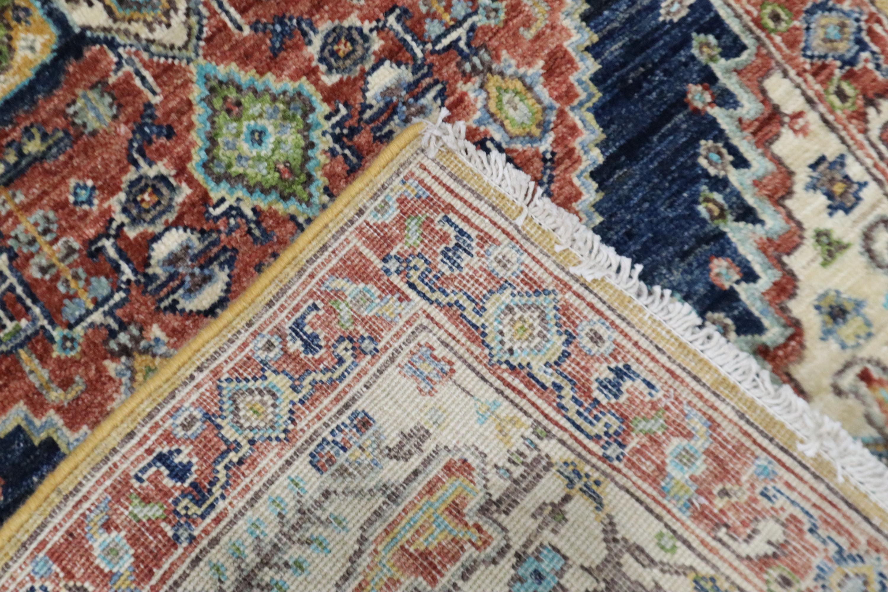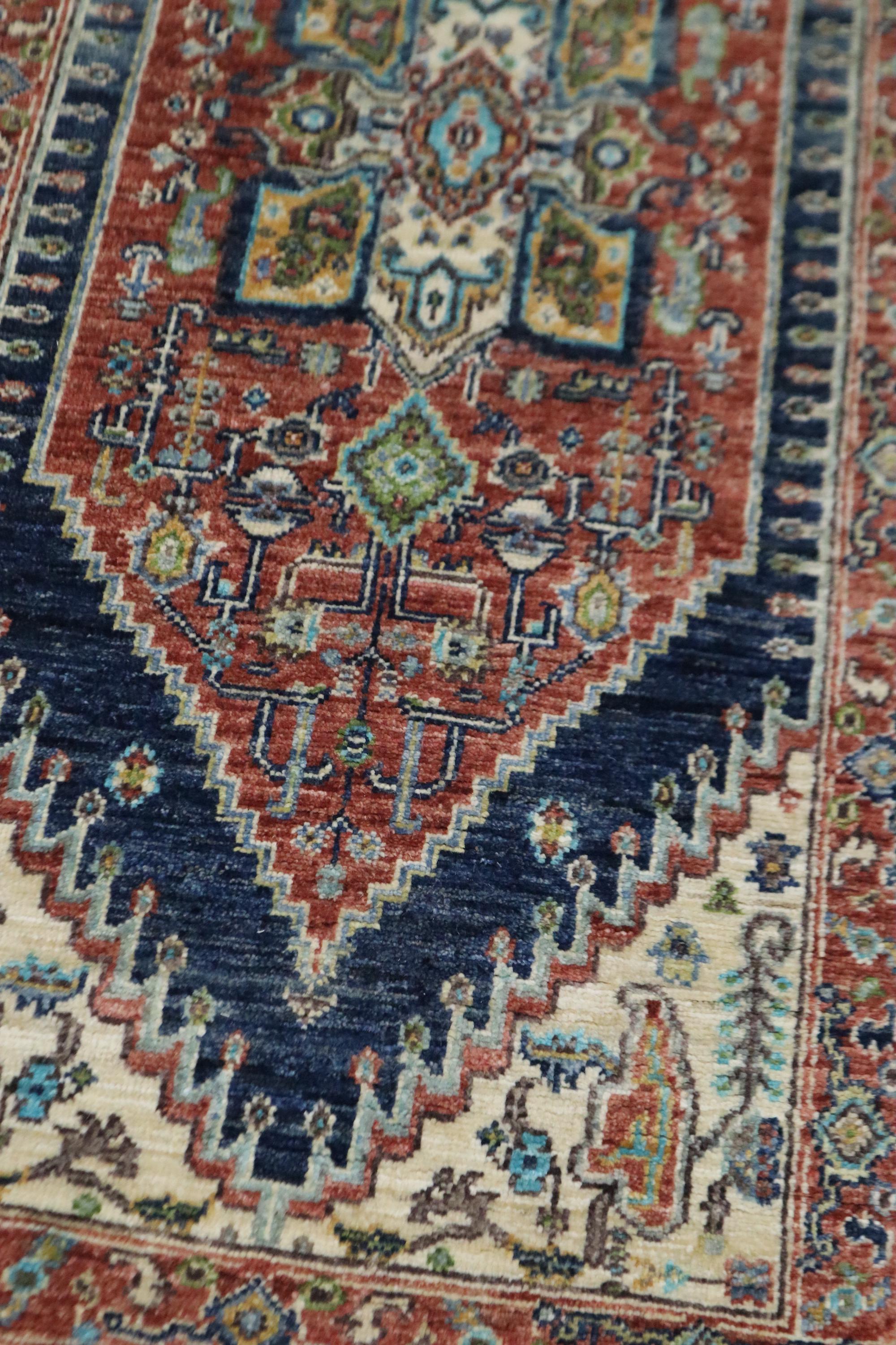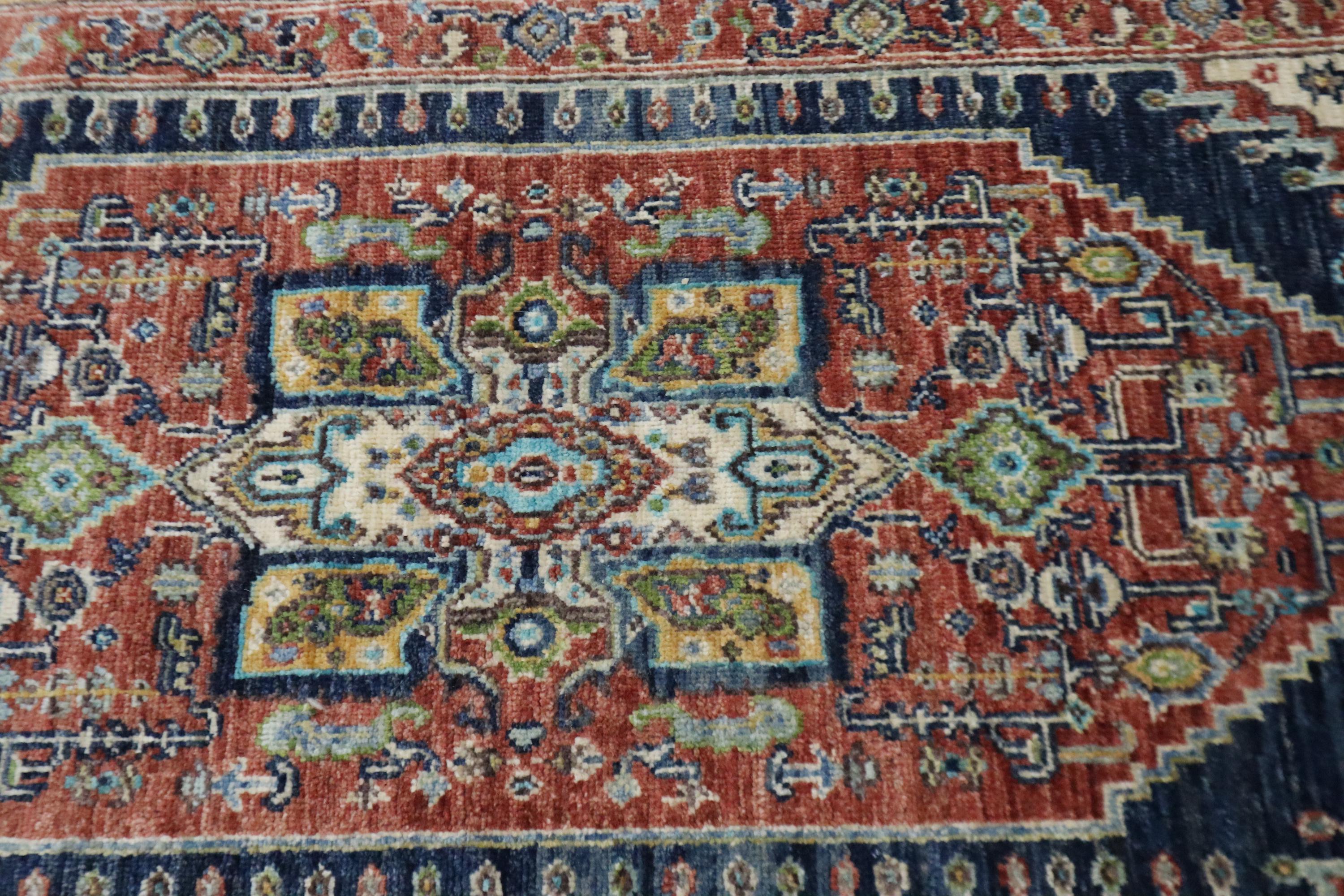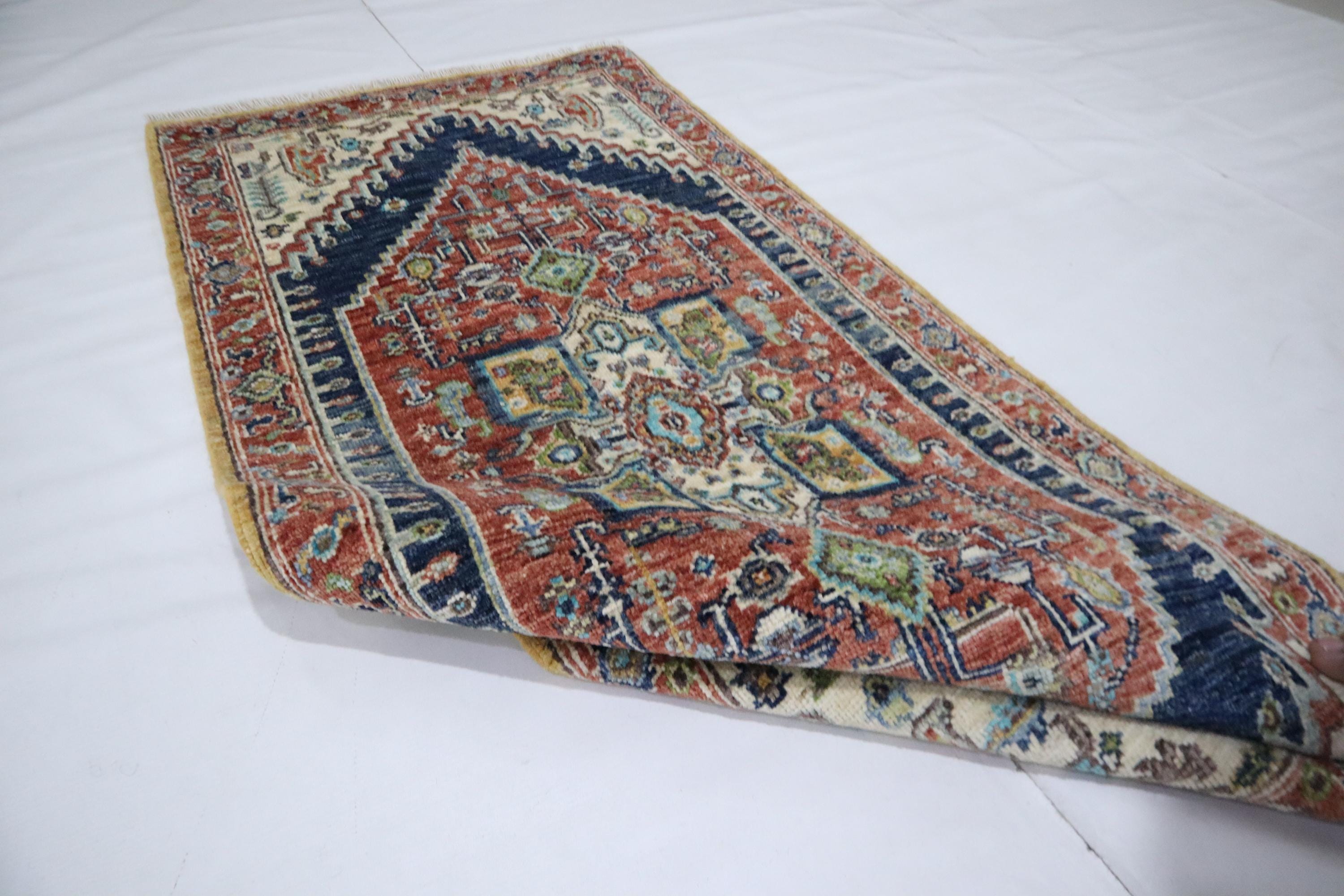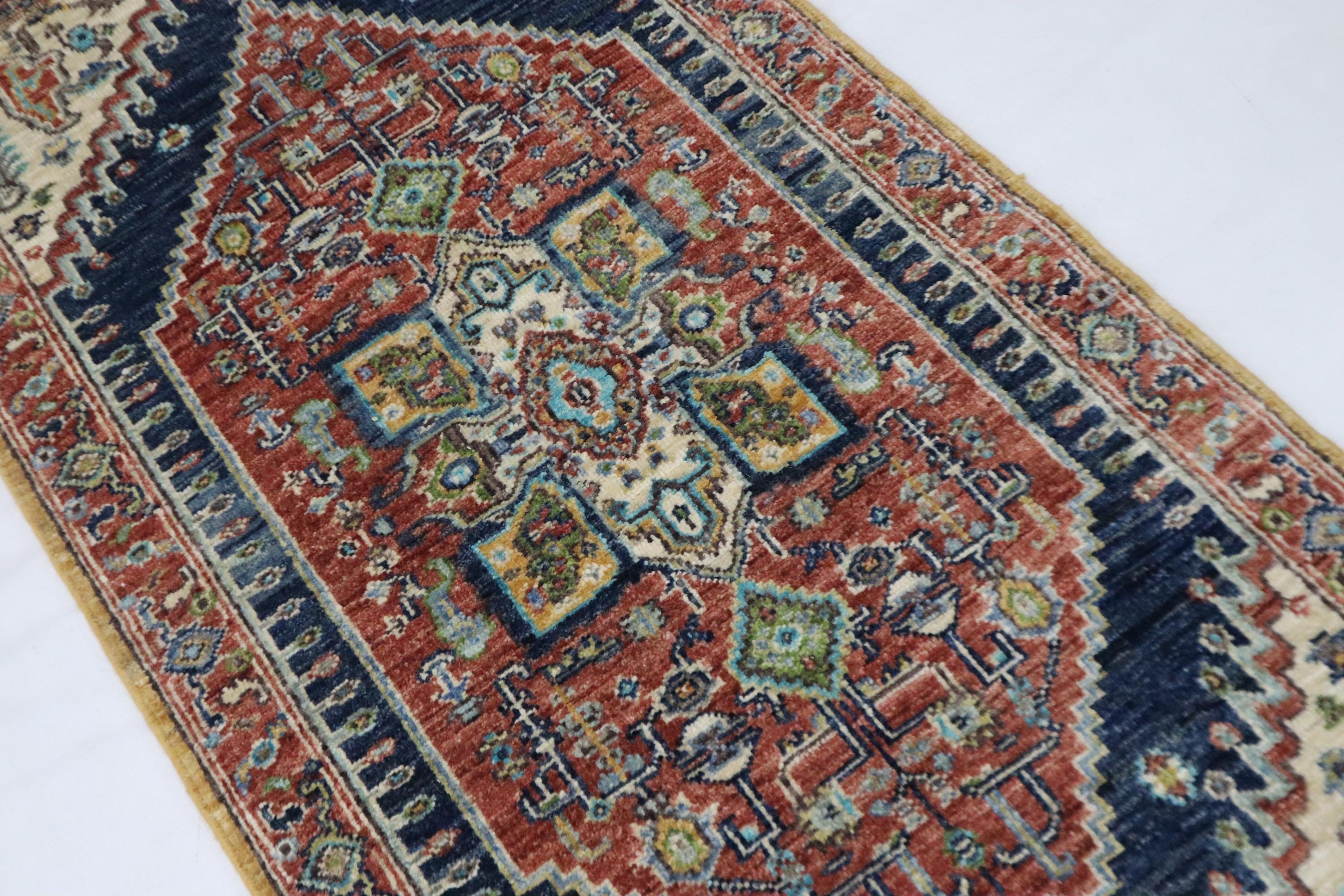 5 Ft Heriz Runner Rug, Rust Blue Persian Style Afghan Hand Knotted Traditional Veg Dye Wool Runner, Bedroom Runner, Entryway Runner, Runners
