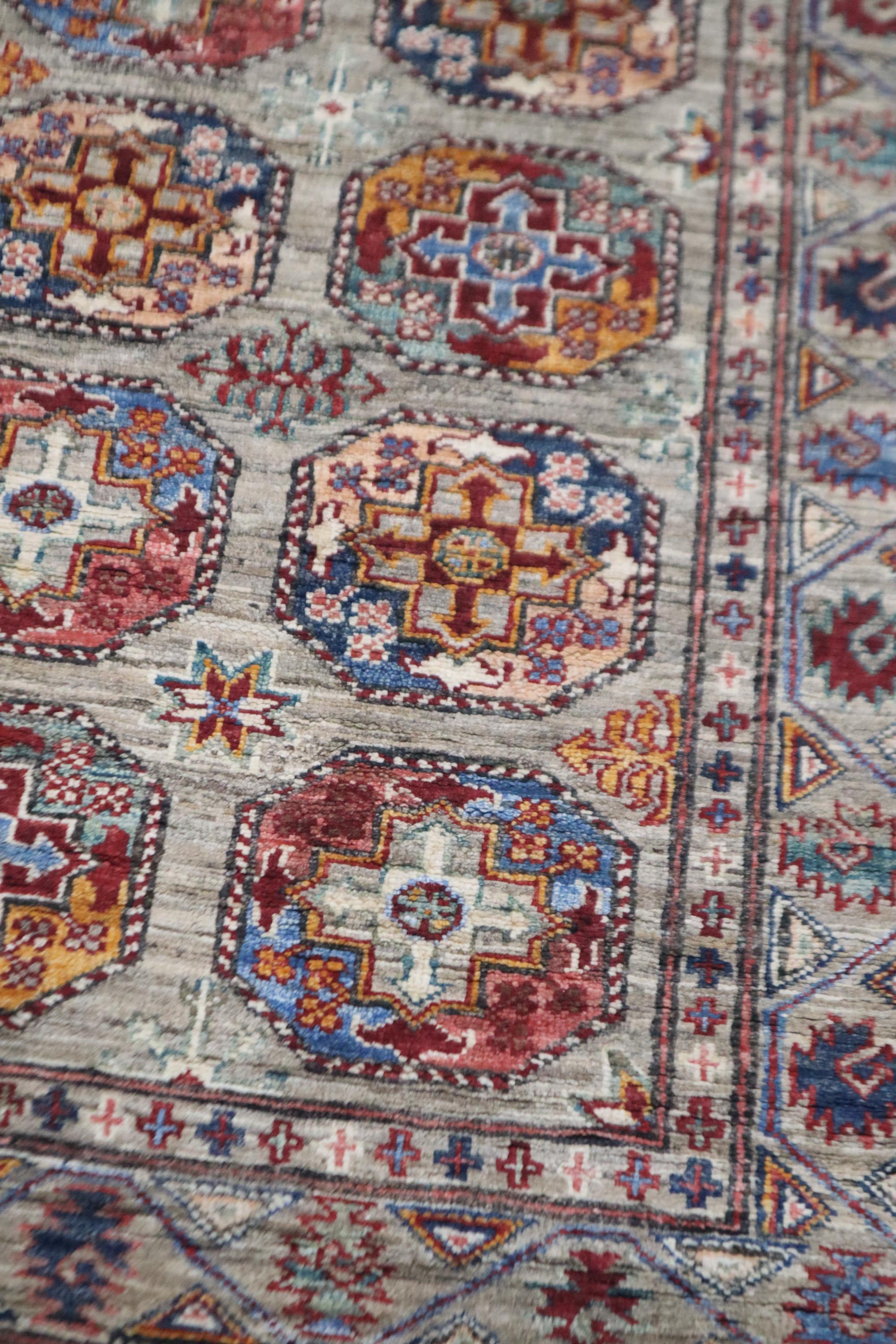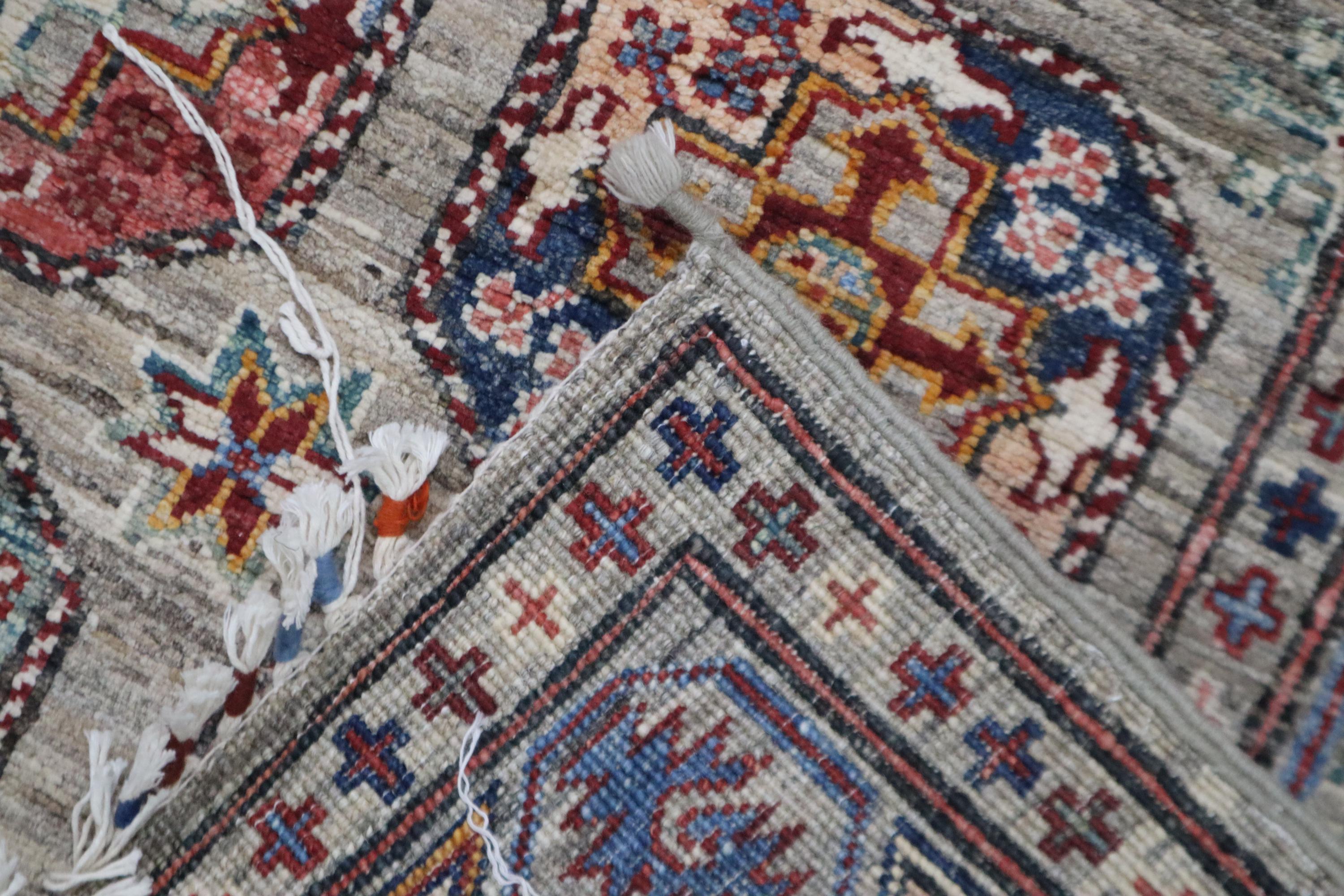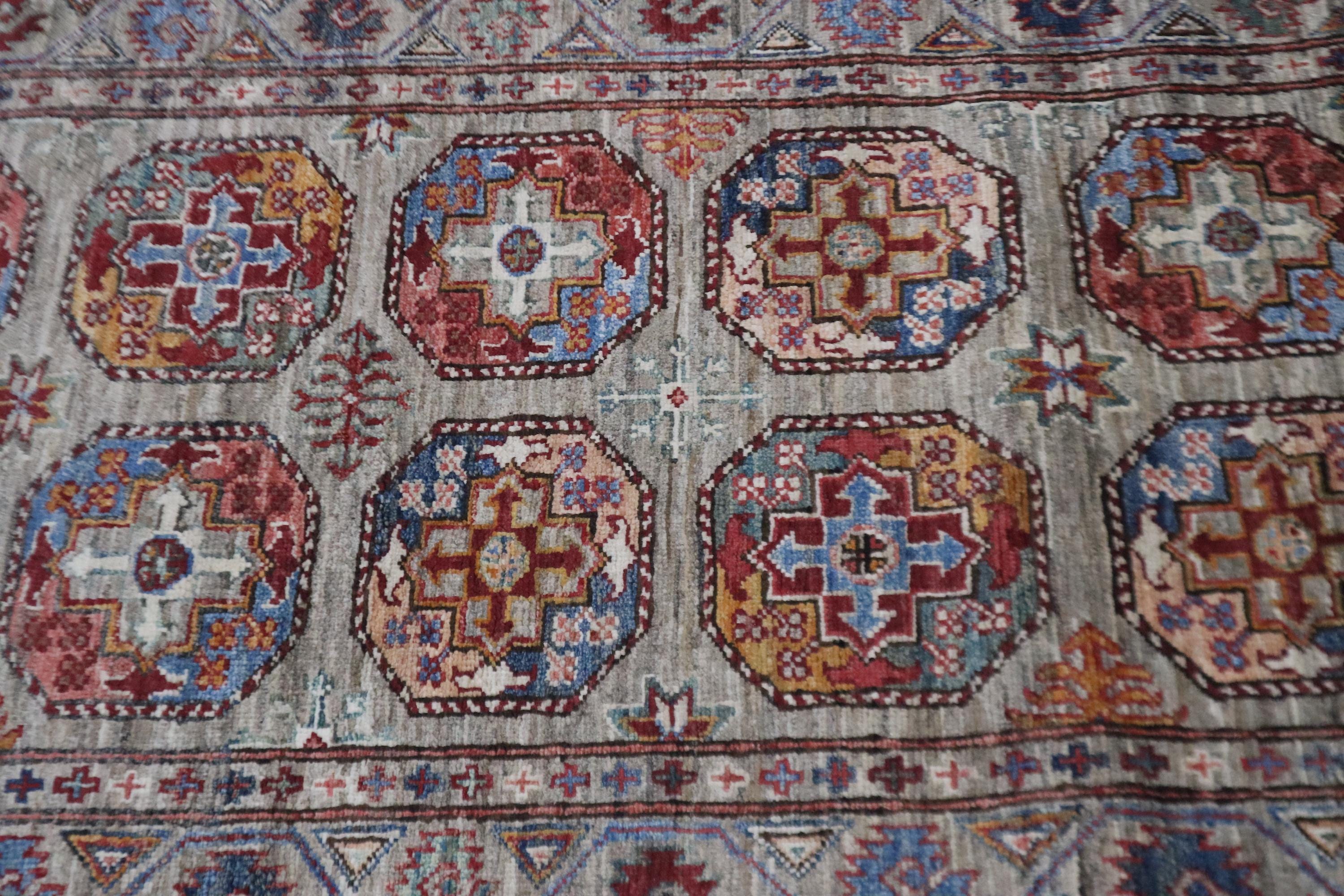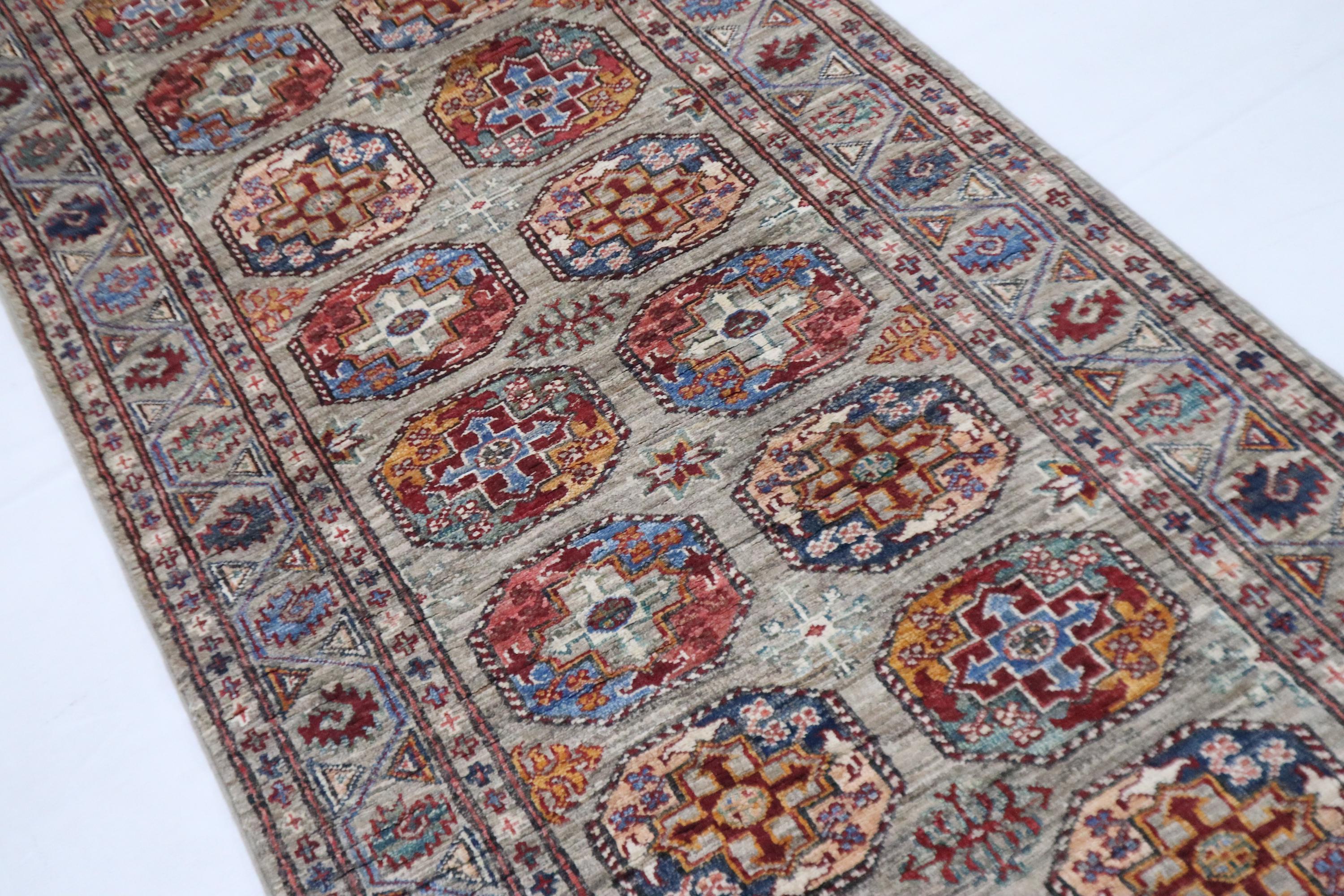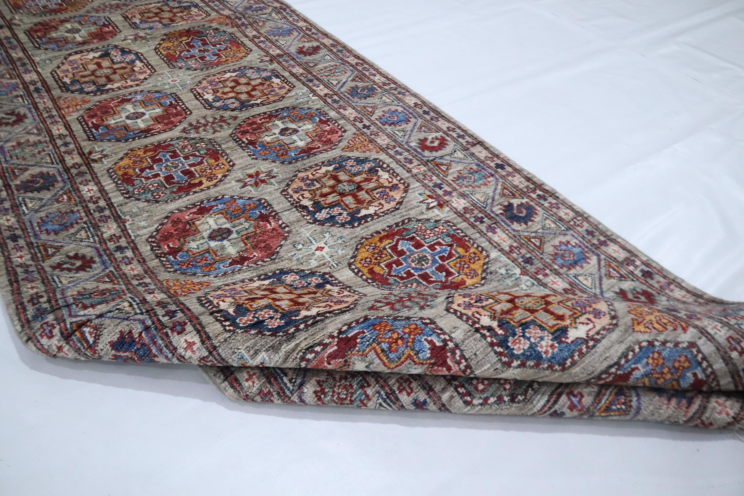 10 Ft Ersari Runner Rug, Gray Runner, Afghan Hand Knotted Veg Dye Wool Runner, Geometric Runner, Tribal Runner, Bedroom Runner, Runners