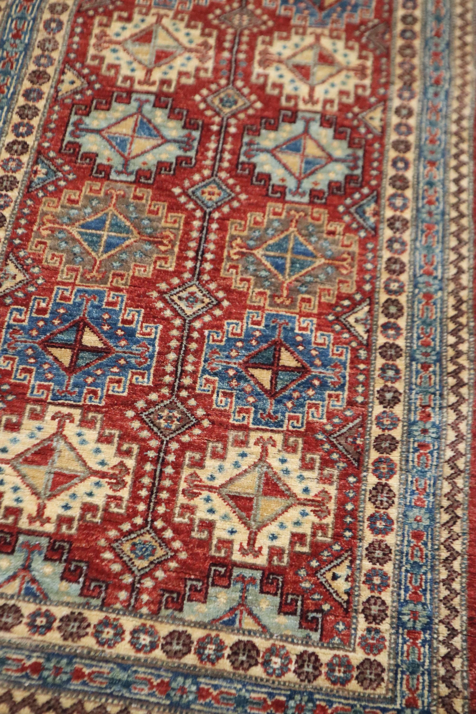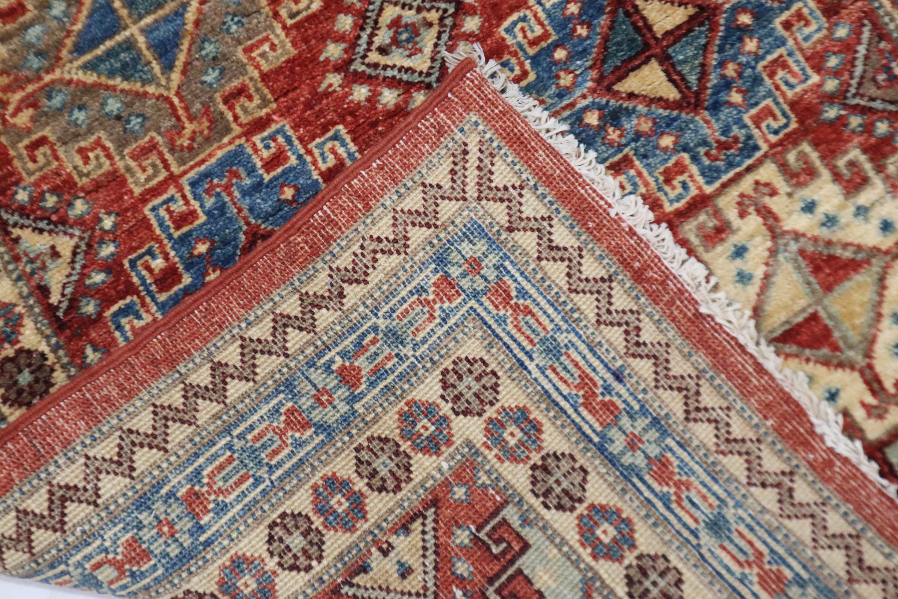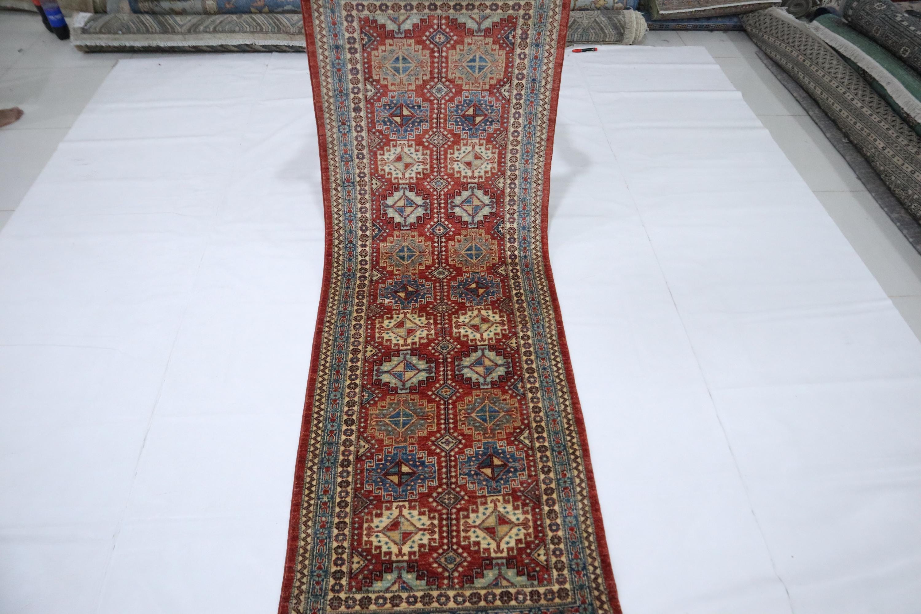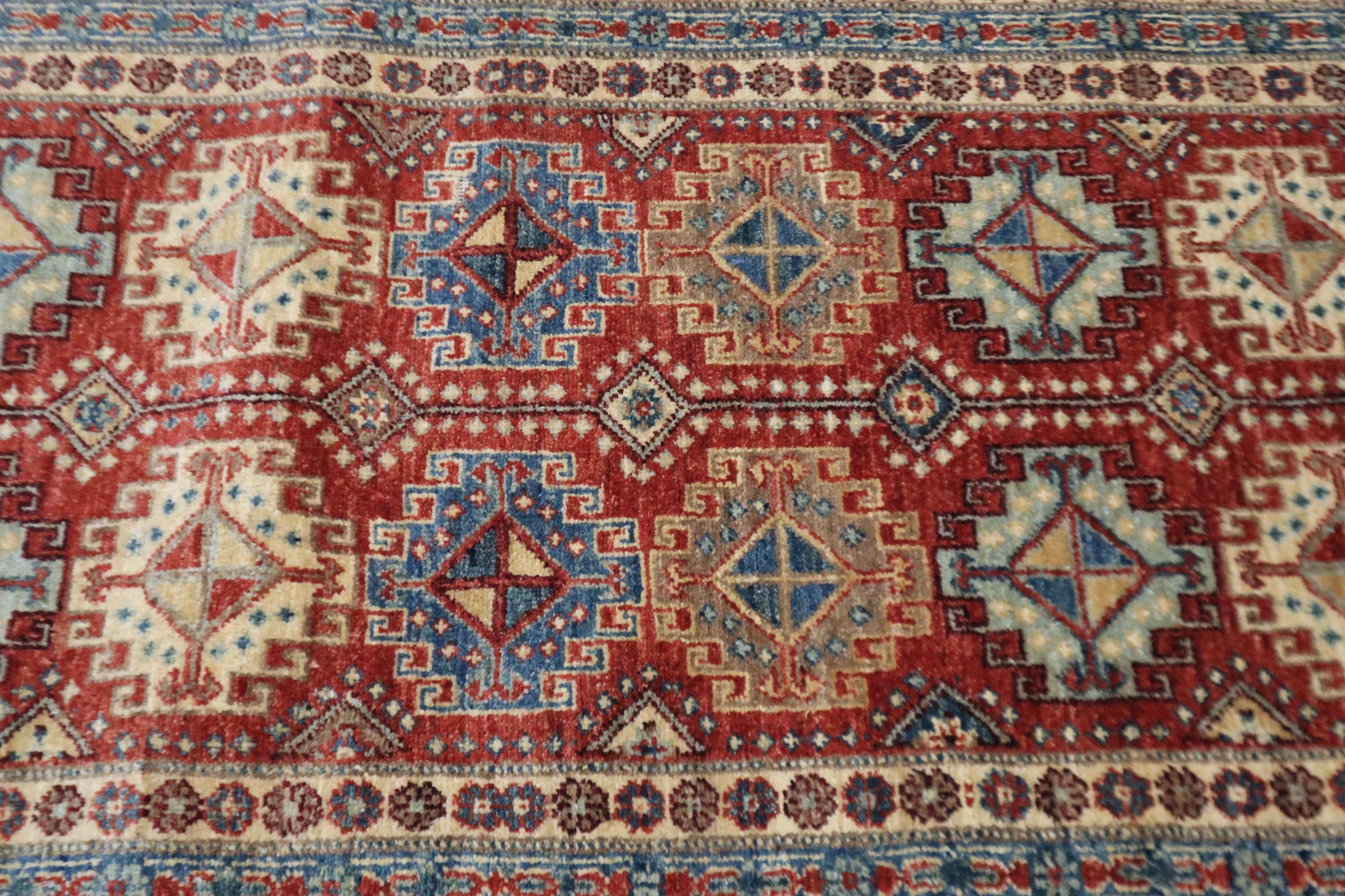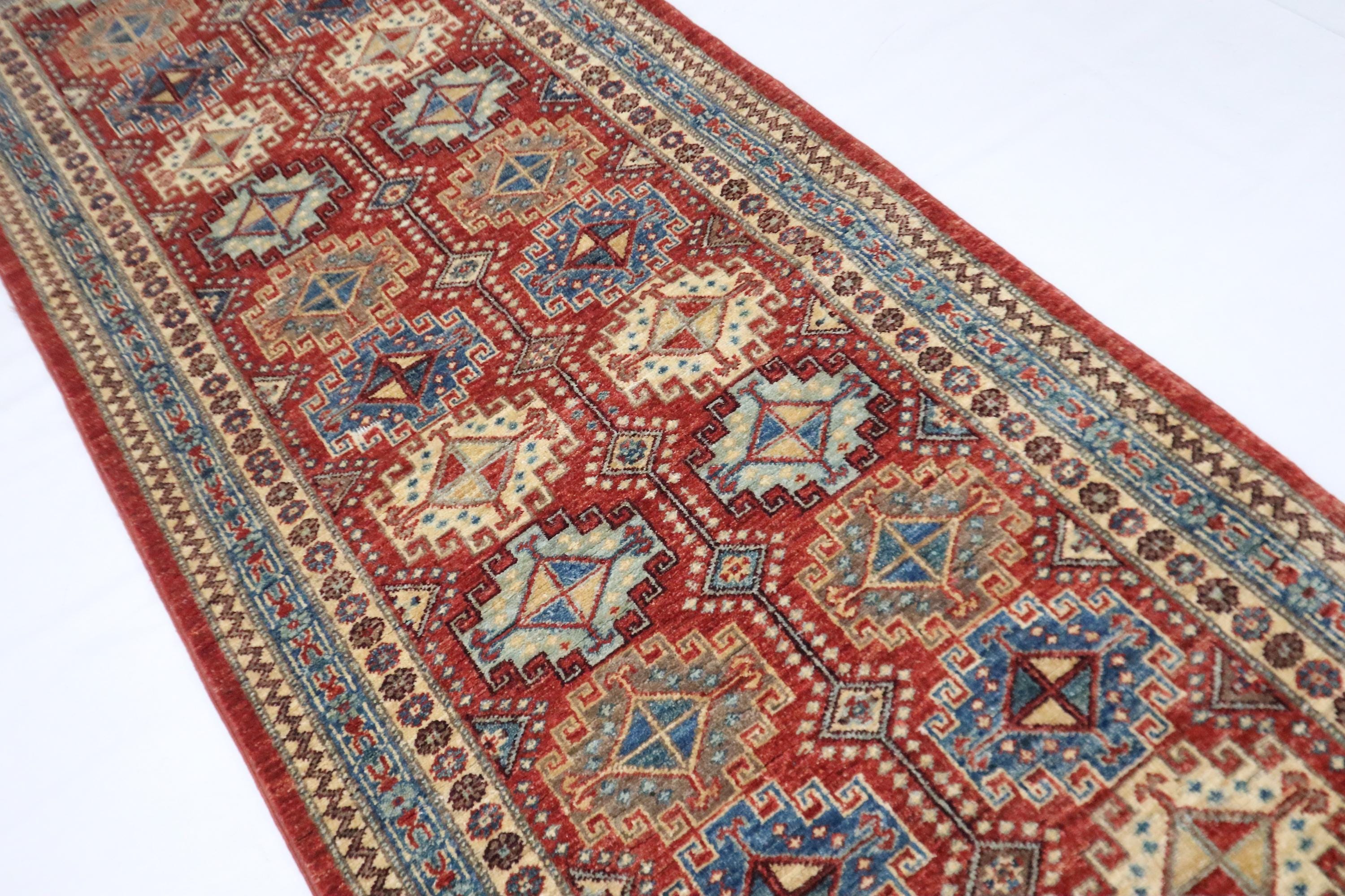 7 Ft Chobi Runner Rug, Rusty Red Afghan Hand Knotted Geometric Veg Dye Wool Runner, Traditional Runner, Entryway Runner, Bedroom Runner