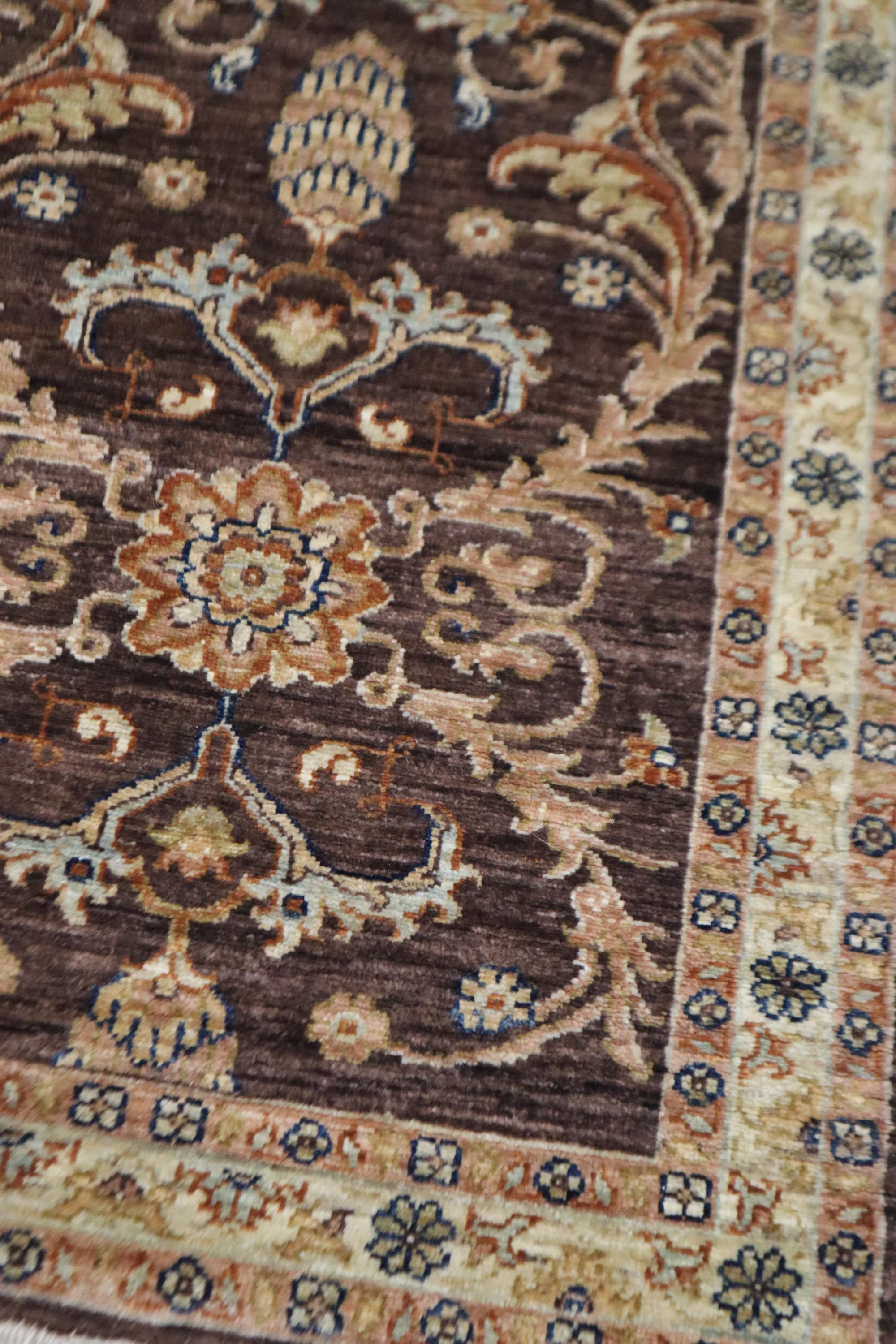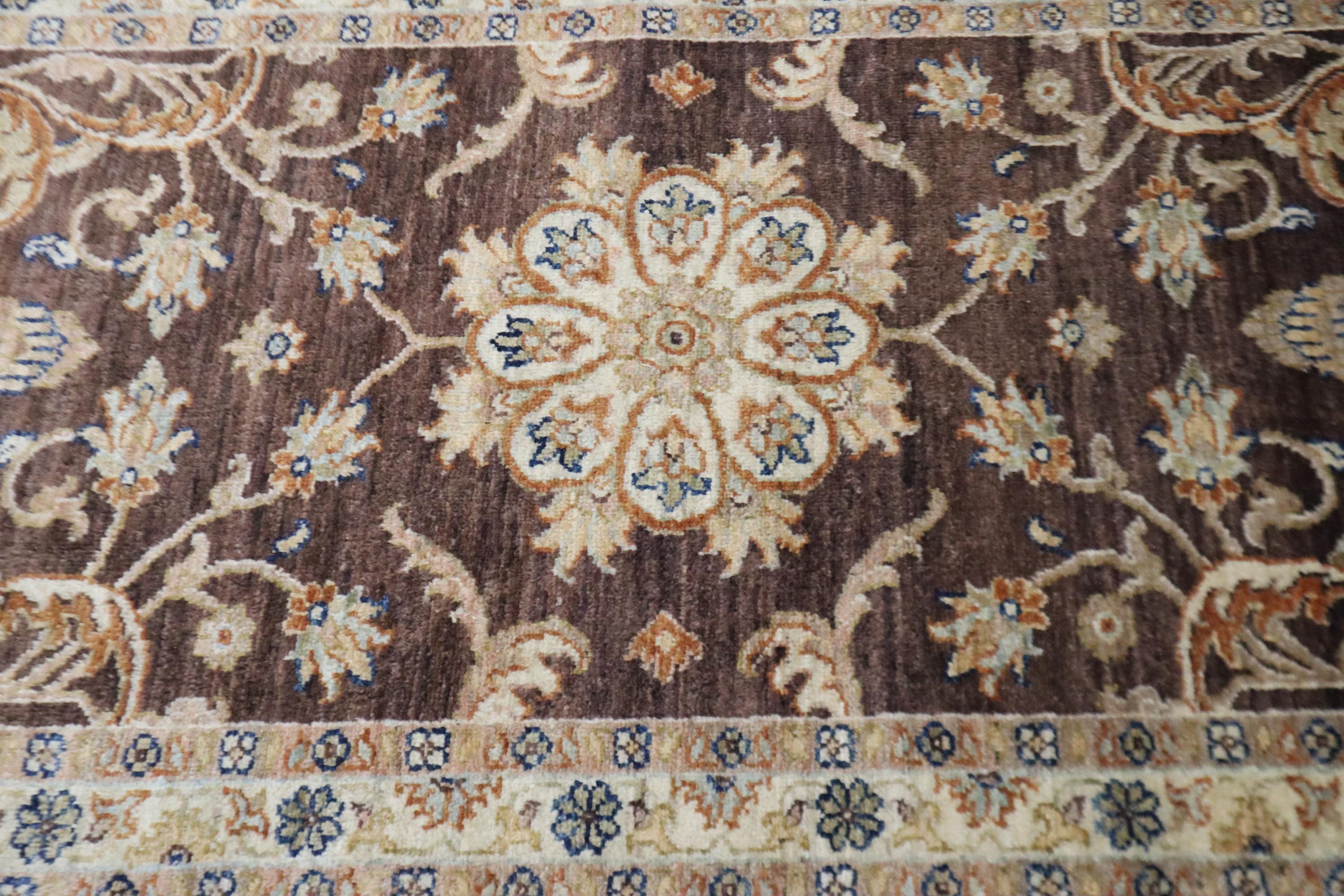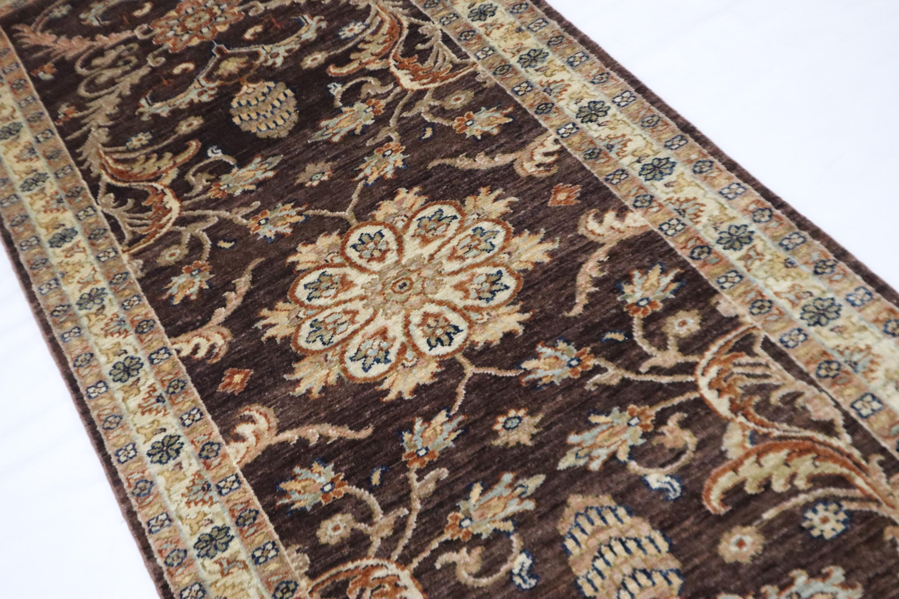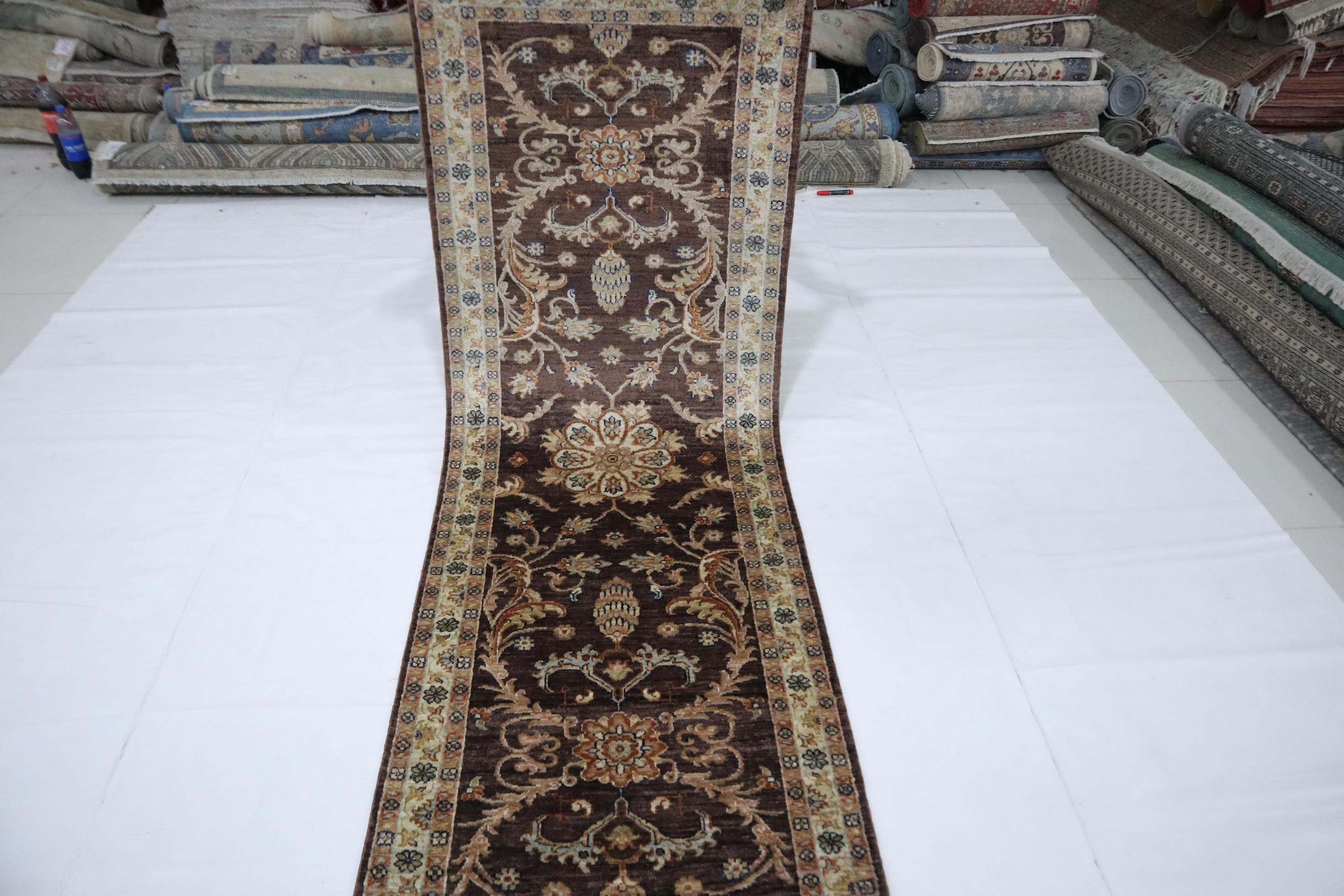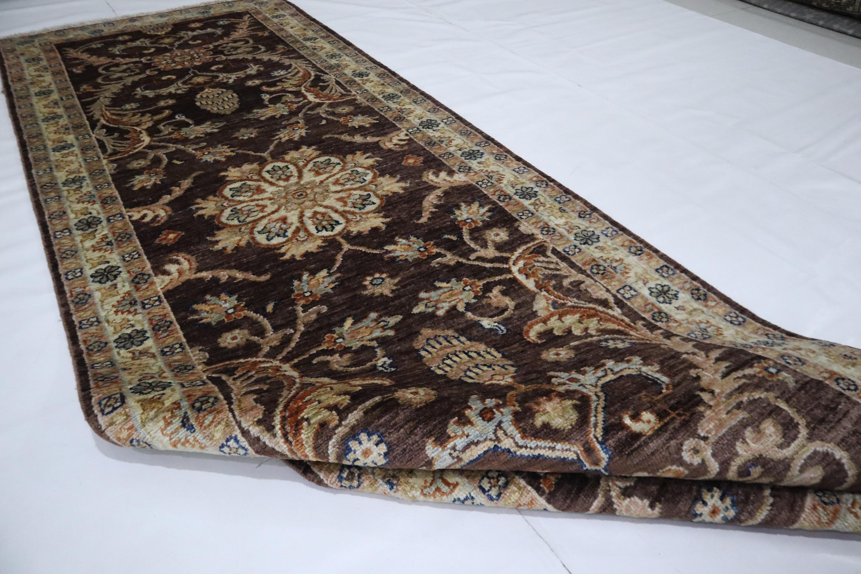 8 Ft Sultani Runner Rug, Choco Brown Runner, Afghan Hand Knotted Organic Dye Wool Runner, Floral Runner, Traditional Runner, Bedroom Runner