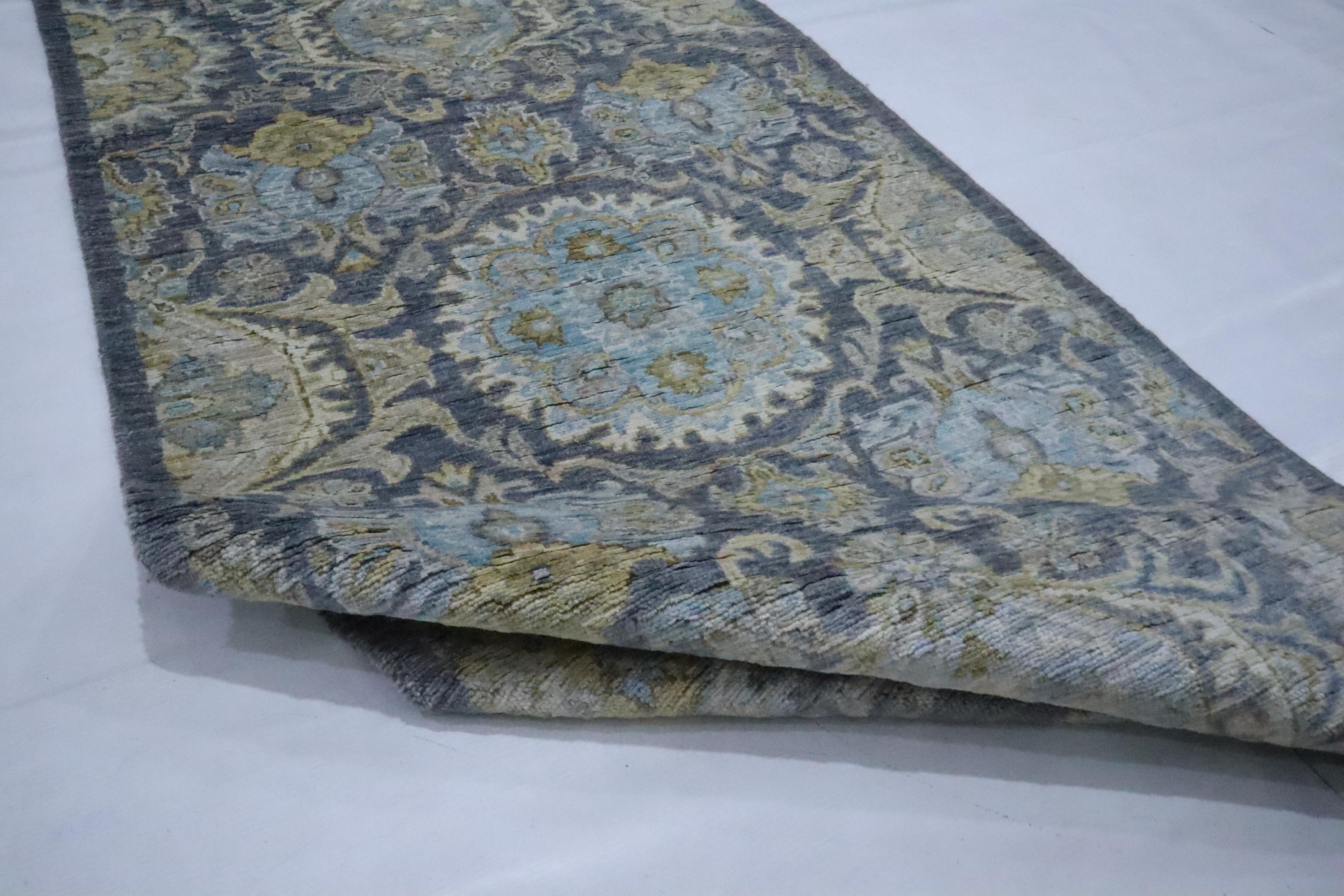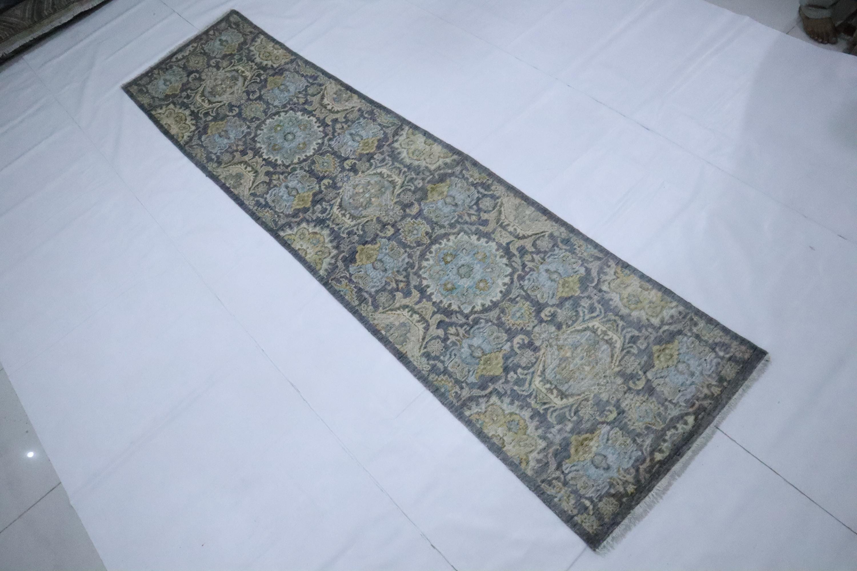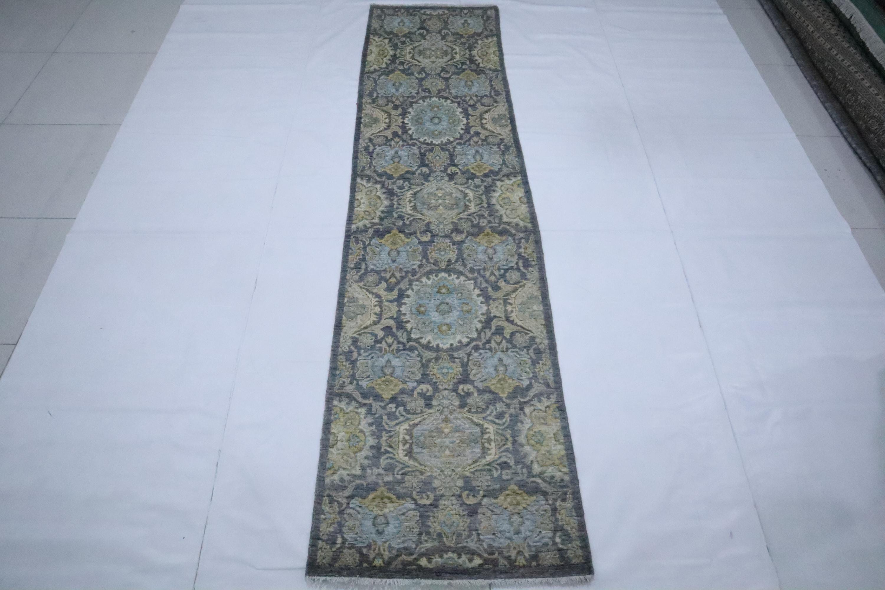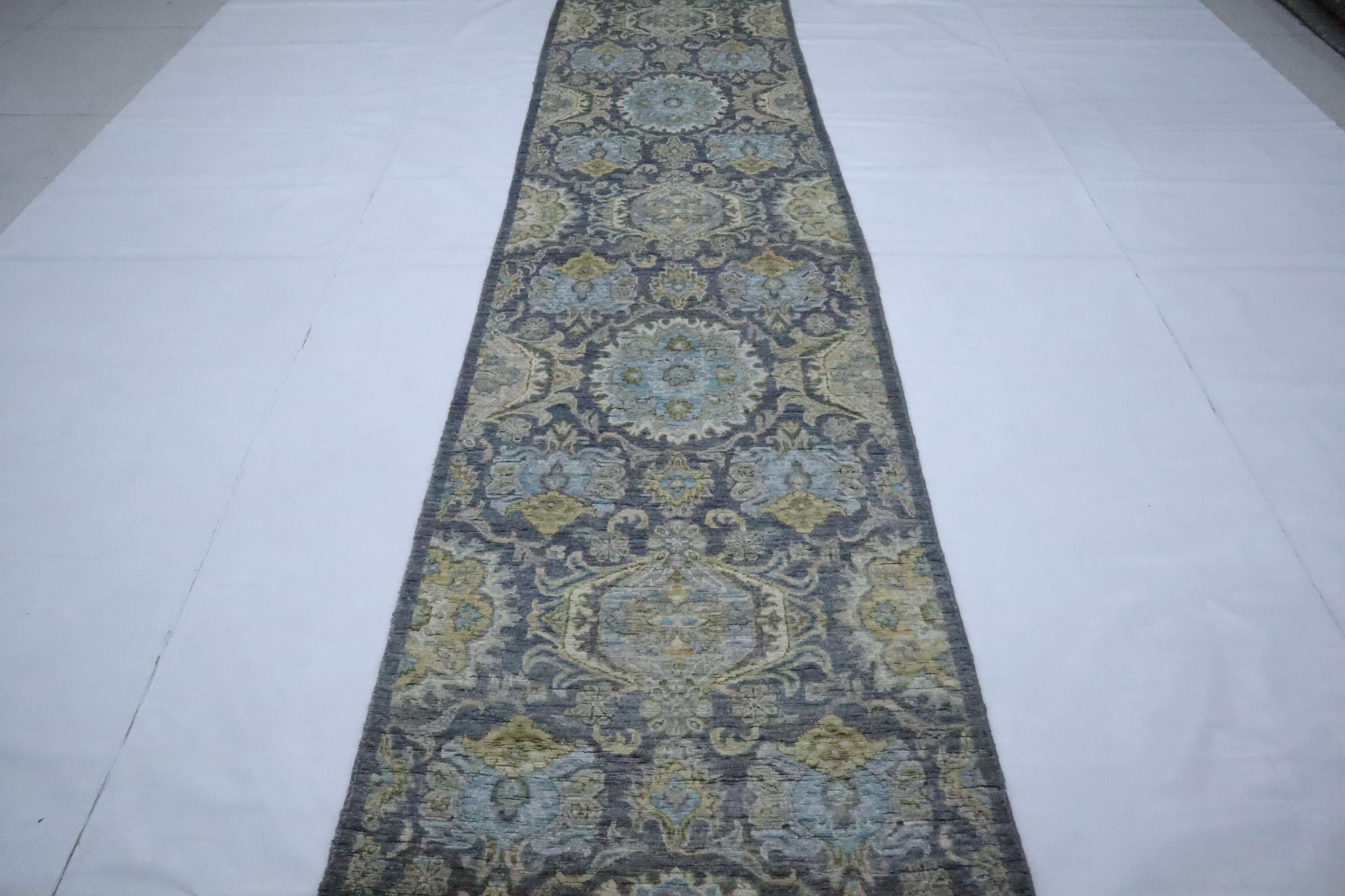 10 Ft Chobi Runner Rug, Gray Runners, Afghan Hand Knotted Veg Dye Wool Runner, Traditional Runner, Geometric Runner, Entryway Runner, Runner