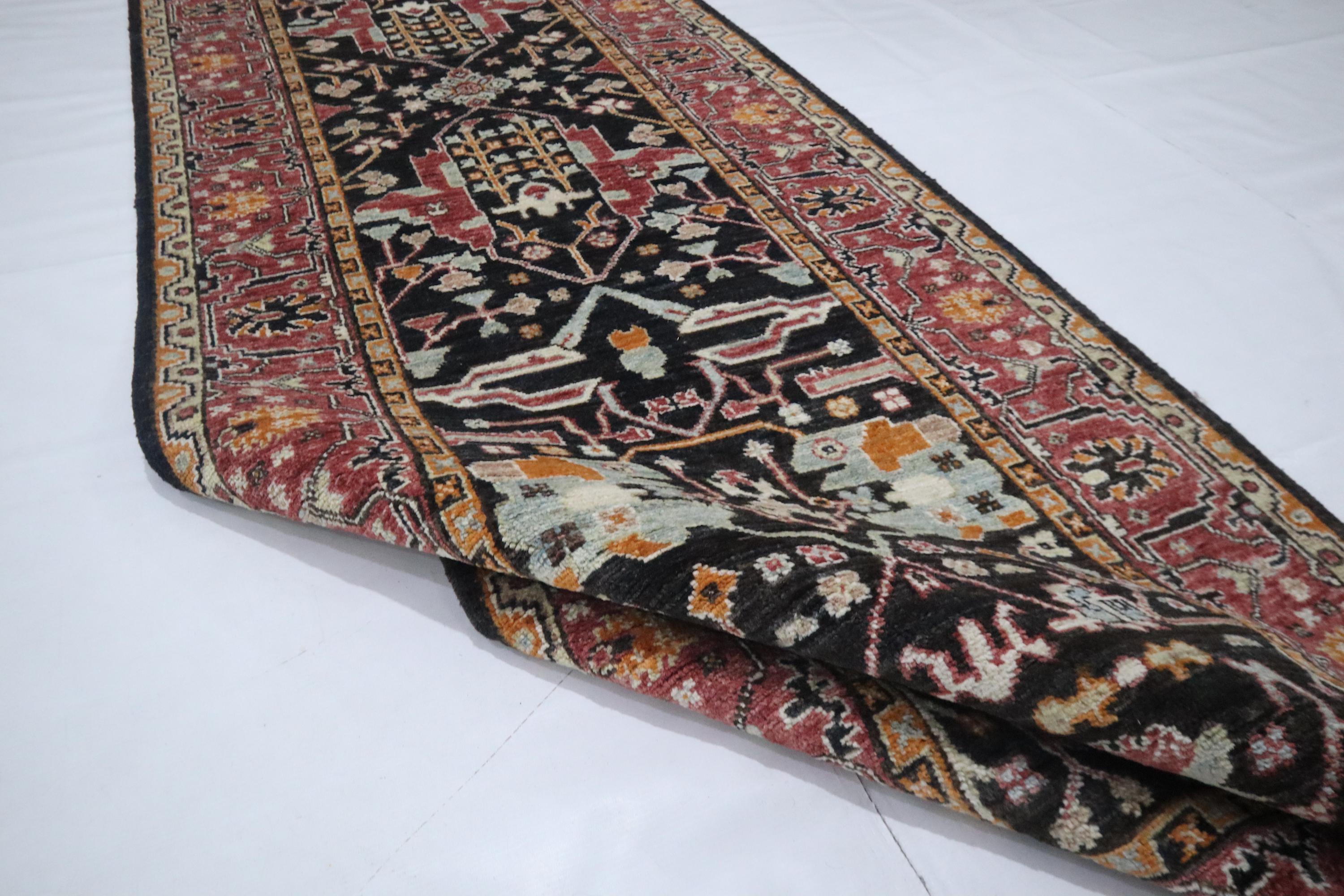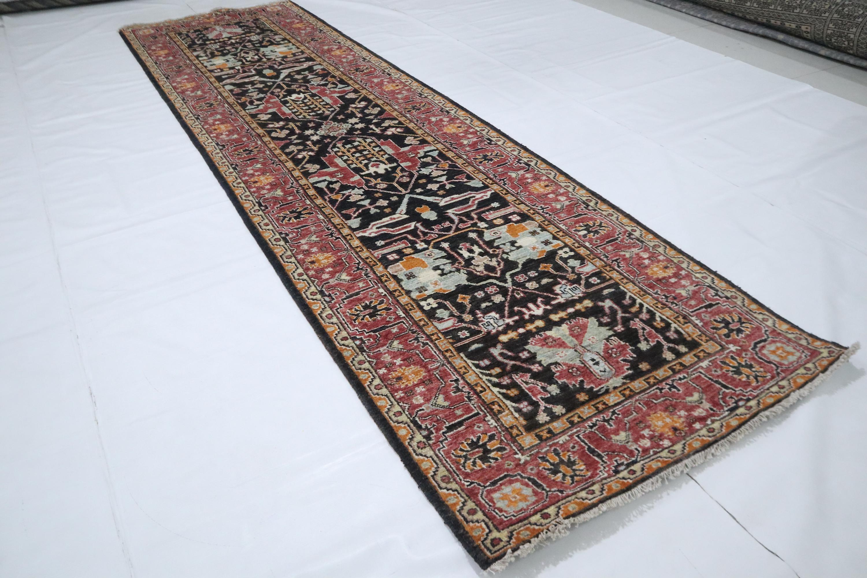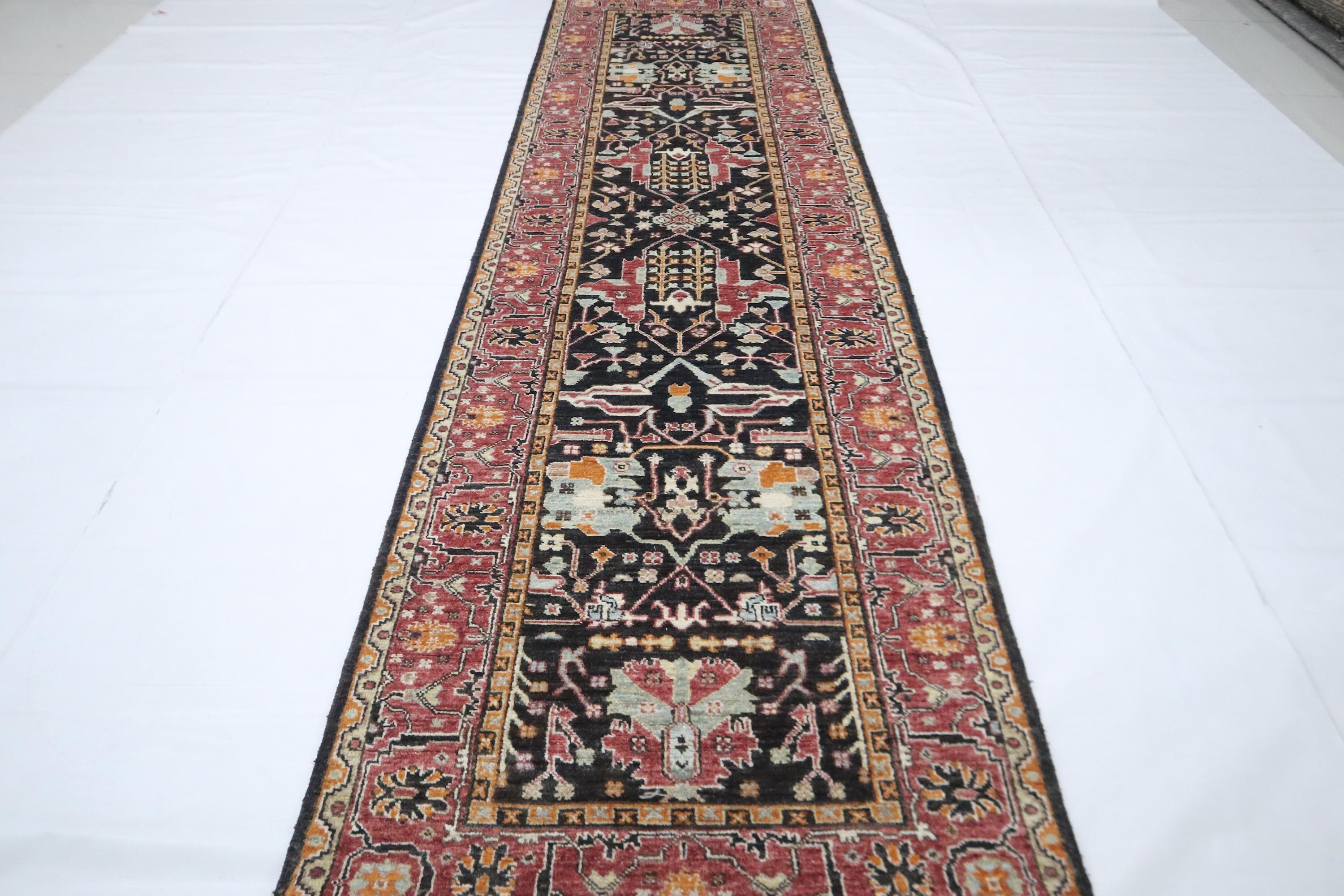 10 Ft Bidjar Runner Rug - Black Pink Persian Style Hand Knotted Floral Wool Runner - Traditional Runner - Large Runner - Entryway Runner