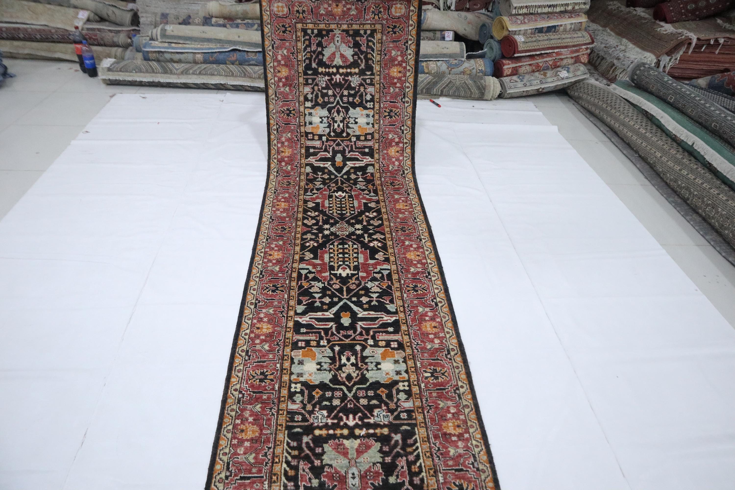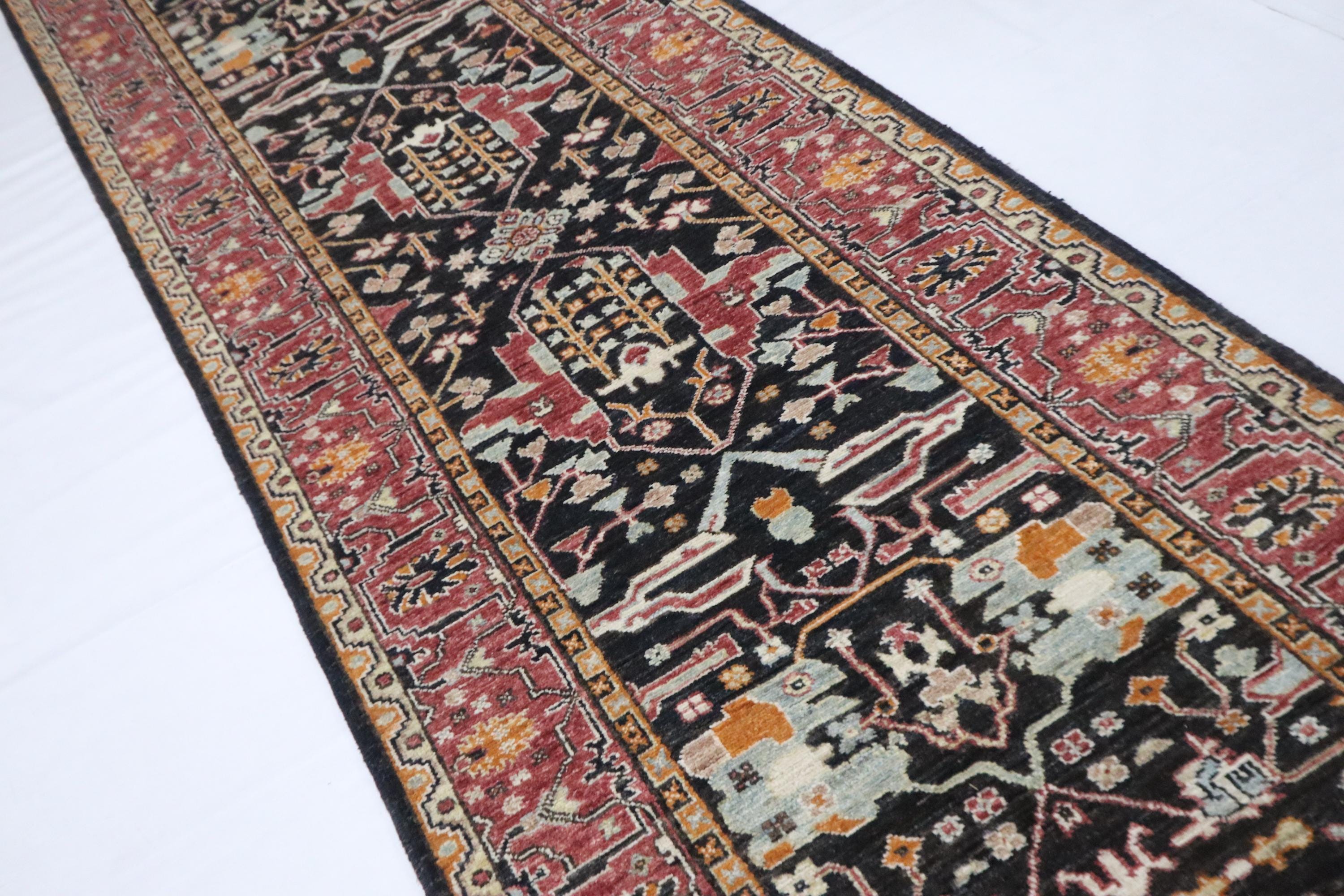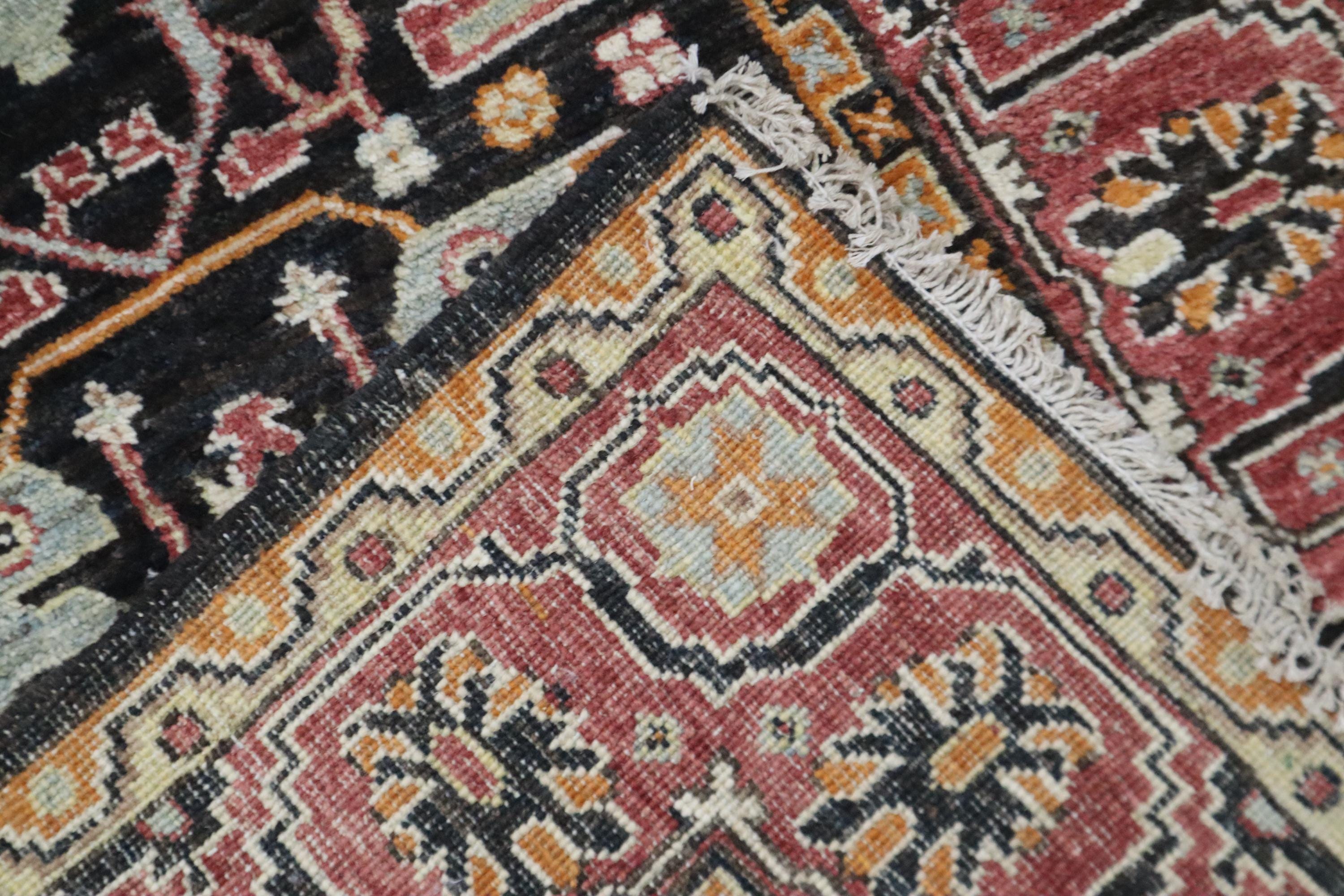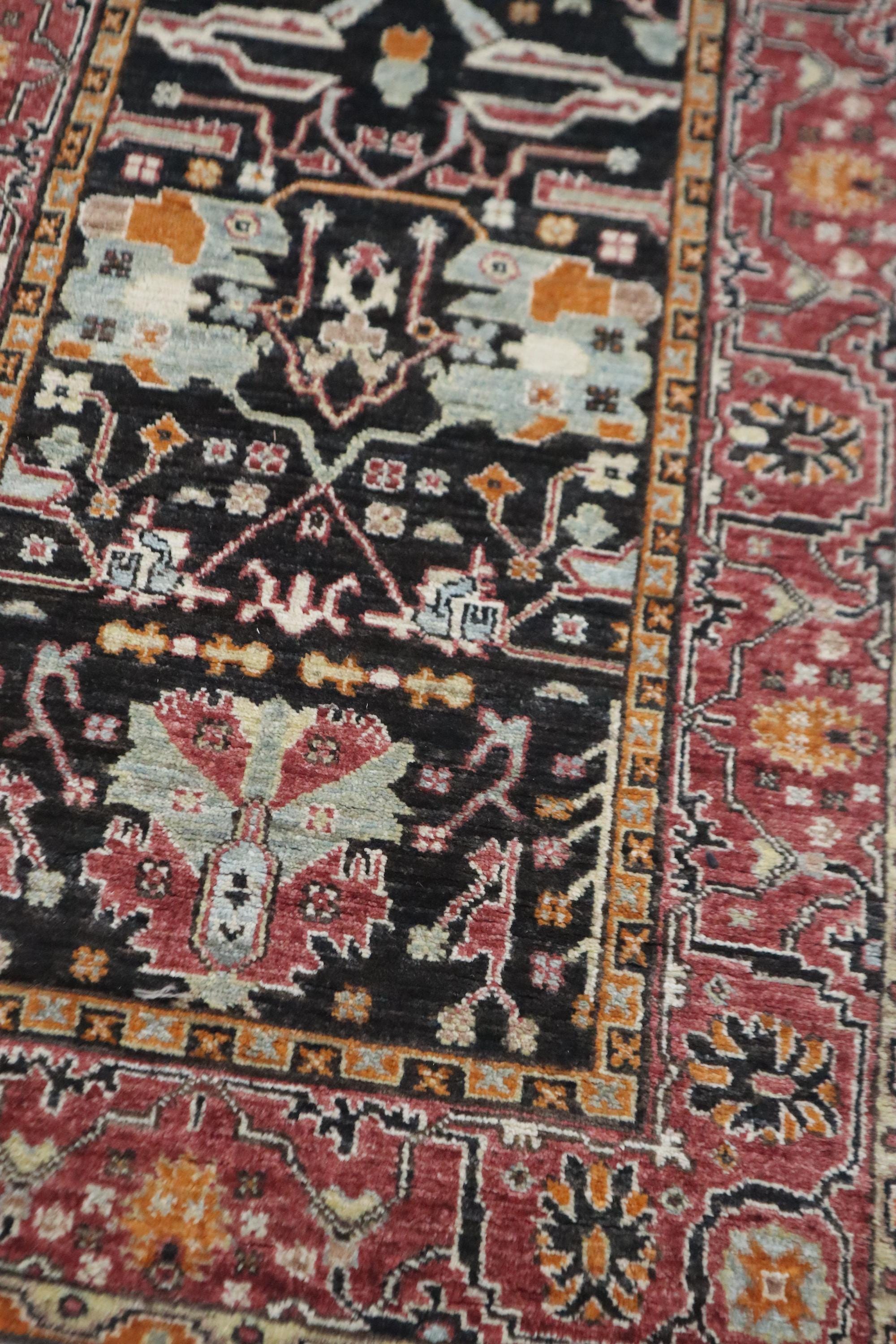 10 Ft Bidjar Runner Rug - Black Pink Persian Style Hand Knotted Floral Wool Runner - Traditional Runner - Large Runner - Entryway Runner