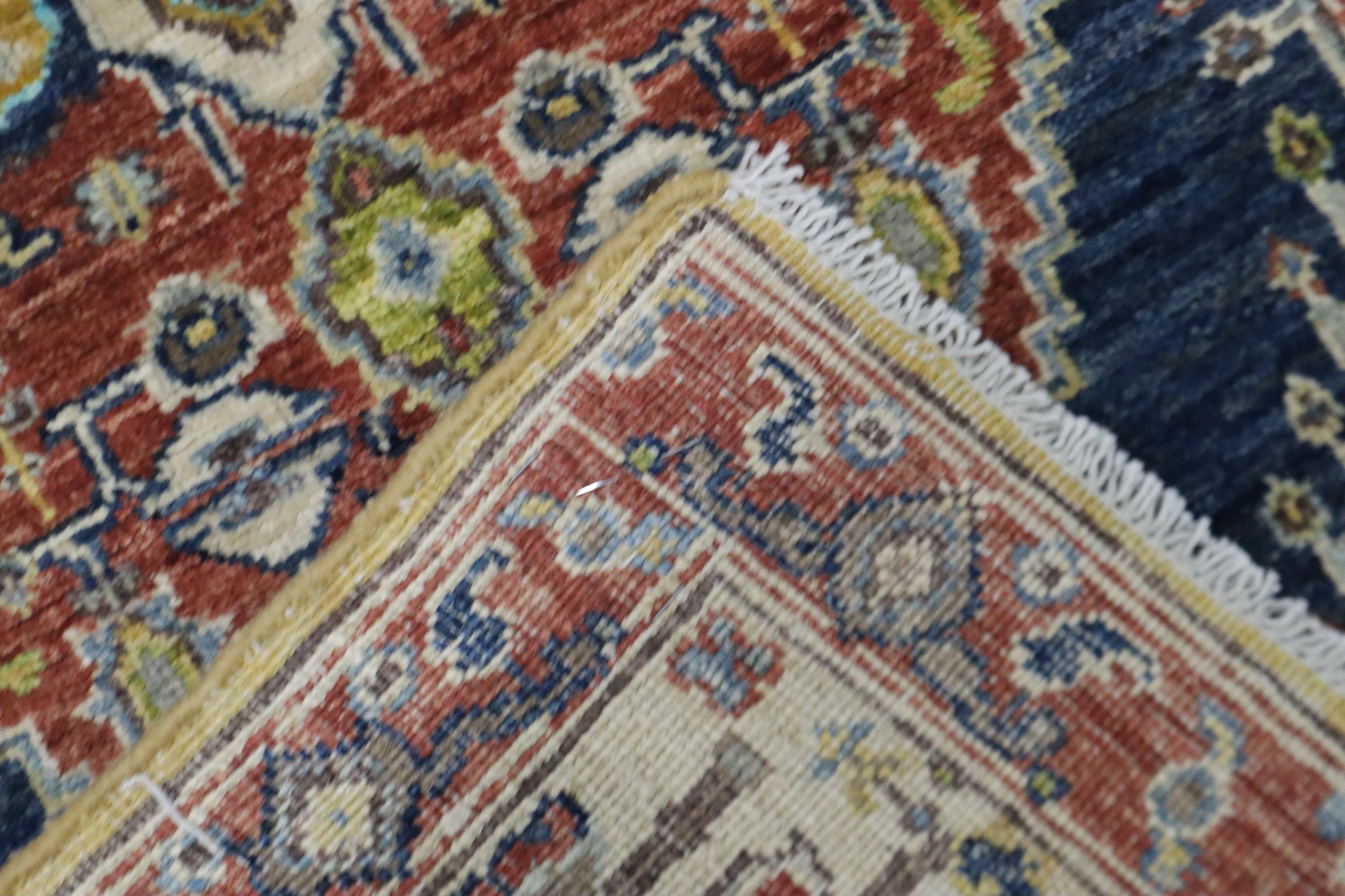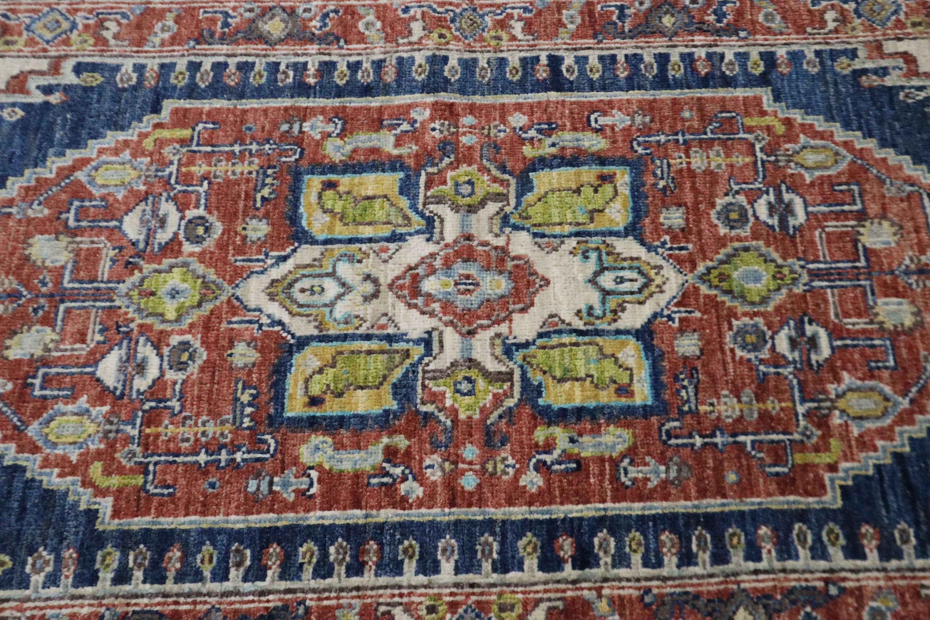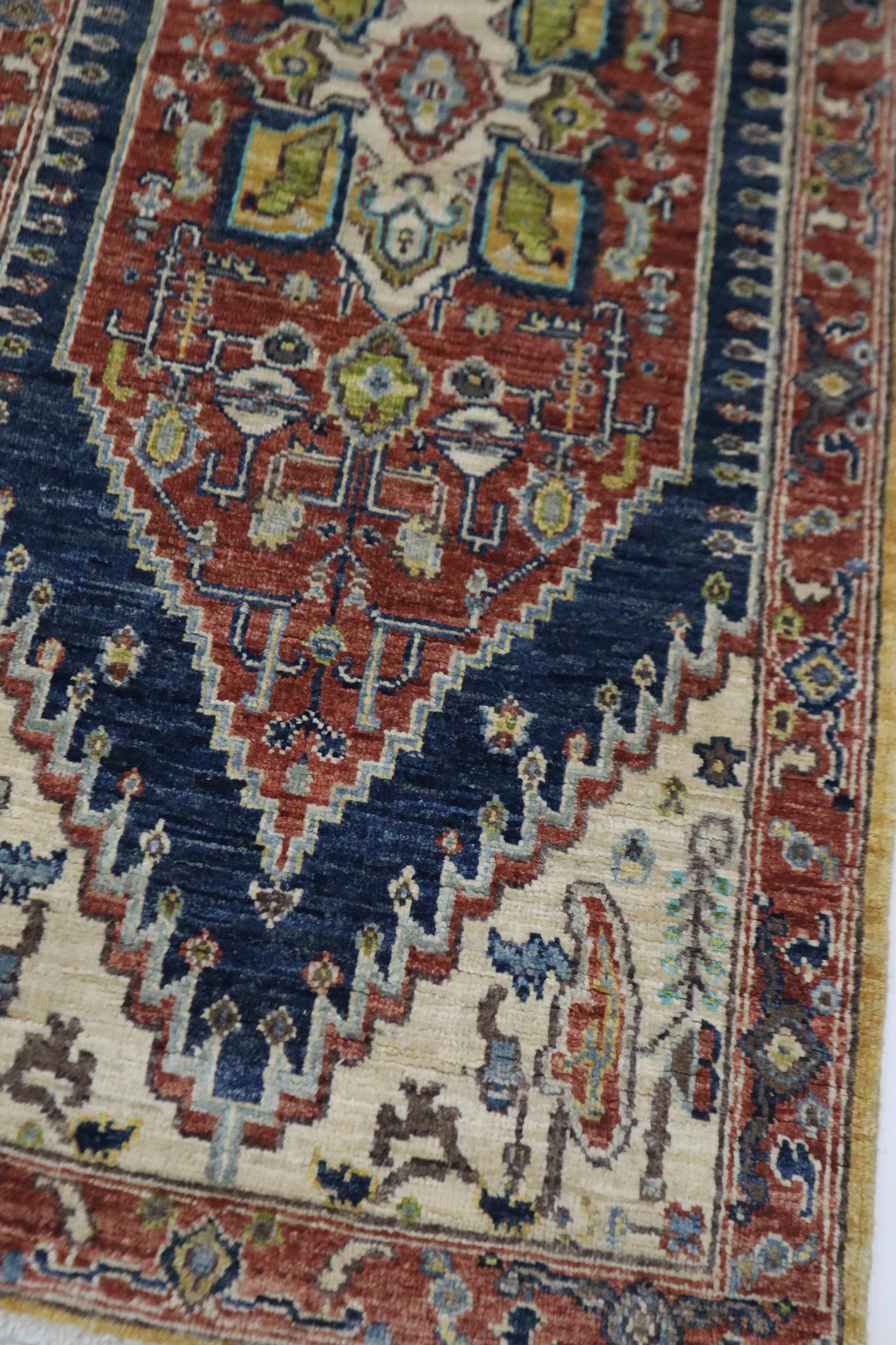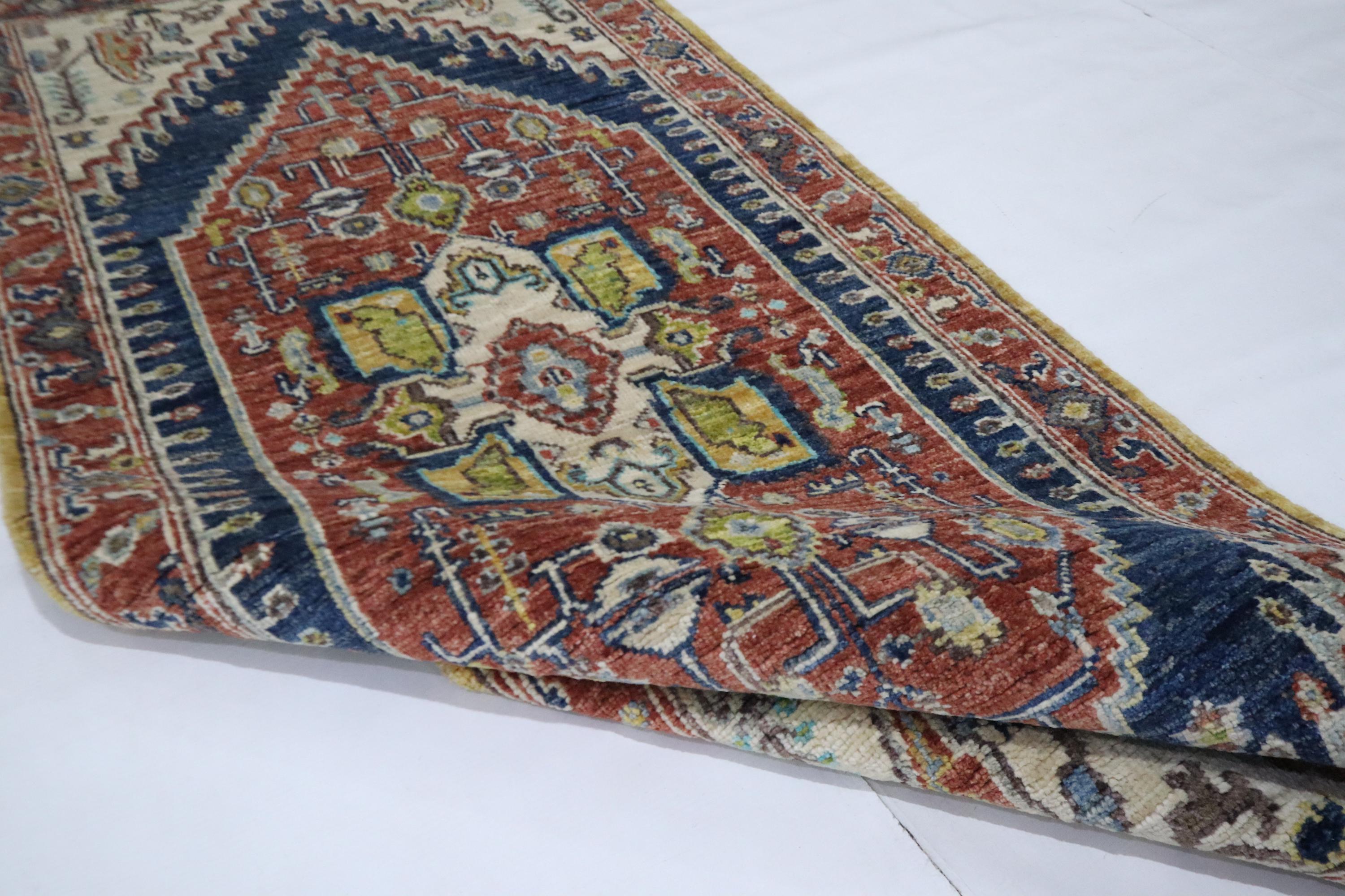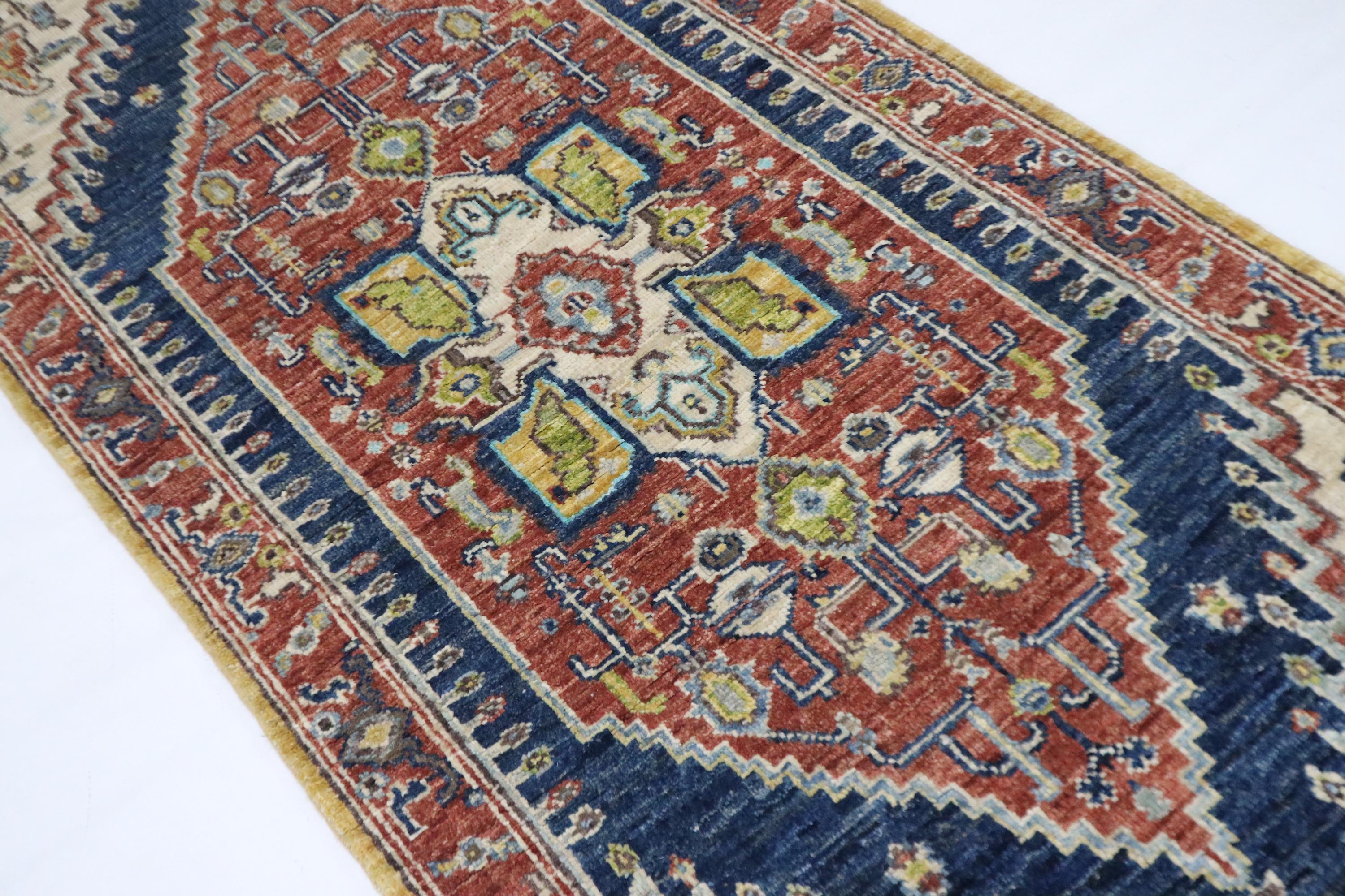 5 Ft Heriz Runner Rug, Rust Blue Runner, Afghan Hand Knotted Organic Dye Wool Runner, Traditional Runner, Oriental Runner, Bedroom Runner