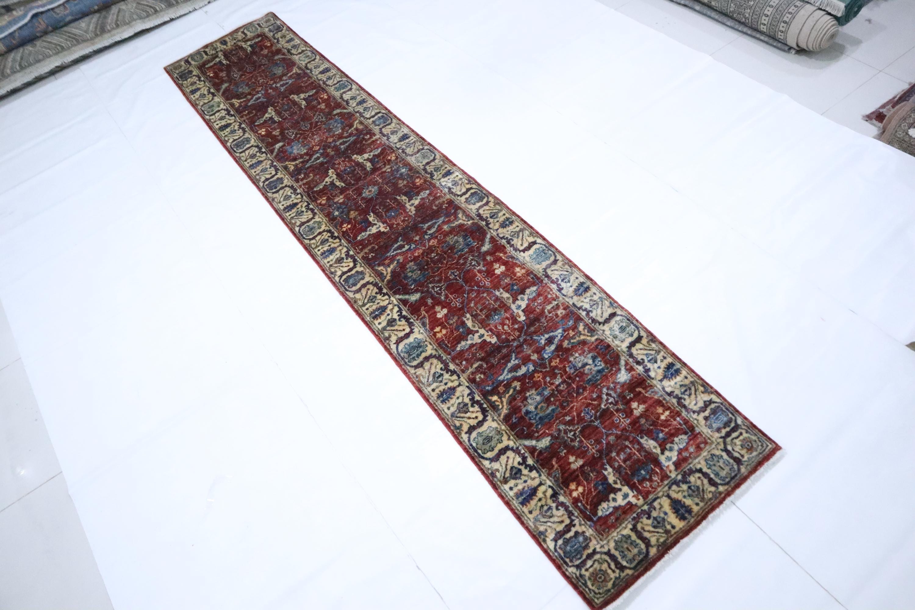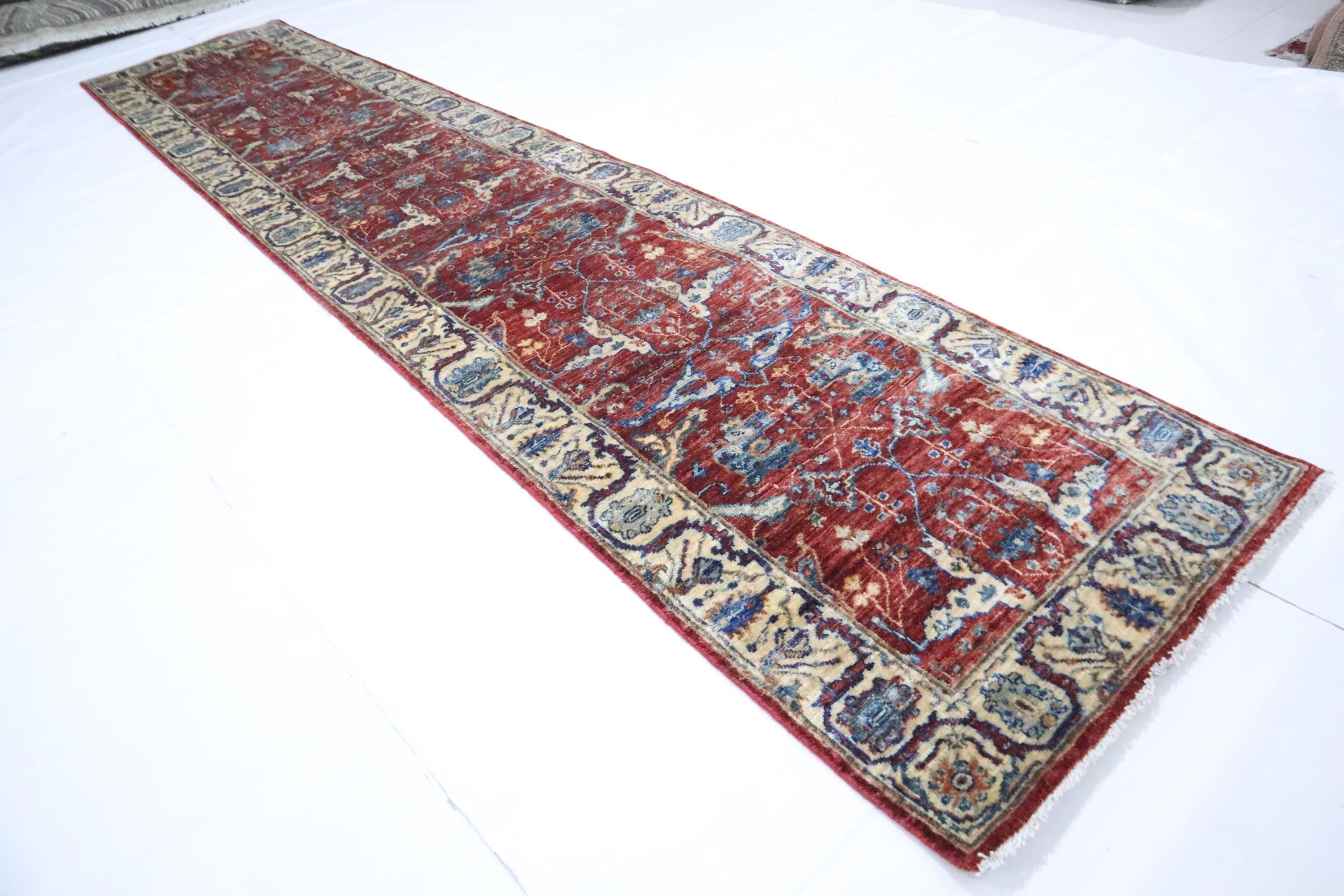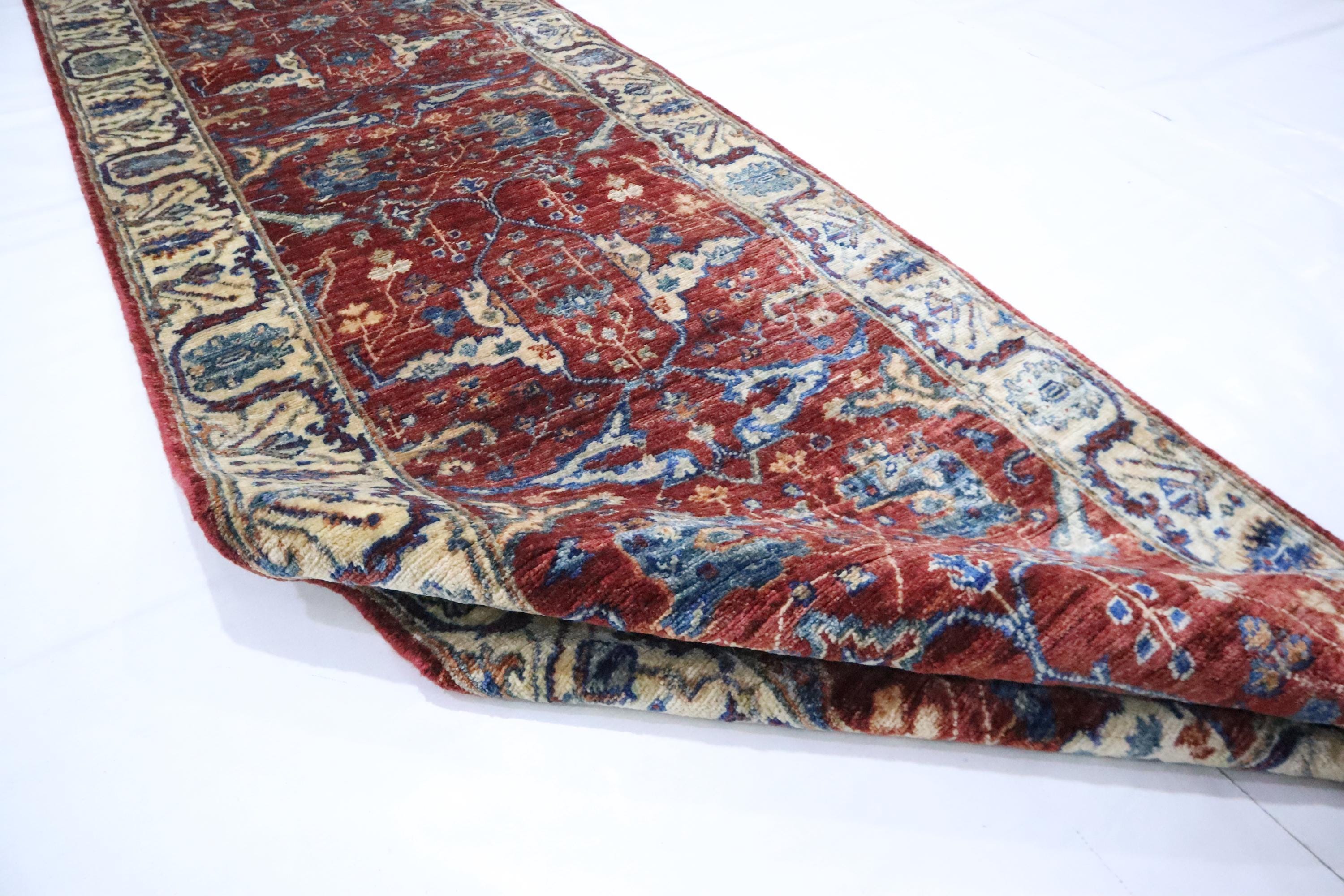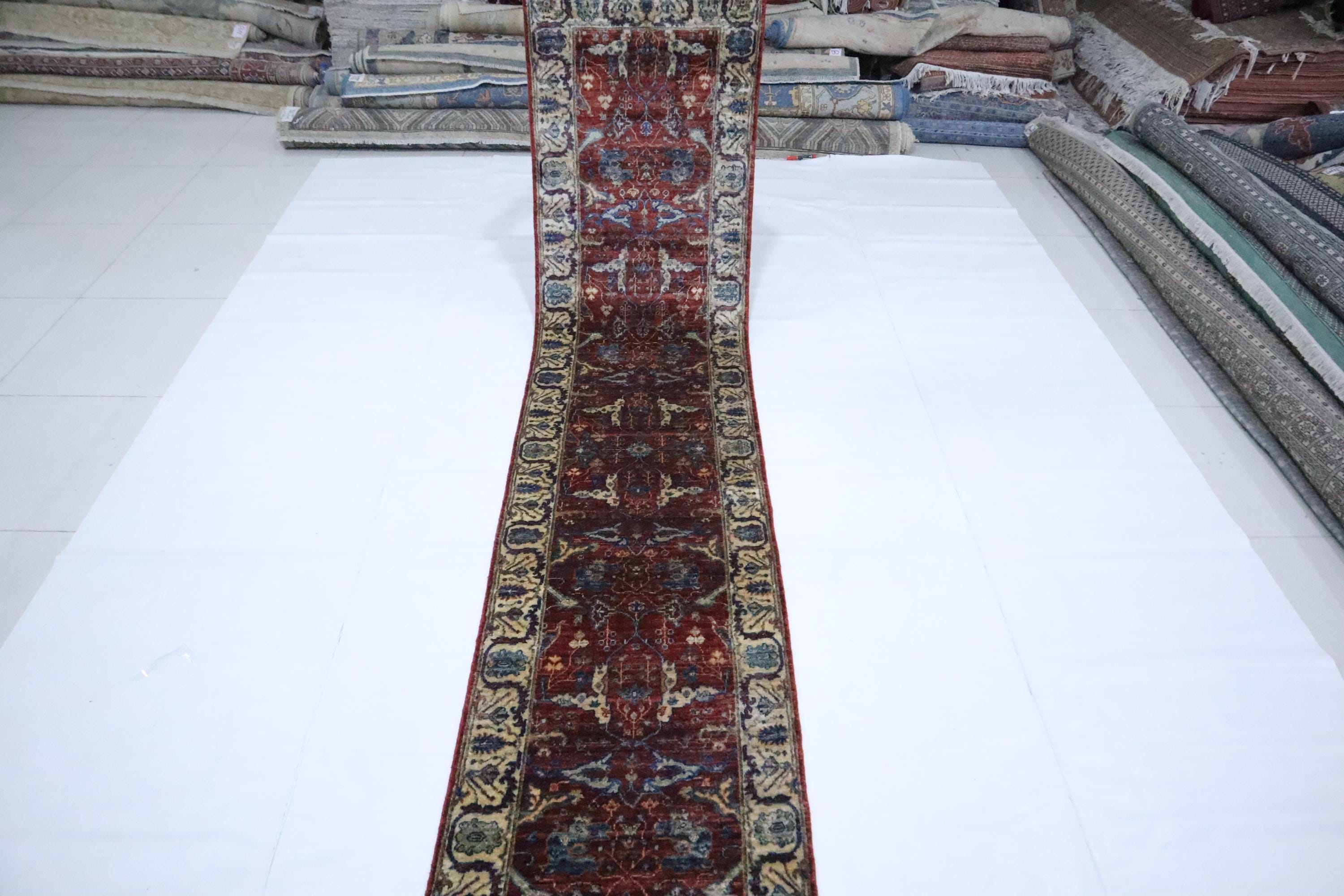 12 Ft Bidjar Runner Rugs, Red Runner, Persian Style Afghan Hand Knotted Organic Dye Wool Runner, Floral Runner, Traditional Runner, Runners