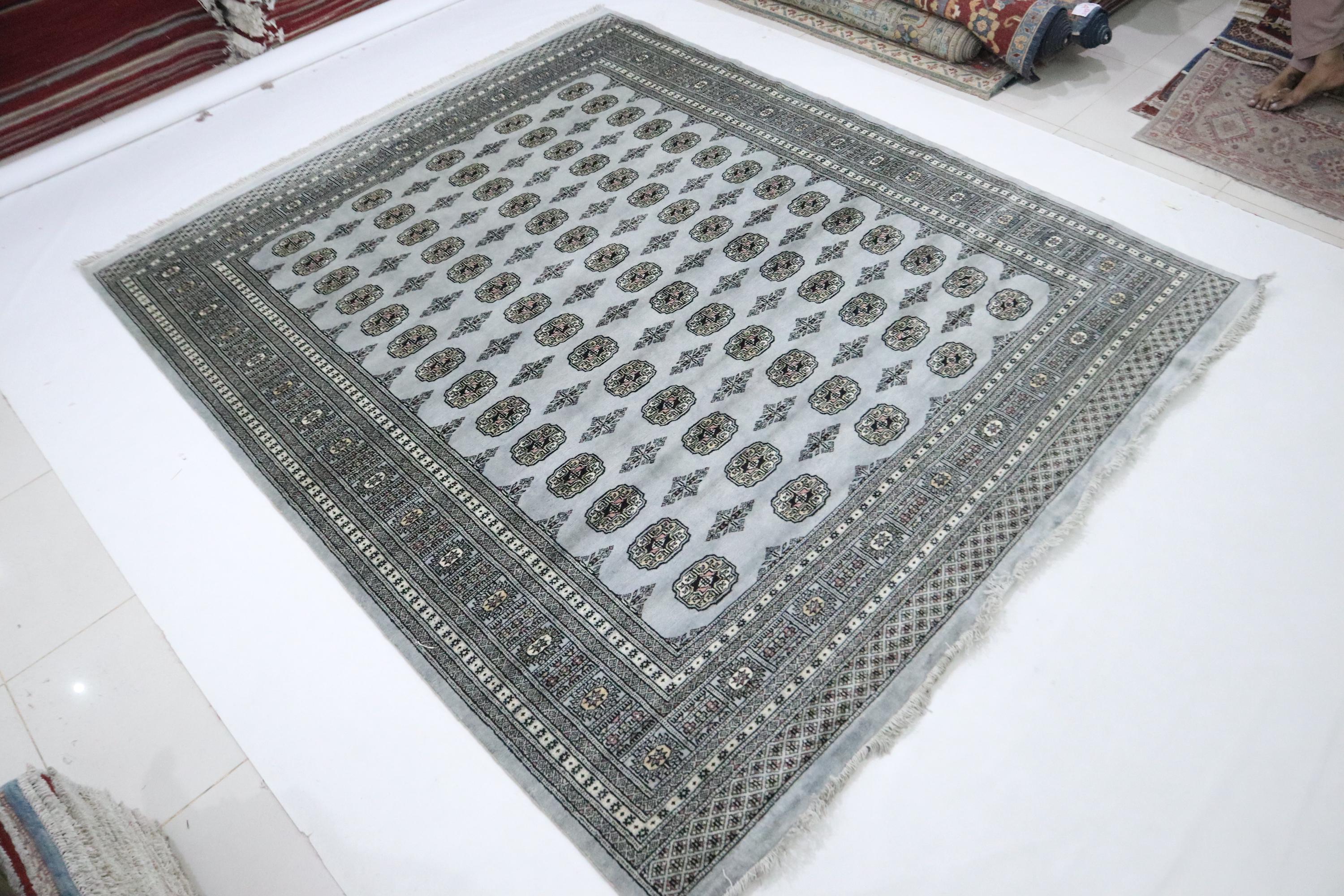 8x10 Ft Mori Bokhara Area Rug, Gray Rugs, Hand Knotted Soft Wool Rug, Tribal Rugs, Geometric Rugs, Bedroom Rug, Living Room Rug, Office Rug