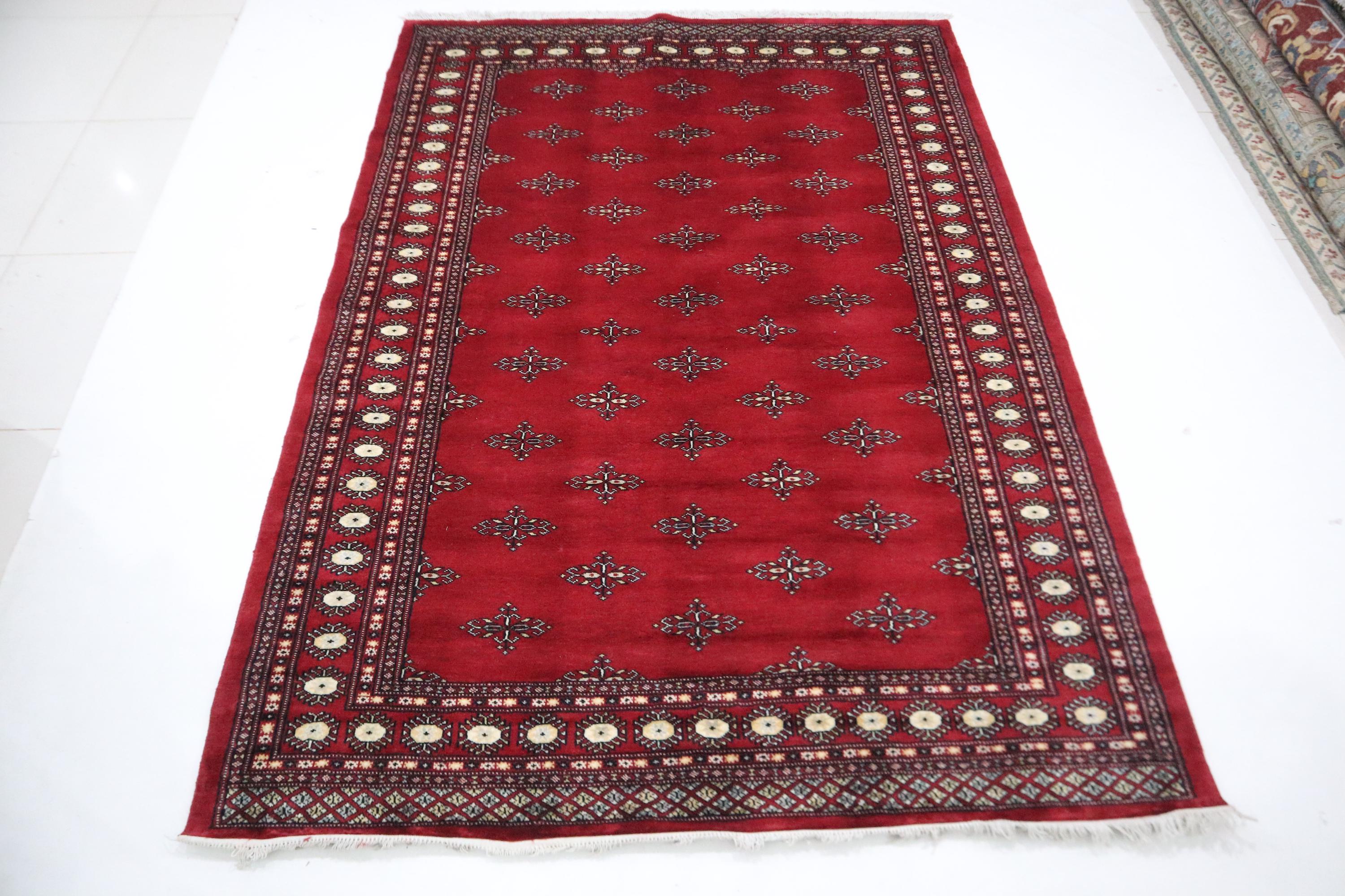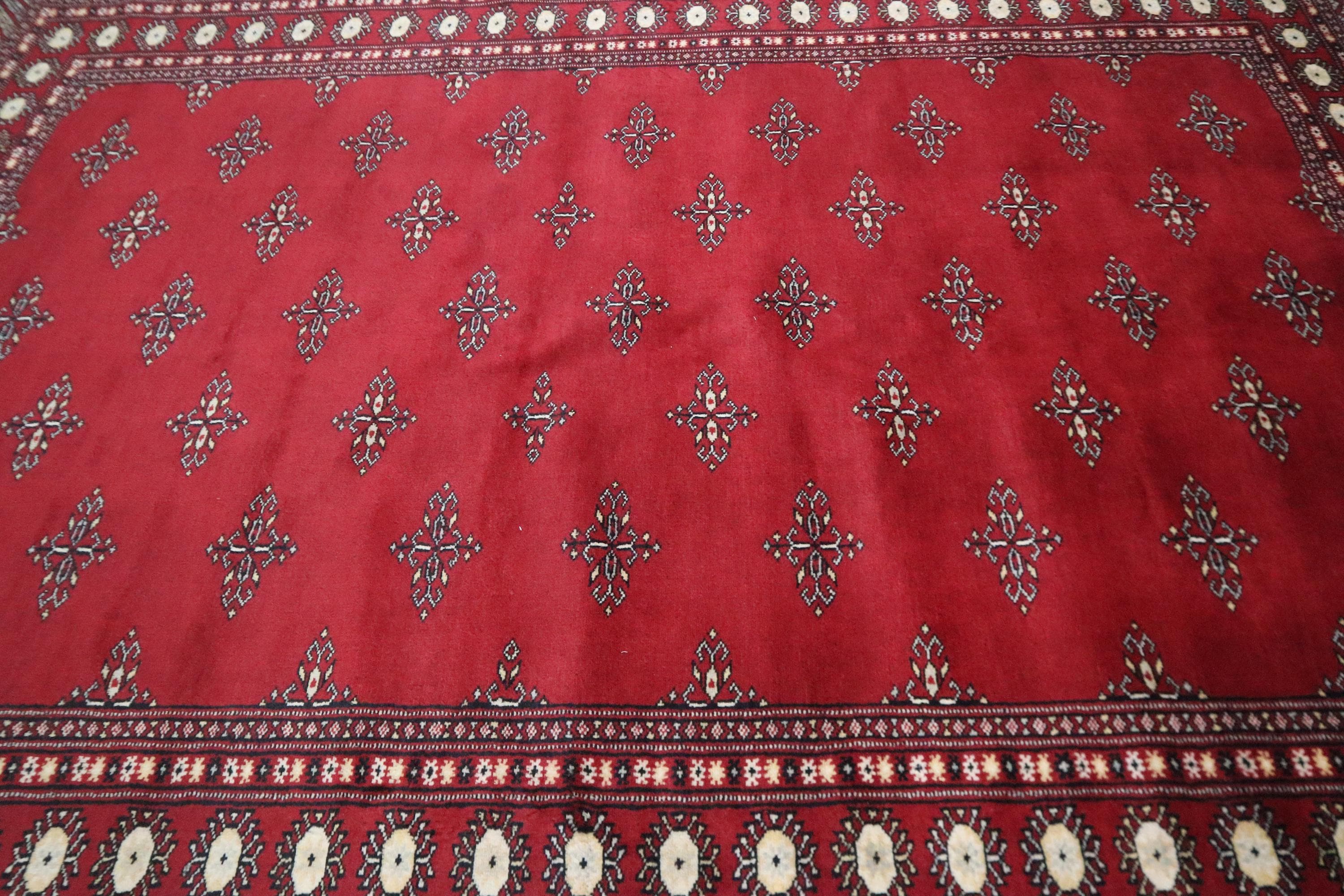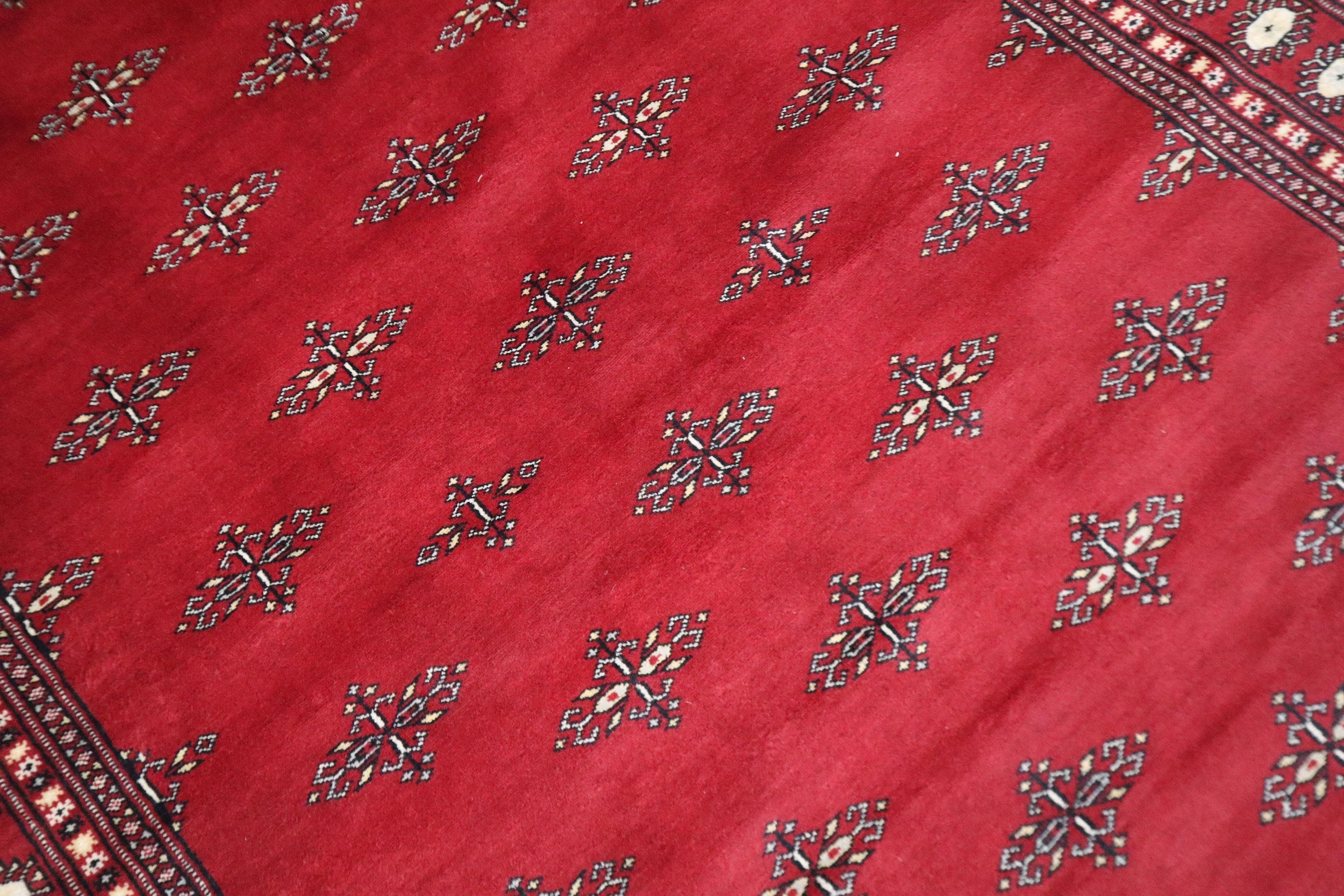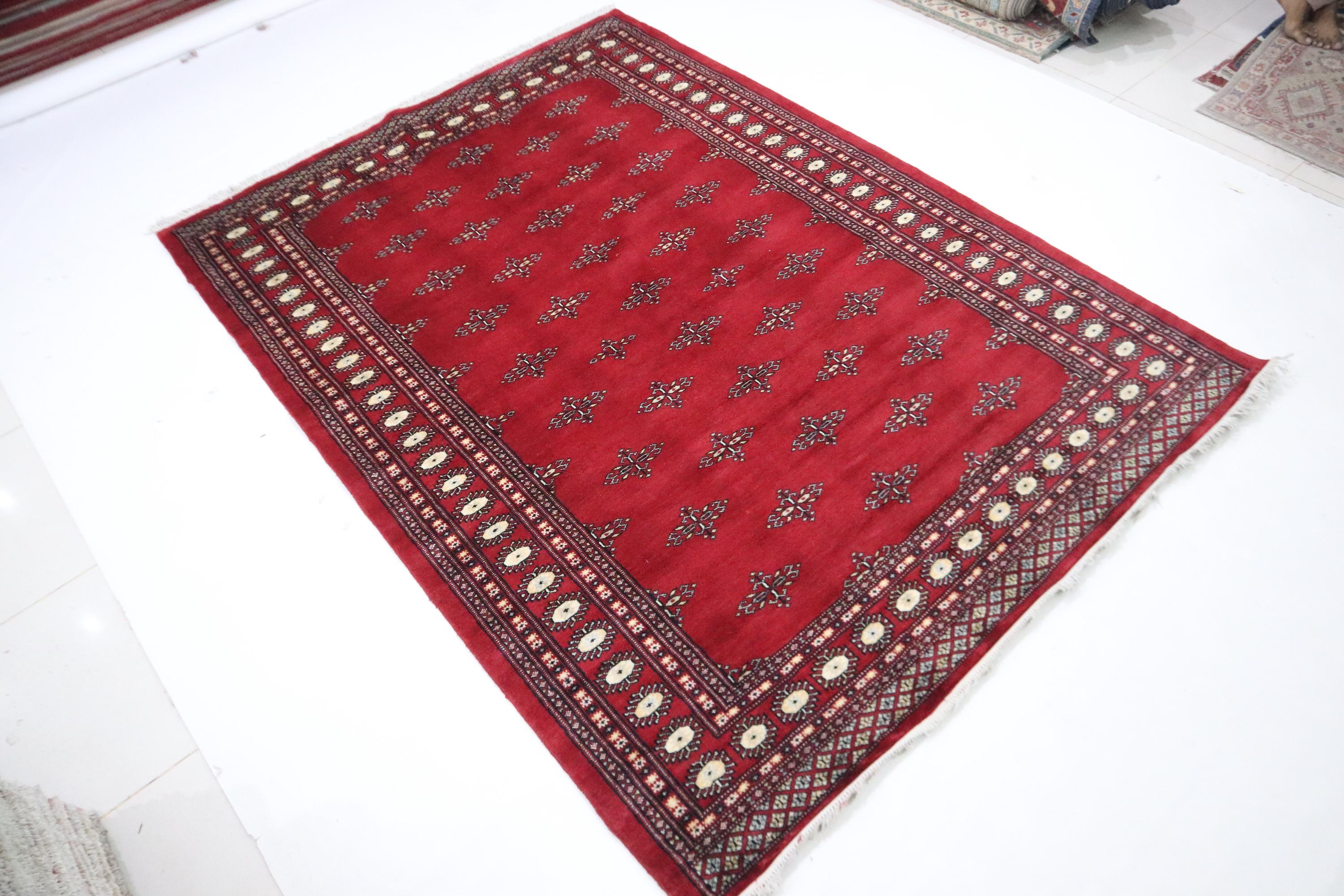 6x9 Ft Red Mori Bokhara Area Rug, Hand Knotted Rug, Soft Wool Rug, Geometric Motif Rugs, Tribal Rug, Bedroom Rug, Living & Dining Room Rug