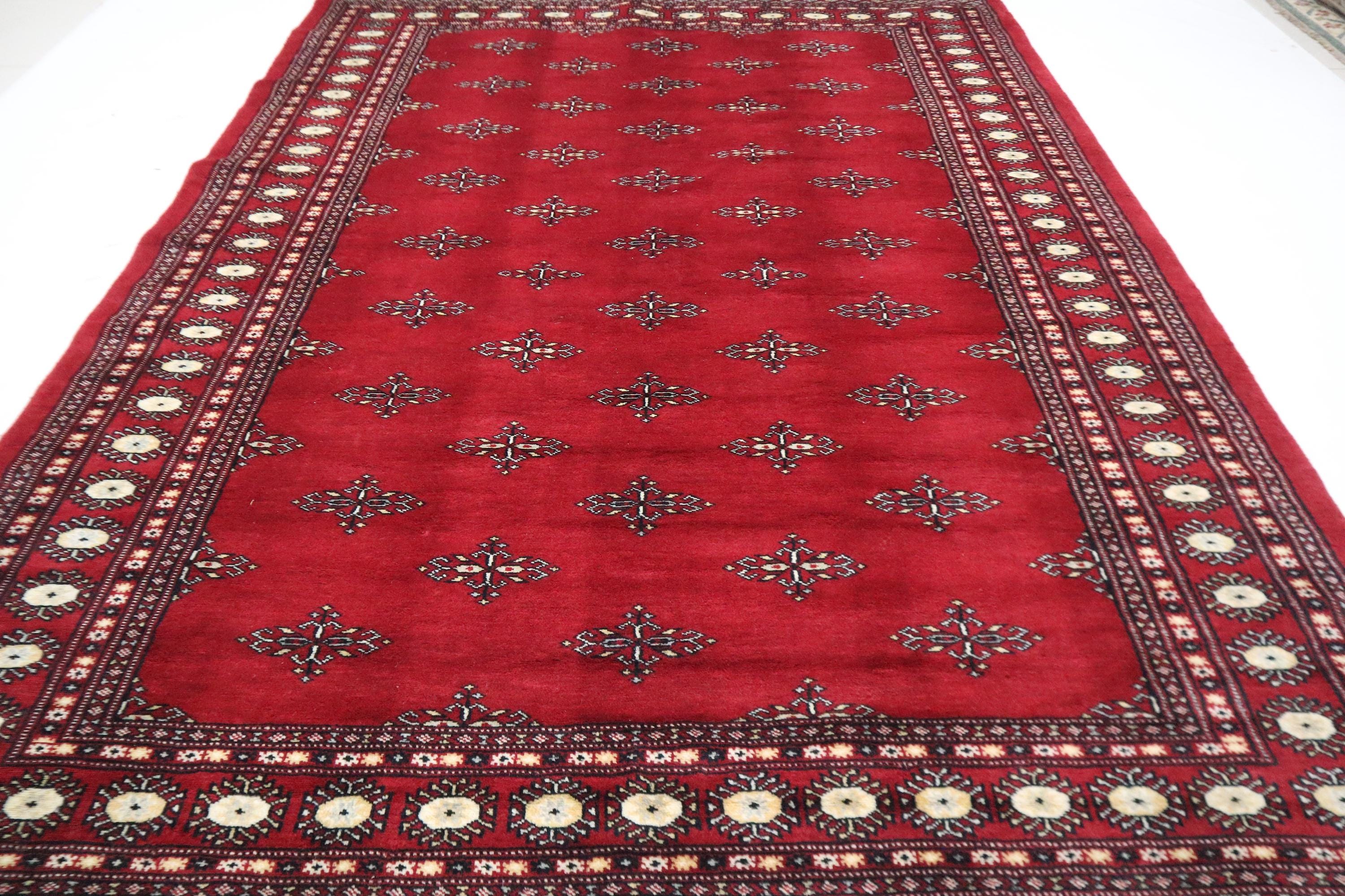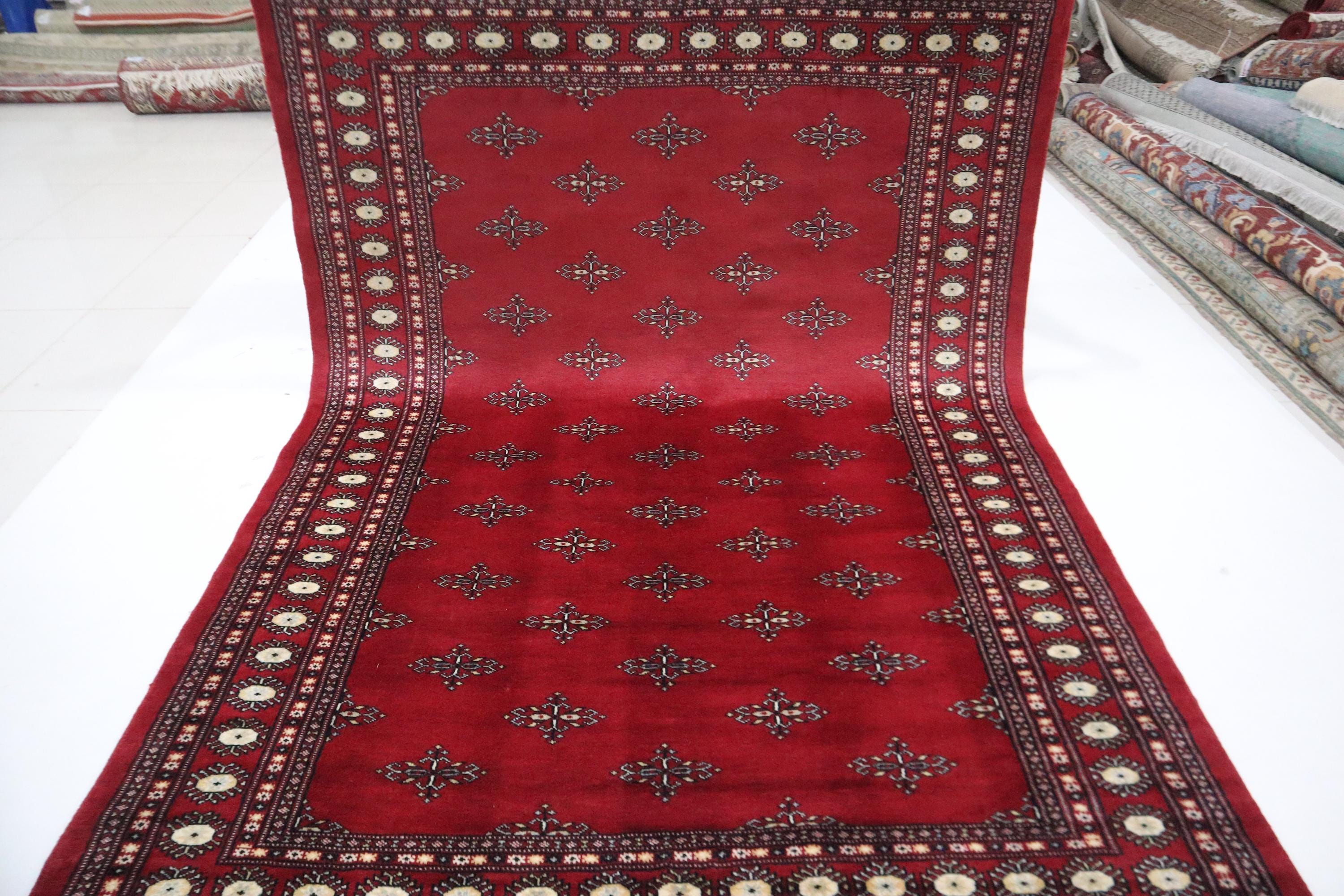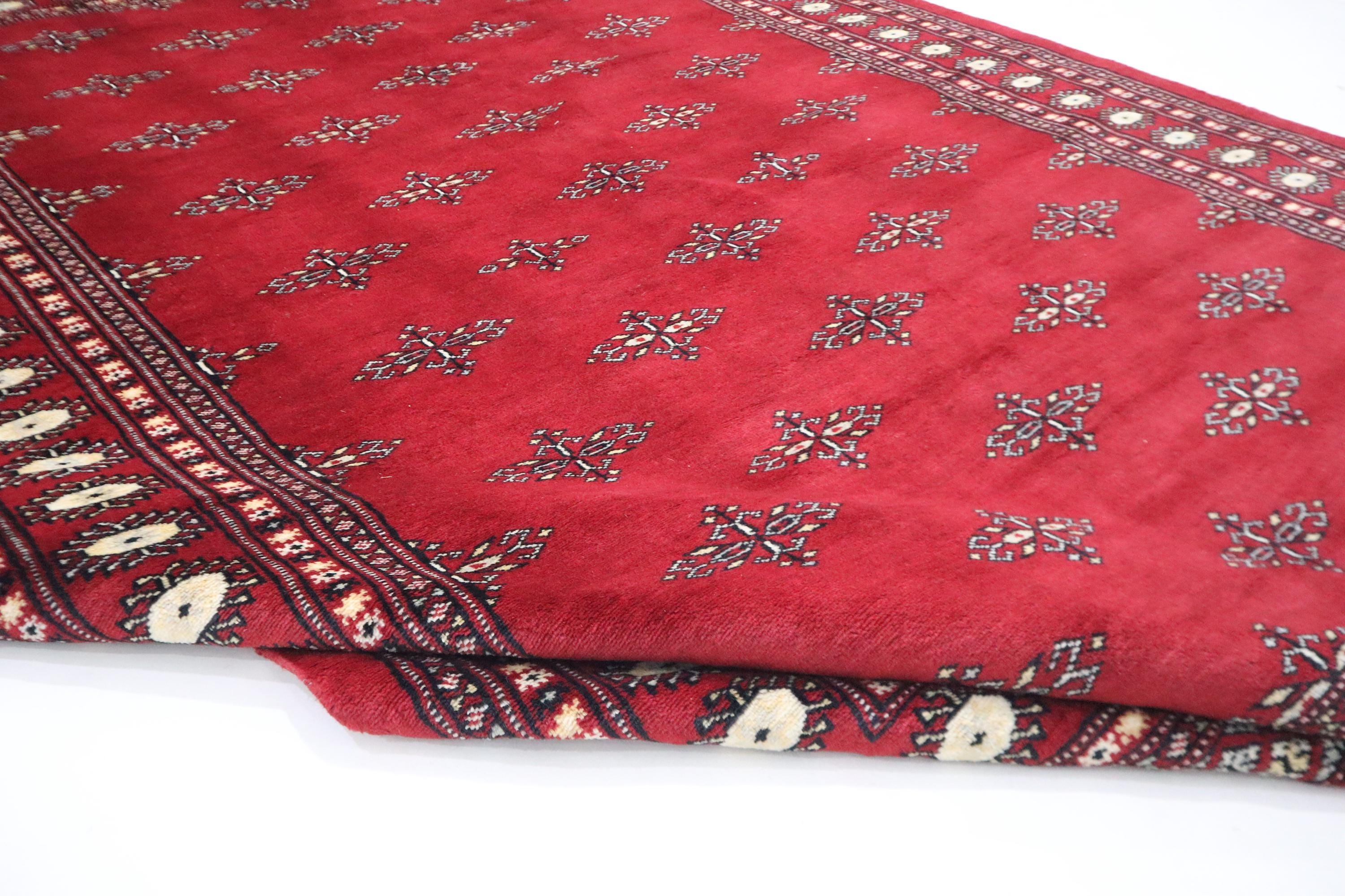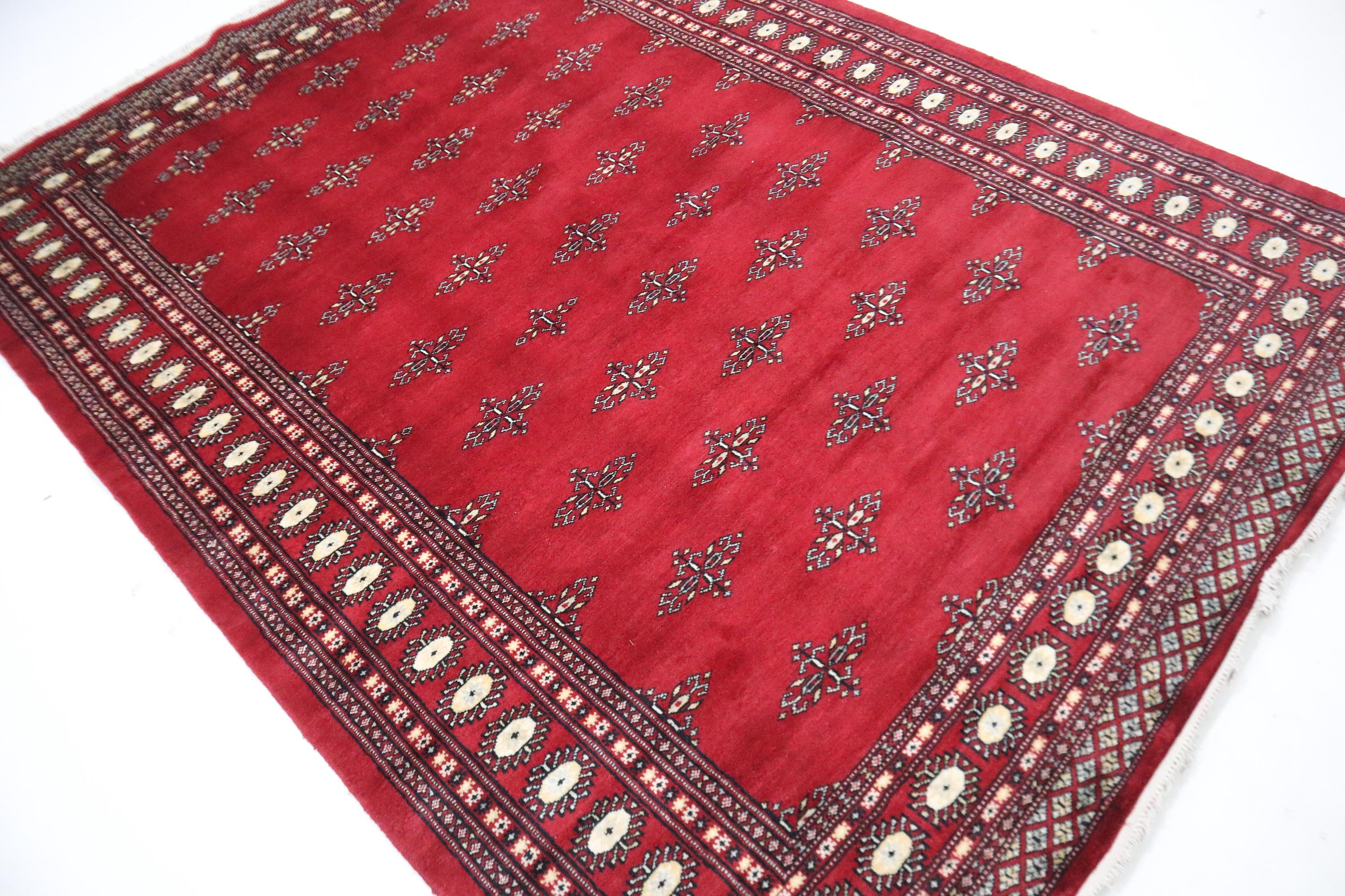 6x9 Ft Red Mori Bokhara Area Rug, Hand Knotted Rug, Soft Wool Rug, Geometric Motif Rugs, Tribal Rug, Bedroom Rug, Living & Dining Room Rug