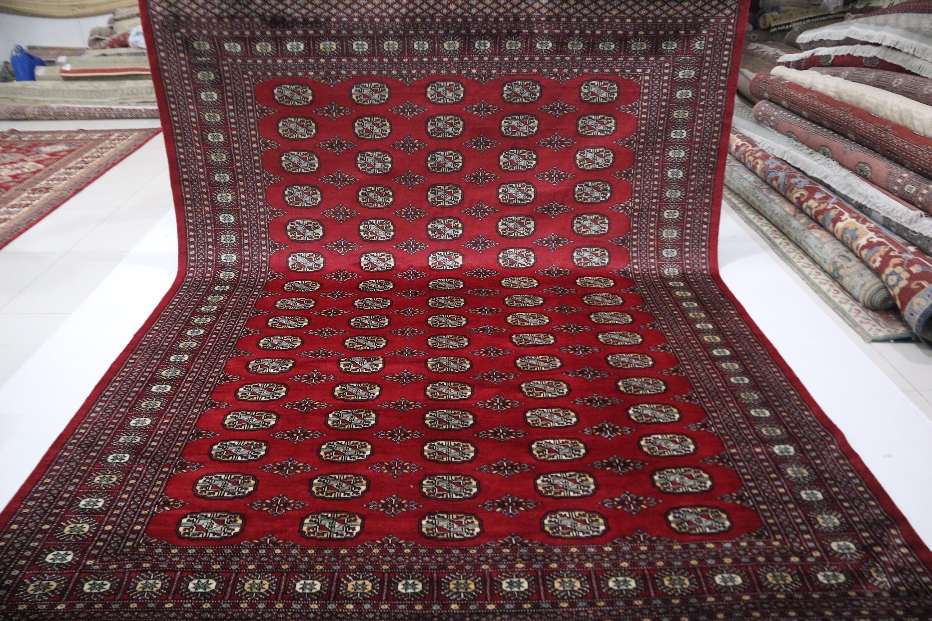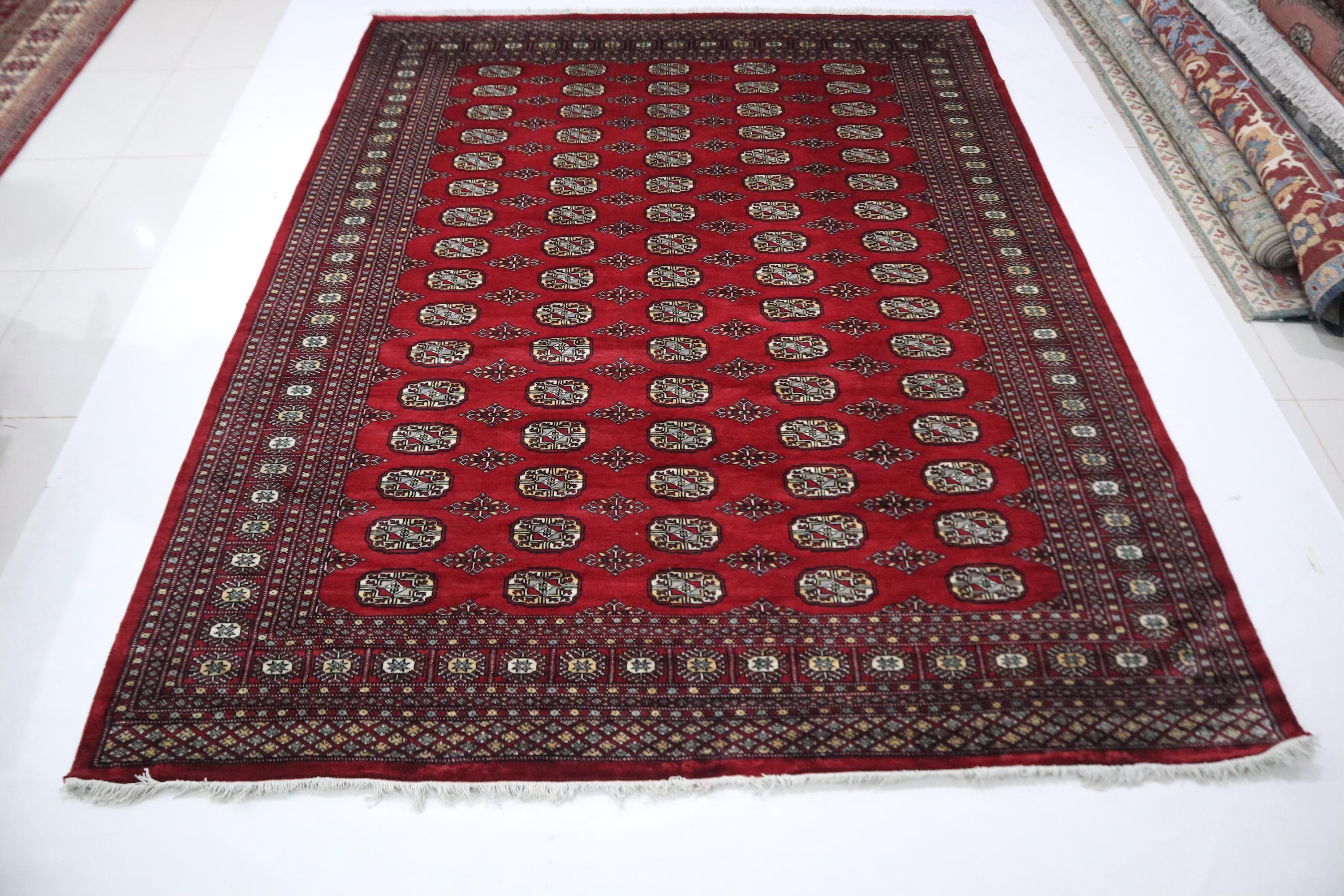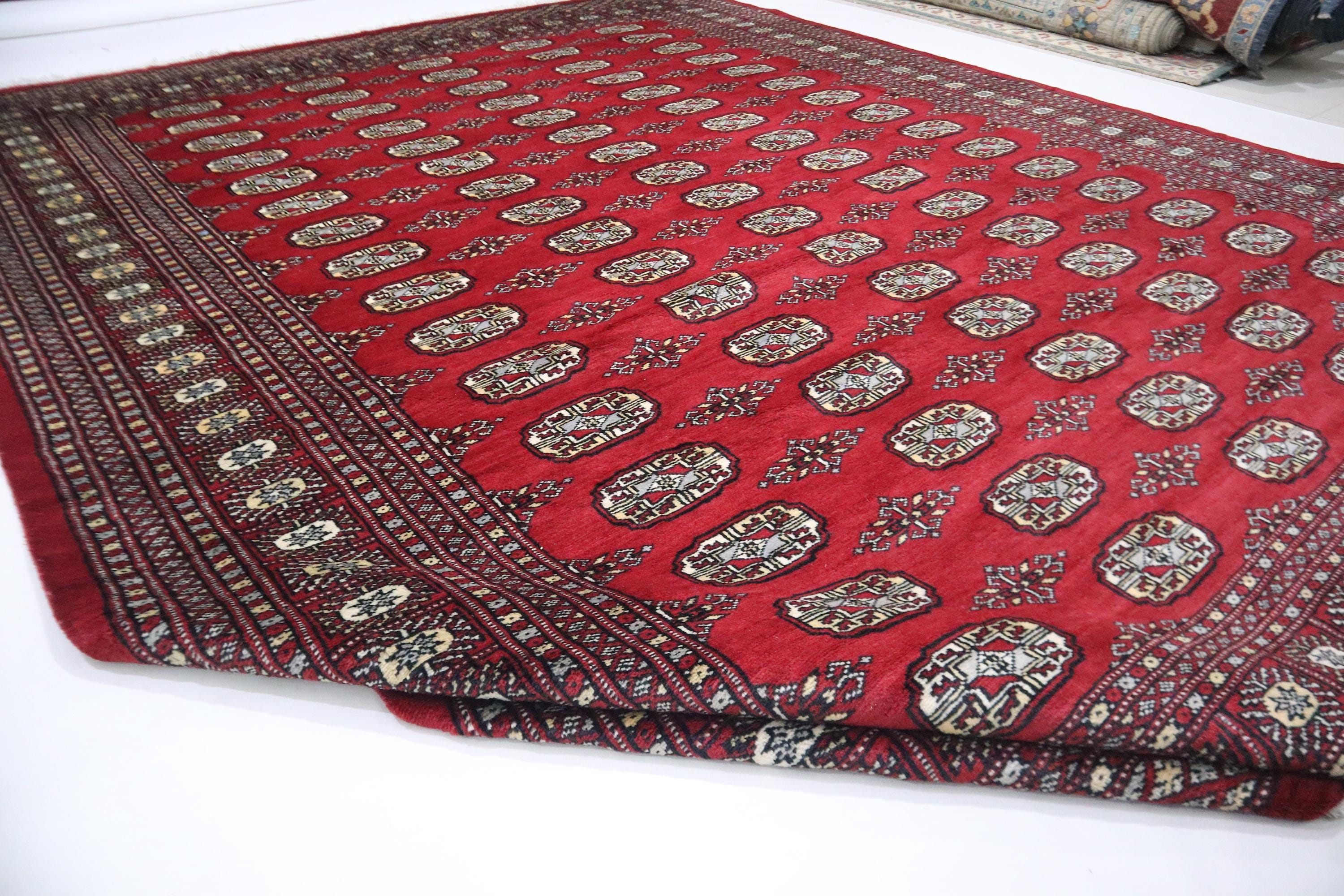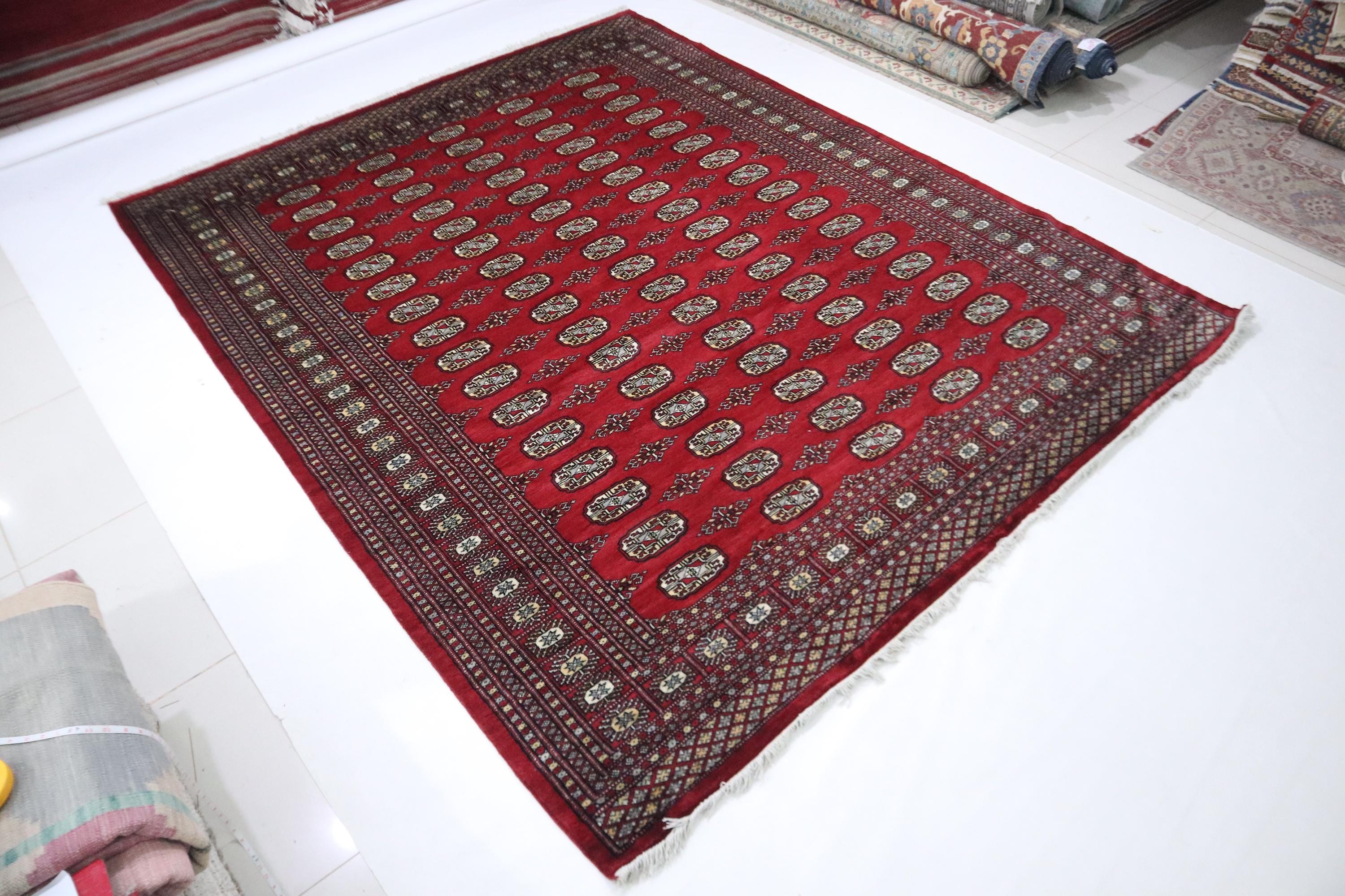 8x10 Ft Mori Bokhara Area Rug, Red Rug, Hand Knotted Rug, Soft Wool Rug, Tribal Rug, Gul Motif Rug, Geometric Rug, Bedroom Rug, Office Rug