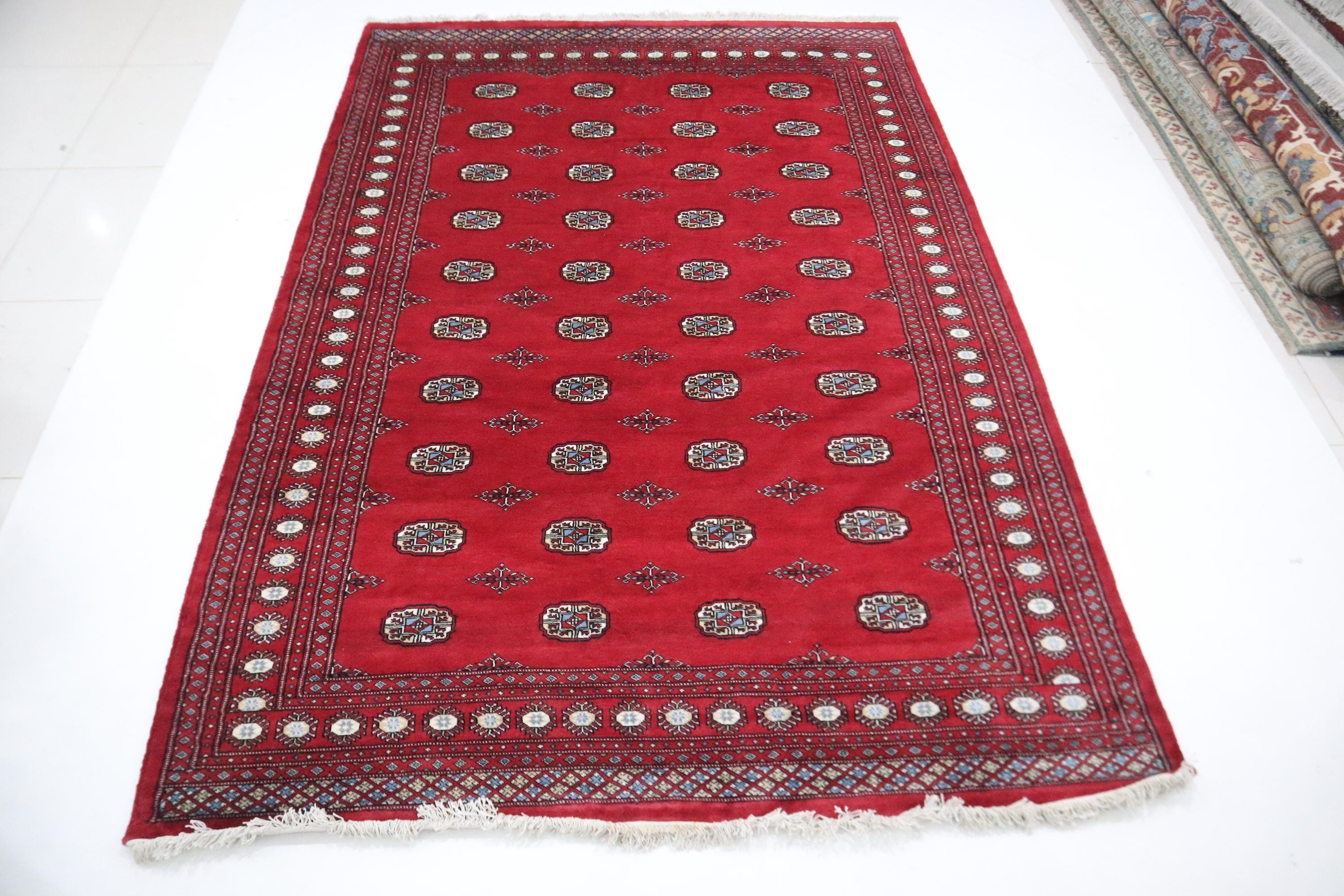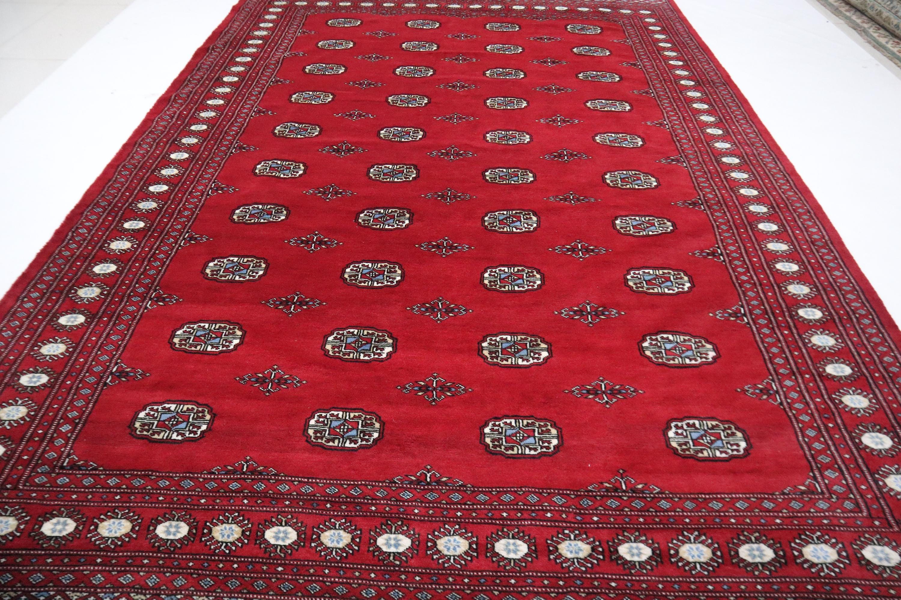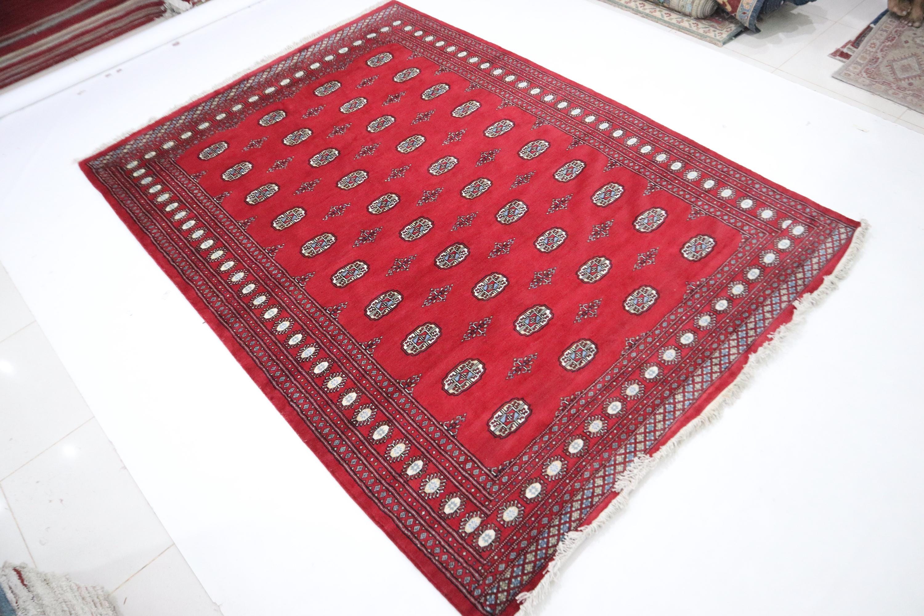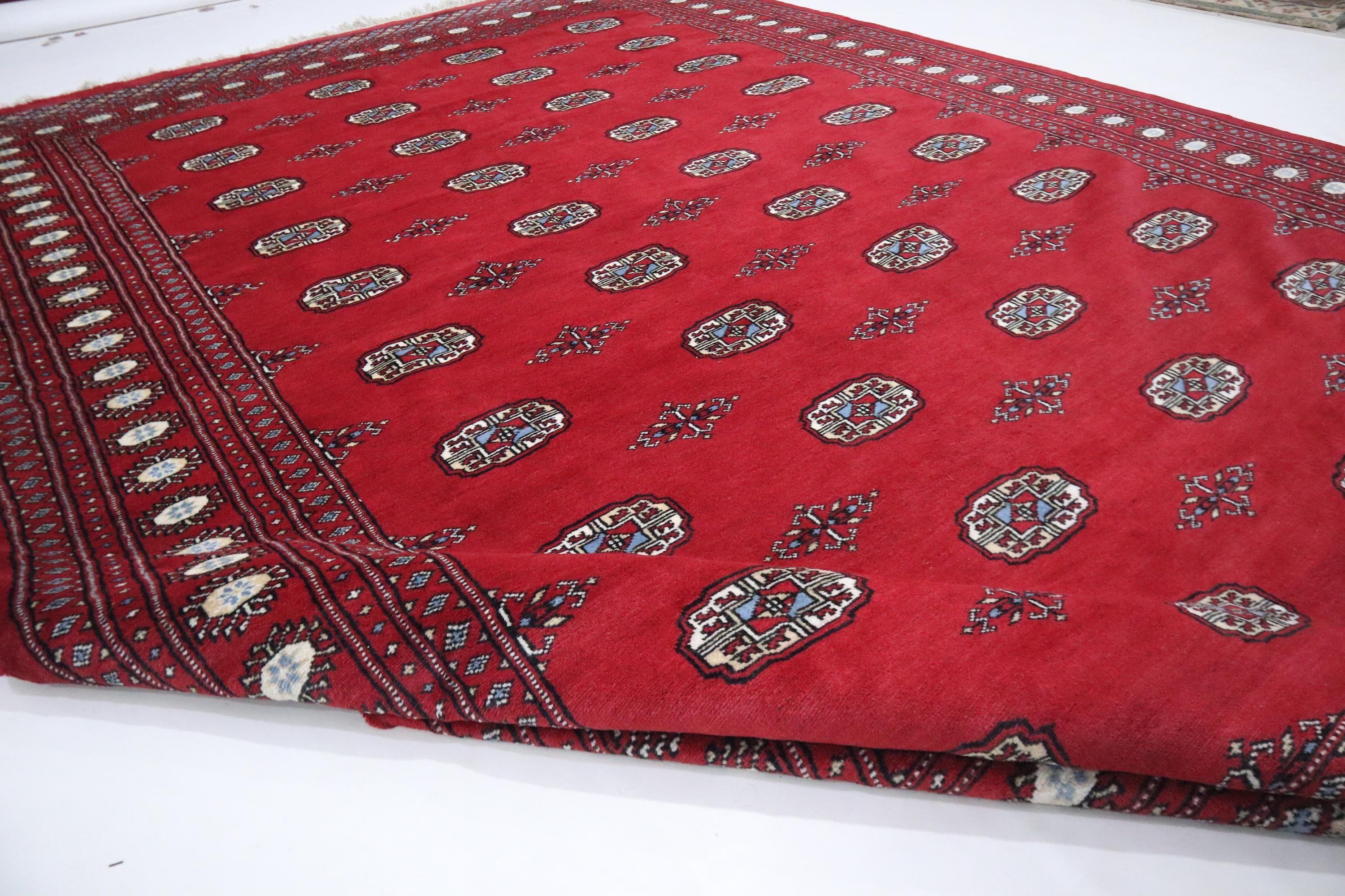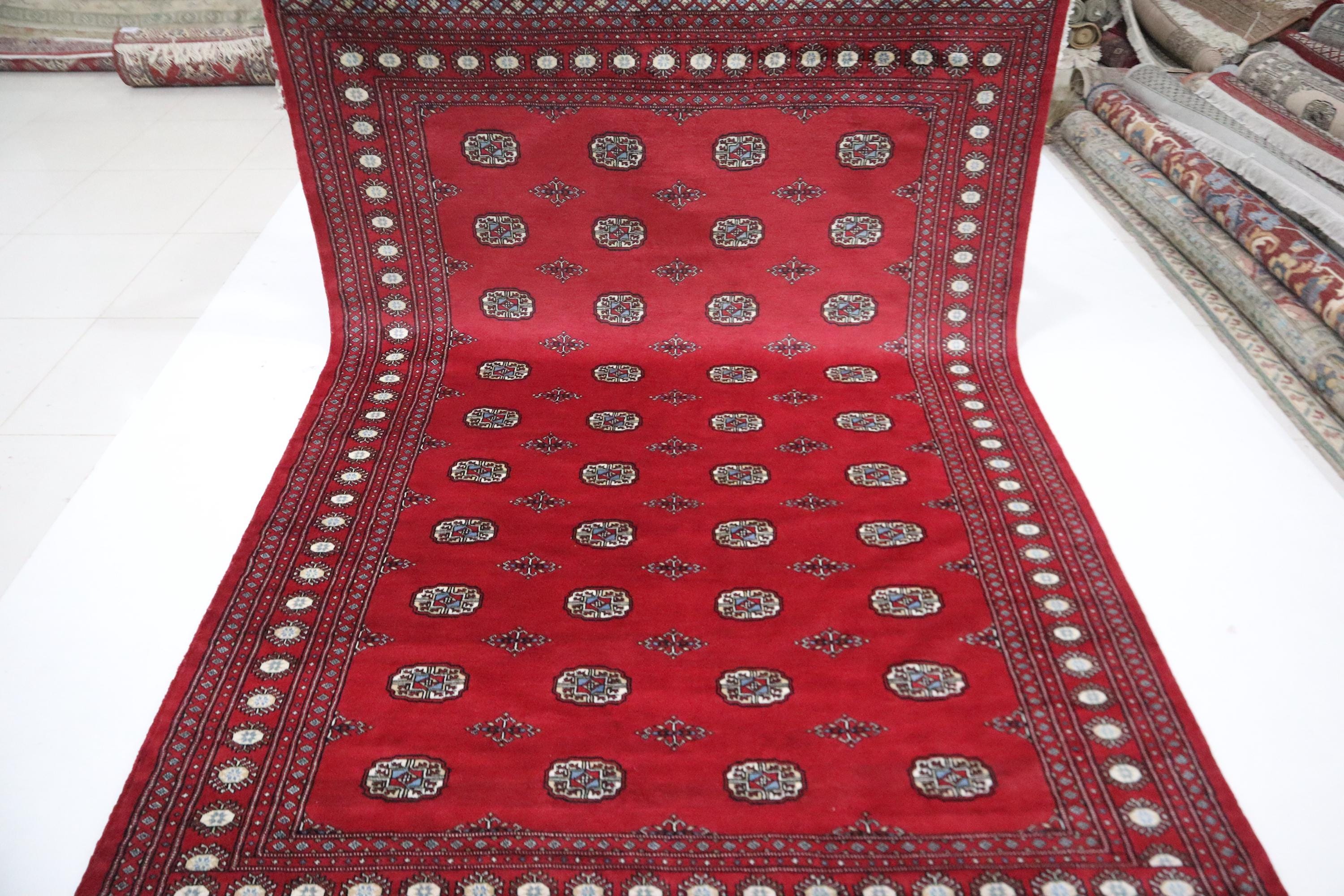 Red 7x10 Ft Mori Bokhara Area Rug, Hand Knotted Soft Wool Rug, Geometric Rugs, Tribal Rugs, Oriental Rug, Living & Dining Room Rug, Dorm Rug