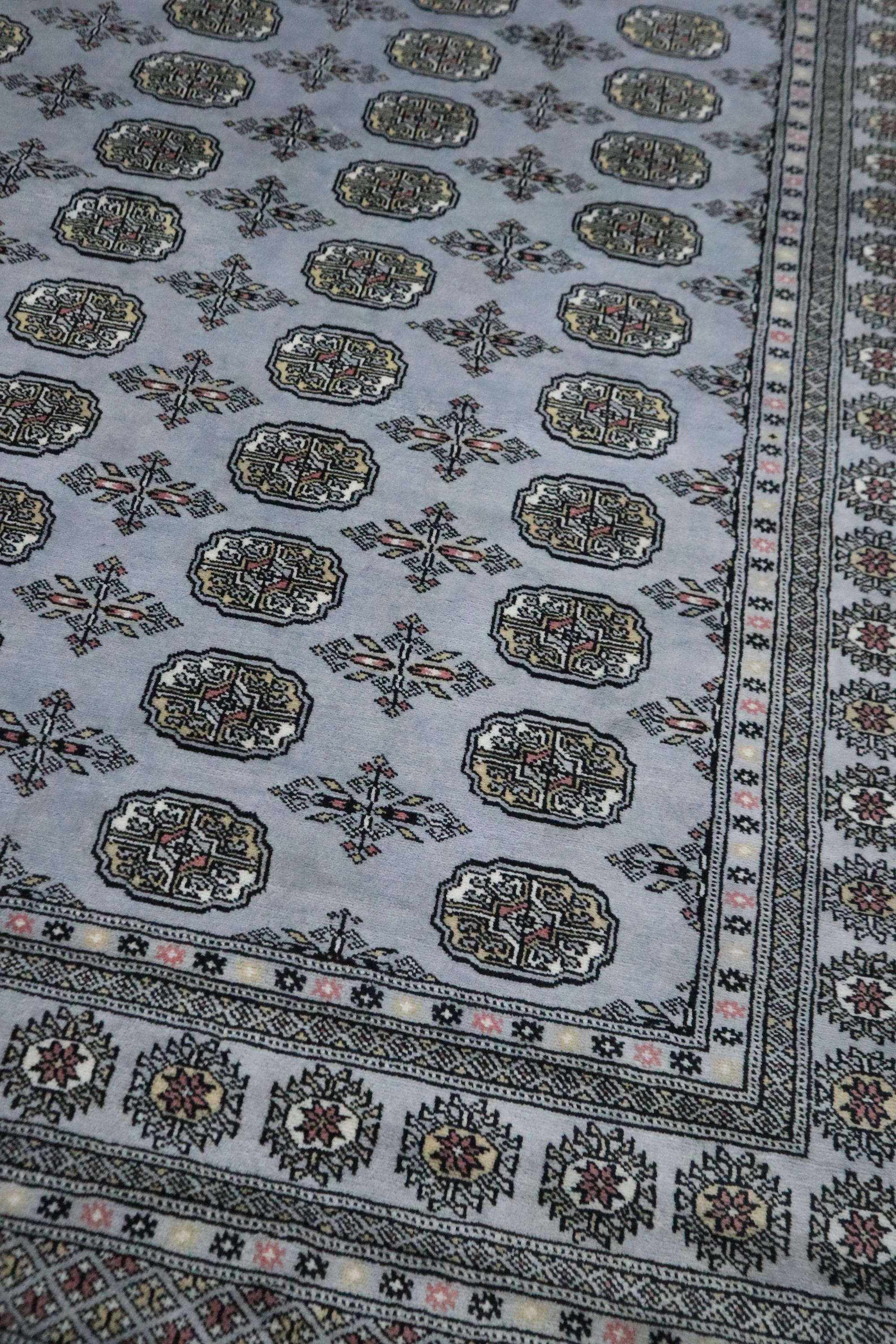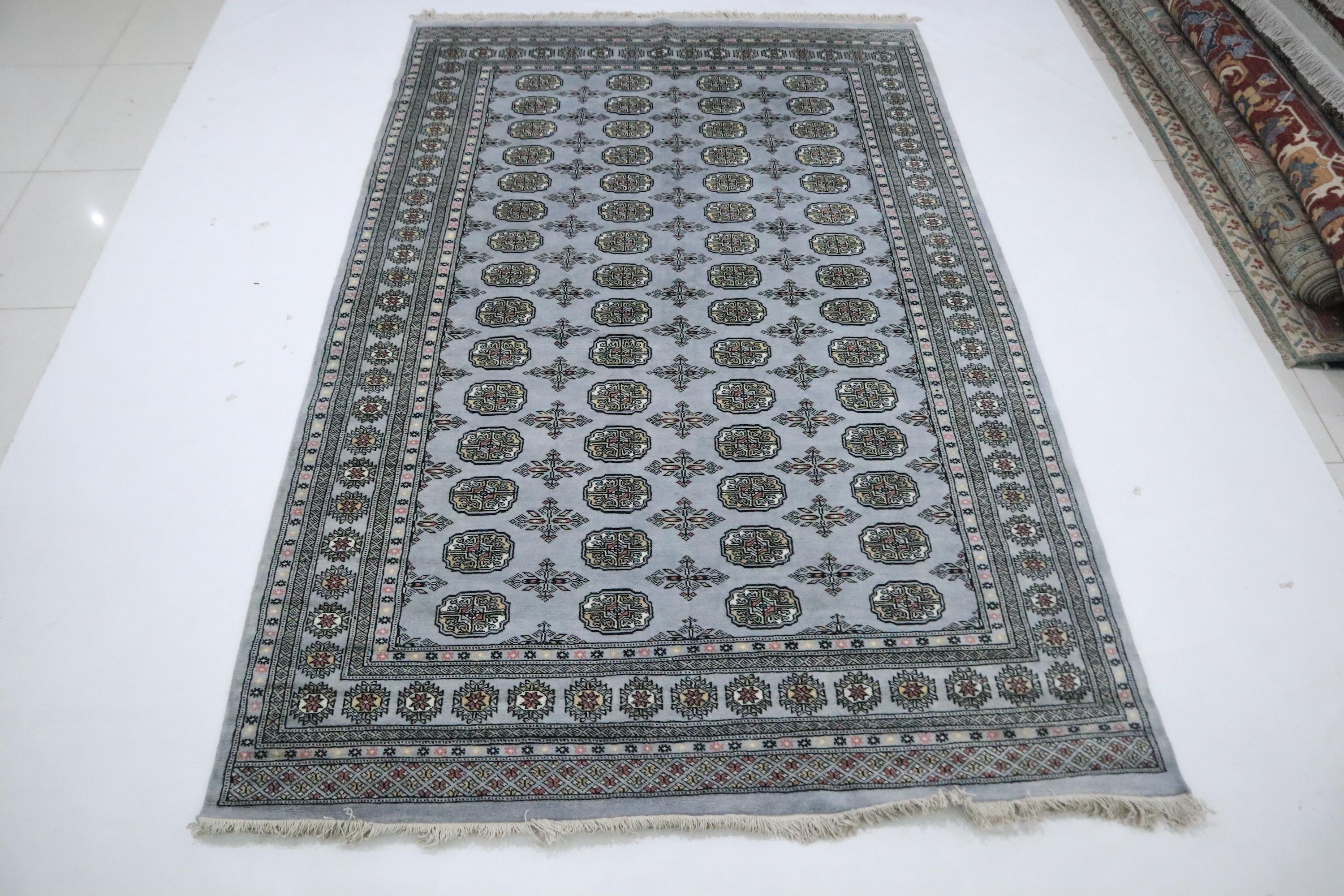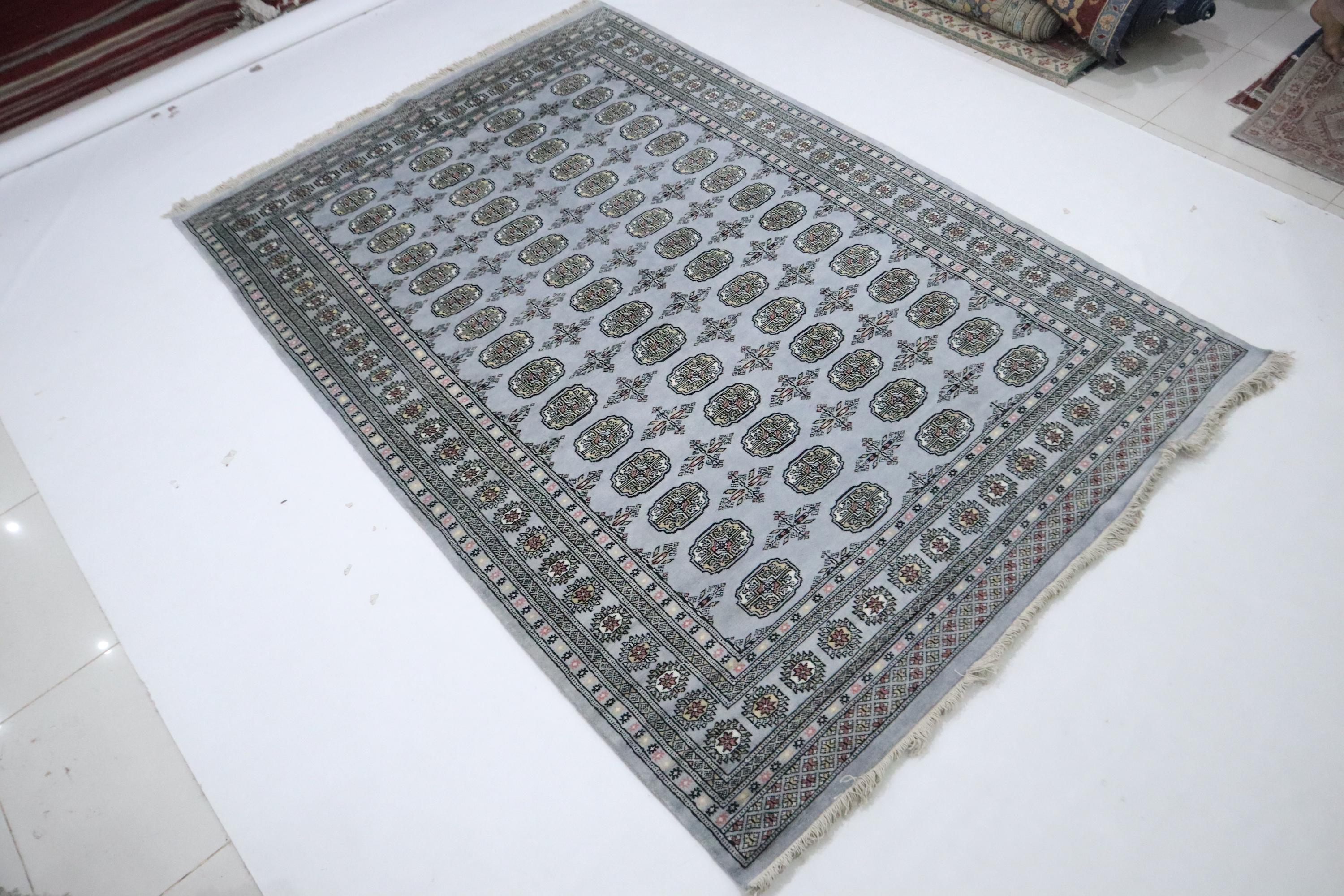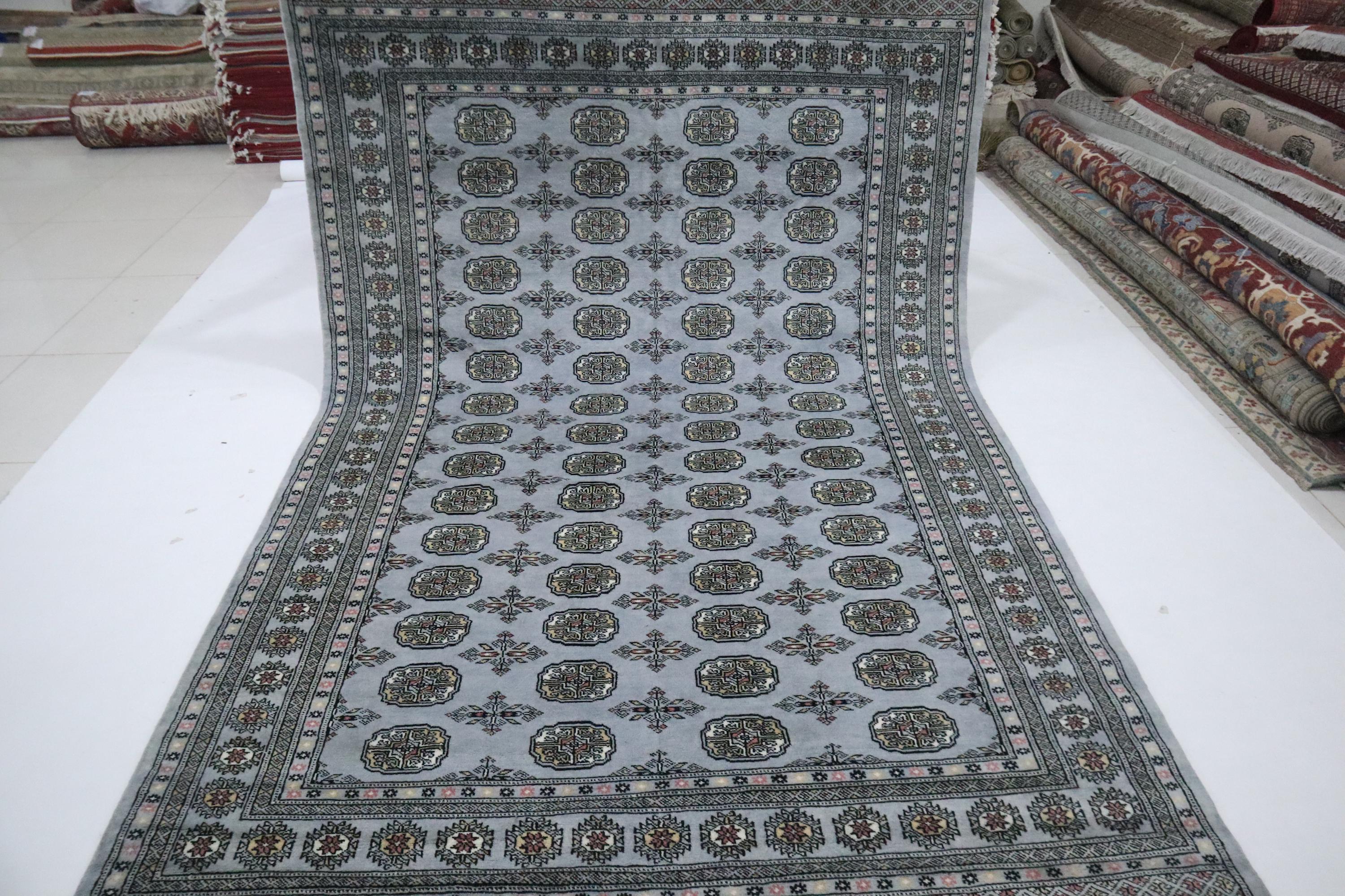Gray 6x9 Ft Mori Bokhara Area Rug, Hand Knotted Soft Wool Rug, Tribal Rug, Geometric Style Rug, Gul Motif Rug, Bedroom Rug, Living Room Rug