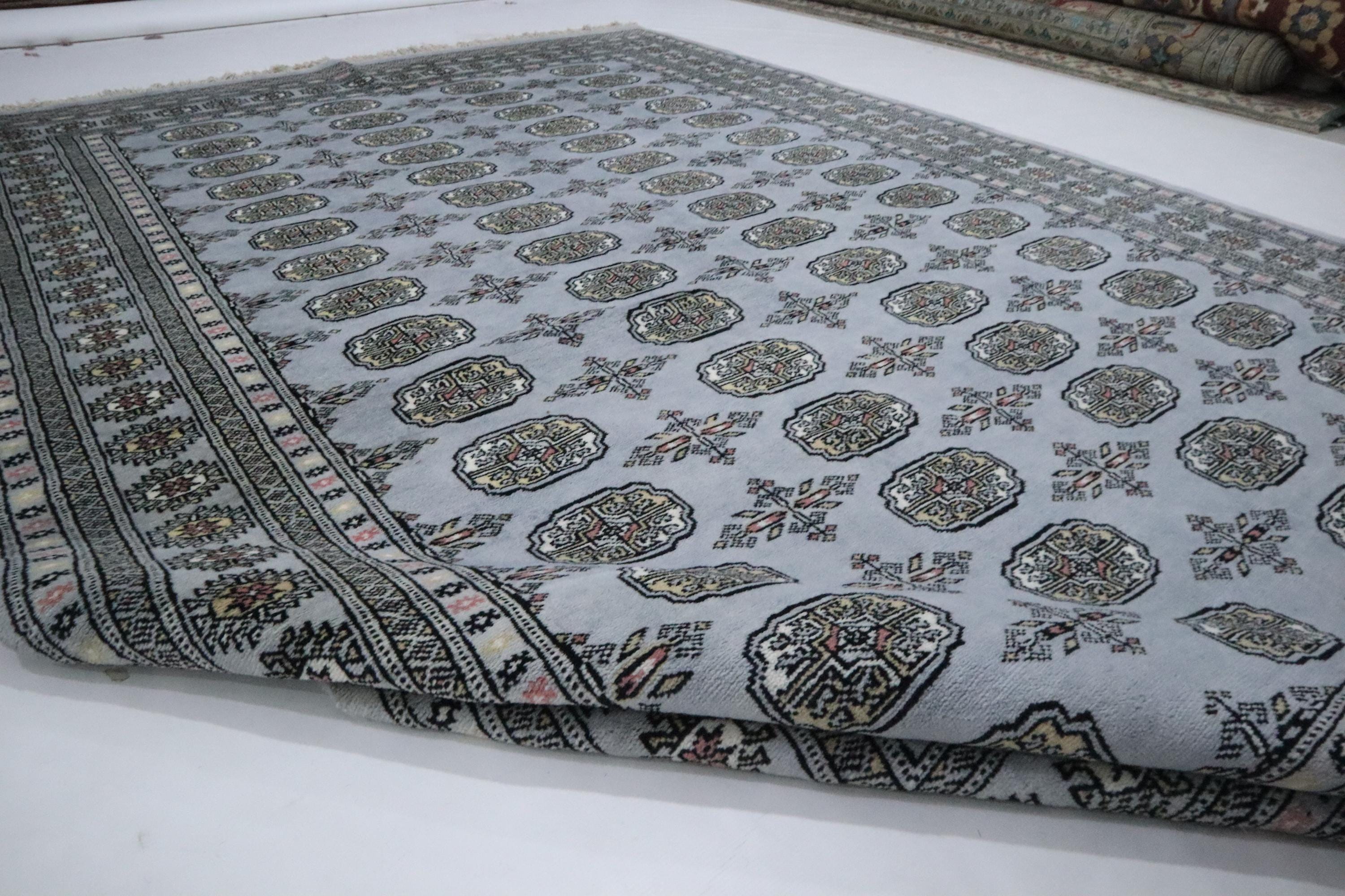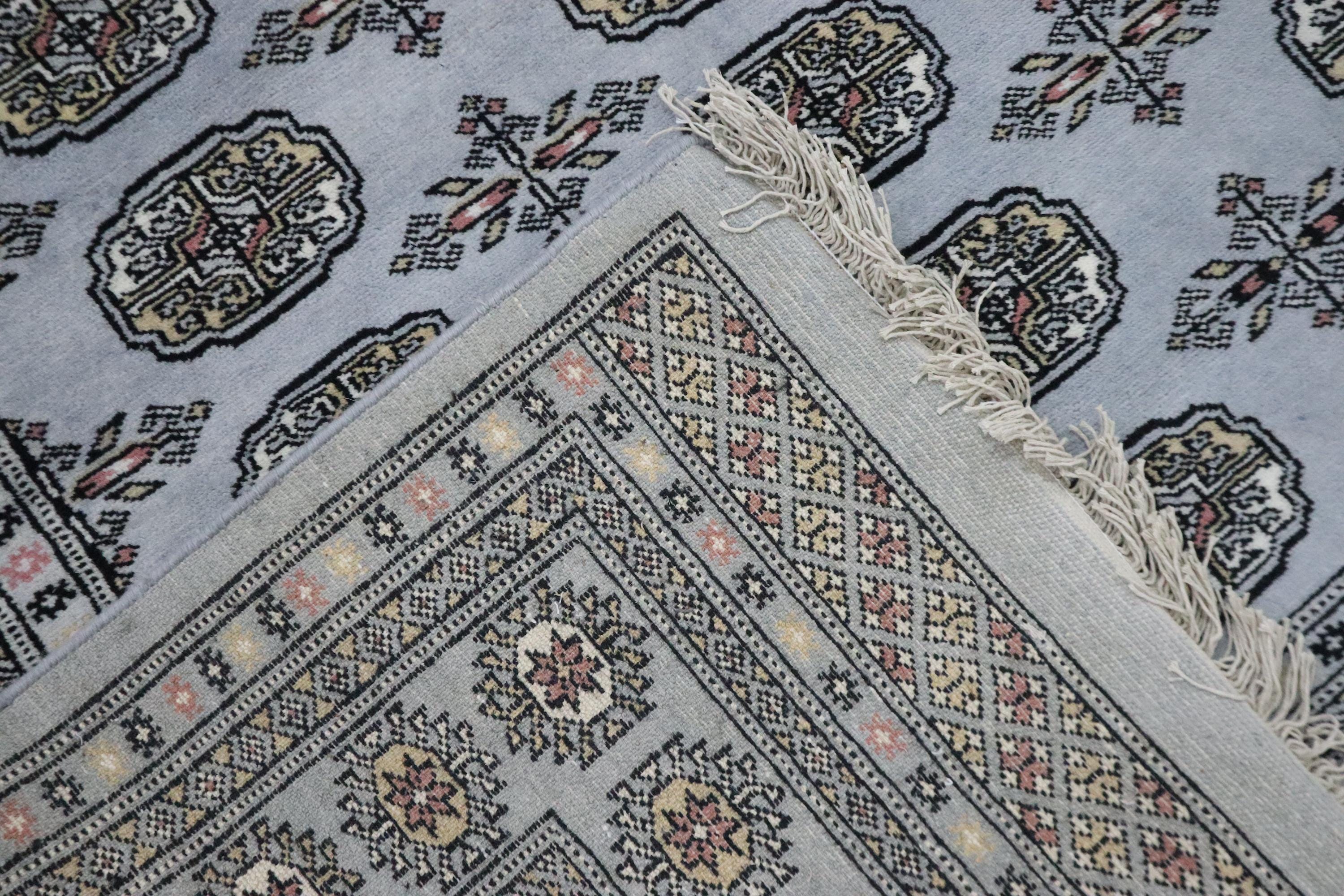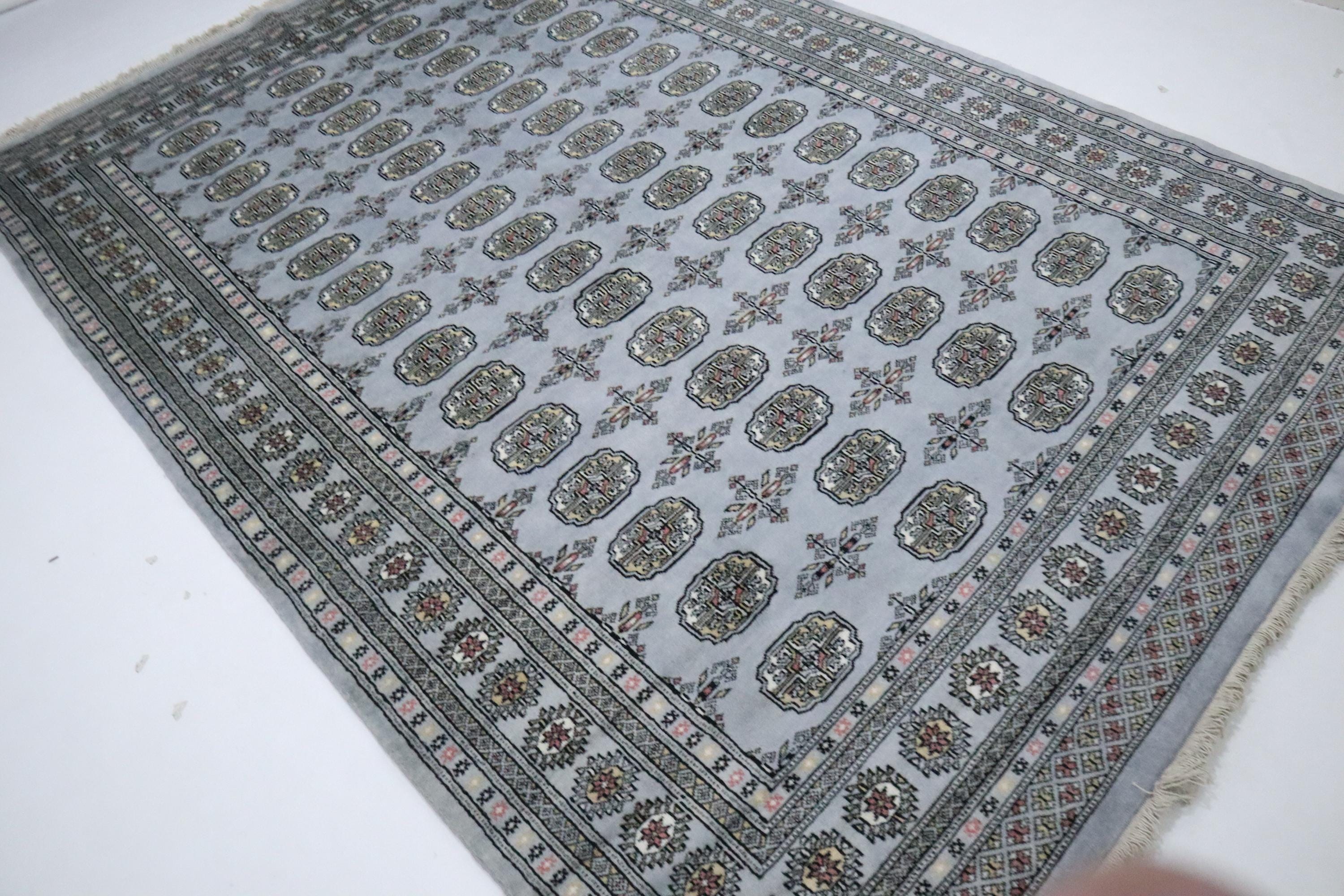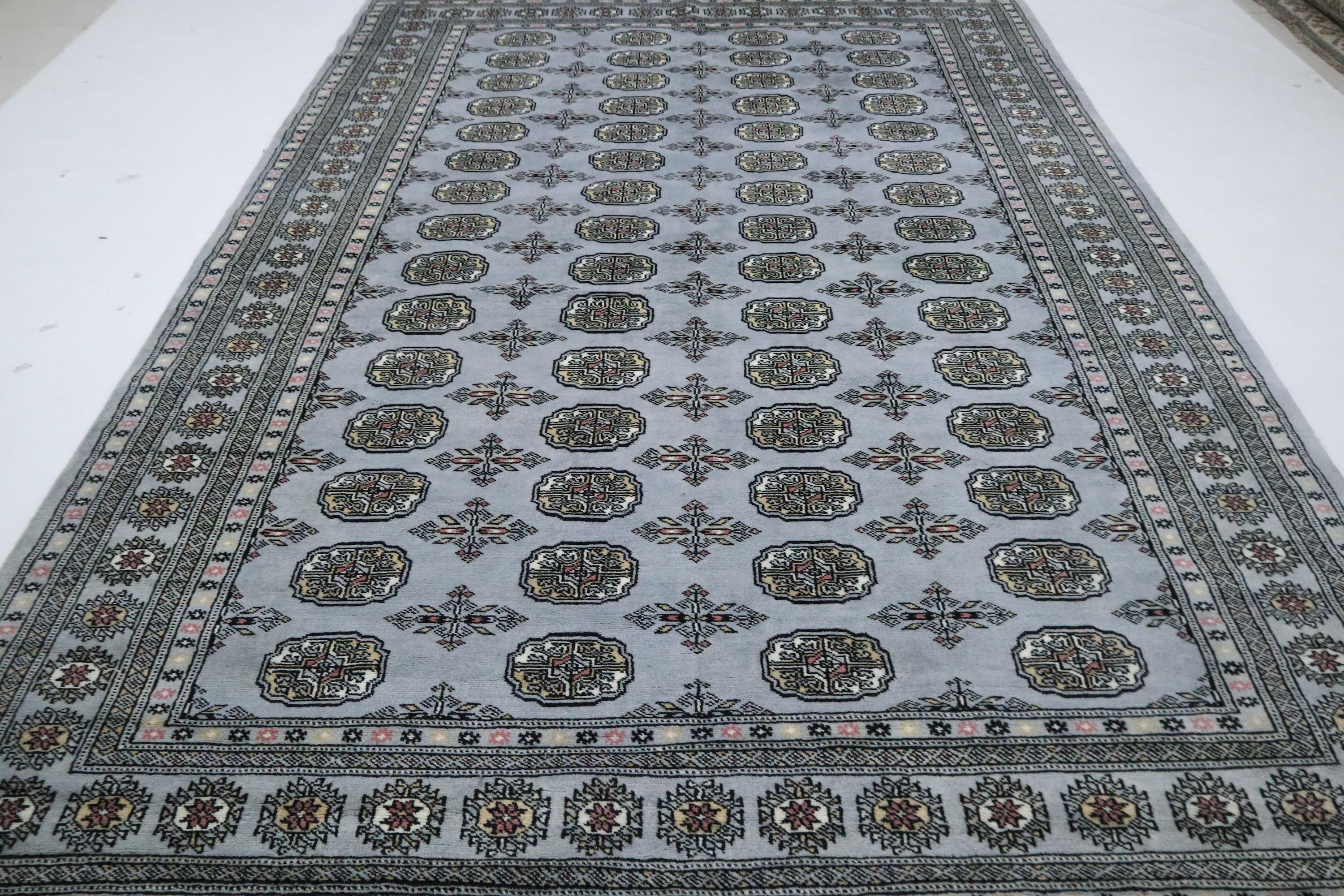 Gray 6x9 Ft Mori Bokhara Area Rug, Hand Knotted Soft Wool Rug, Tribal Rug, Geometric Style Rug, Gul Motif Rug, Bedroom Rug, Living Room Rug