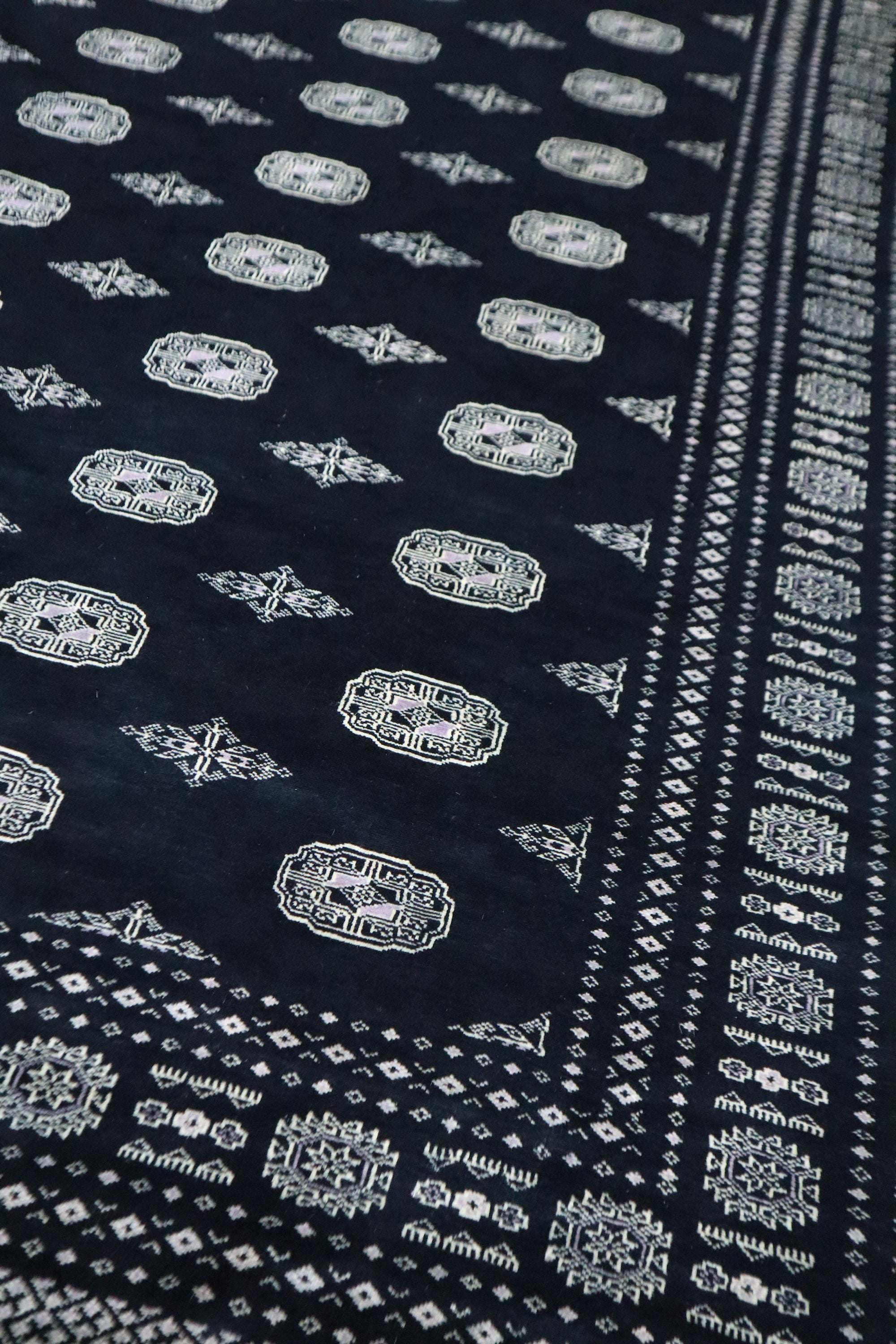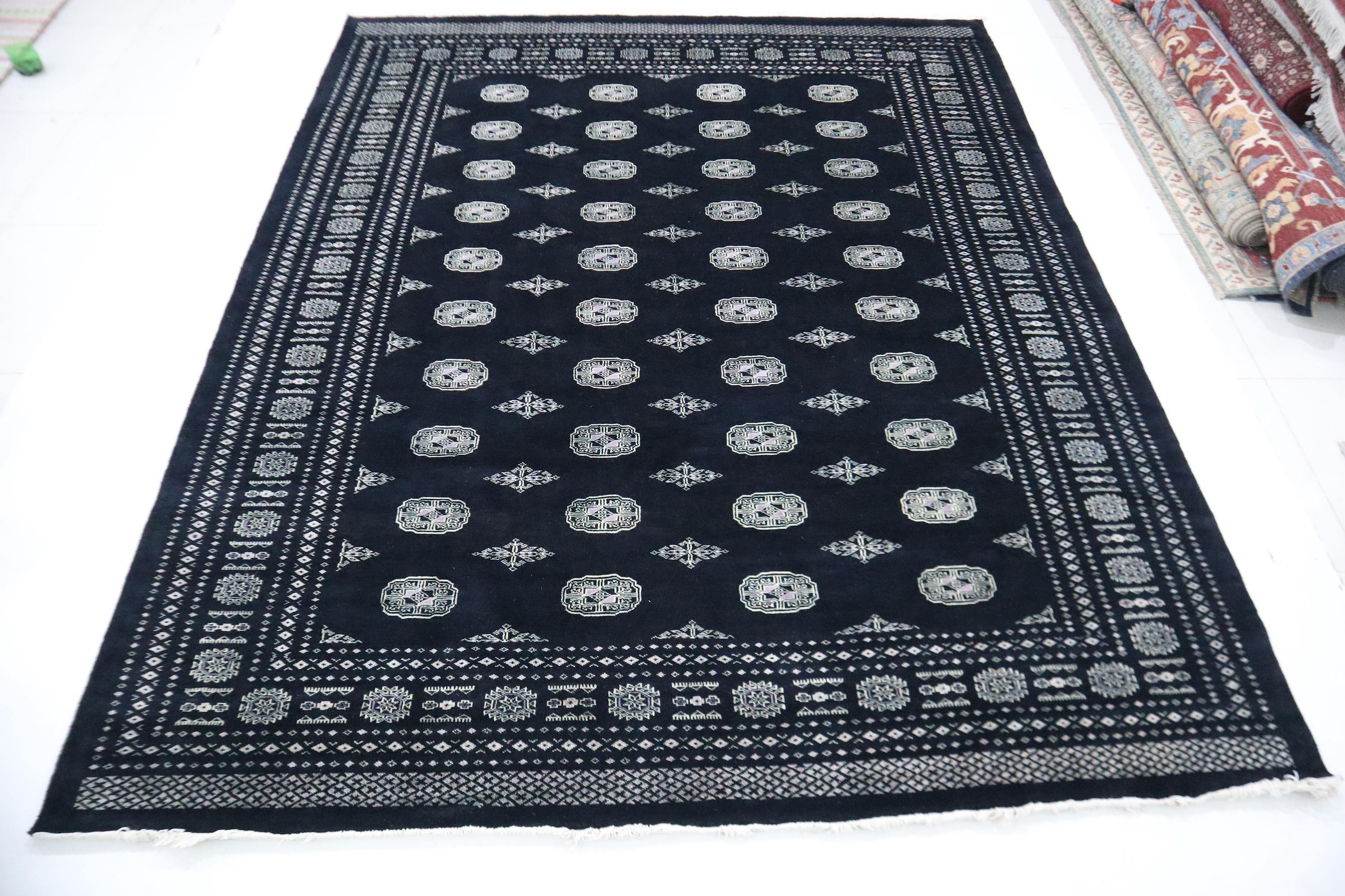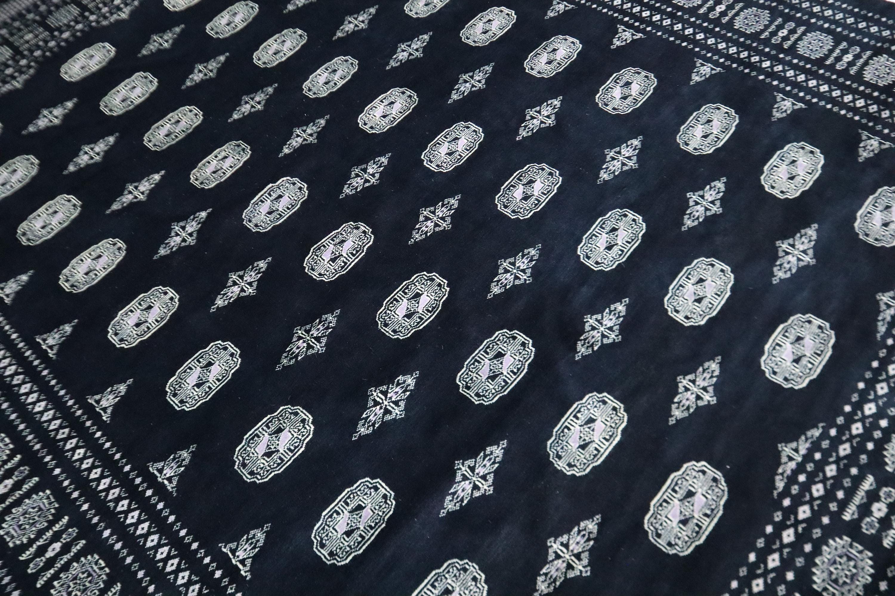 8x10 Ft Mori Bokhara Area Rug, Black Rug, Tribal Rugs, Hand Knotted Rug, Soft Wool Rug, Geometric Design Rug, Bedroom Rug, Living Room Rug