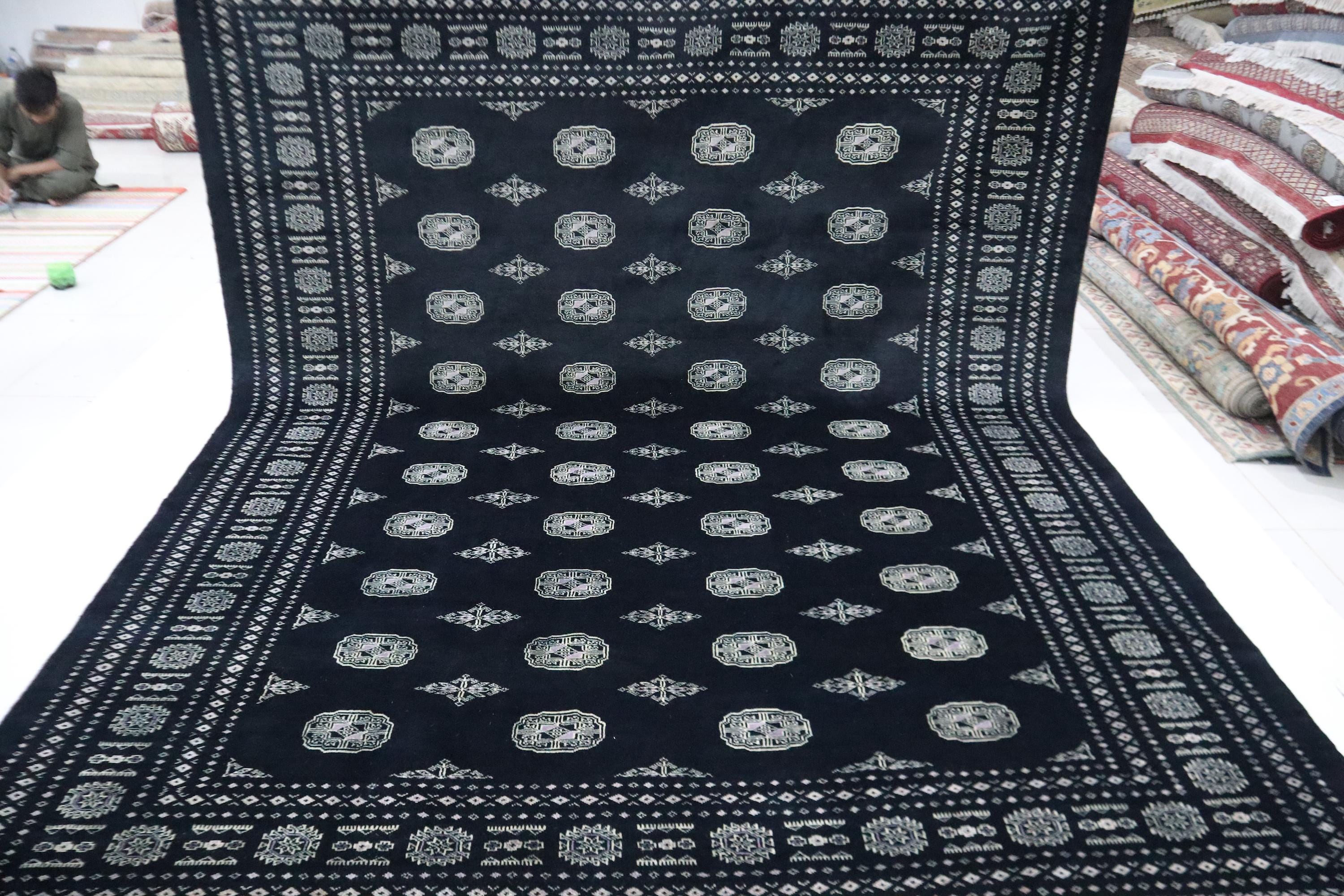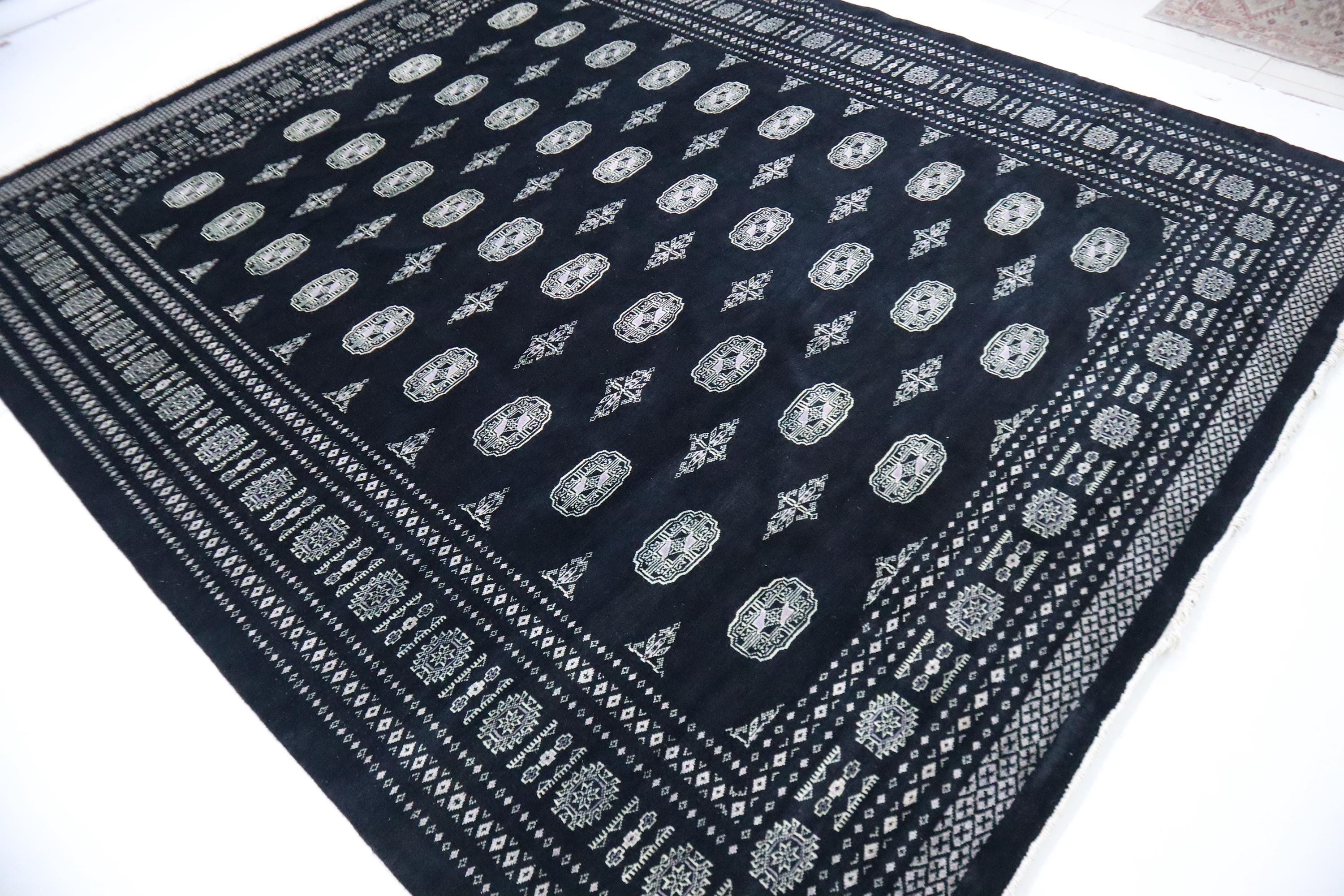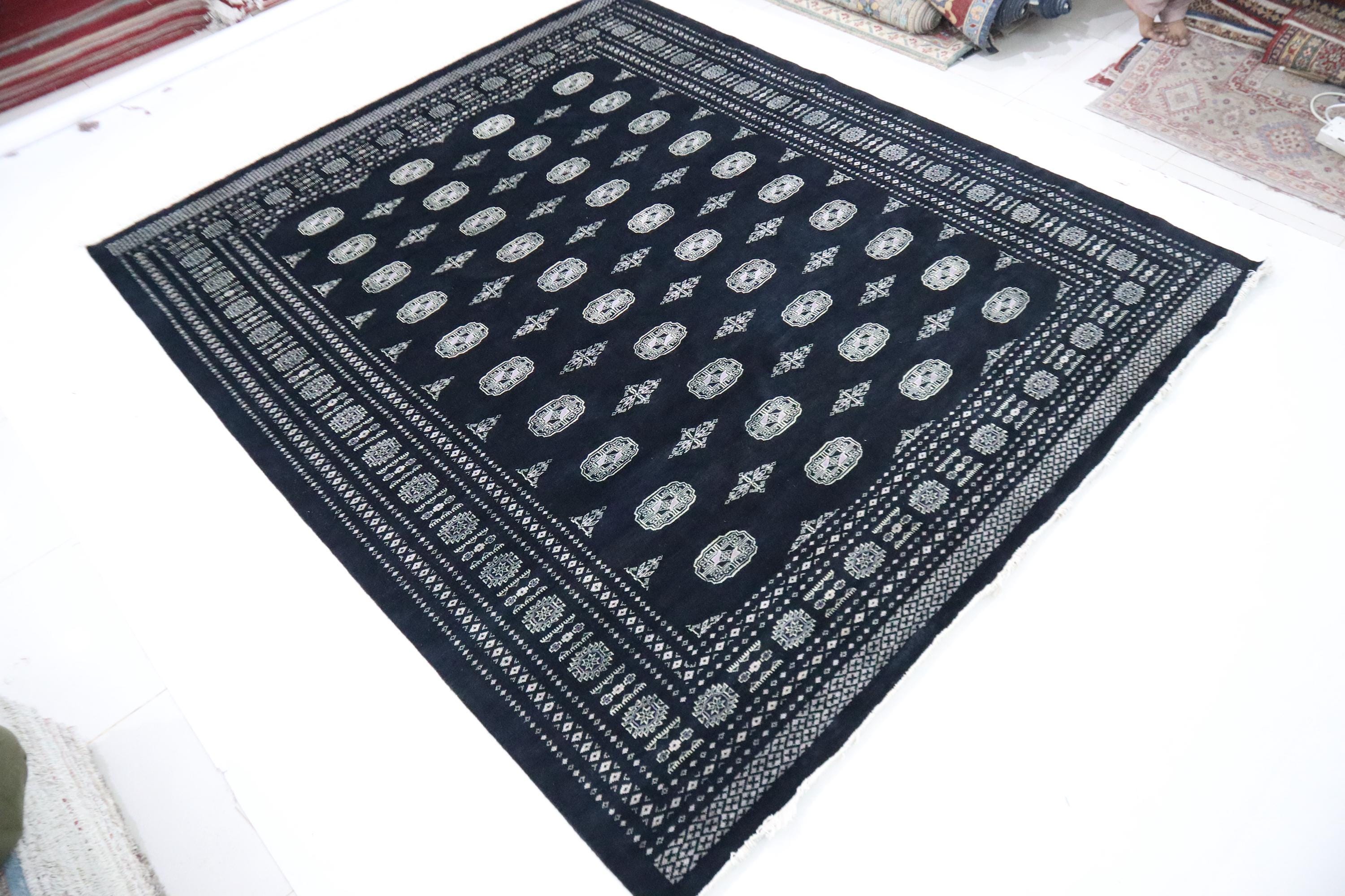 8x10 Ft Mori Bokhara Area Rug, Black Rug, Tribal Rugs, Hand Knotted Rug, Soft Wool Rug, Geometric Design Rug, Bedroom Rug, Living Room Rug