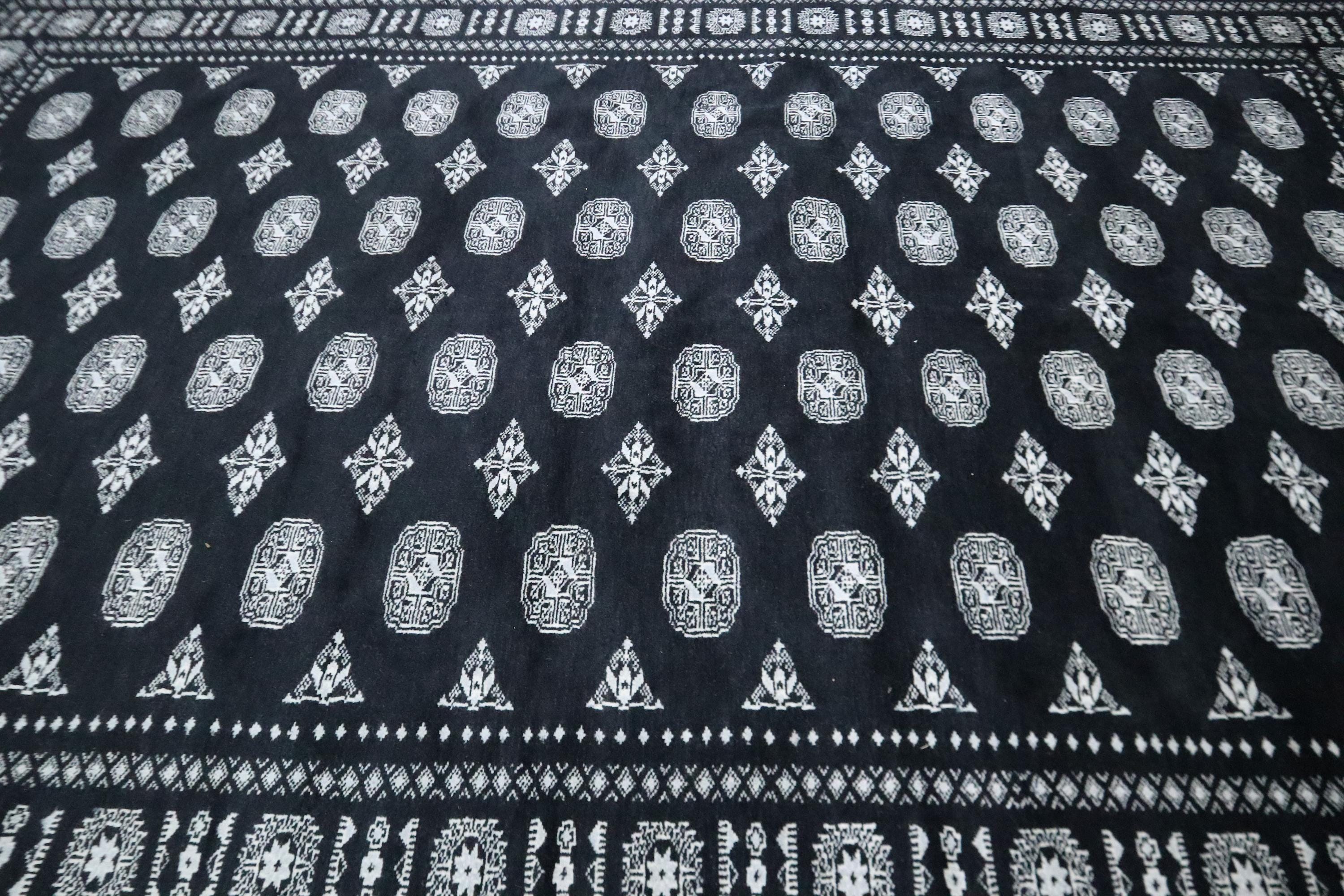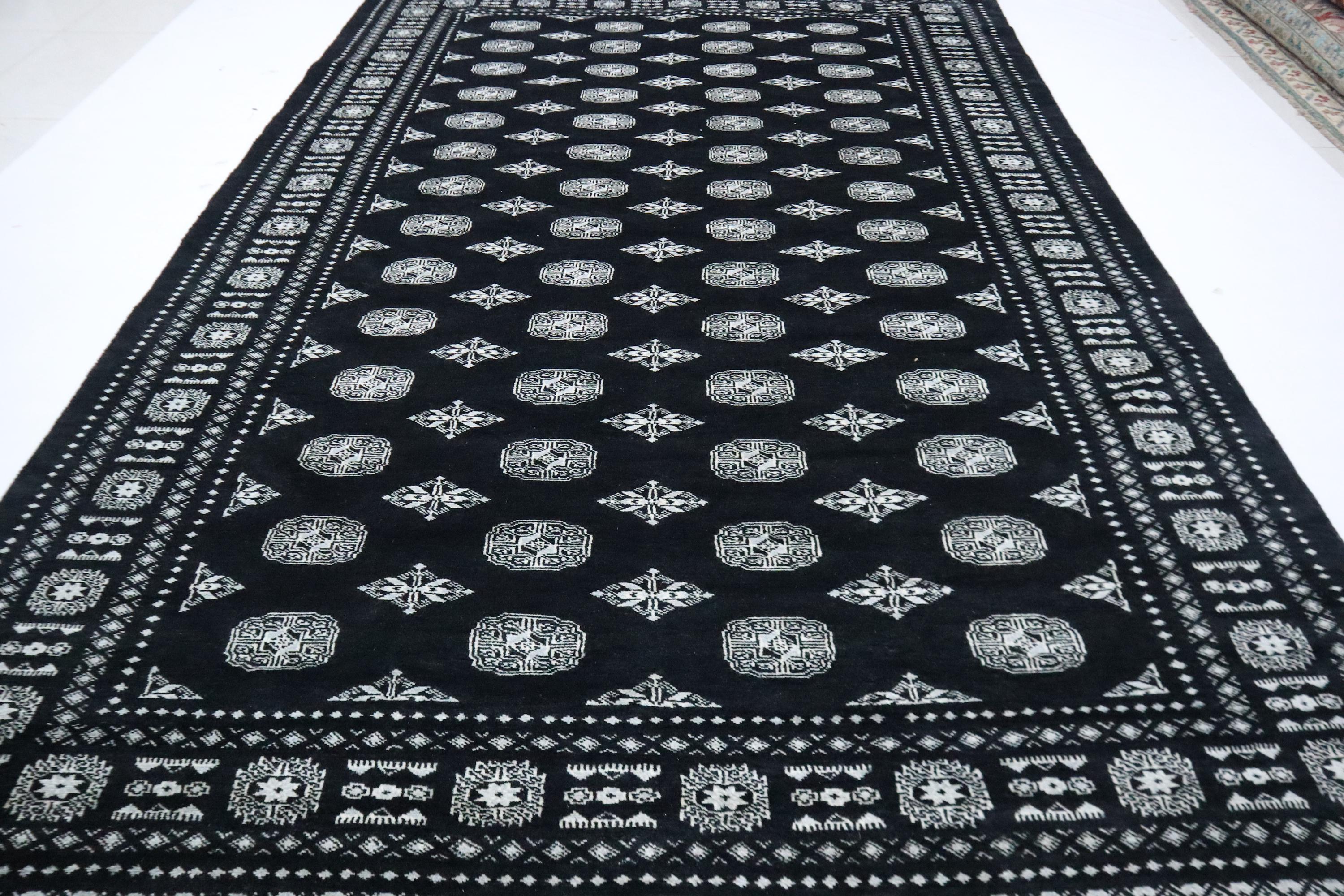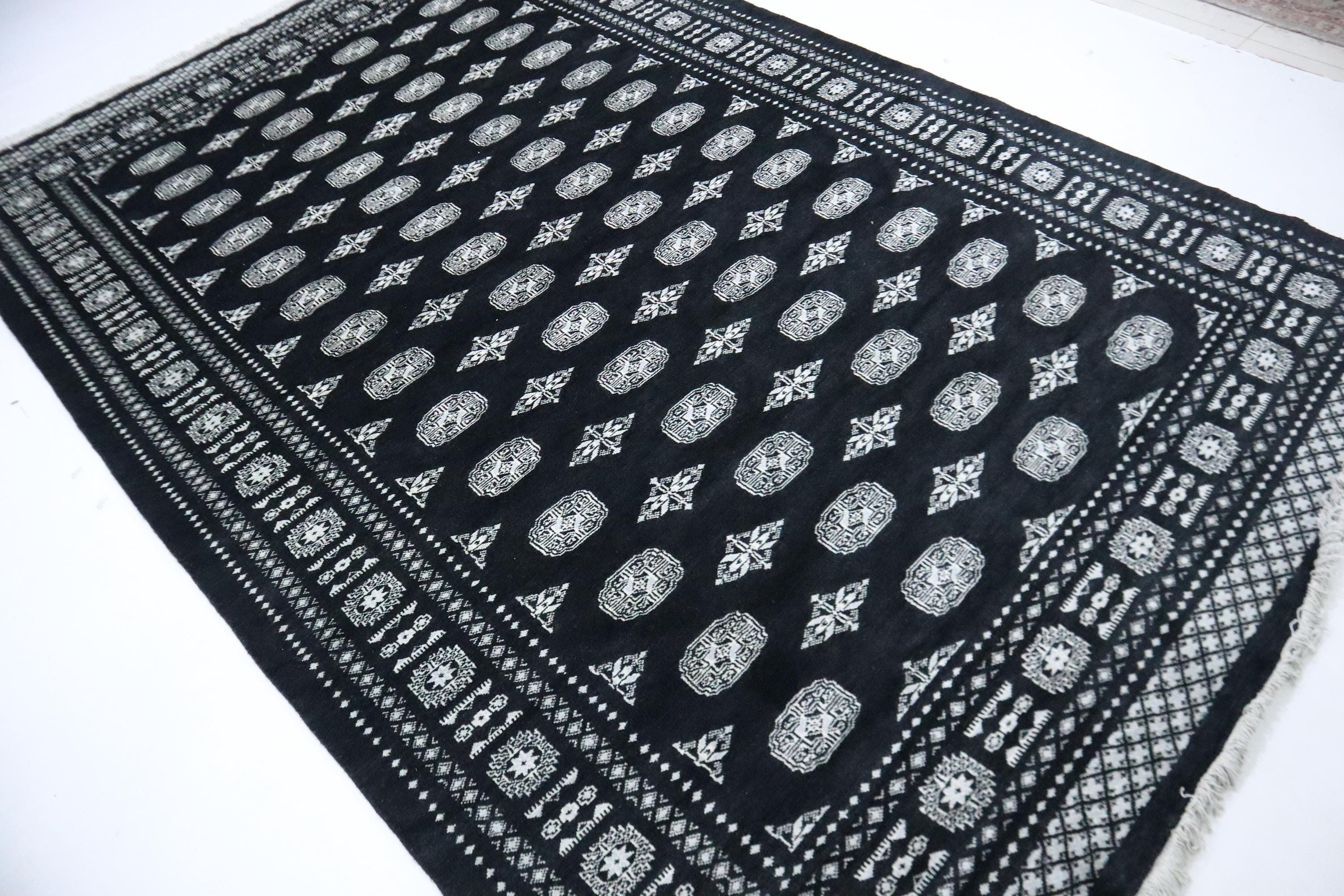 Black 7x10 Ft Mori Bokhara Area Rug, Hand Knotted Soft Wool Rug, Tribal Geometric Rug, Oriental Rug, Bedroom Rug, Living & Dining Room Rug