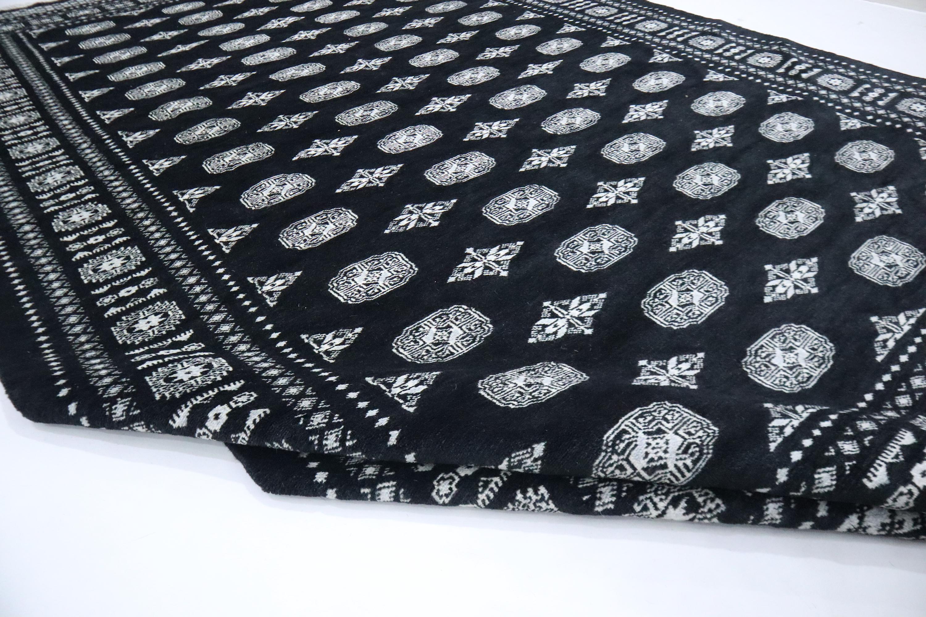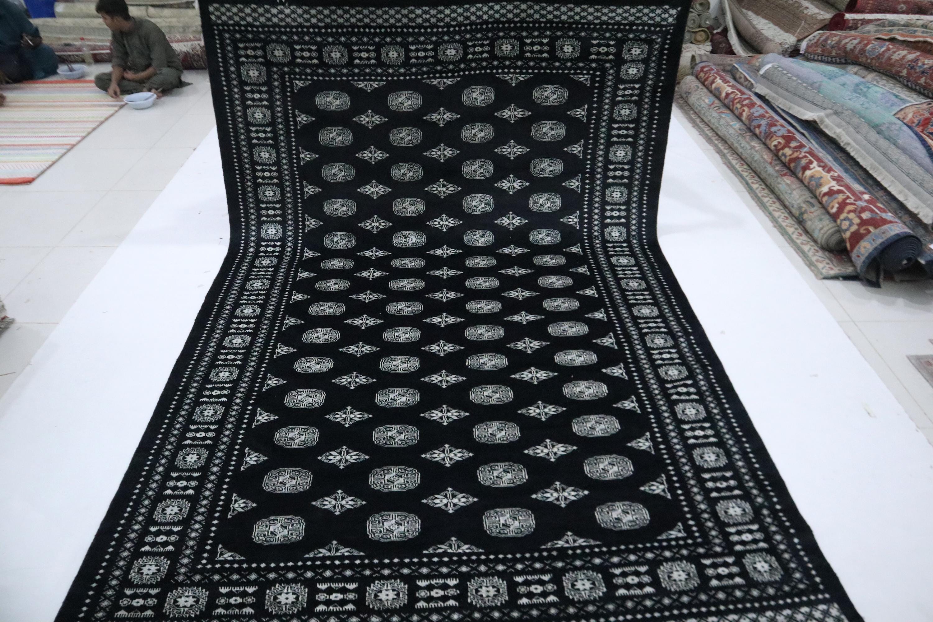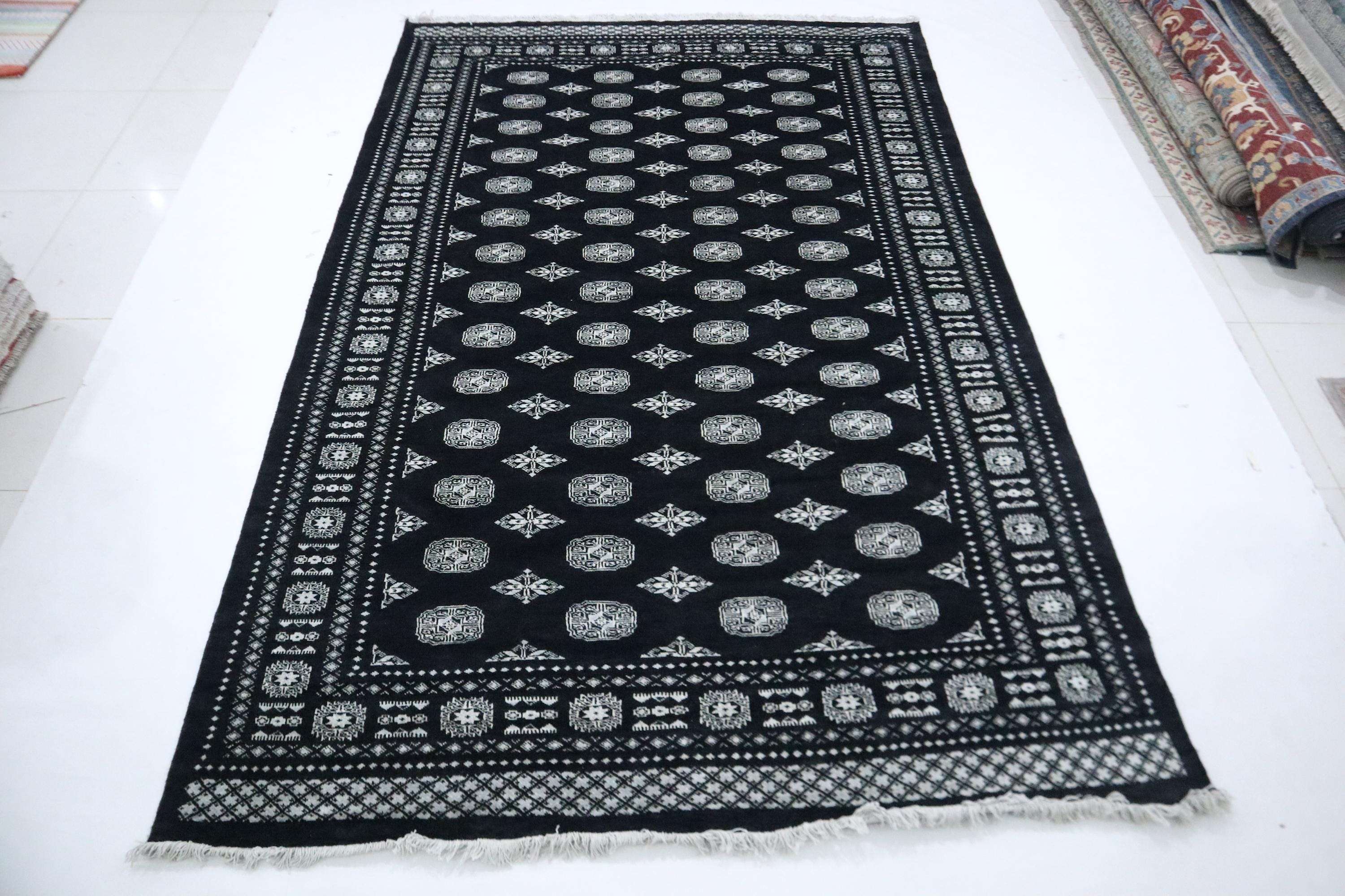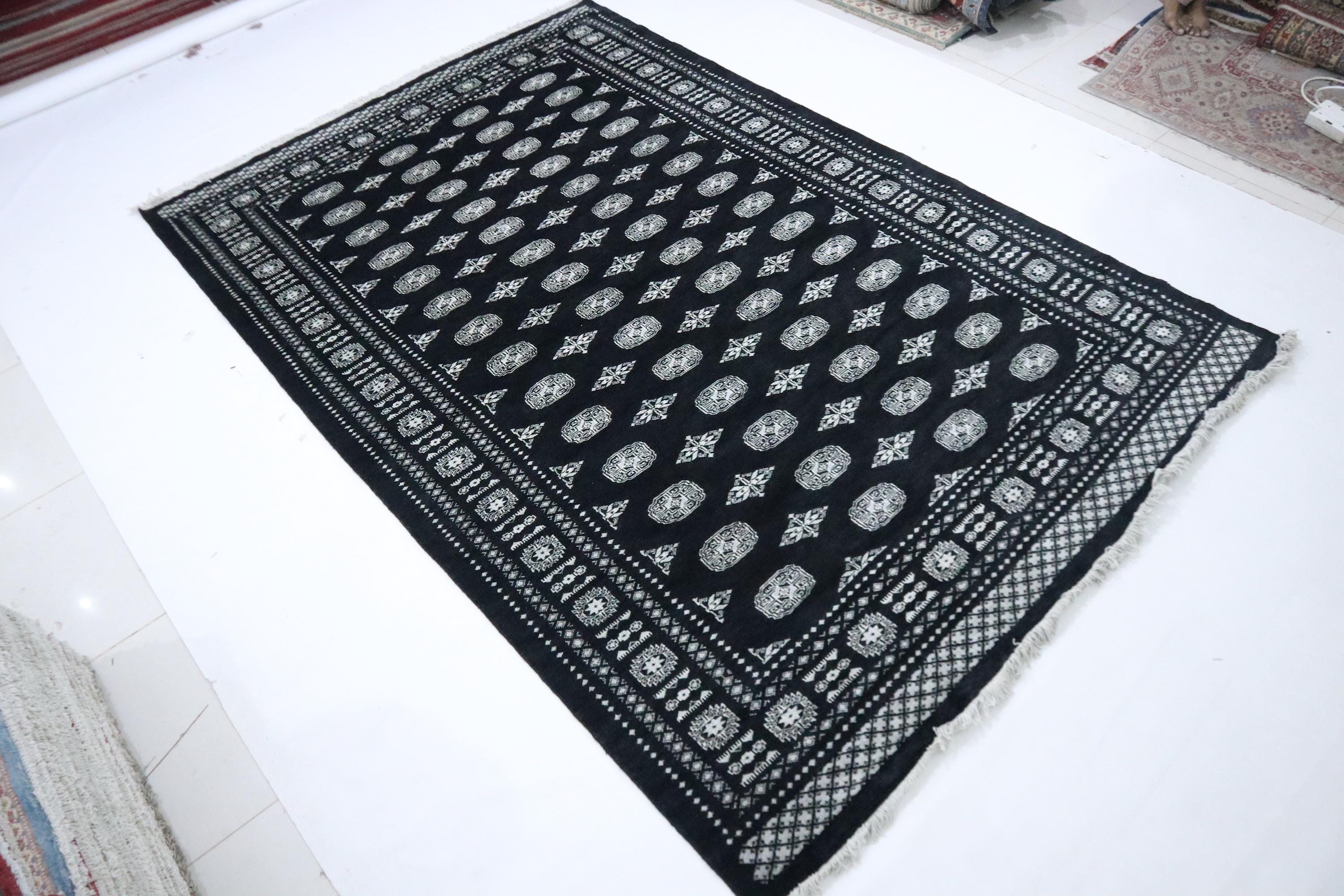 Black 7x10 Ft Mori Bokhara Area Rug, Hand Knotted Soft Wool Rug, Tribal Geometric Rug, Oriental Rug, Bedroom Rug, Living & Dining Room Rug