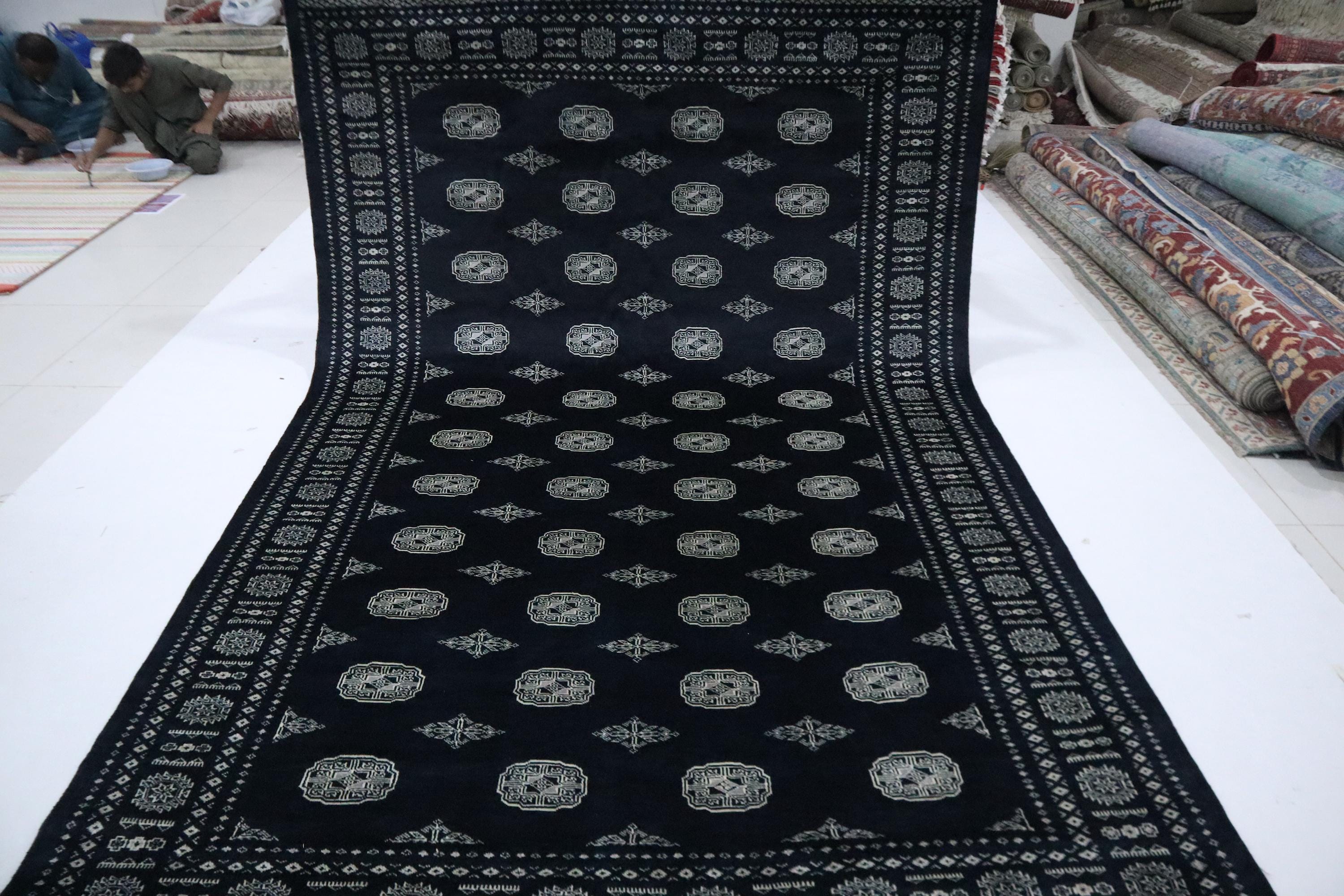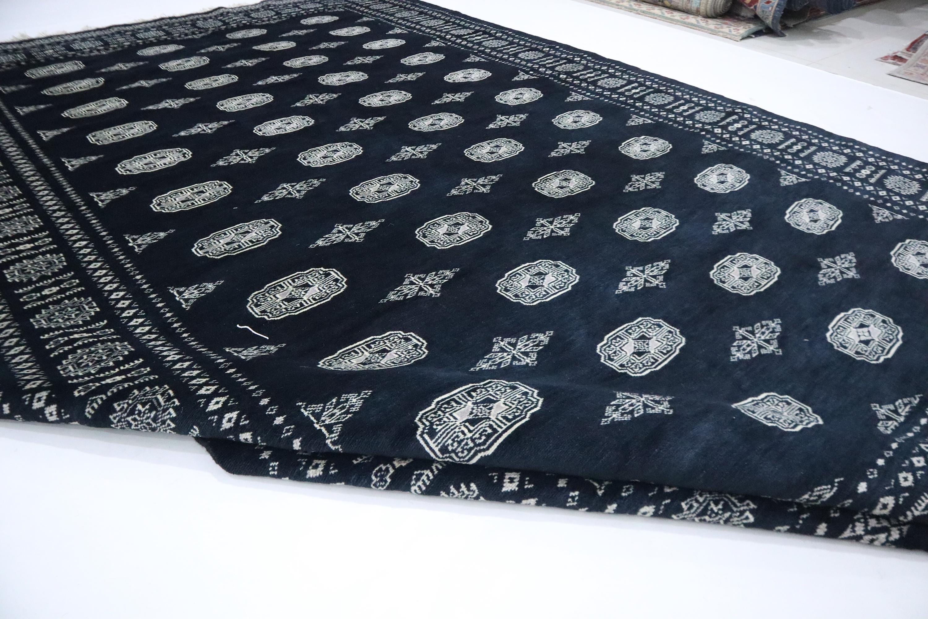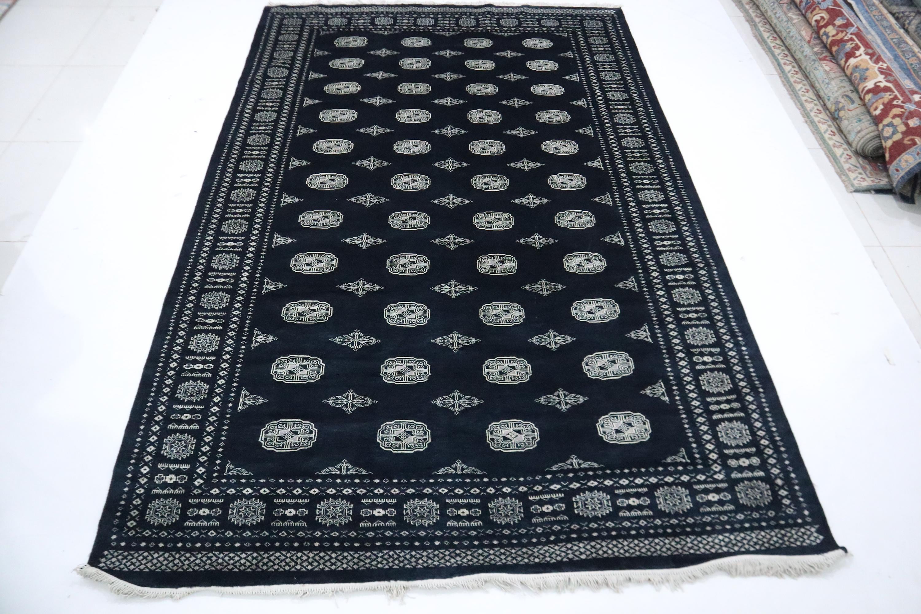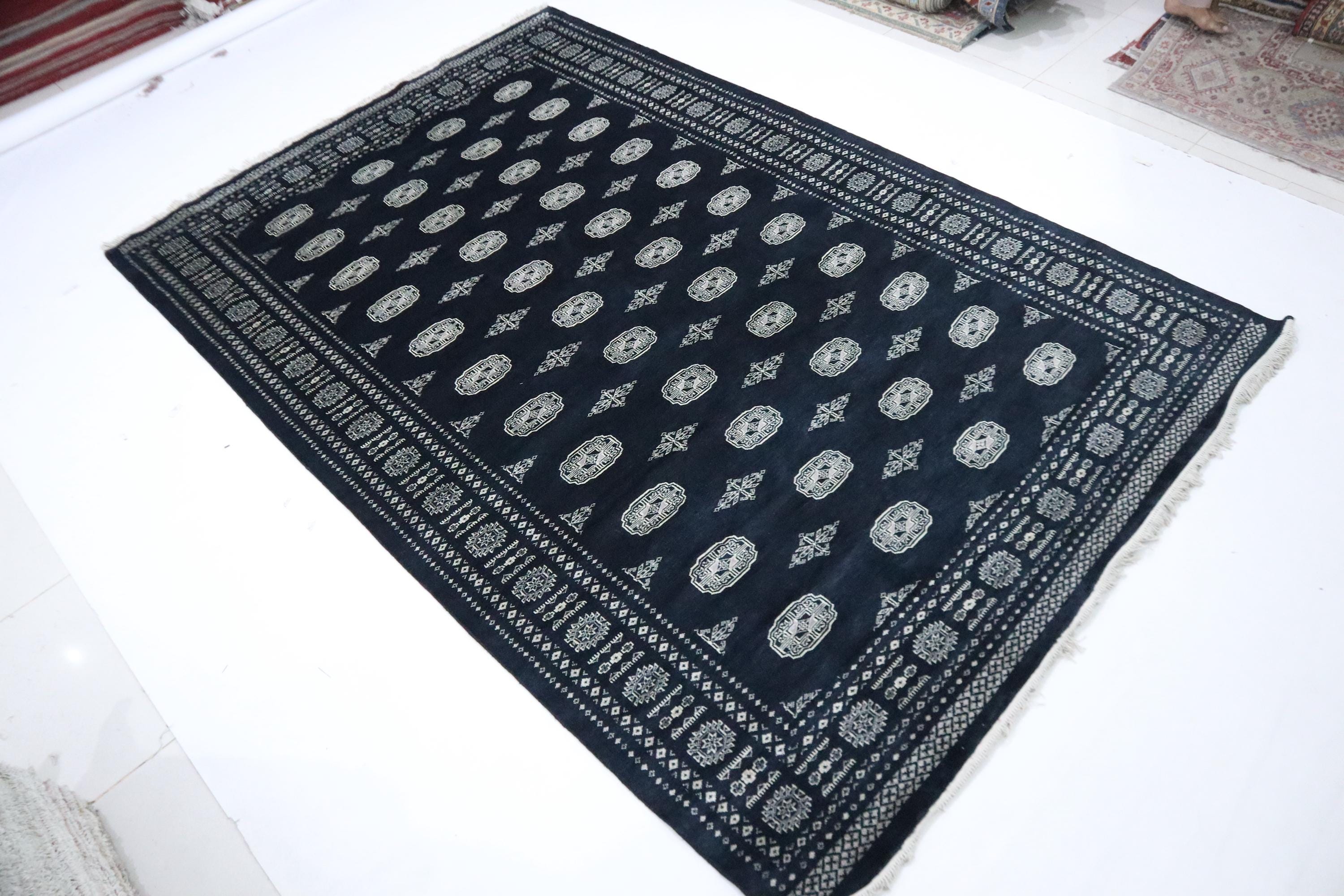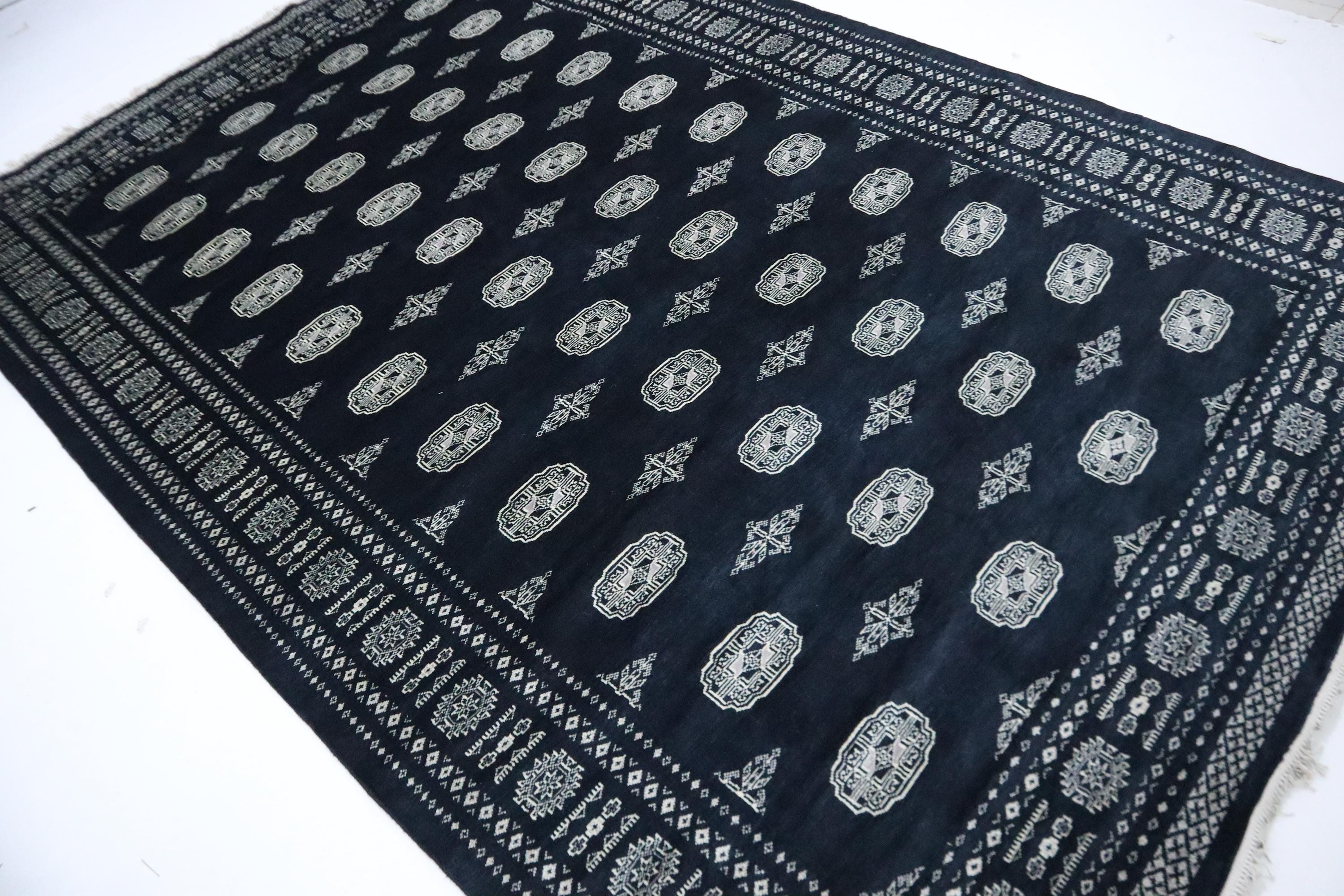 Black 7x10 Ft Mori Bokhara Area Rug, Hand Knotted Rug, Soft Wool Rug, Ethnic Rug, Geometric Rug, Tribal Rug, Bedroom Rug, Living Room Rug