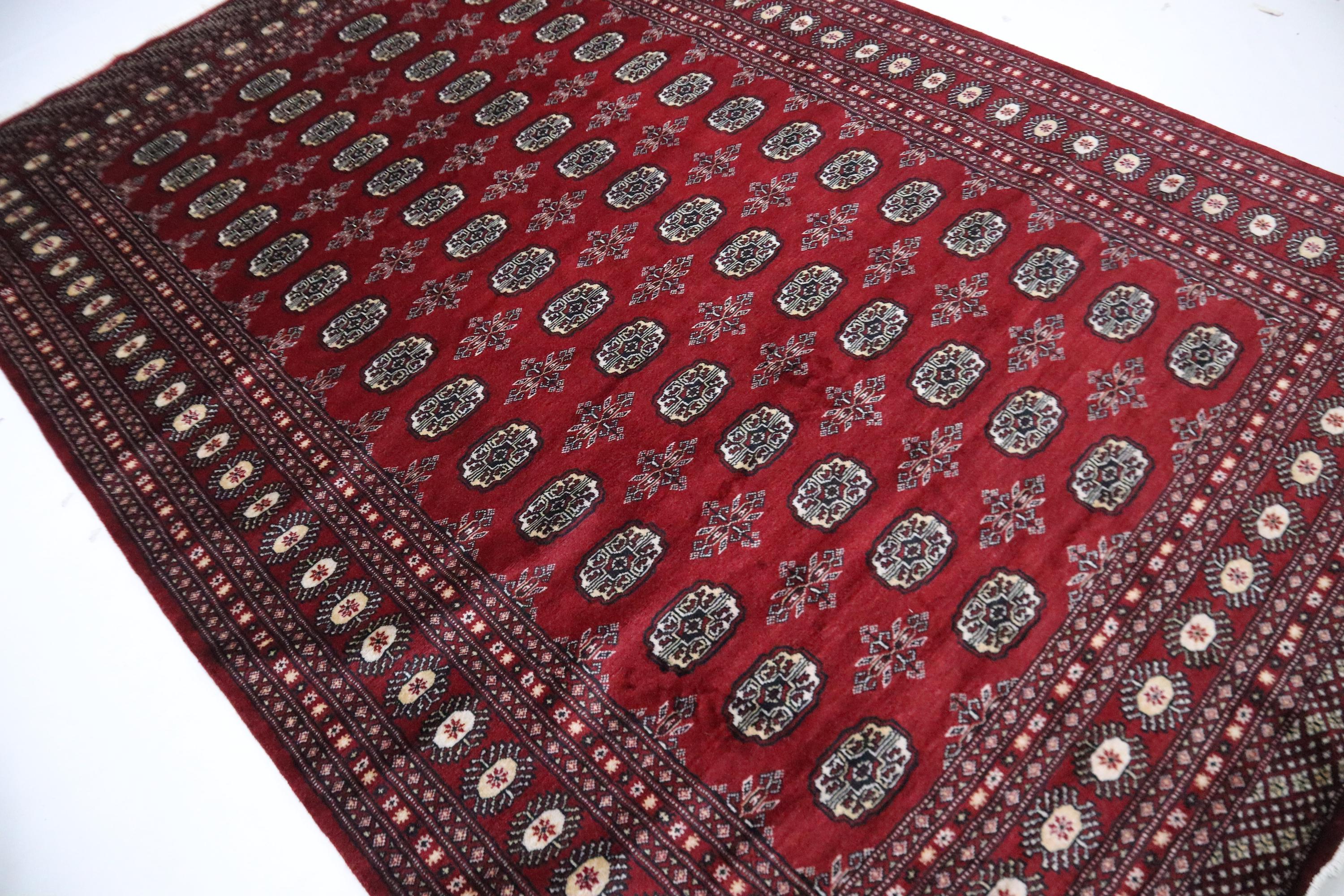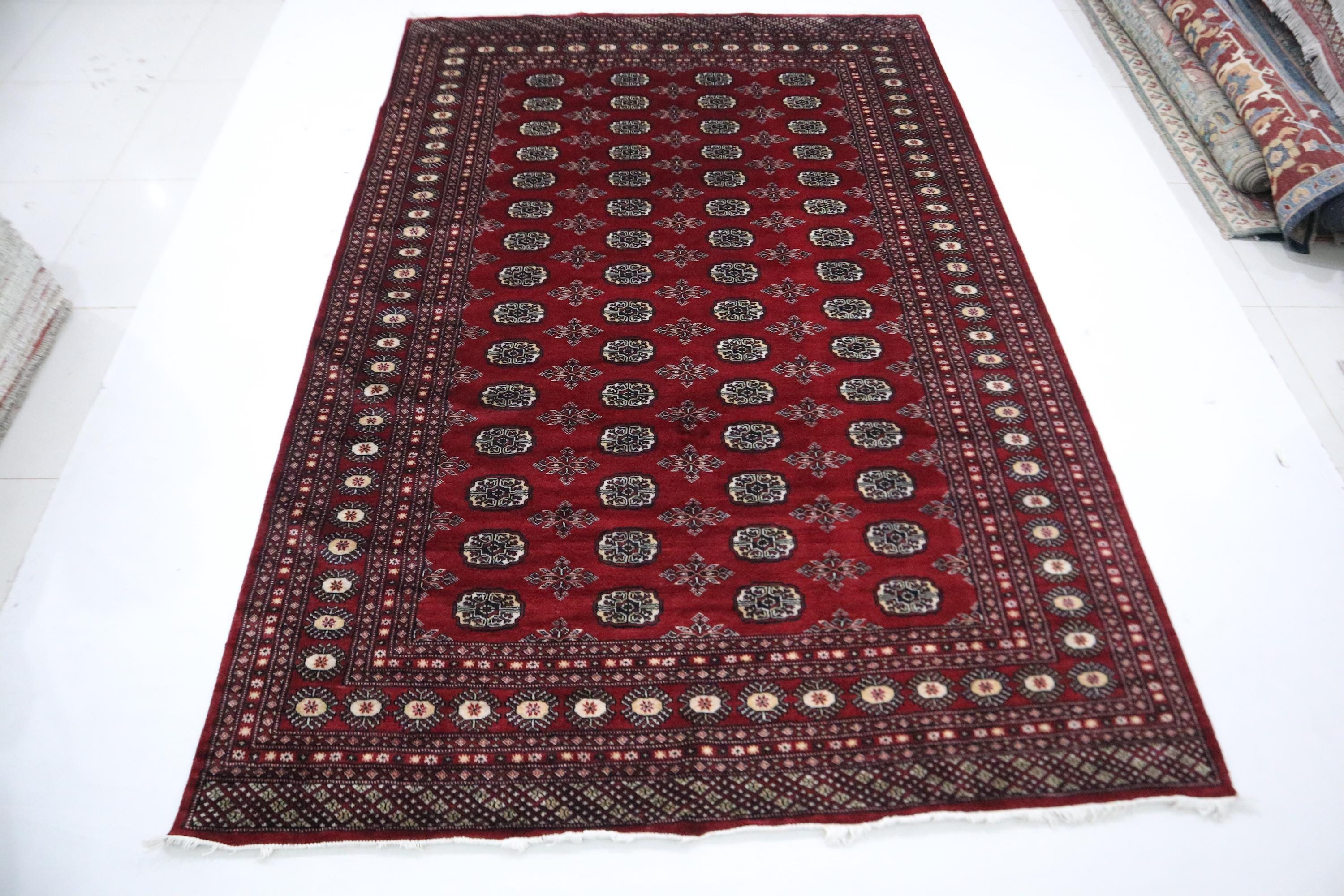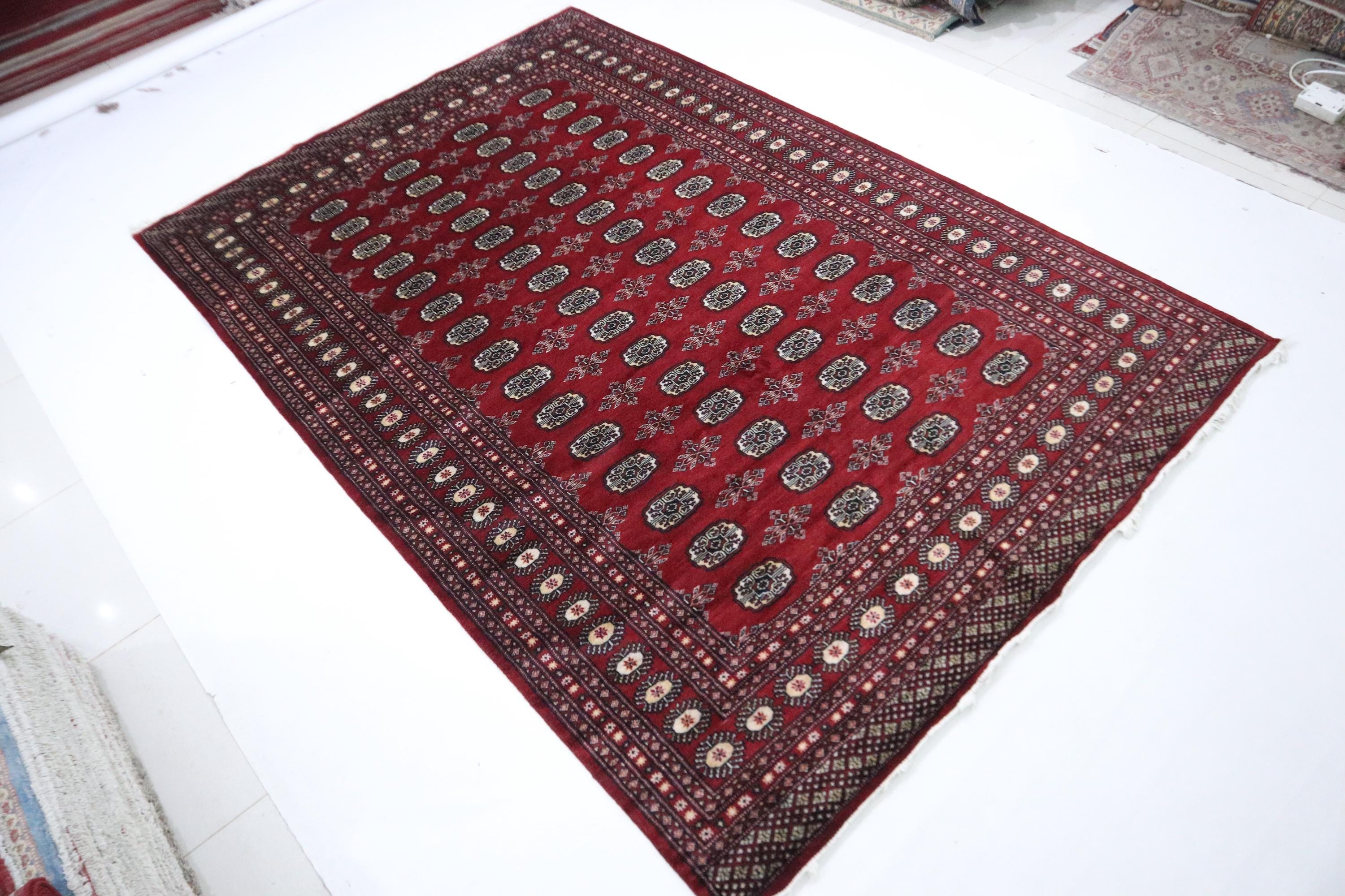 7x10 Ft Red Mori Bokhara Area Rug, Hand Knotted Rug, Soft Wool Rug, Tribal Rugs, Geometric Rug, Gul Motif Rug, Bedroom Rug, Living Room Rug