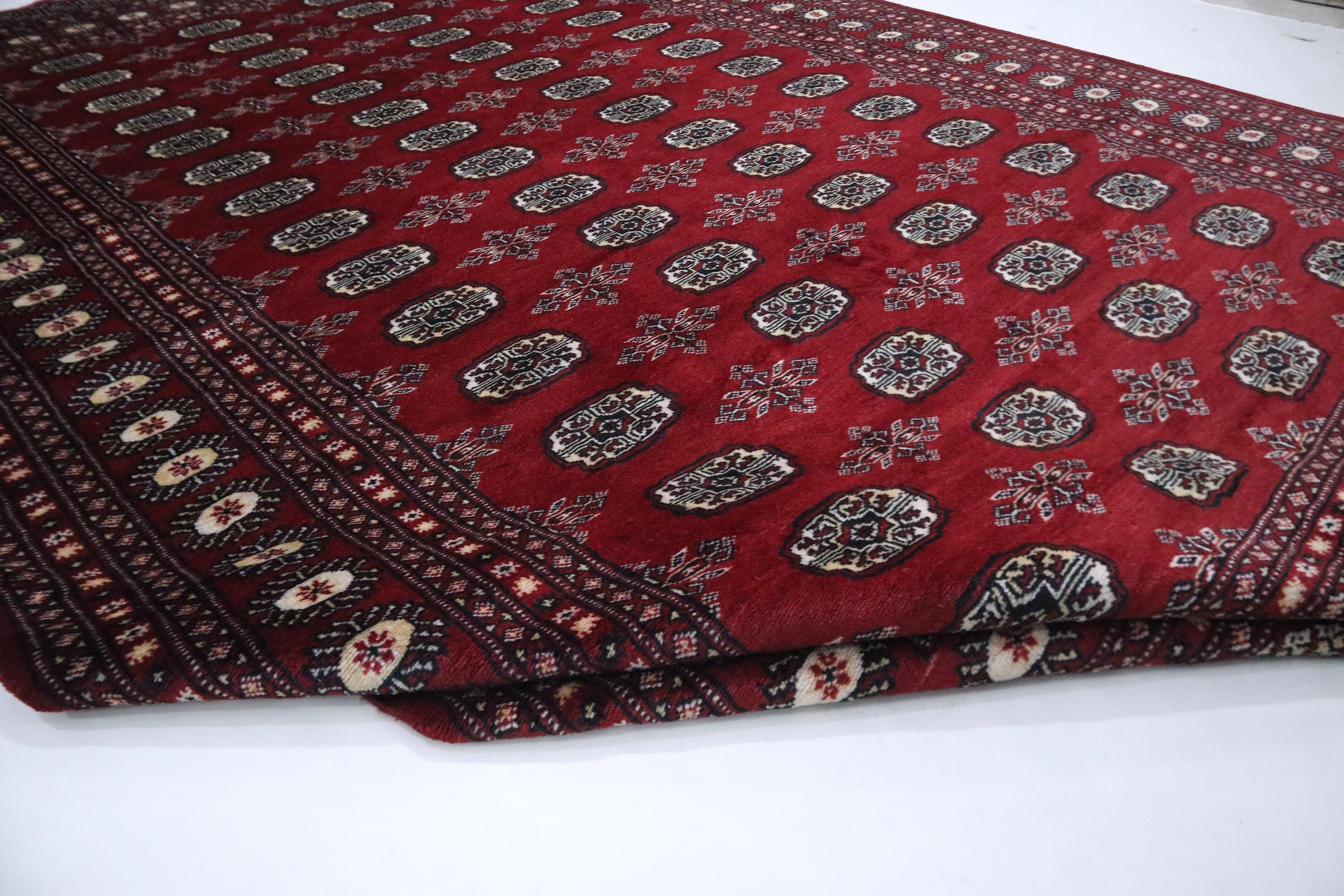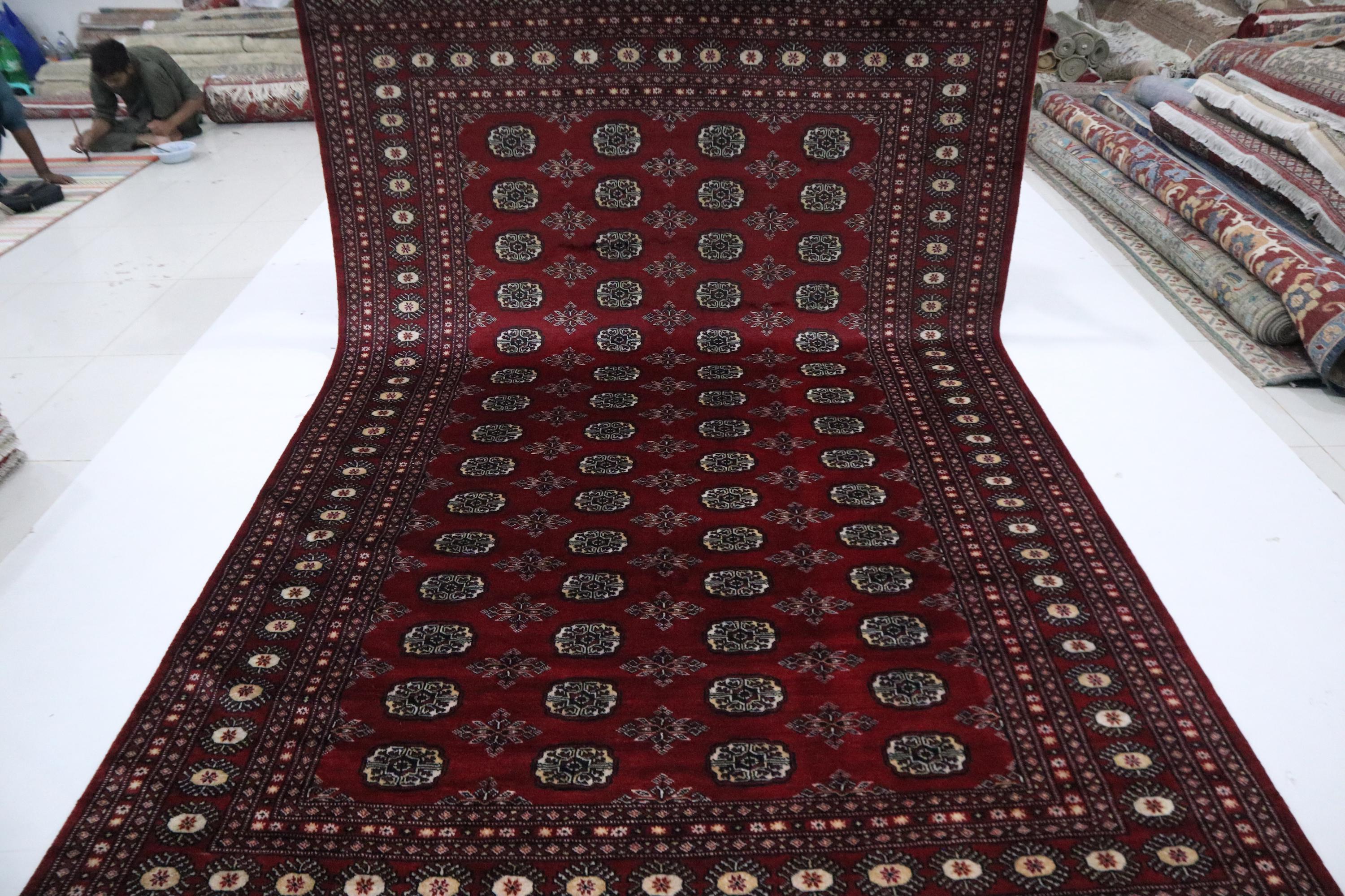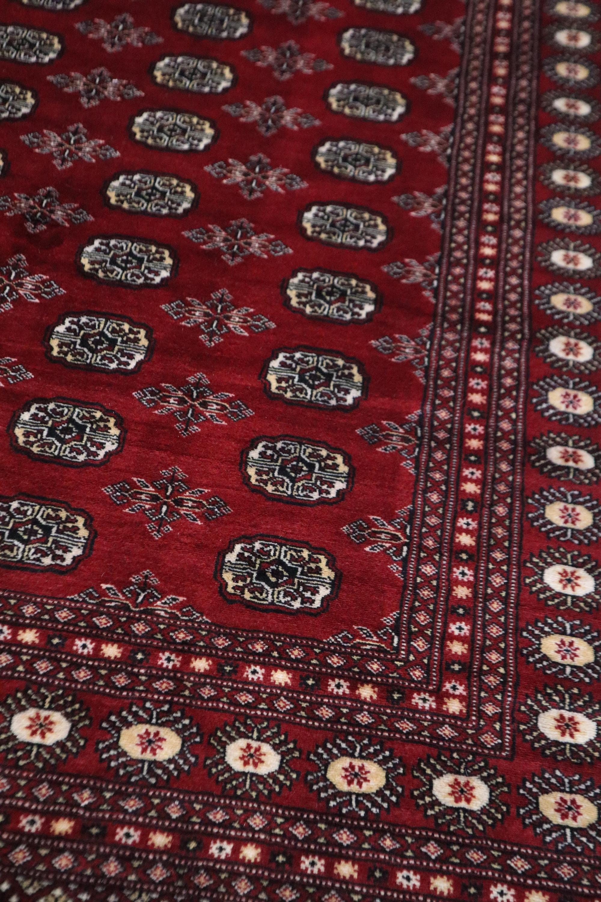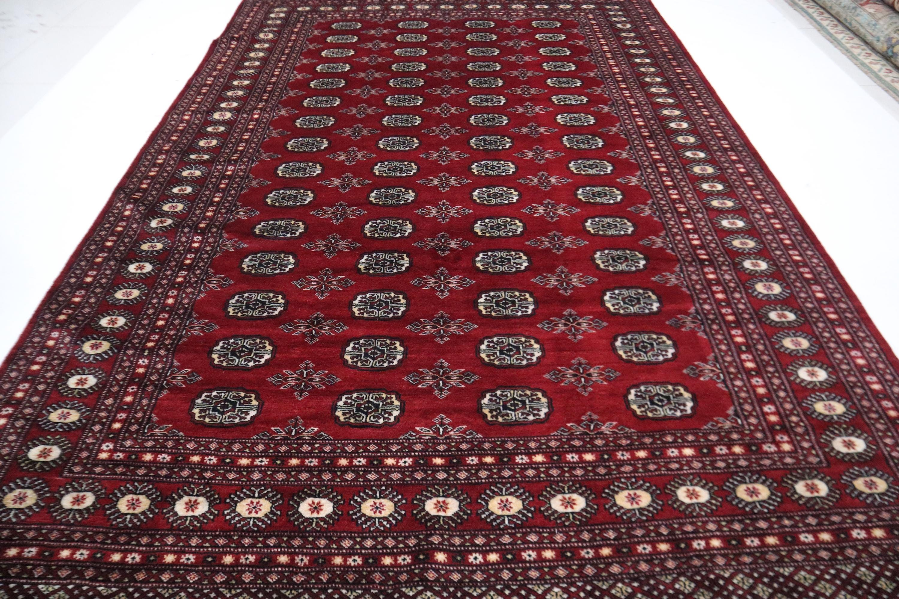 7x10 Ft Red Mori Bokhara Area Rug, Hand Knotted Rug, Soft Wool Rug, Tribal Rugs, Geometric Rug, Gul Motif Rug, Bedroom Rug, Living Room Rug