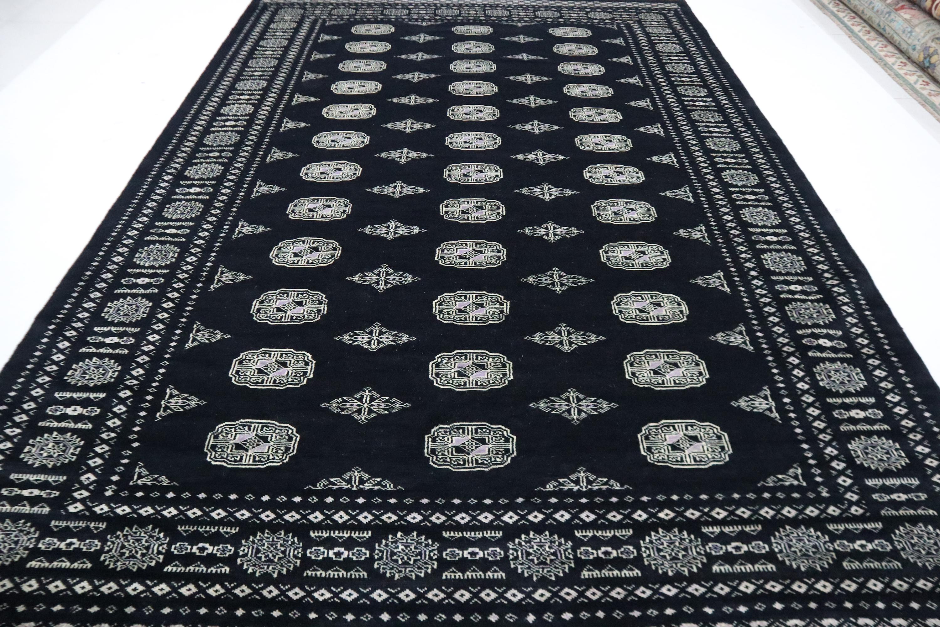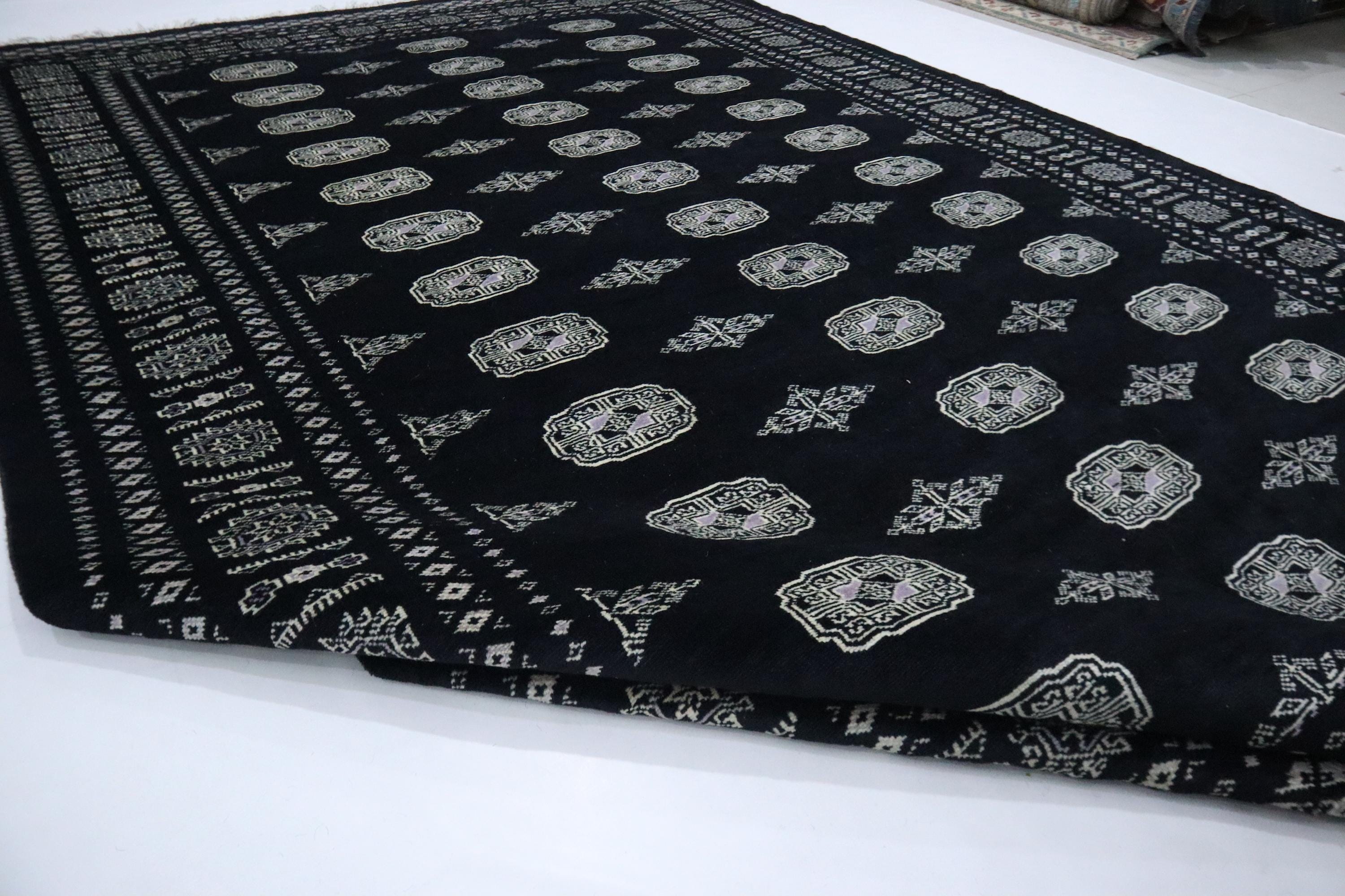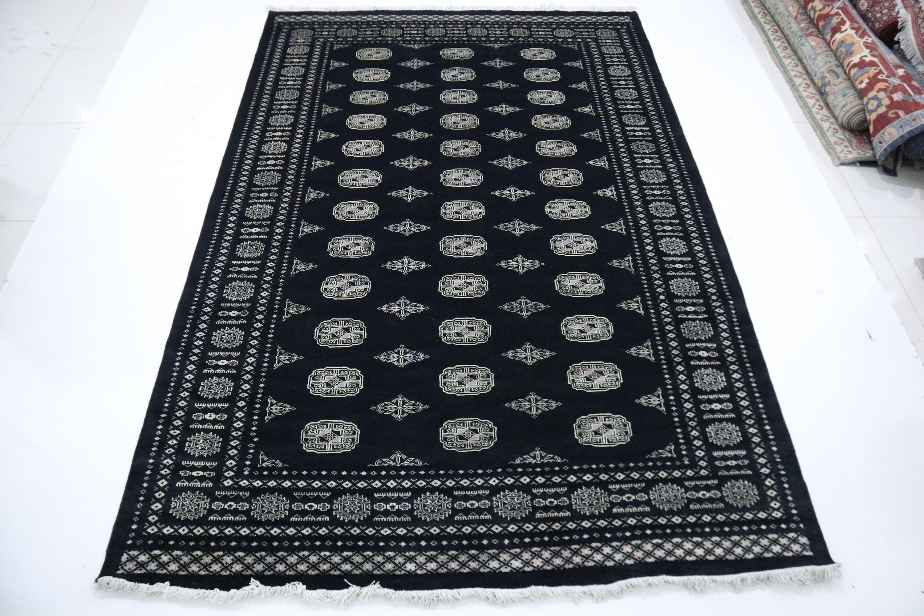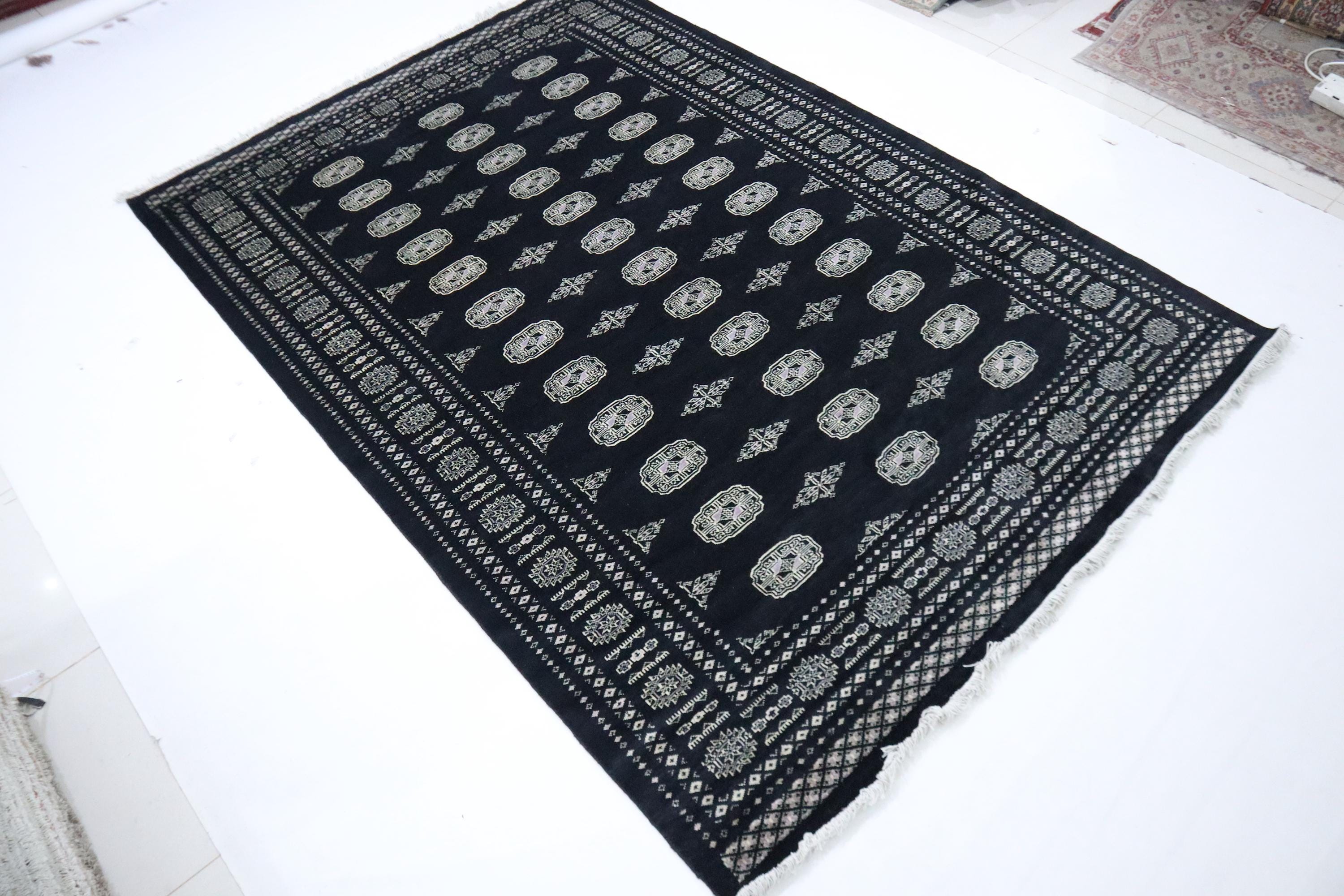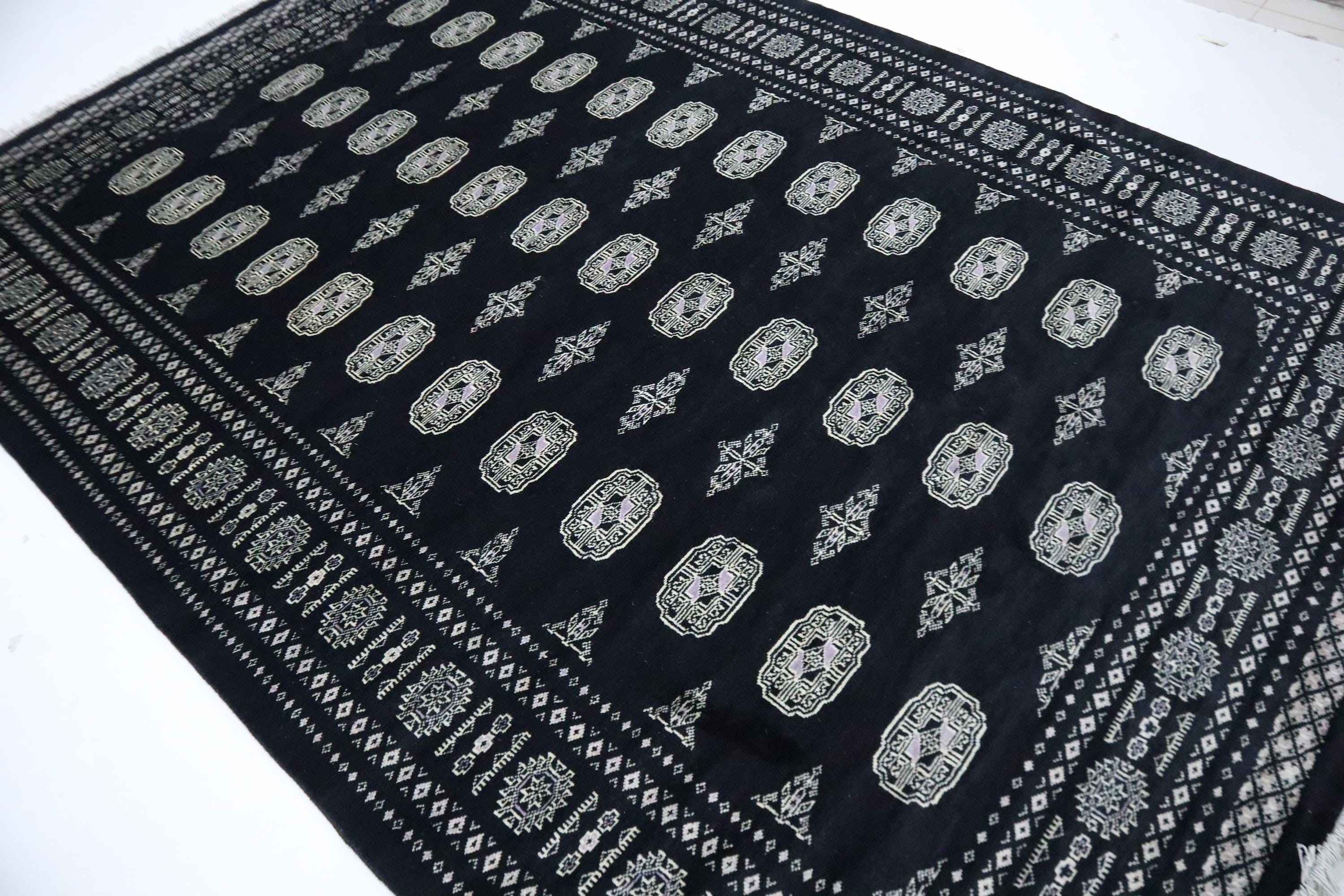 Black 7x10 Ft Mori Bokhara Area Rug, Geometric Rugs, Hand Knotted Rug, Soft Wool Rug, Tribal Rug, Gul Motif Rug, Bedroom Rug, Office Rug