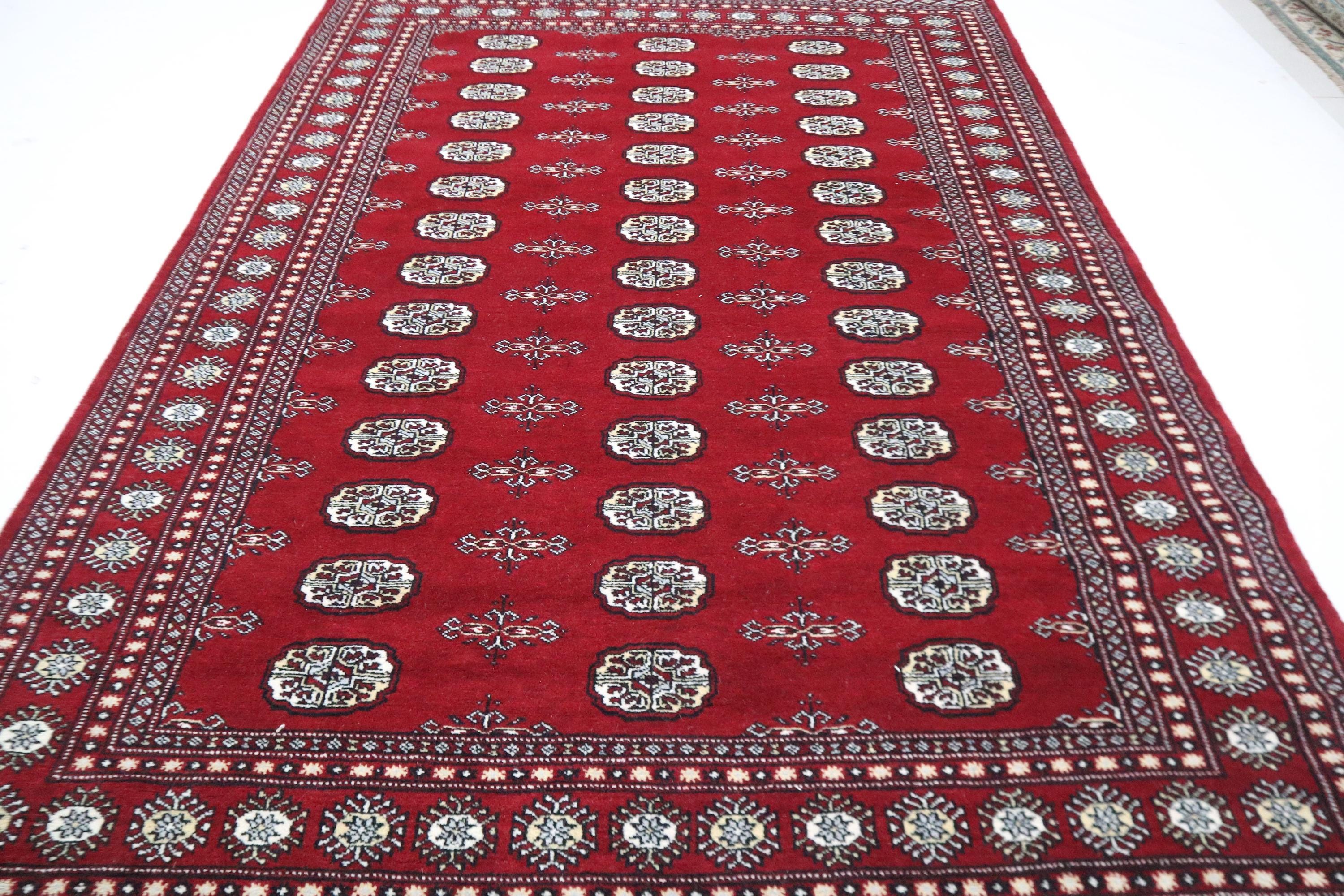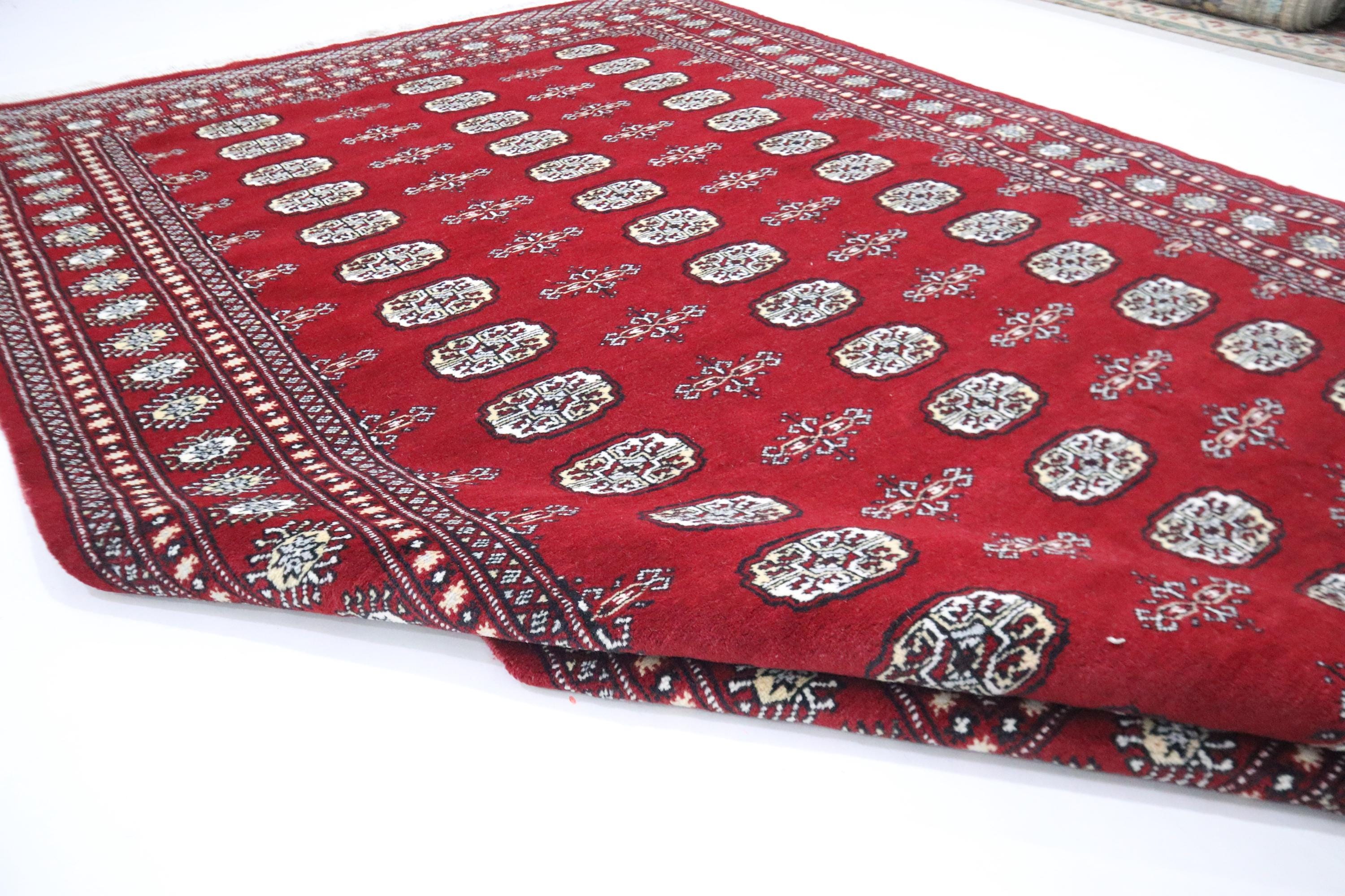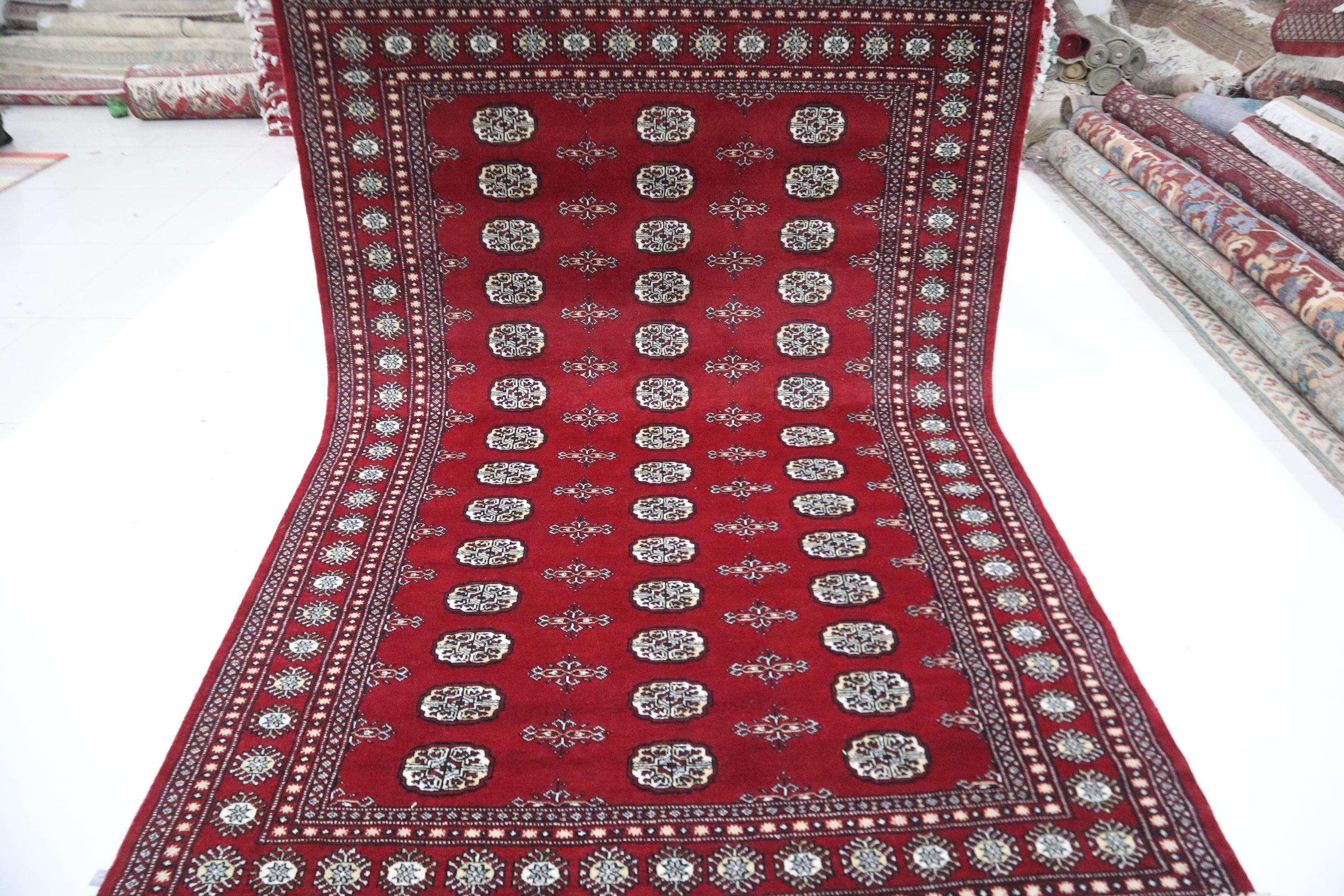 6x8 Ft Mori Bokhara Area Rug, Red Rug, Hand Knotted Rug, Soft Wool Rug, Gul Motif Rug, Tribal Rug, Geometric Rug, Bedroom Rug, Office Rug