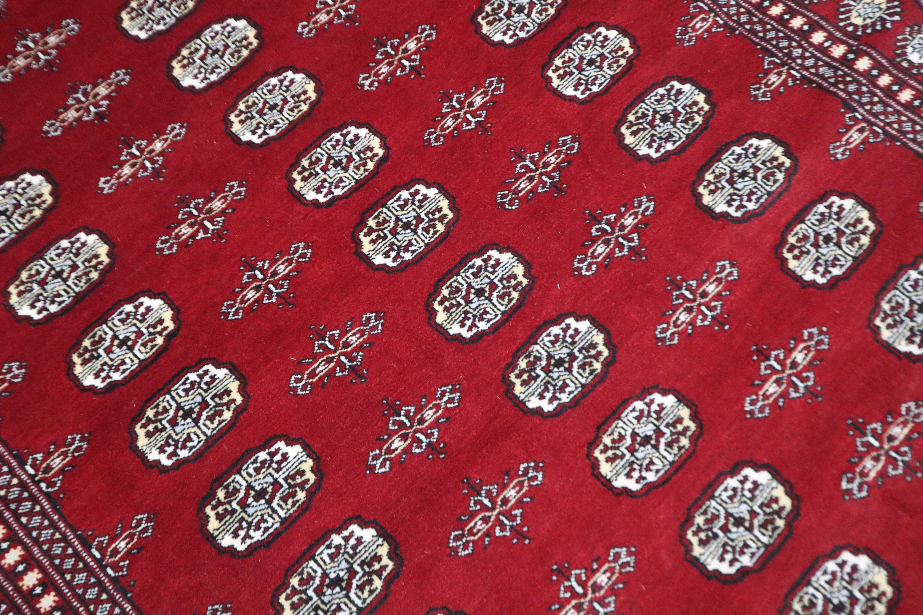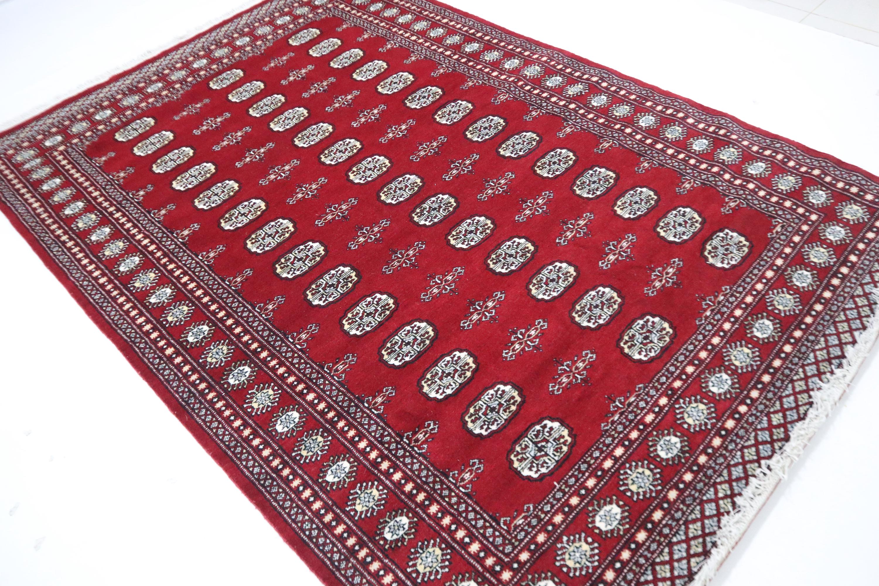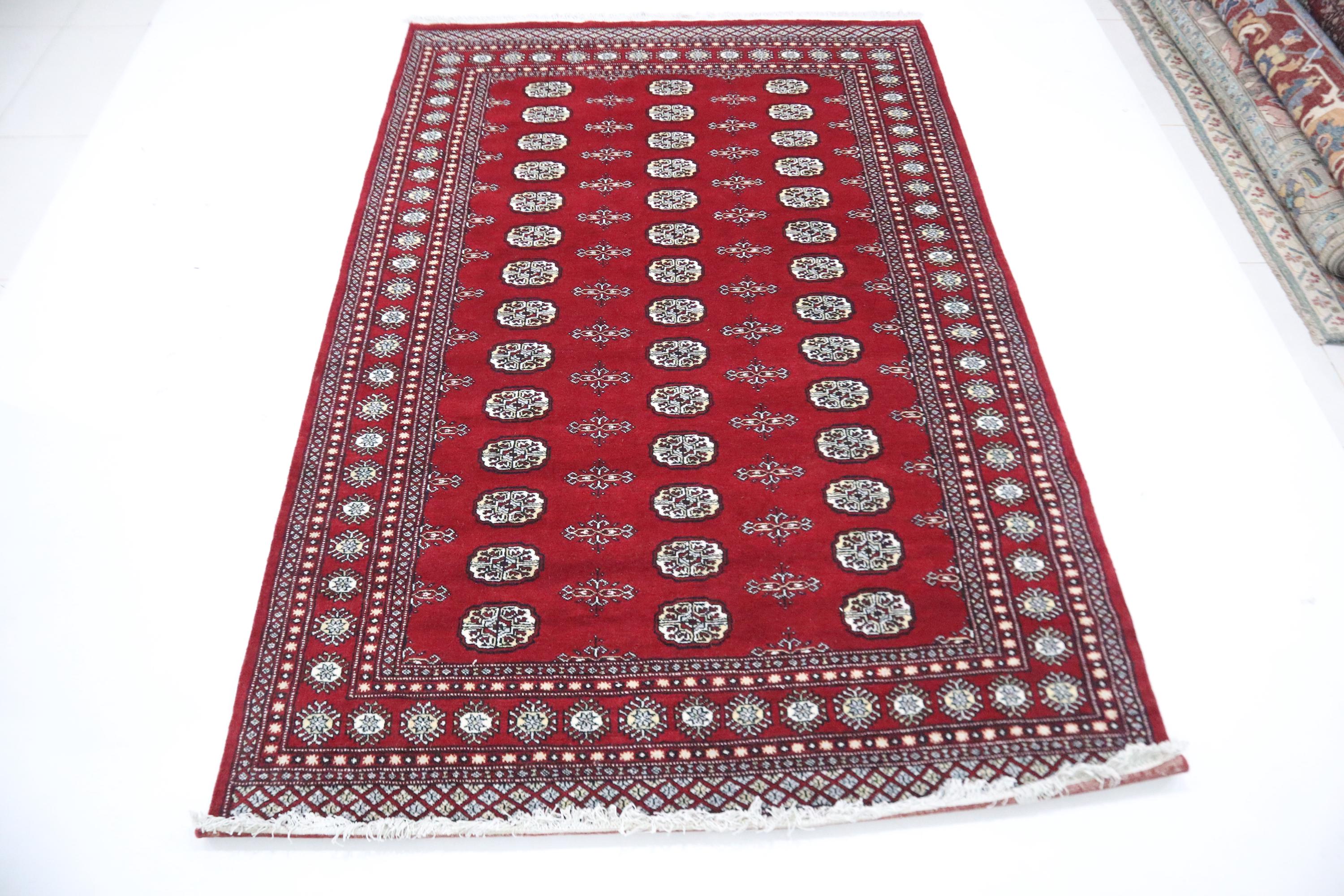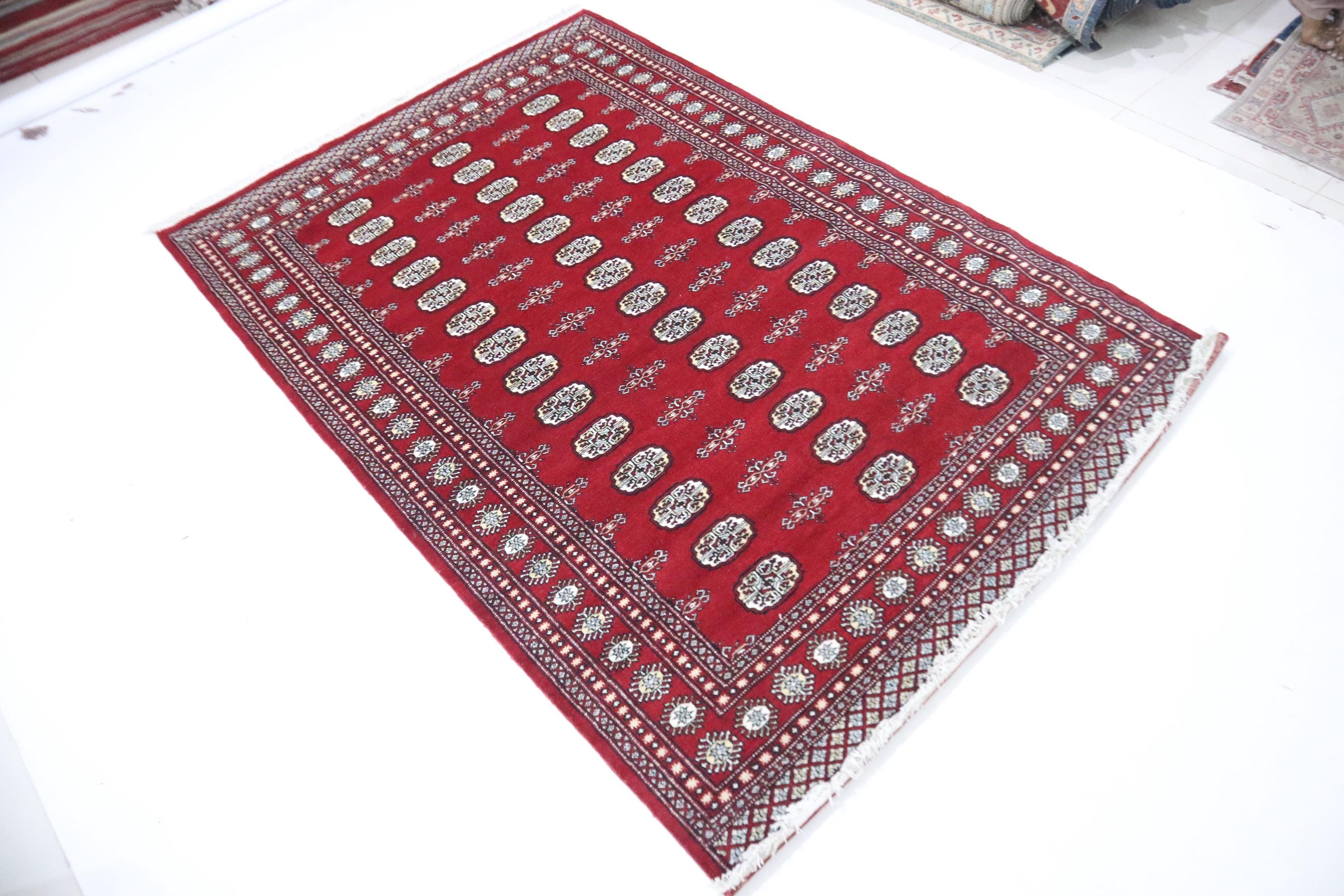 6x8 Ft Mori Bokhara Area Rug, Red Rug, Hand Knotted Rug, Soft Wool Rug, Gul Motif Rug, Tribal Rug, Geometric Rug, Bedroom Rug, Office Rug