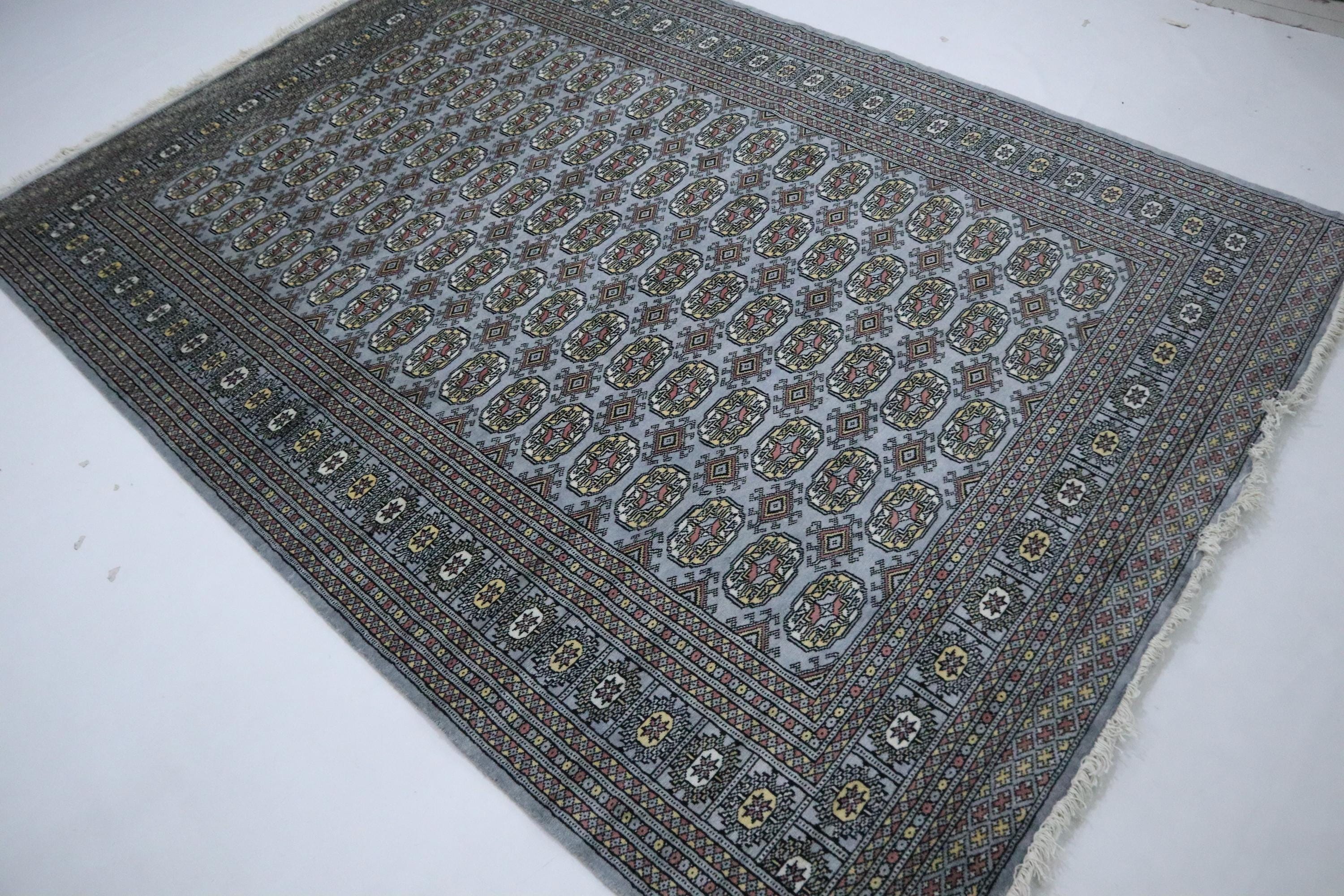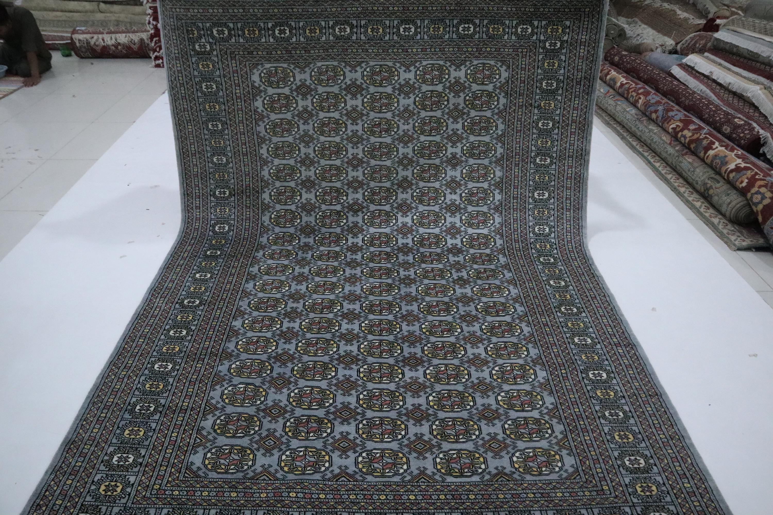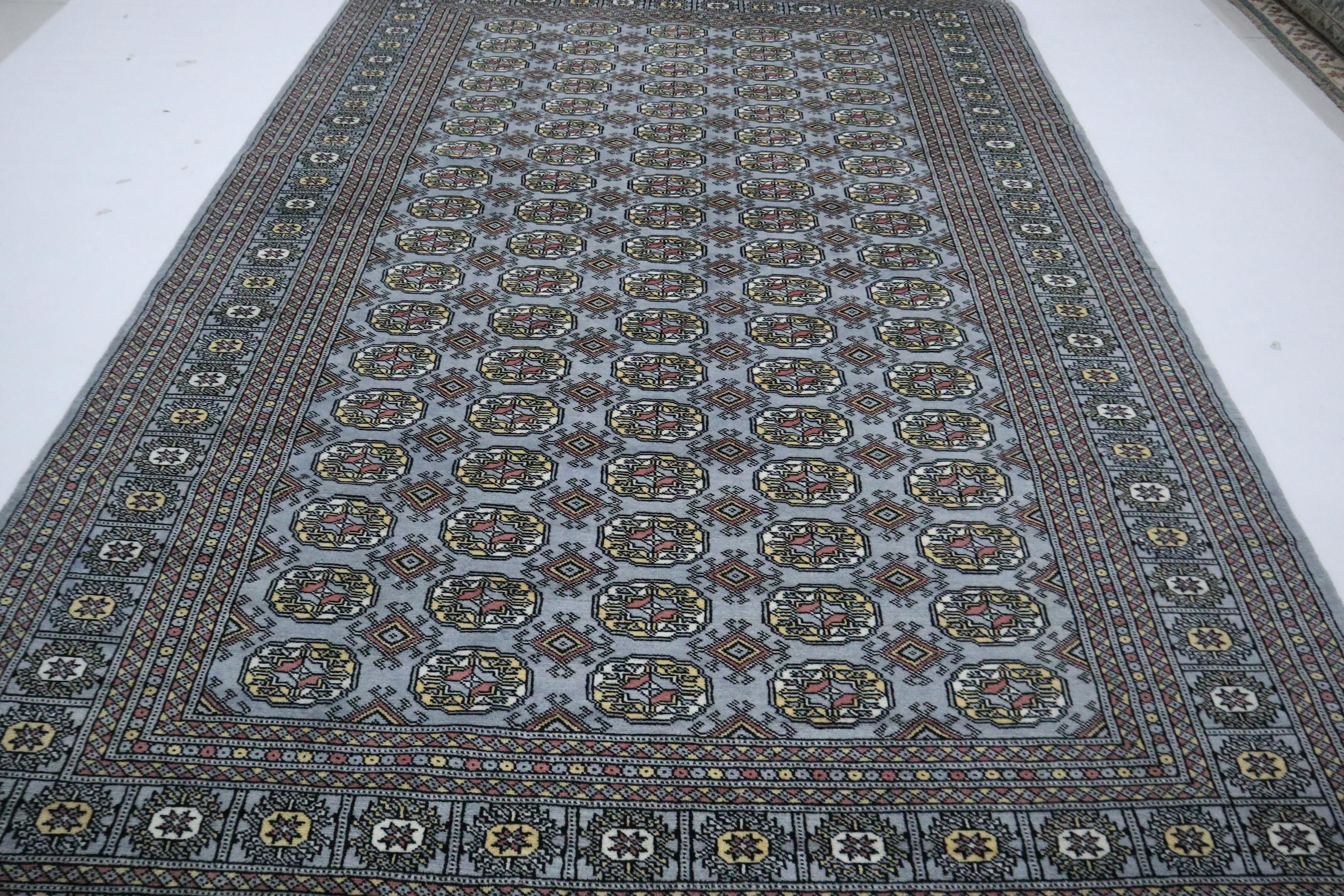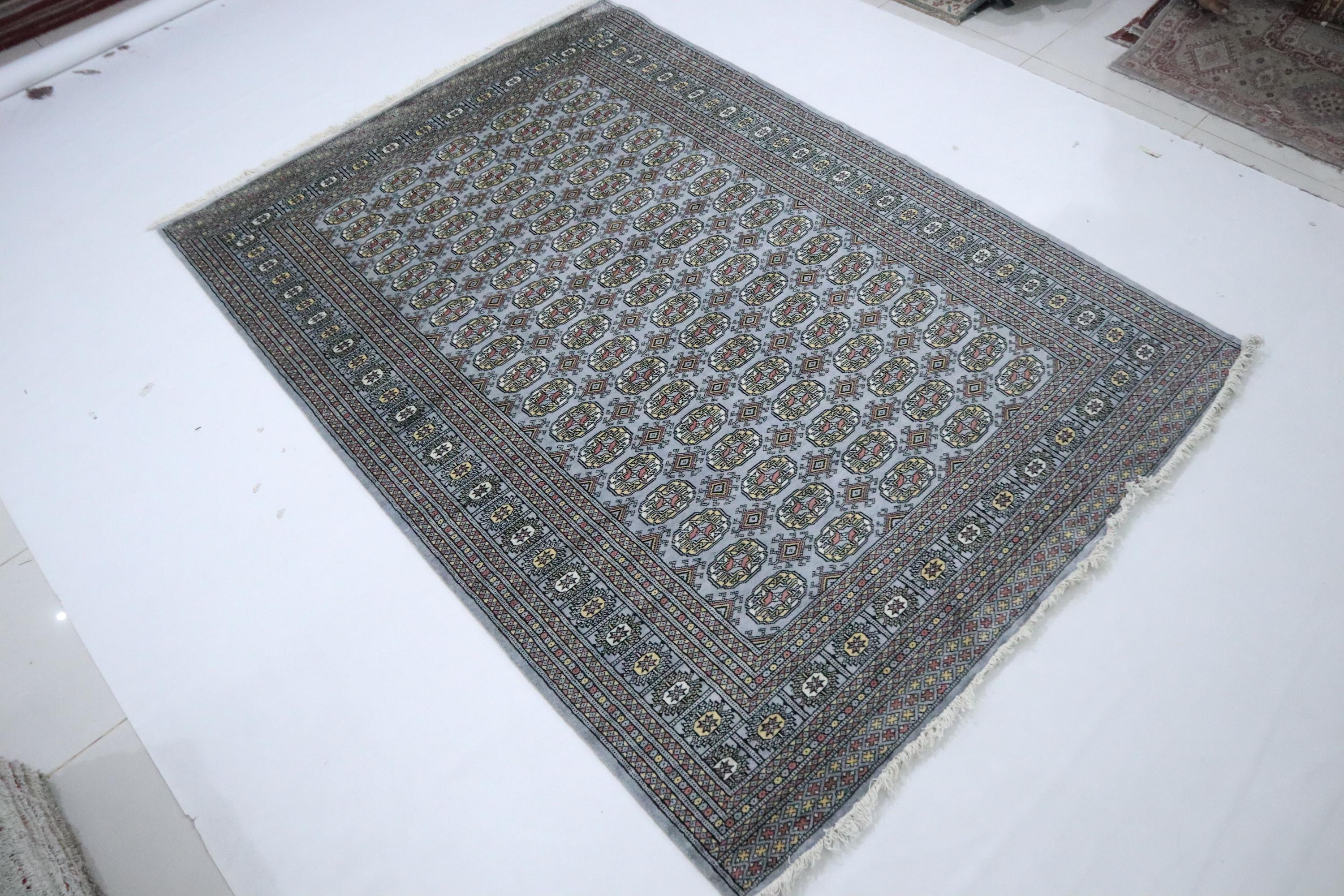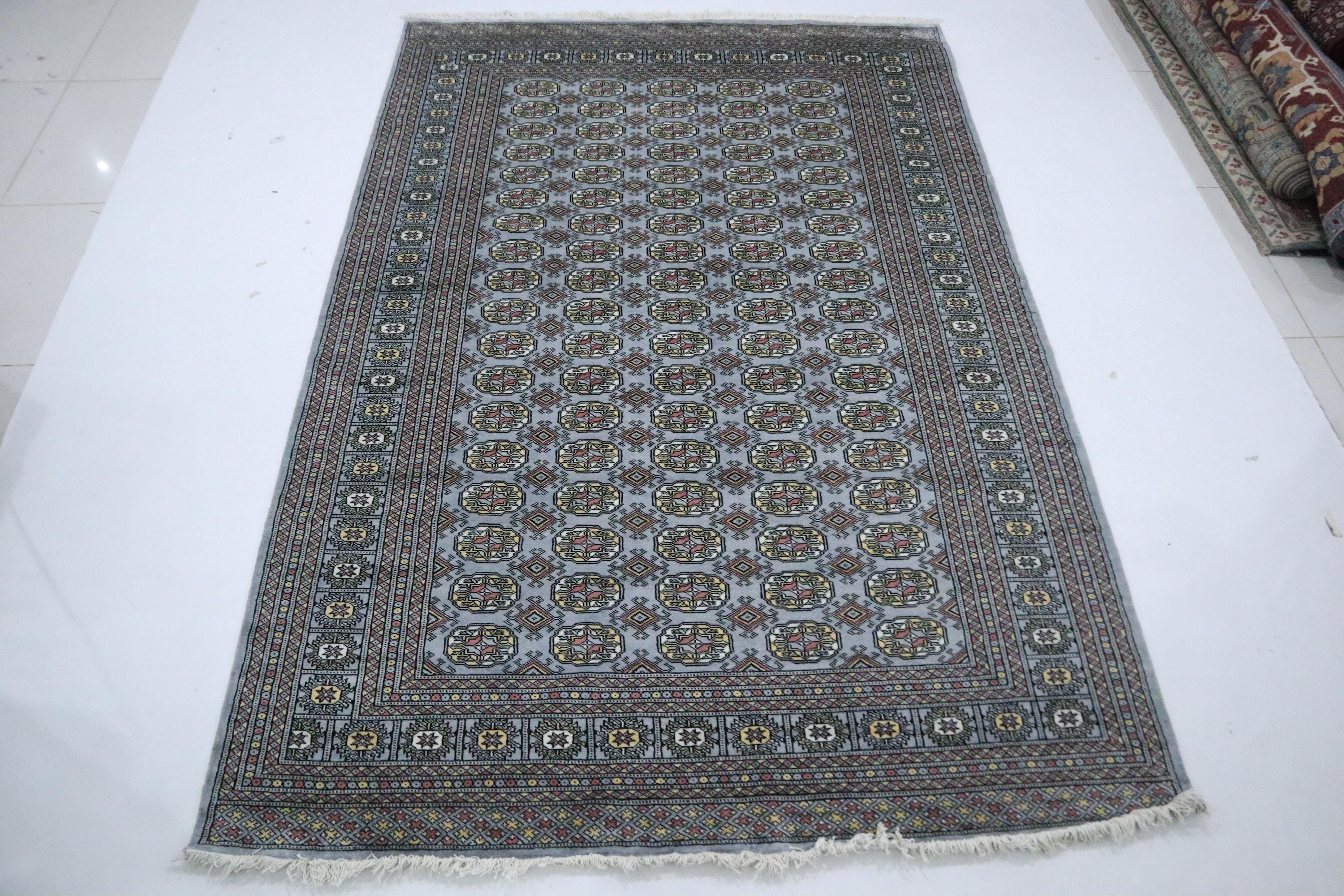 6x9 Ft Gray Mori Bokhara Area Rug, Hand Knotted Soft Wool Rug, Geometric Rug, Tribal Rug, Bedroom Rug, Living & Dining Room Rug, Office Rug
