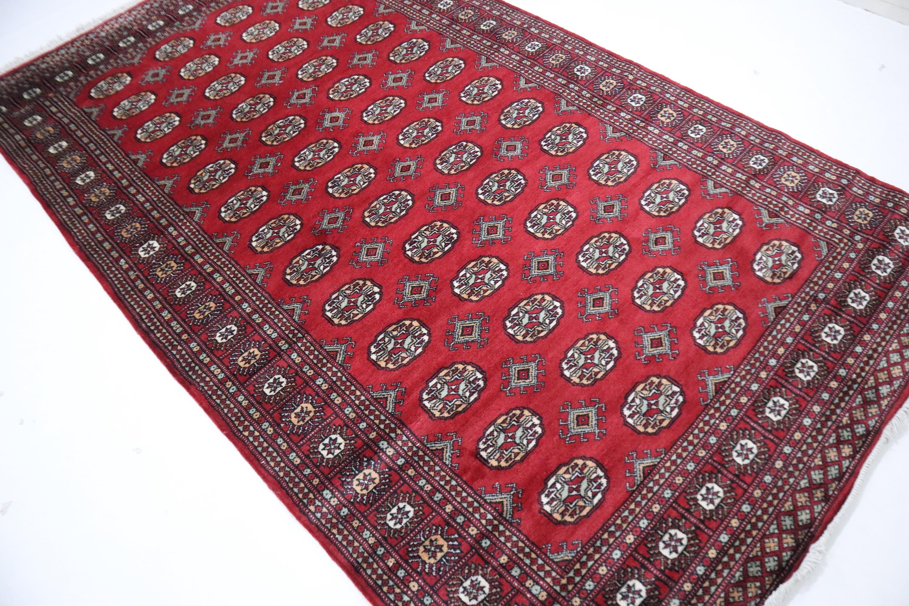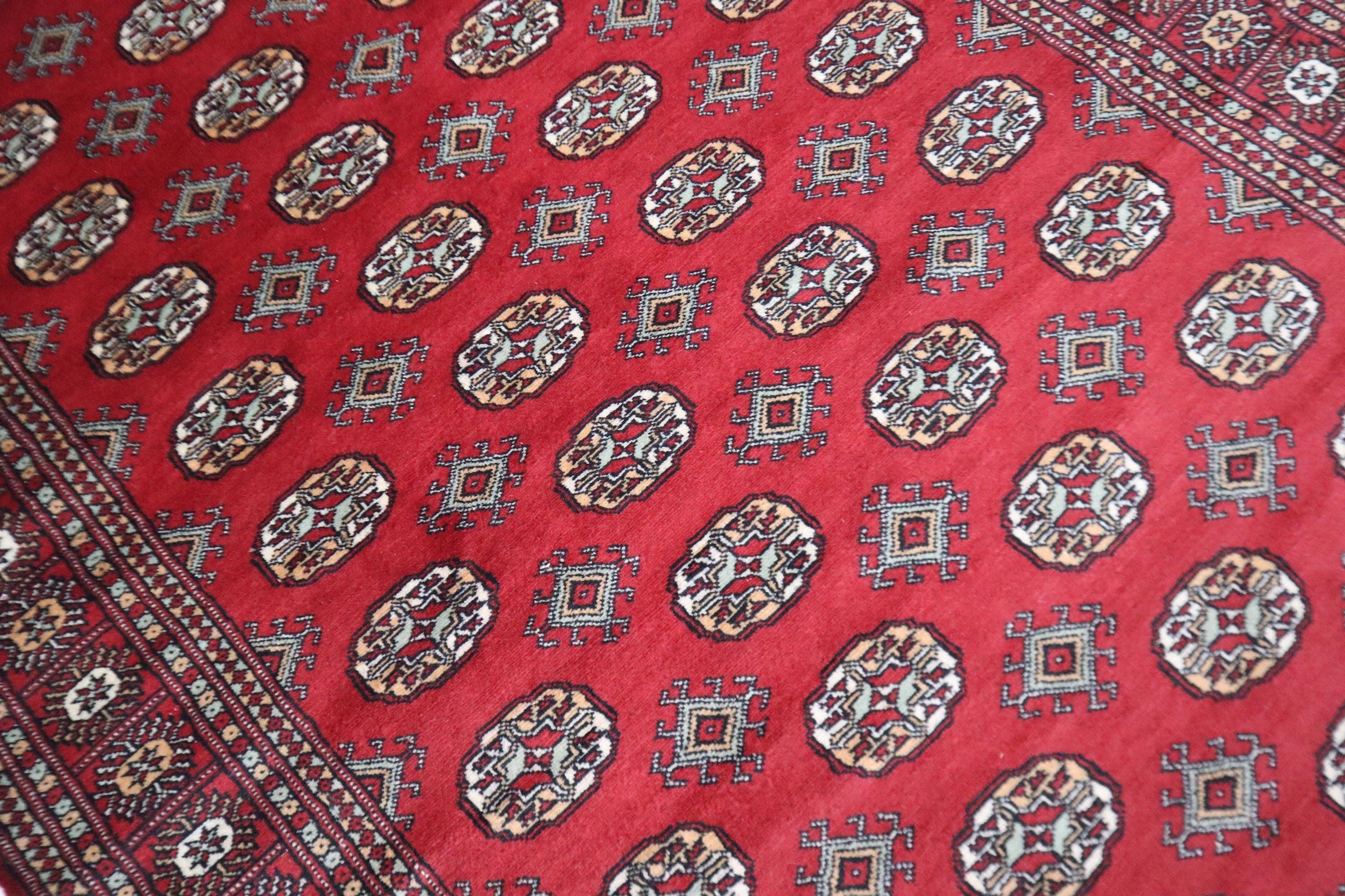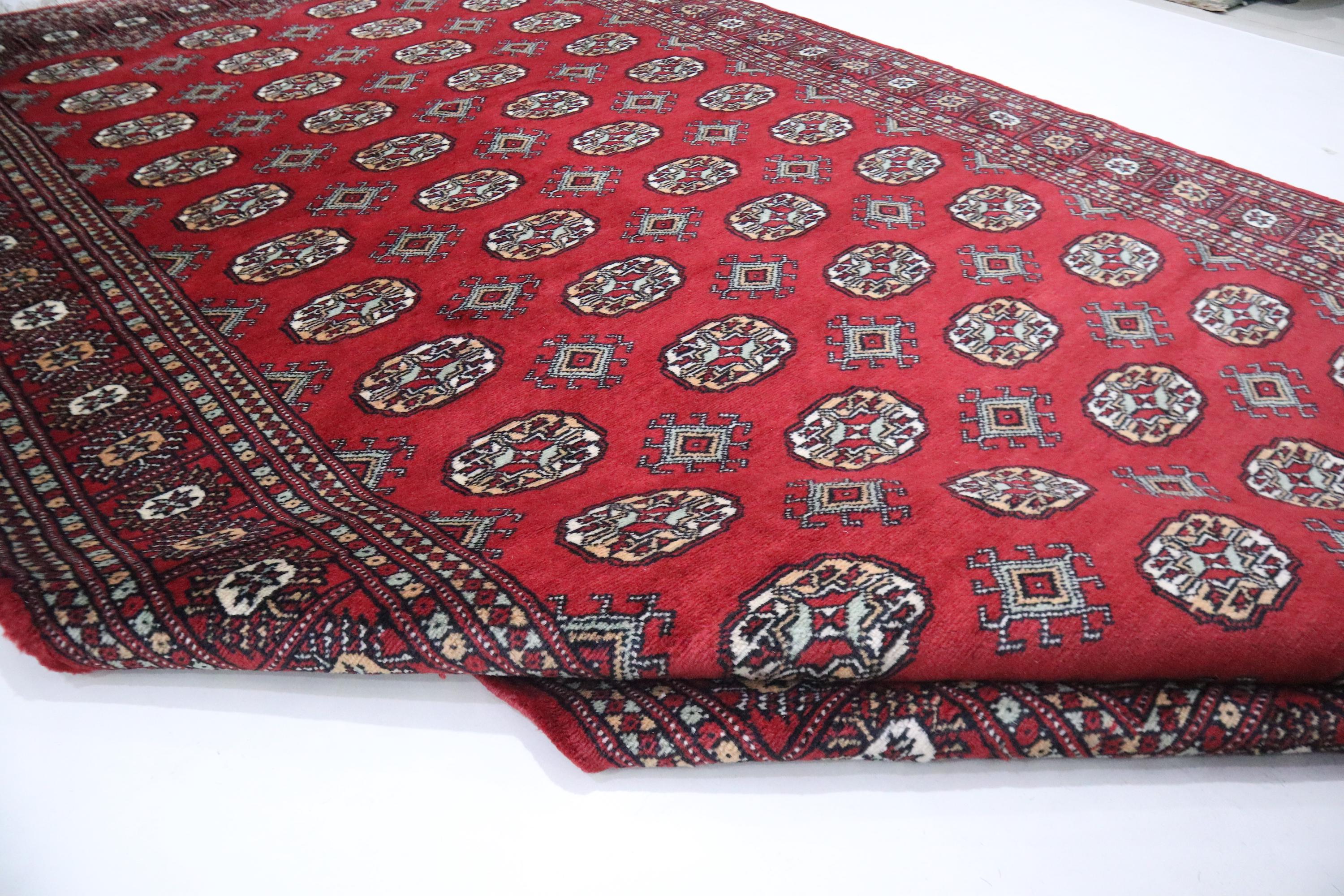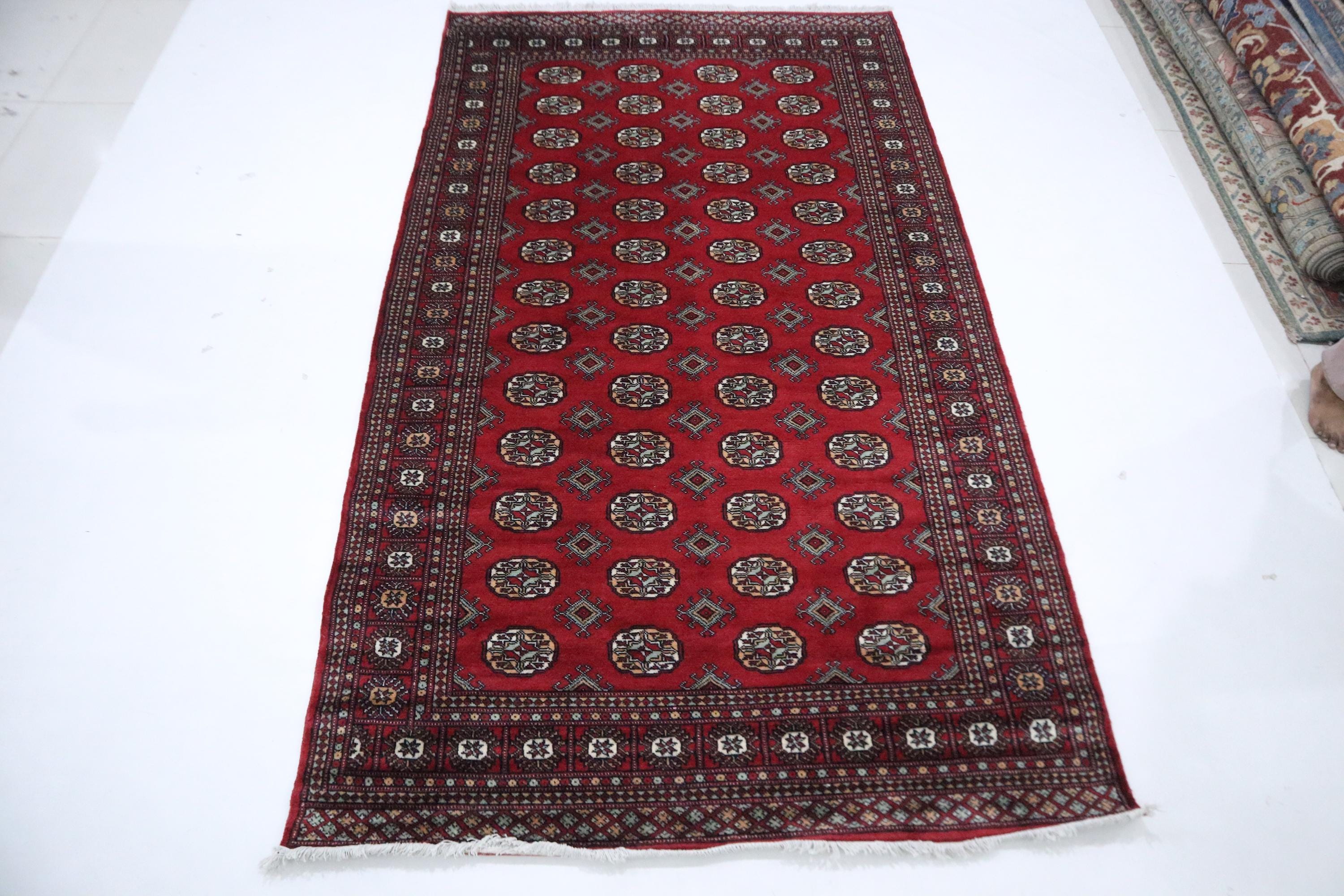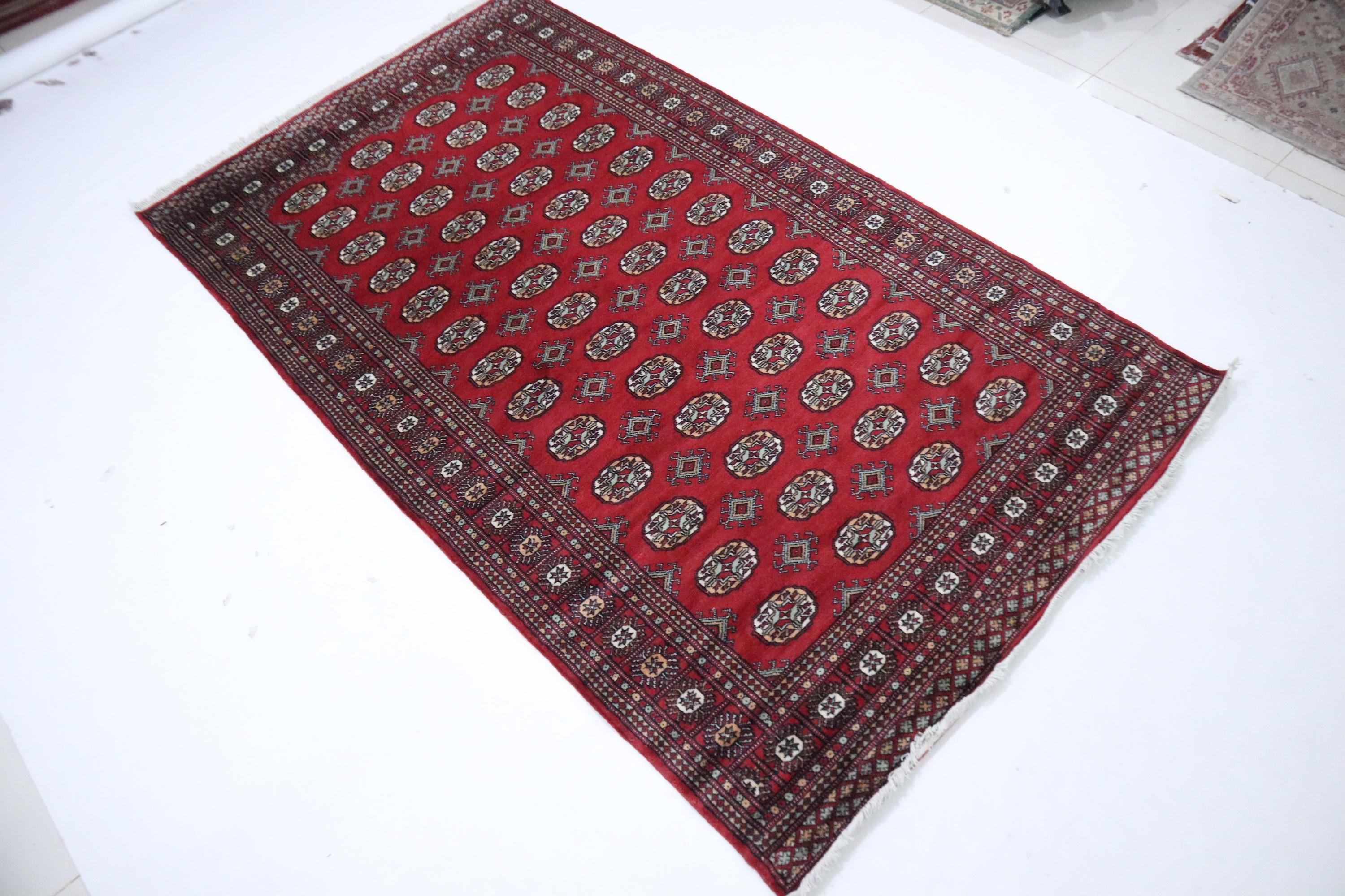 5x9 Ft Mori Bokhara Area Rug, Red Rugs, Geometric Rugs, Hand Knotted Soft Wool Rug, Tribal Rug, Bedroom Rug, Living Room Rug, Office Rug