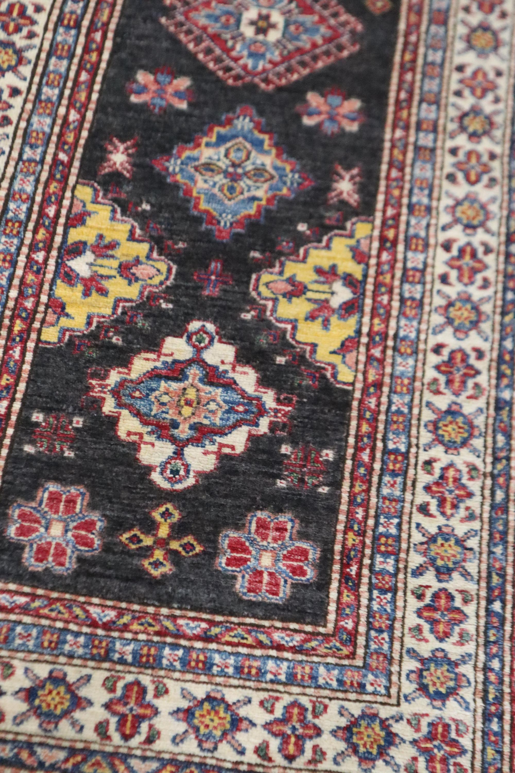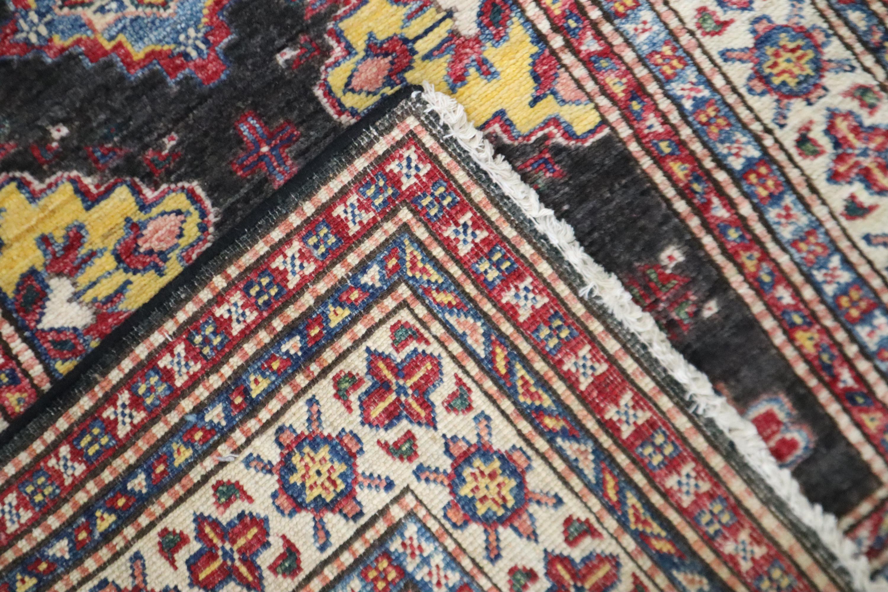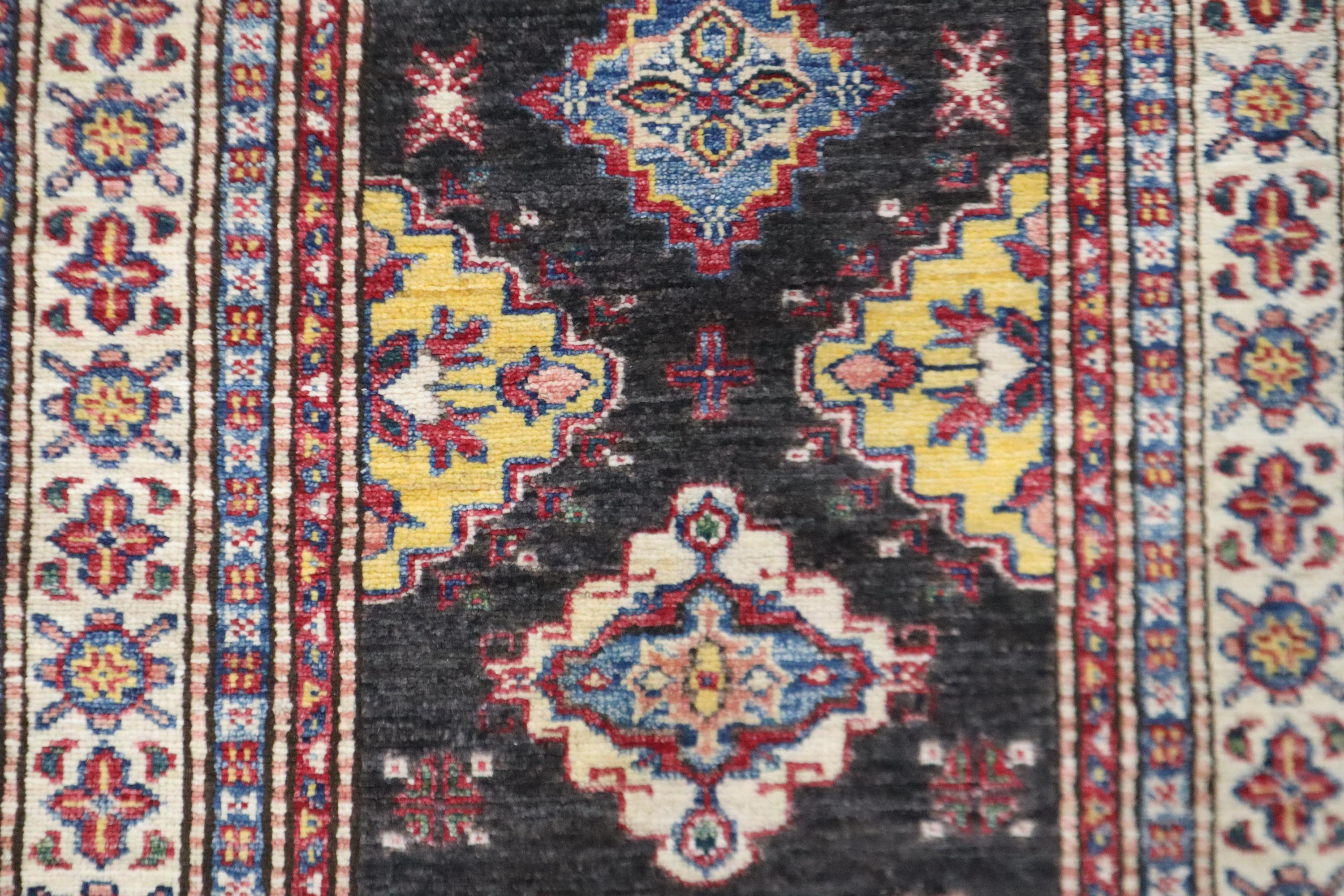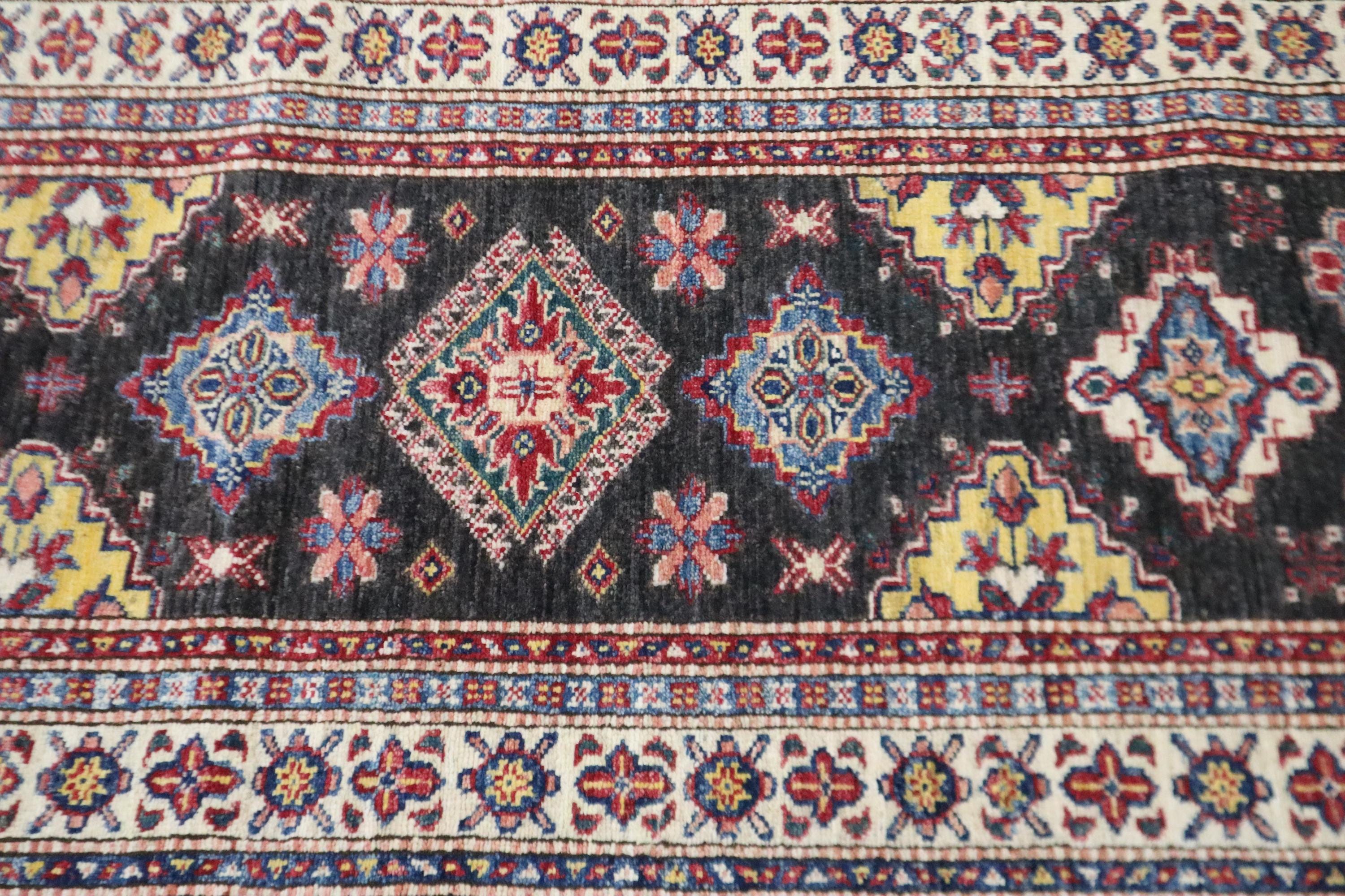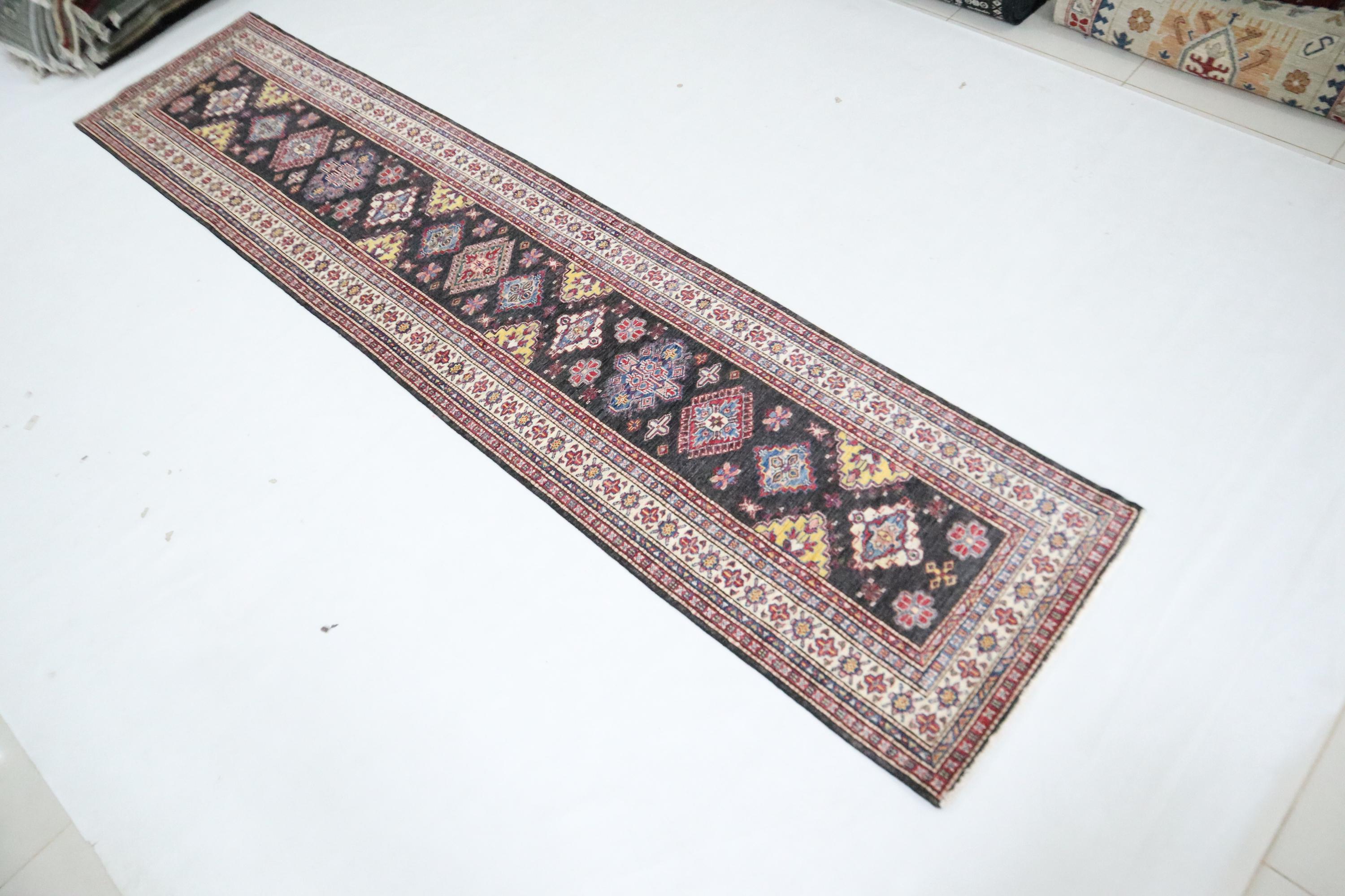 12 Ft Kazak Runner Rug, Black Afghan Hand Knotted Geometric Veg Dye Wool Runner, Large Runner, Traditional Runner, Bedroom Runner, Runners