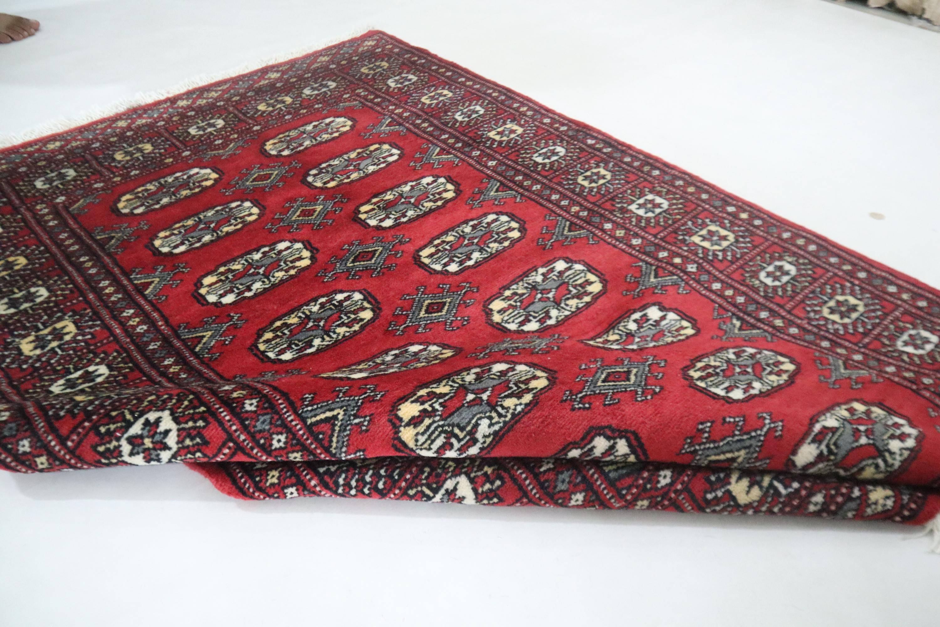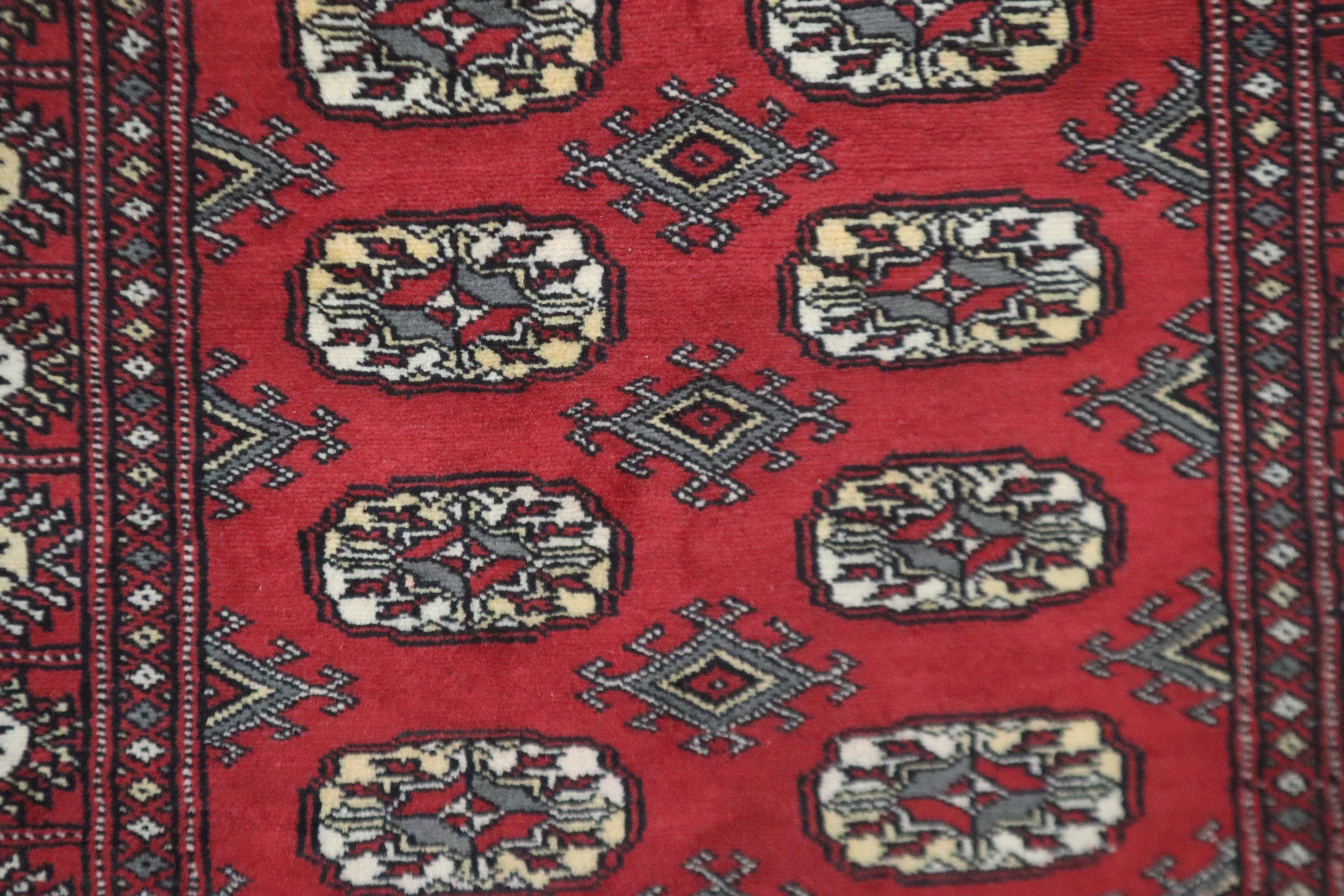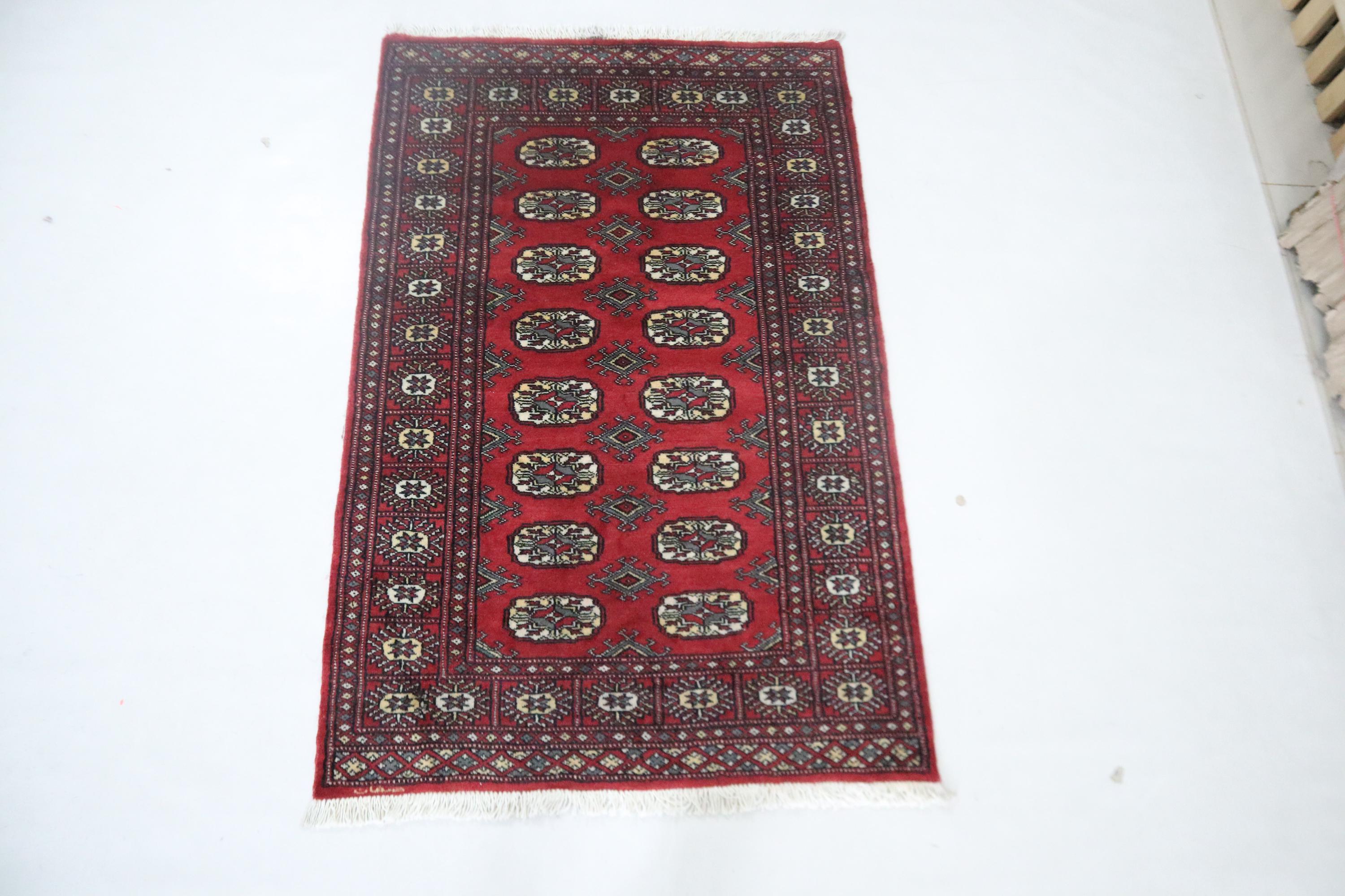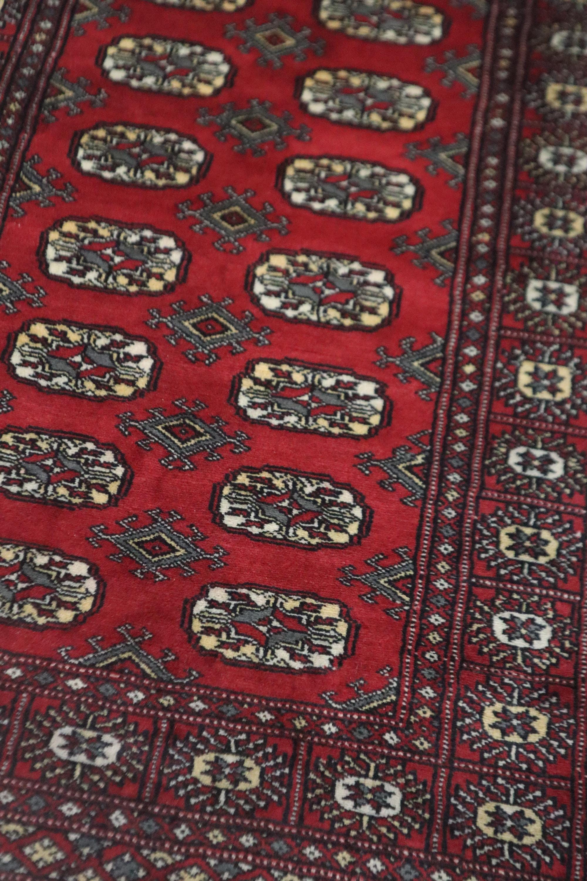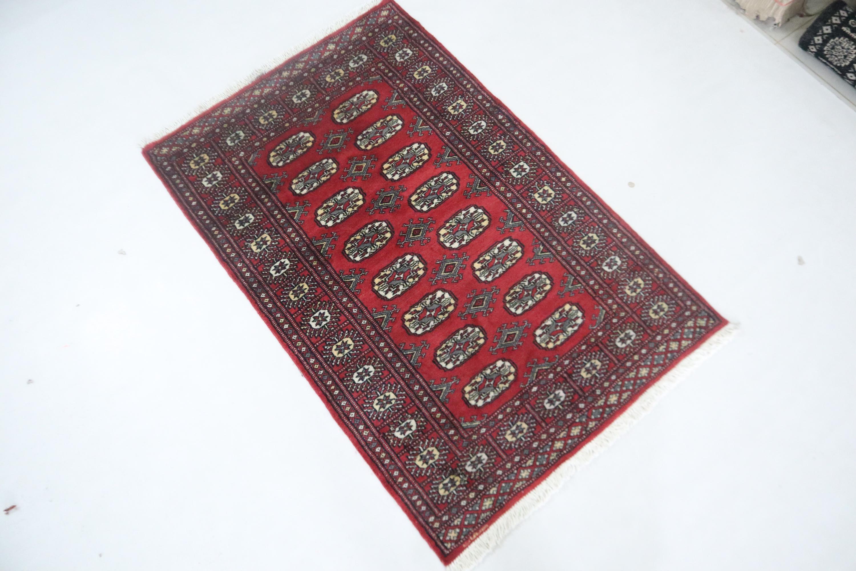 3x5 Ft Red Mori Bokhara Area Rug, Hand Knotted Soft Wool Rug, Geometric Tribal Rug, Gul Motif Rug, Entryway Rug, Hallway Rugs, Office Rug