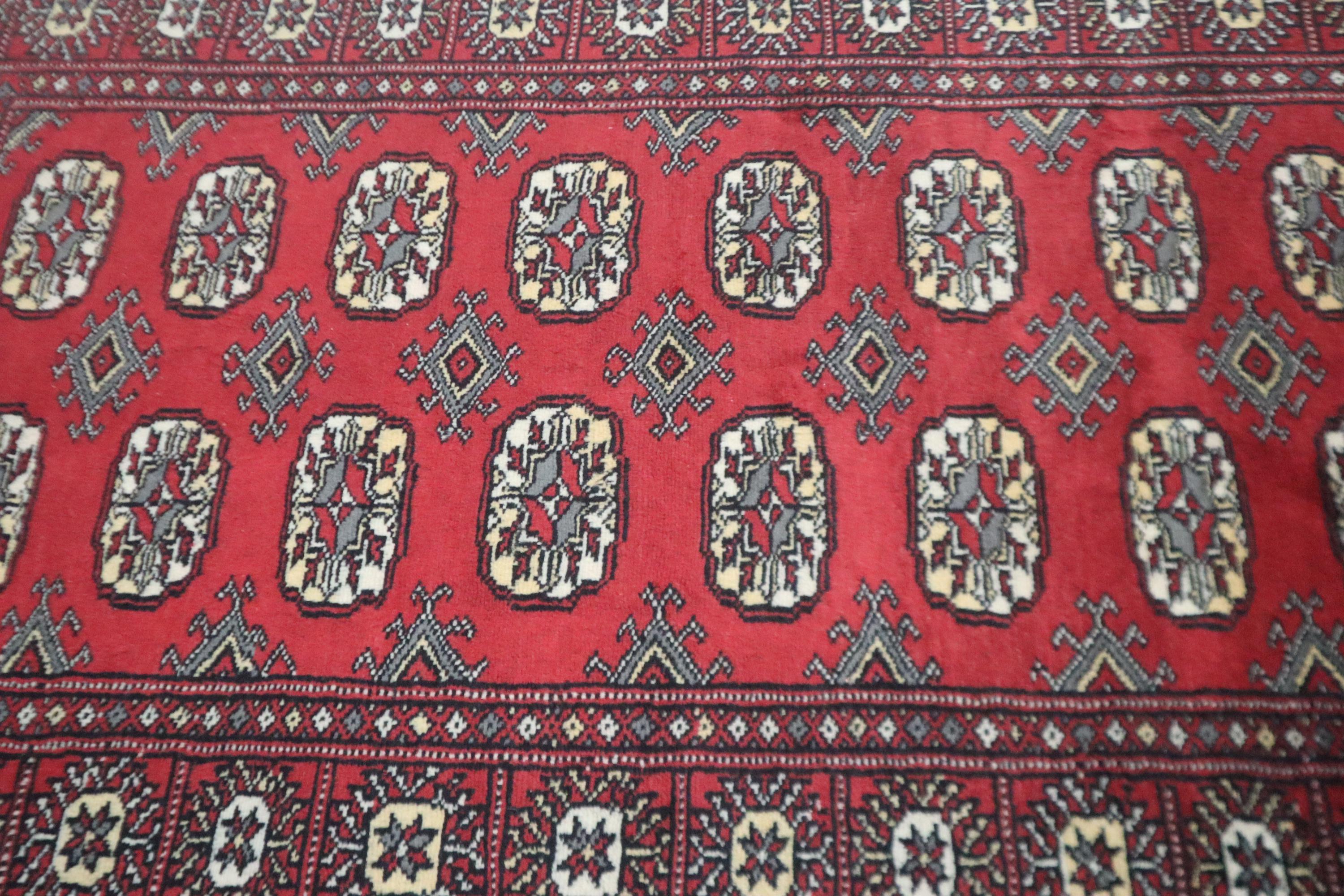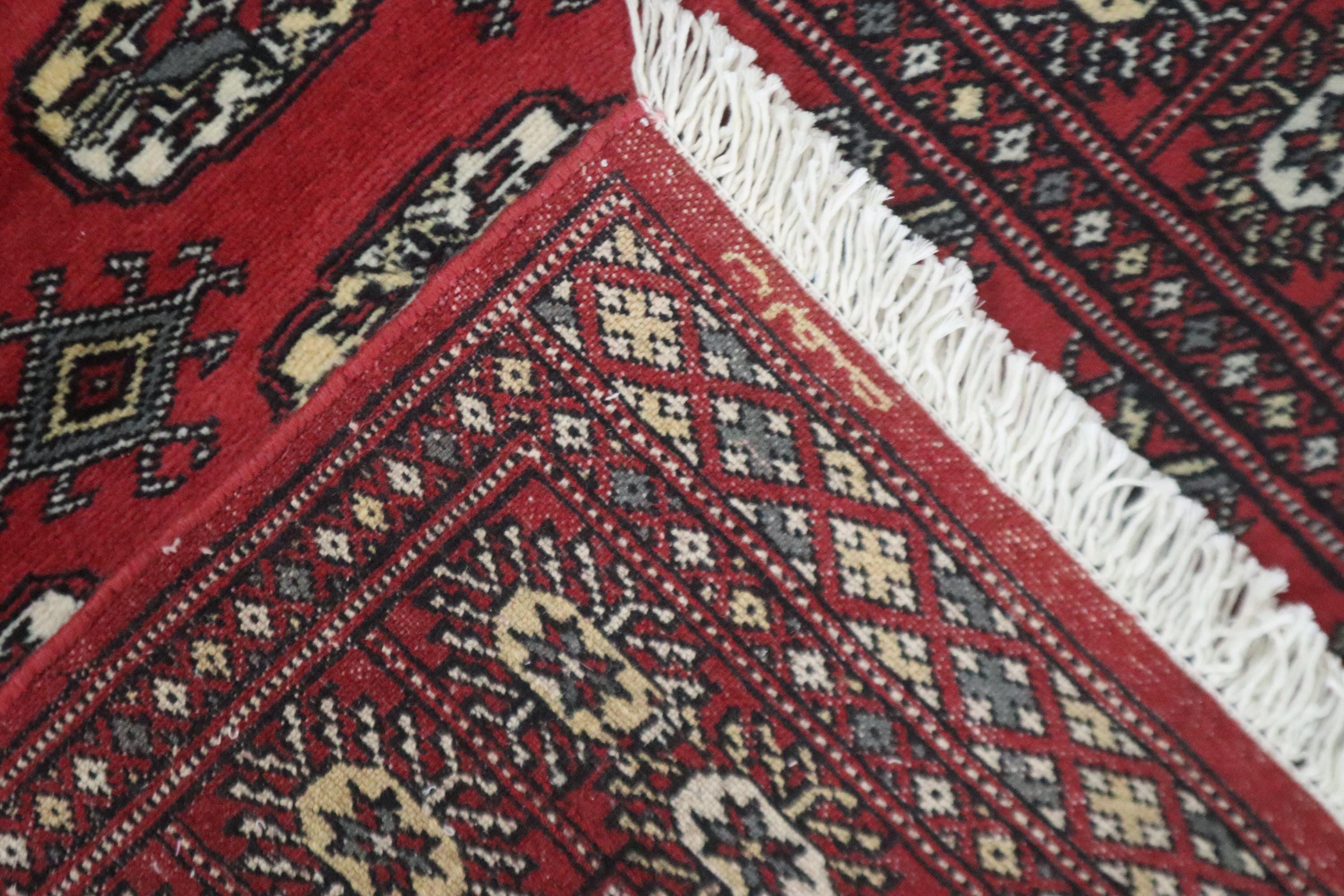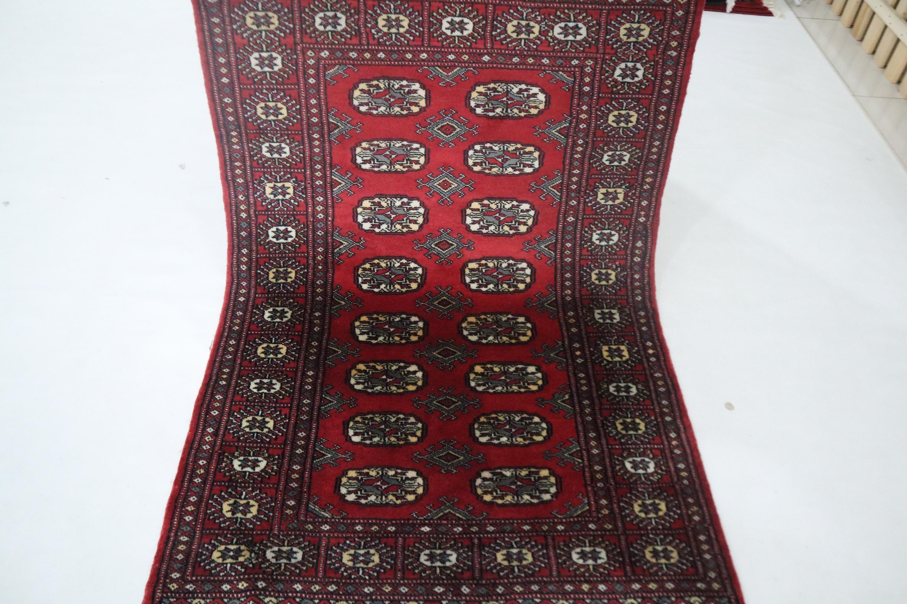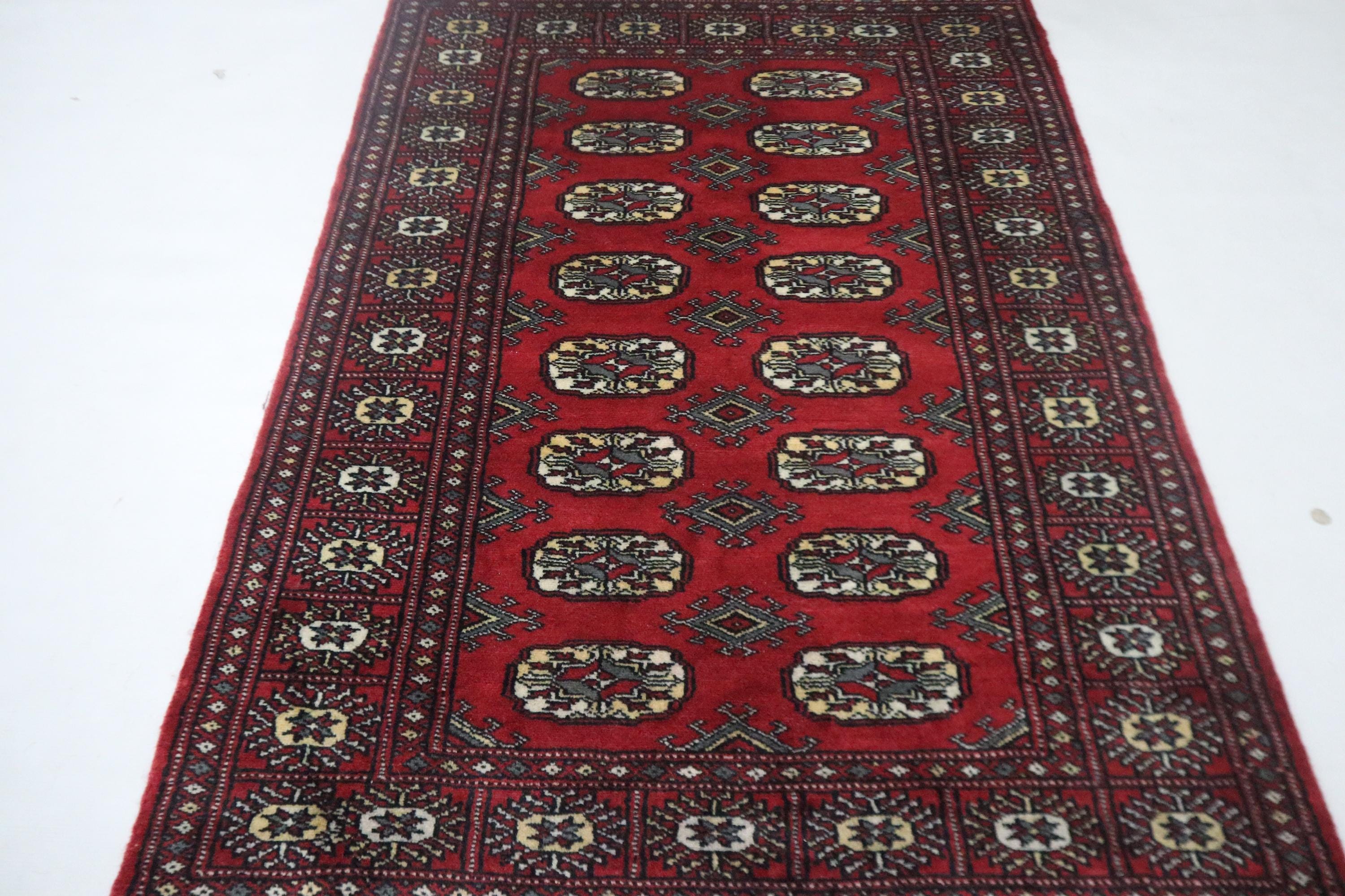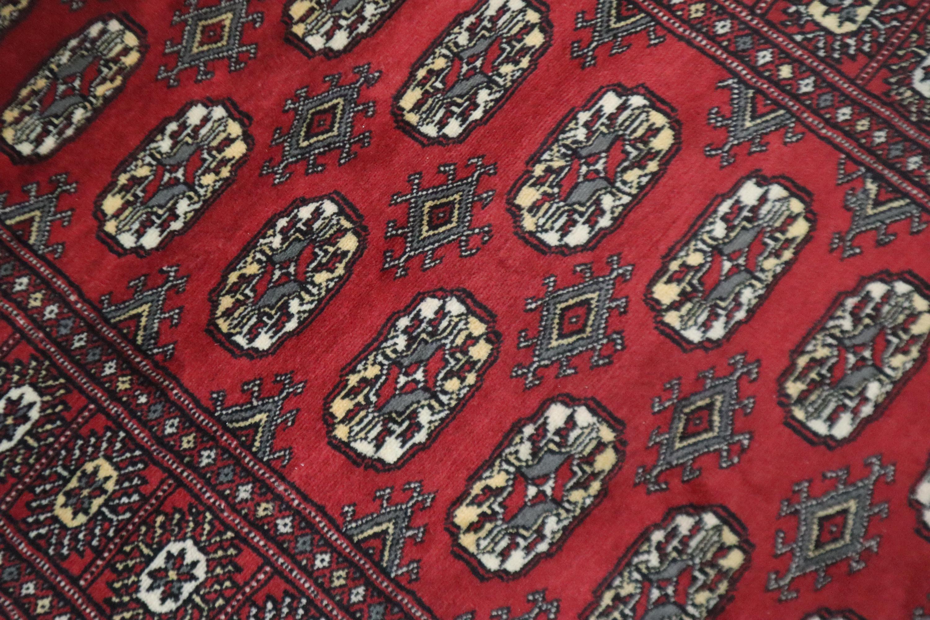3x5 Ft Red Mori Bokhara Area Rug, Hand Knotted Soft Wool Rug, Geometric Tribal Rug, Gul Motif Rug, Entryway Rug, Hallway Rugs, Office Rug
