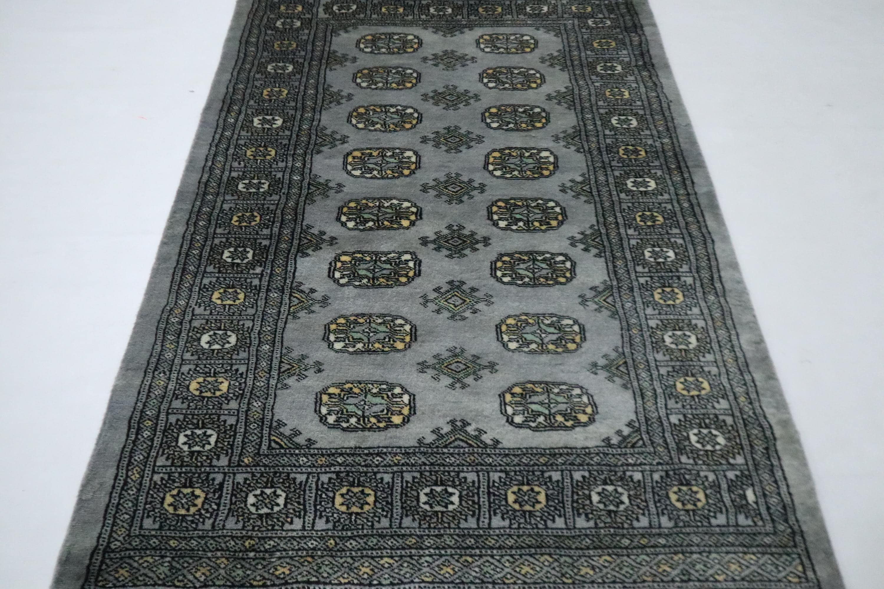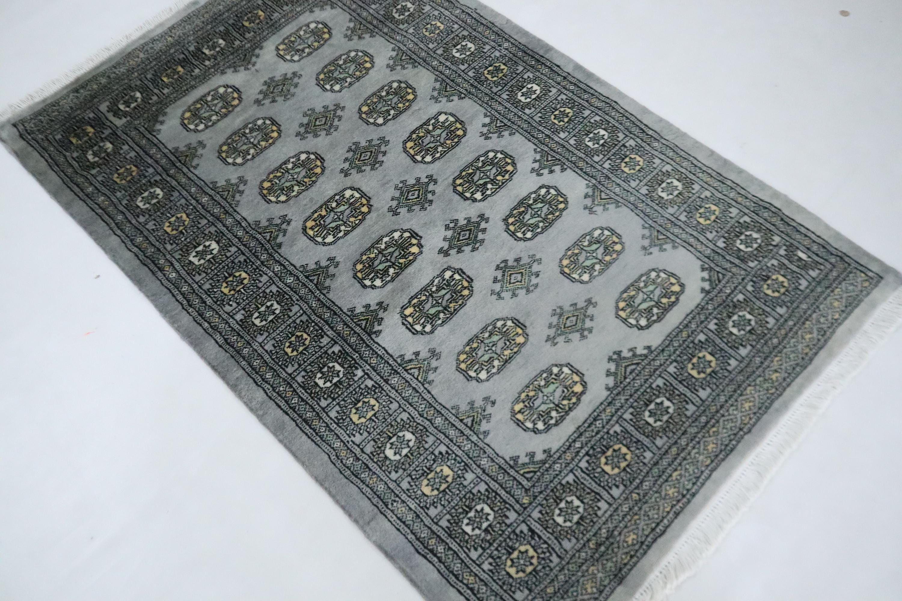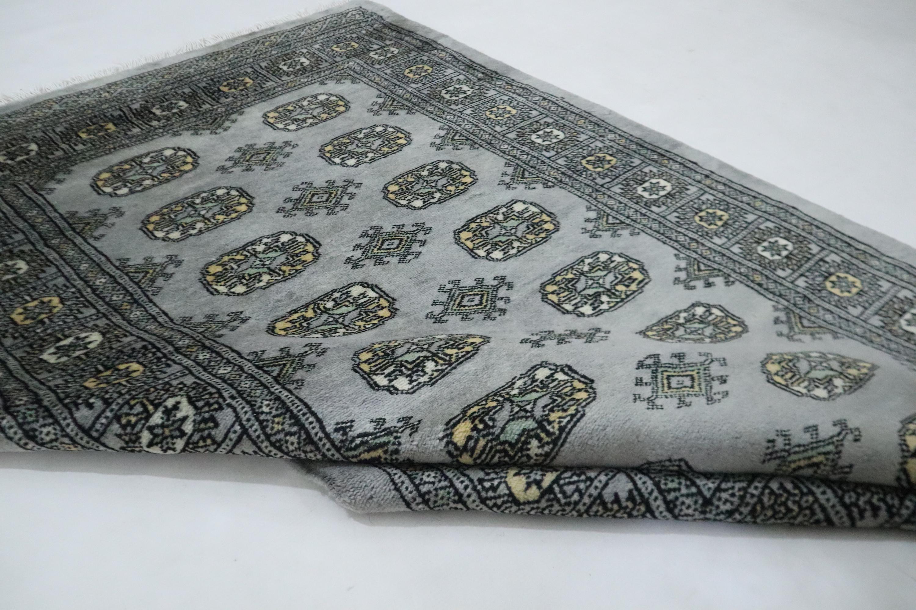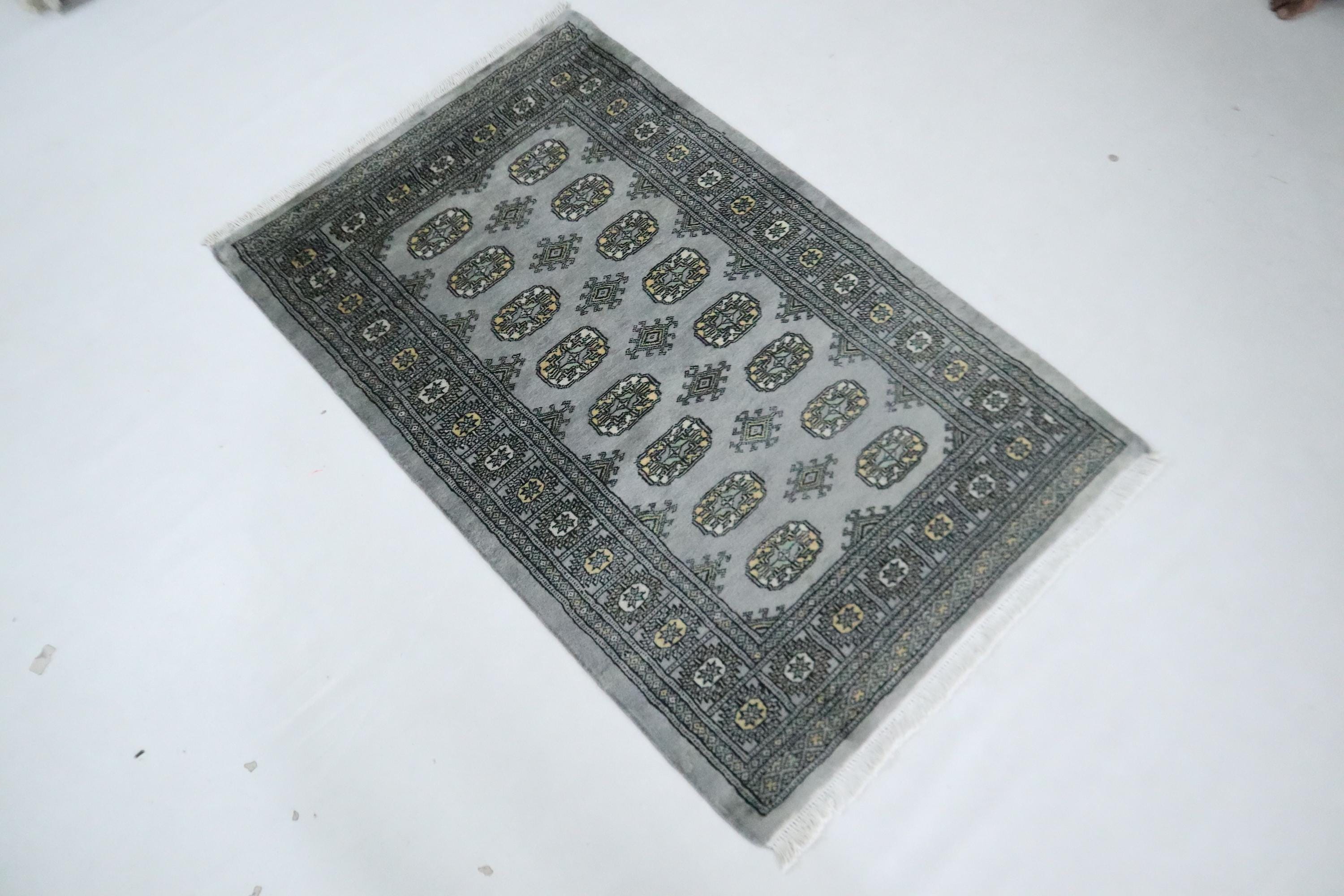 3x5 Ft Mori Bokhara Area Rug, Gray Rug, Hand Knotted Rug, Tribal Rug, Oriental Rug, Geometric Rug, Soft Wool Rug, Kitchen Rug, Entryway Rug