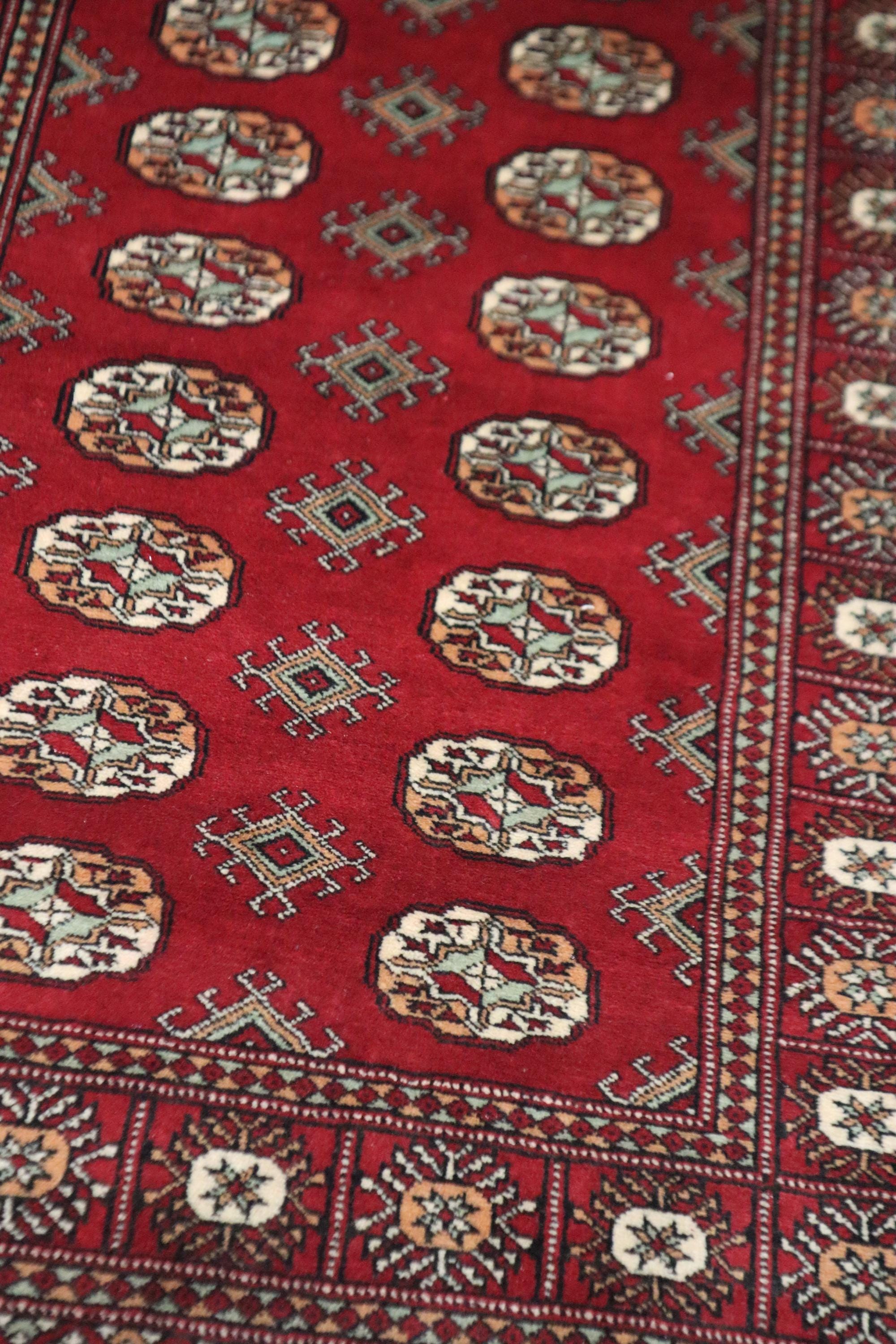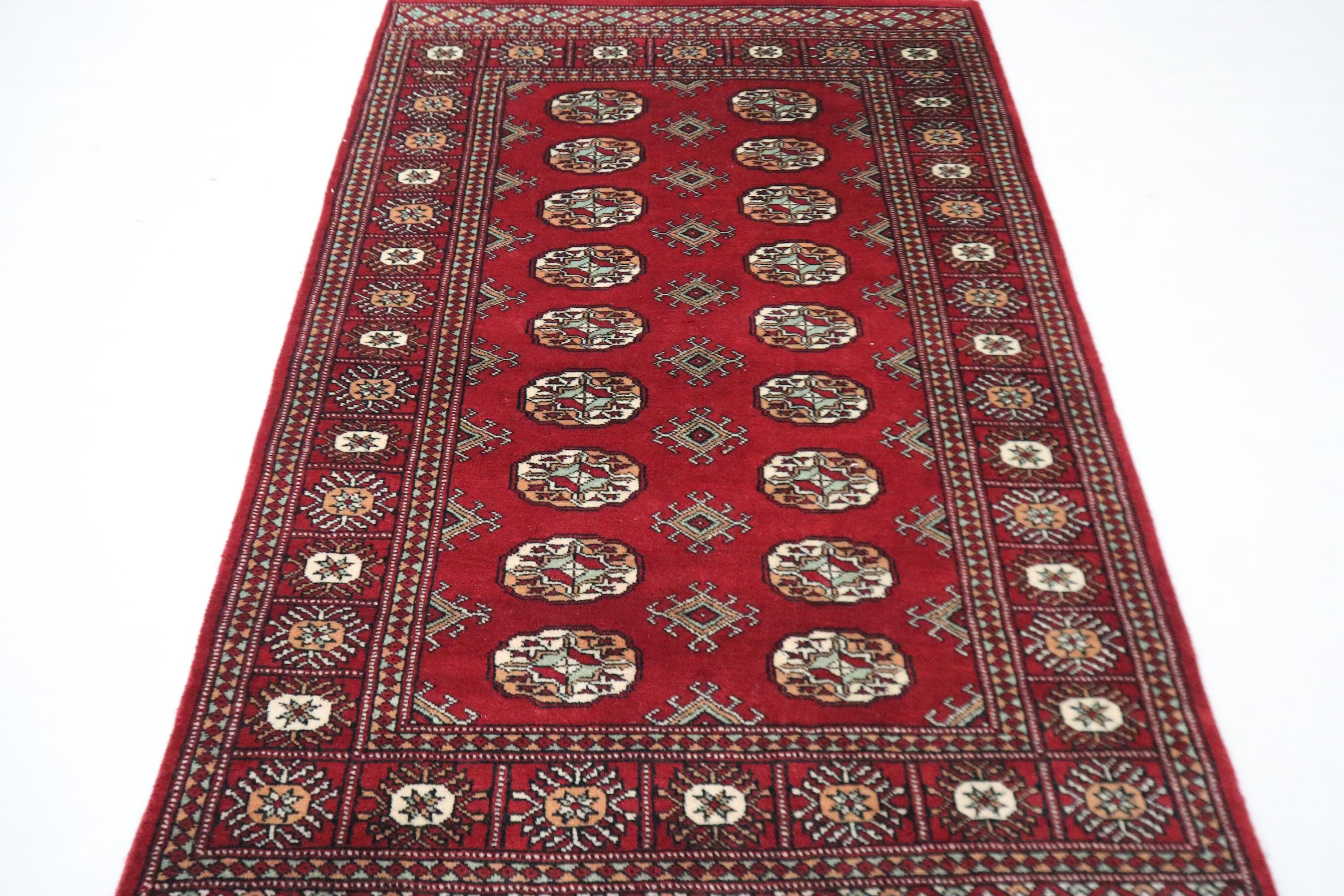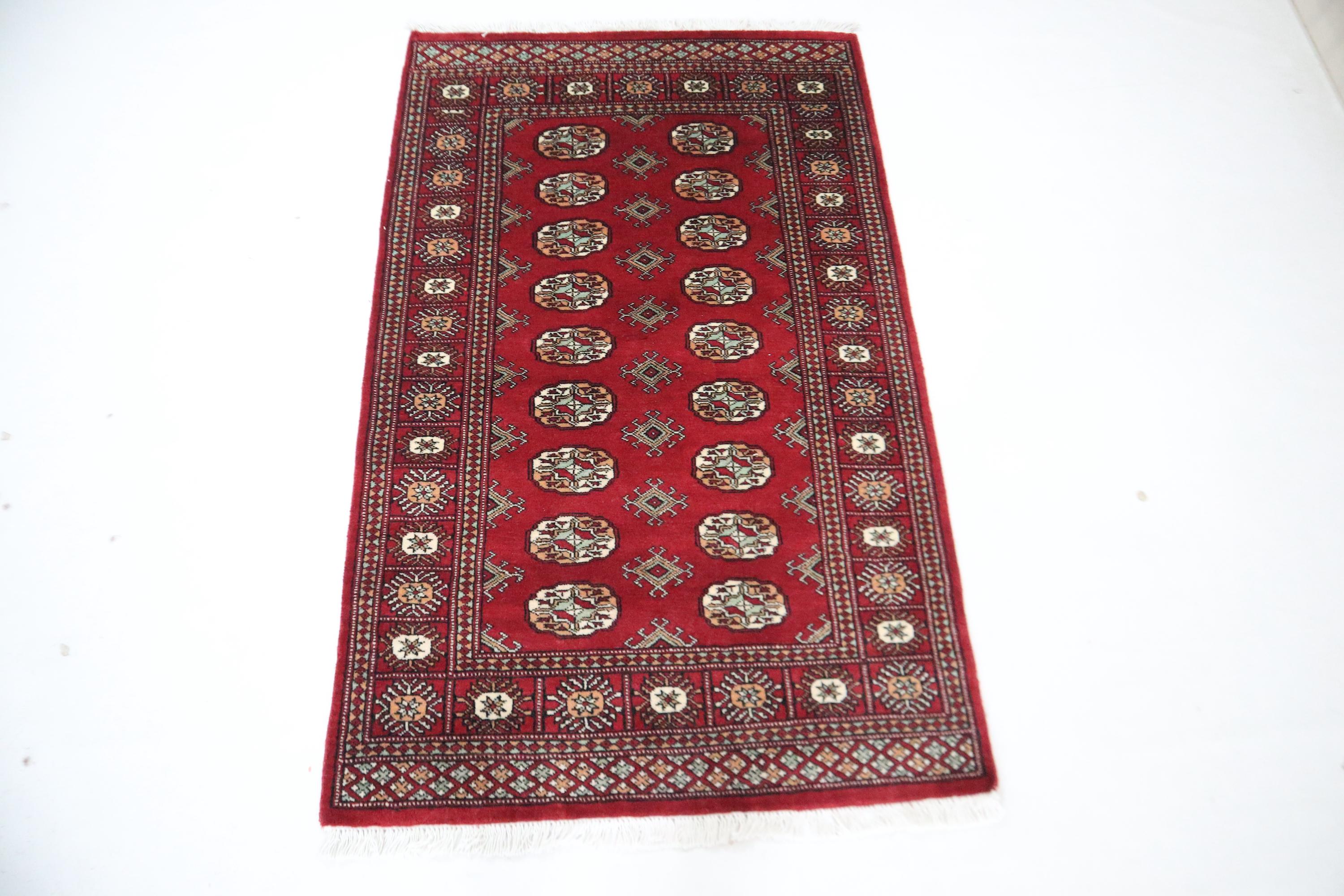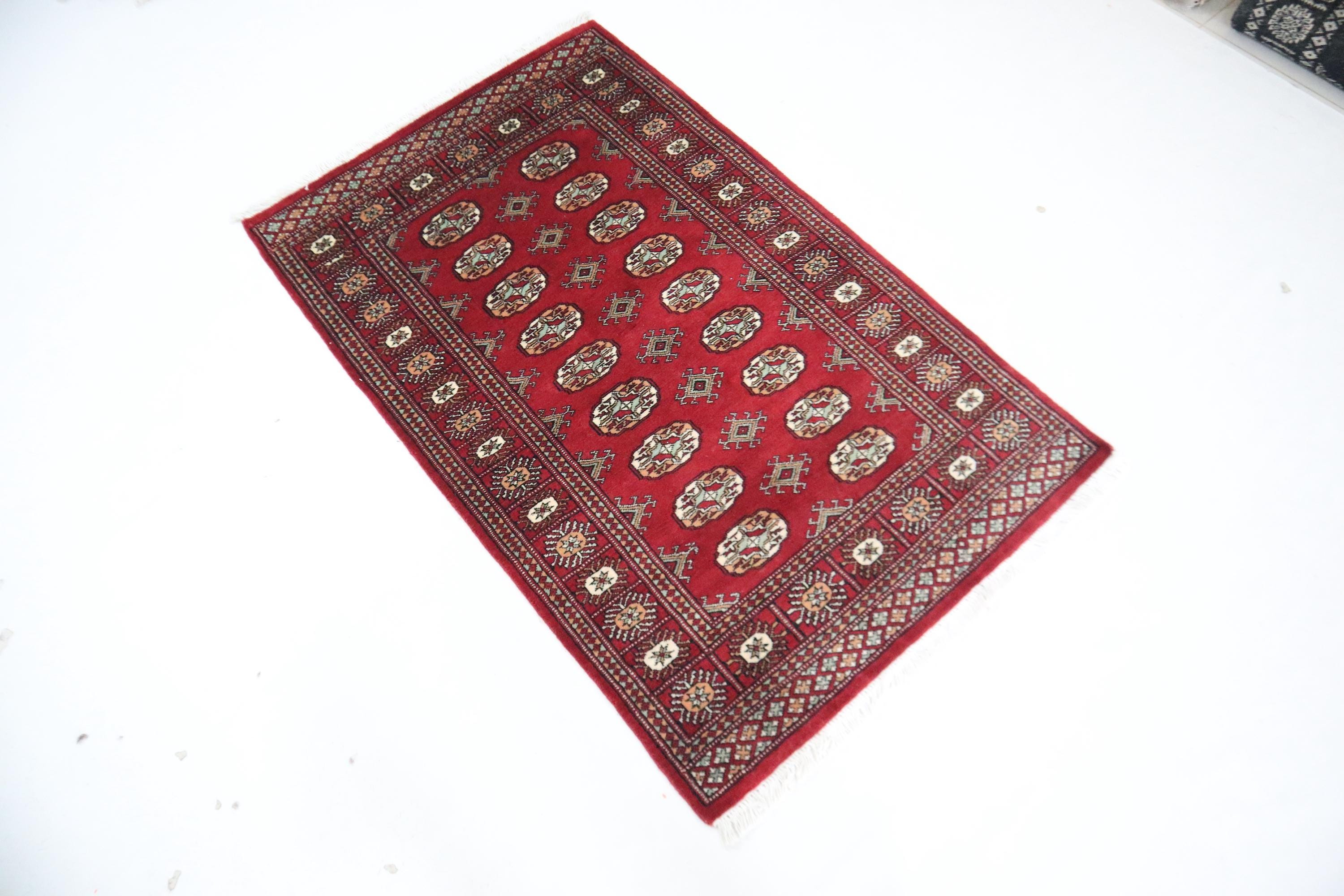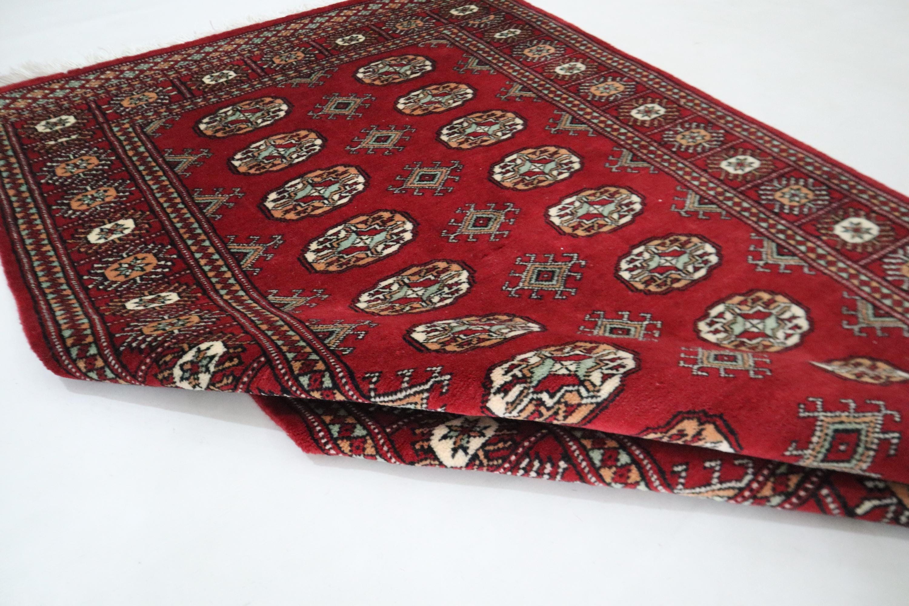 3x5 Ft Mori Bokhara Area Rug, Red Rug, Hand Knotted Rug, Soft Wool Rug, Tribal Rug, Geometric Rug, Oriental Rug, Entryway Rug, Hallway Rug