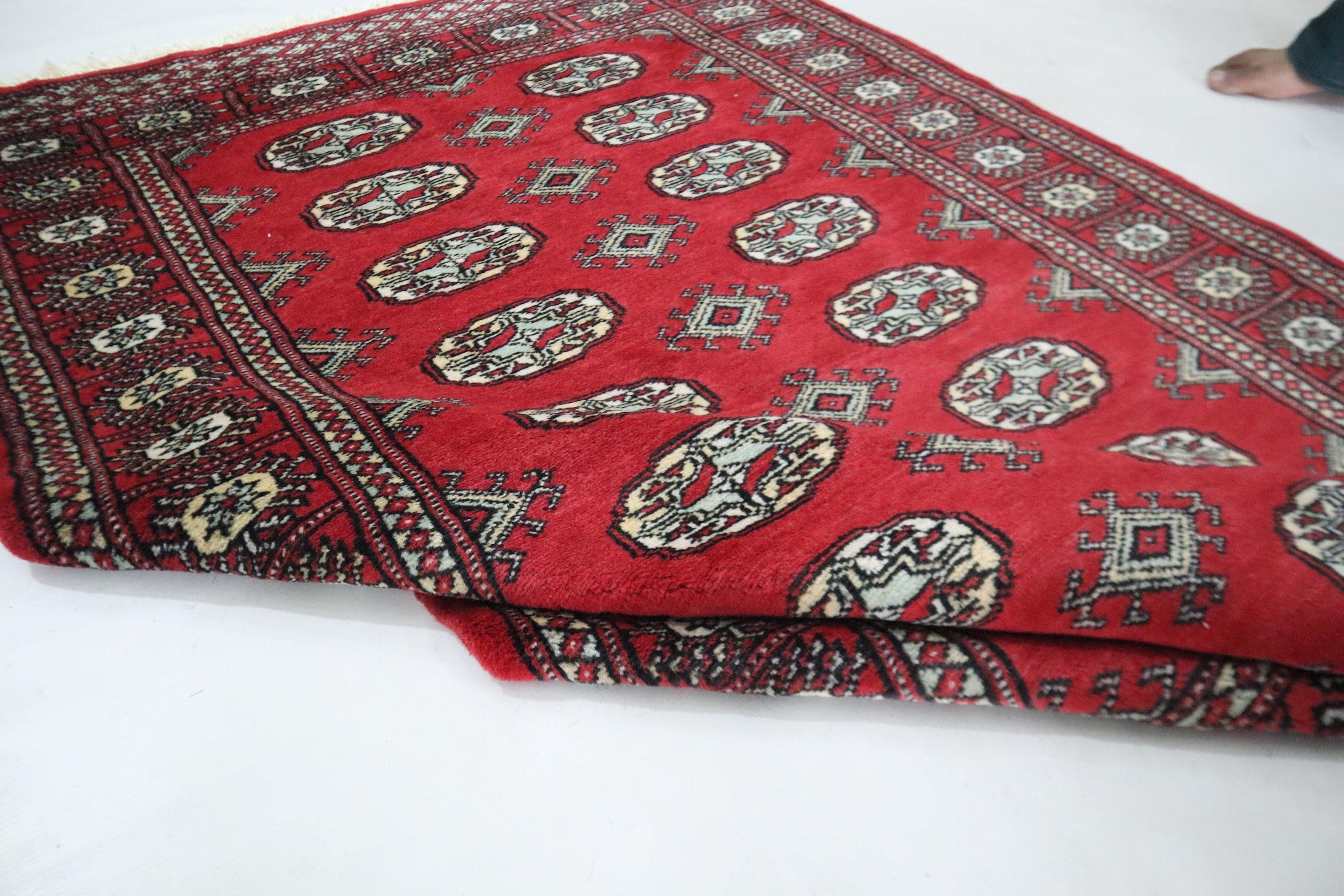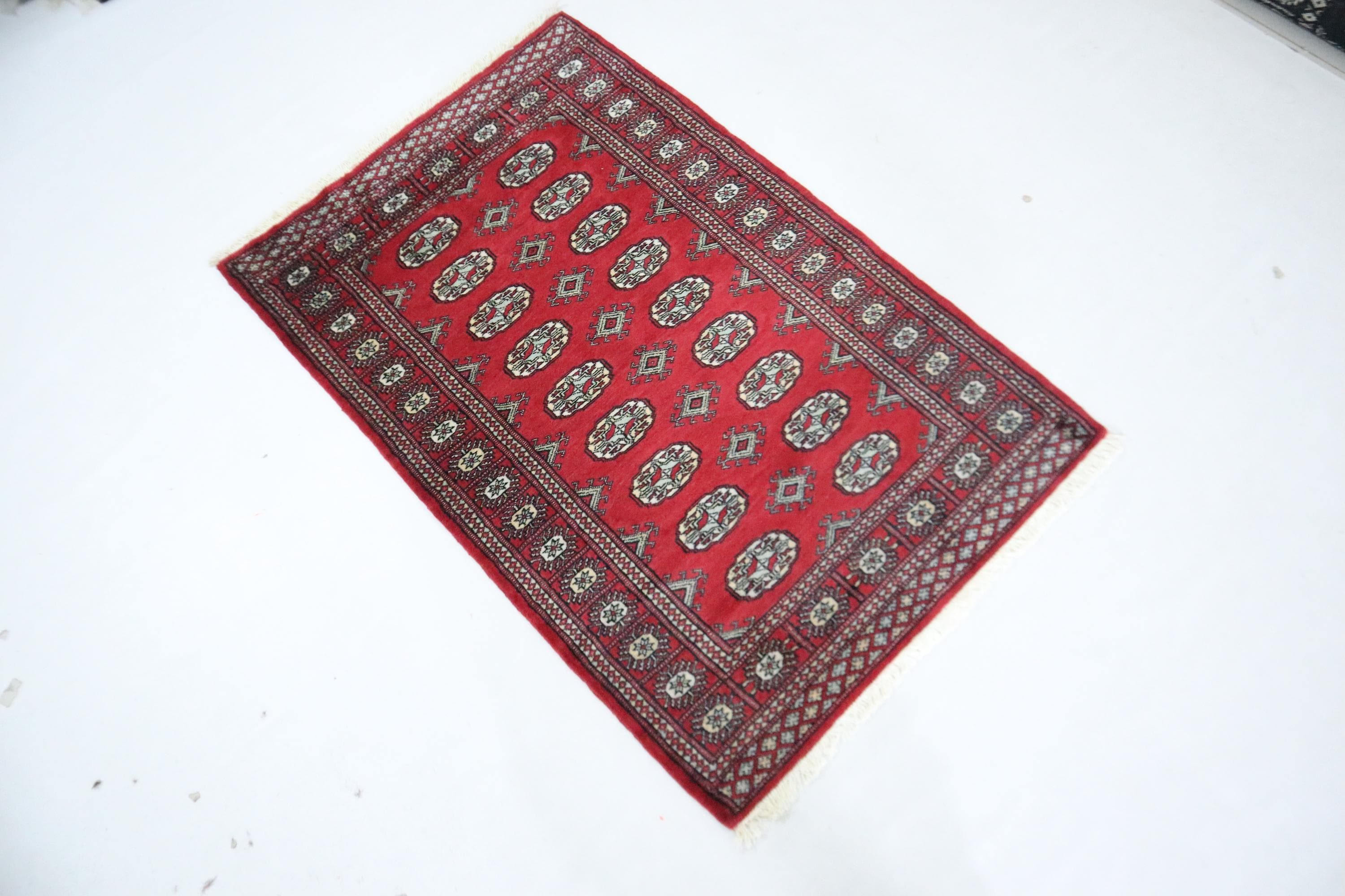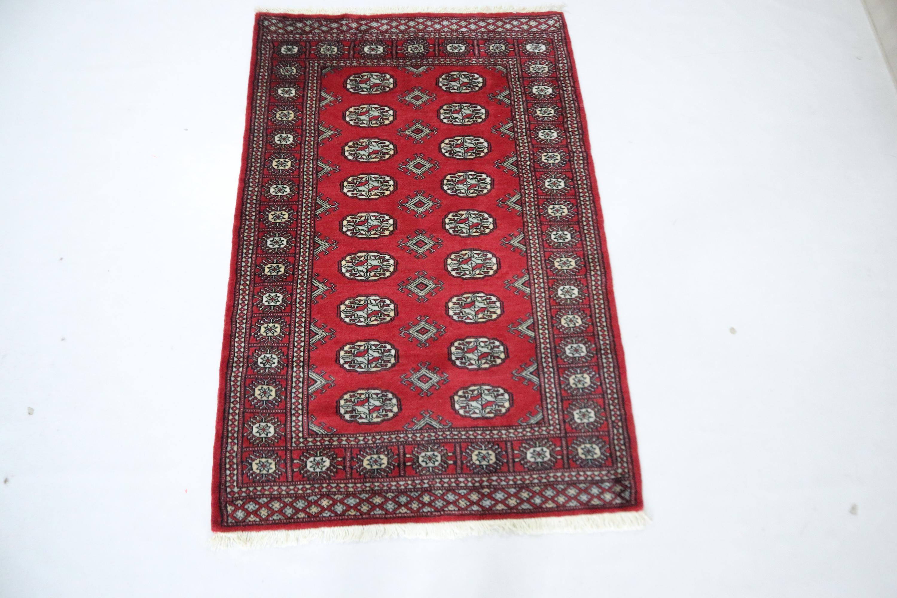 3x5 Ft Mori Bokhara Area Rug, Red Rug, Hand Knotted Rug, Soft Wool Rug, Tribal Rugs, Geometric Rug, Entryway Rug, Hallway Rug, Foyer Rug