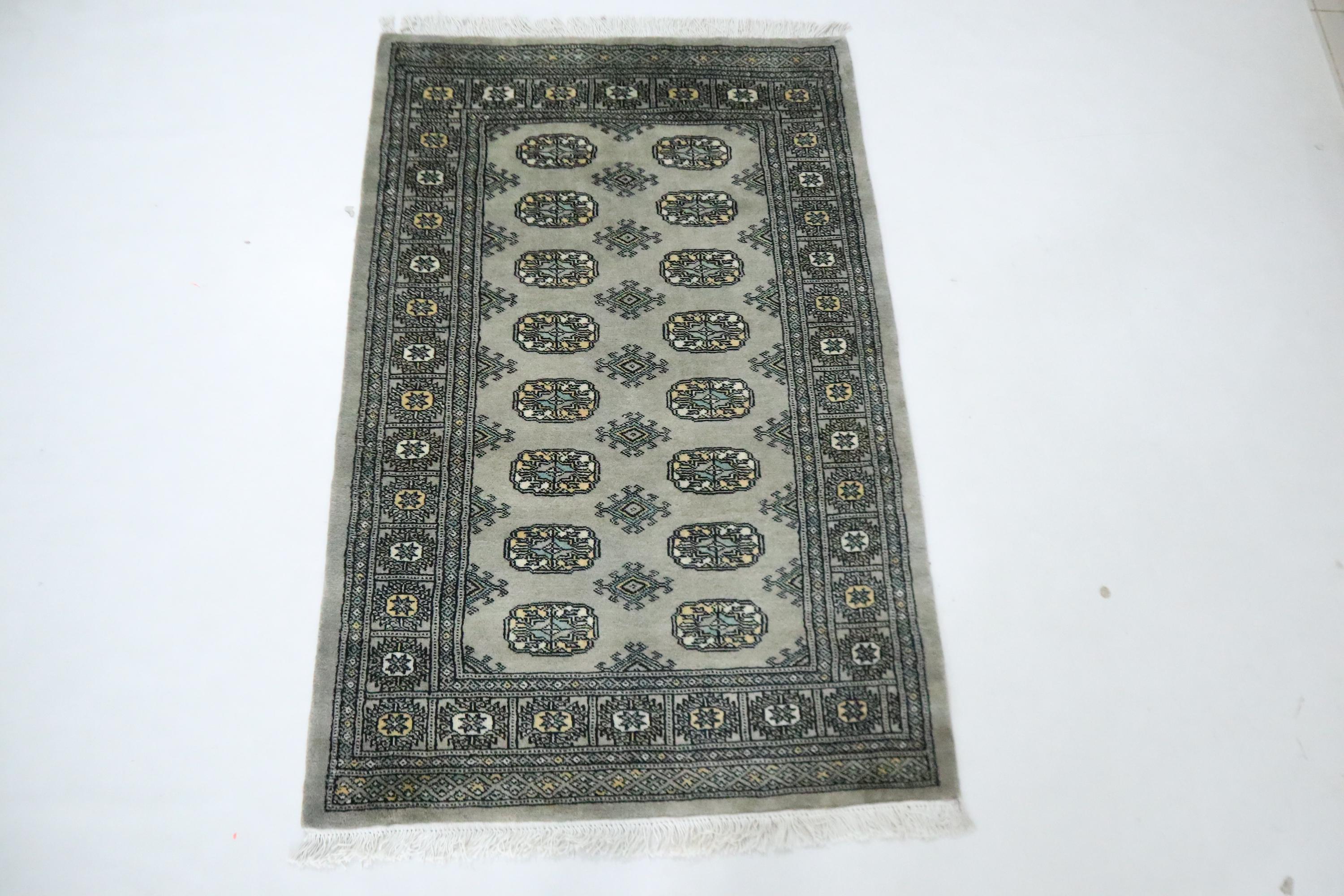 3x5 Ft Gray Mori Bokhara Area Rug, Hand Knotted Rug, Tribal Rug, Soft Wool Rug, Geometric Pattern Rug, Kitchen Rug, Study Room Rug, Dorm Rug
