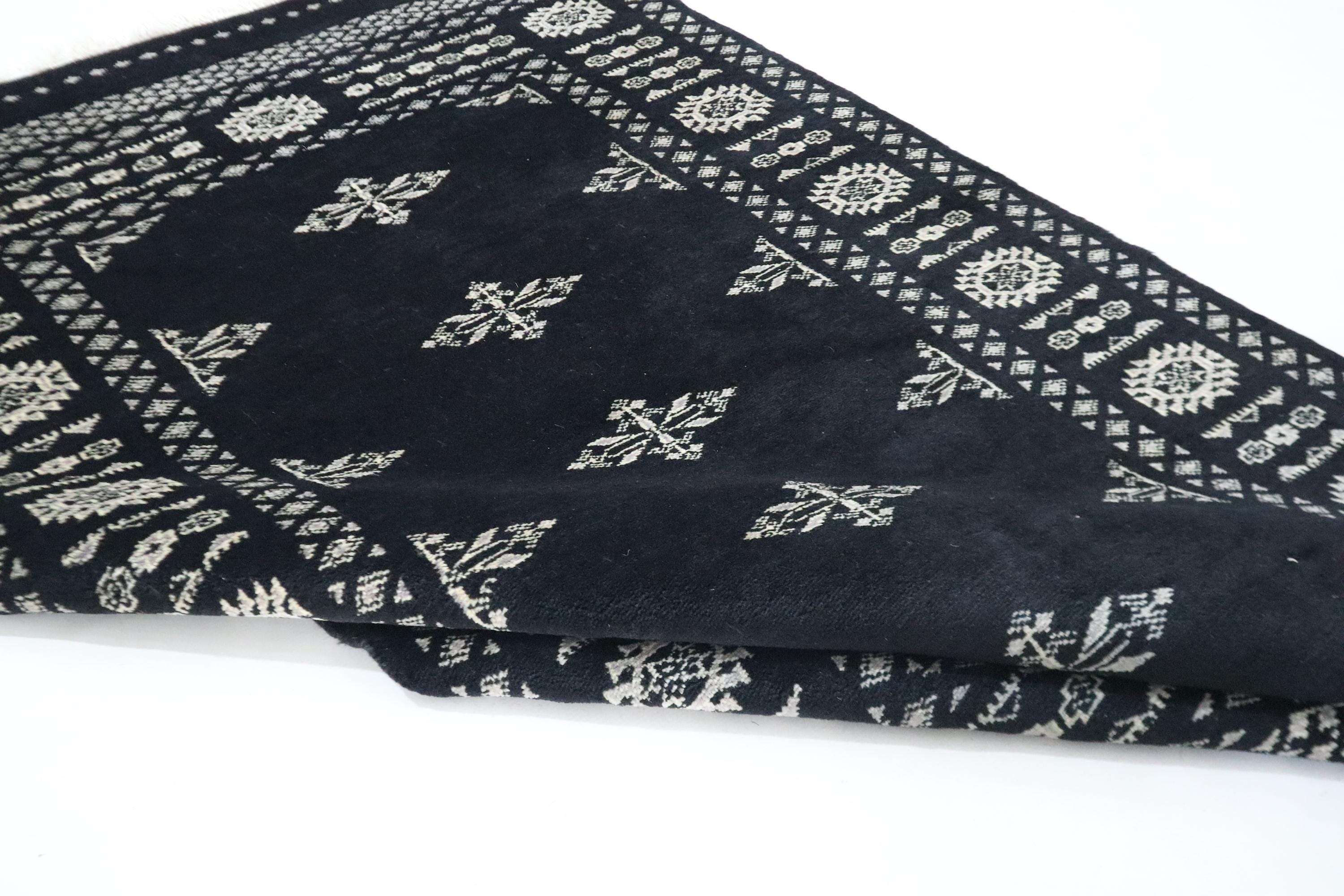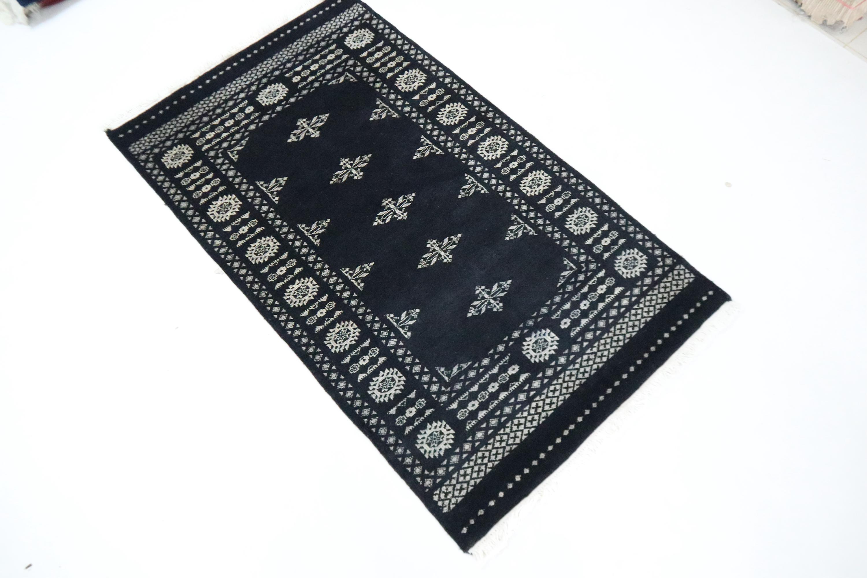 3x5 Ft Mori Bokhara Area Rug, Black Rugs, Hand Knotted Rug, Soft Wool Rug, Tribal Rug, Geometric Design Rug, Kitchen Rug, Foyer Rug, Rugs