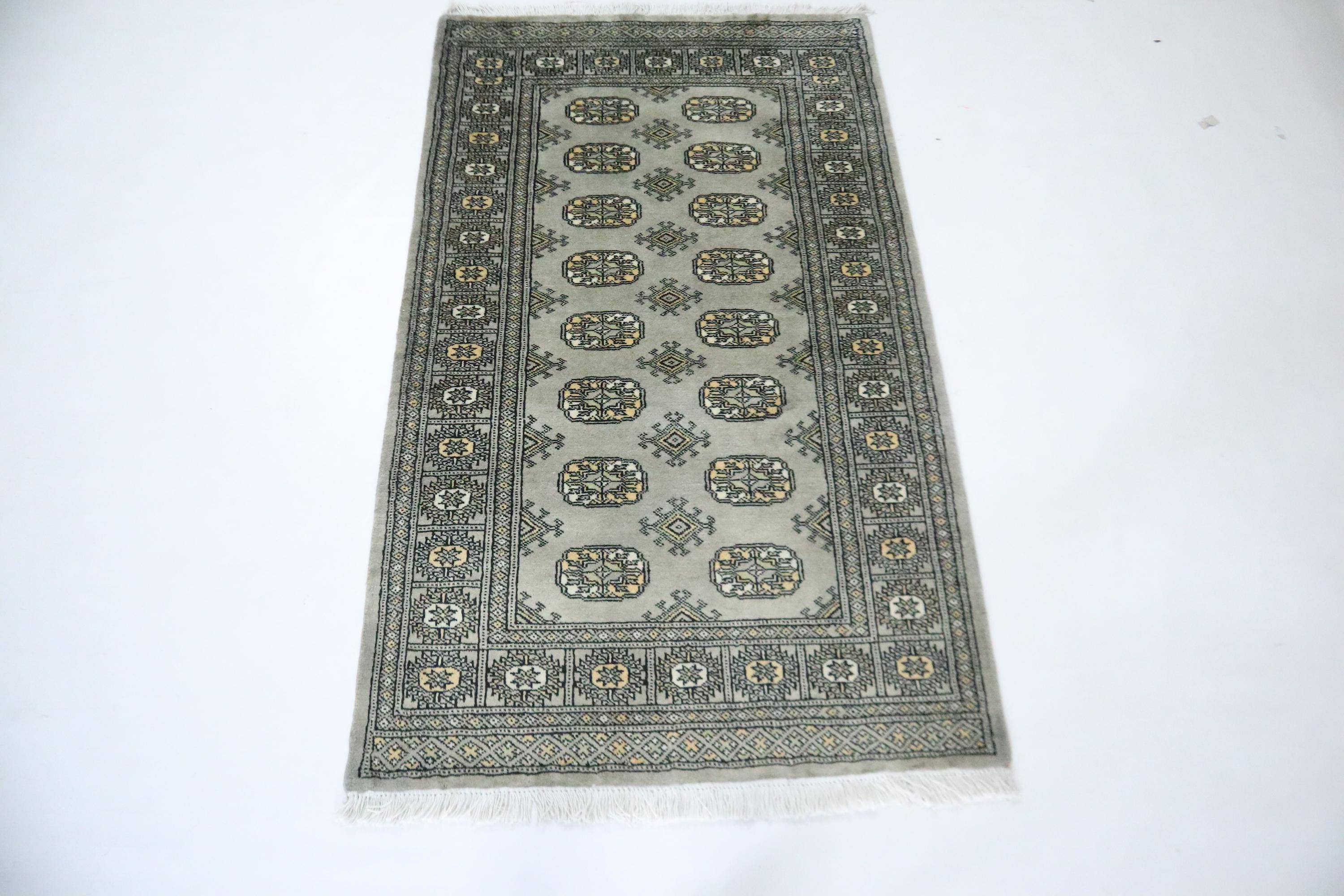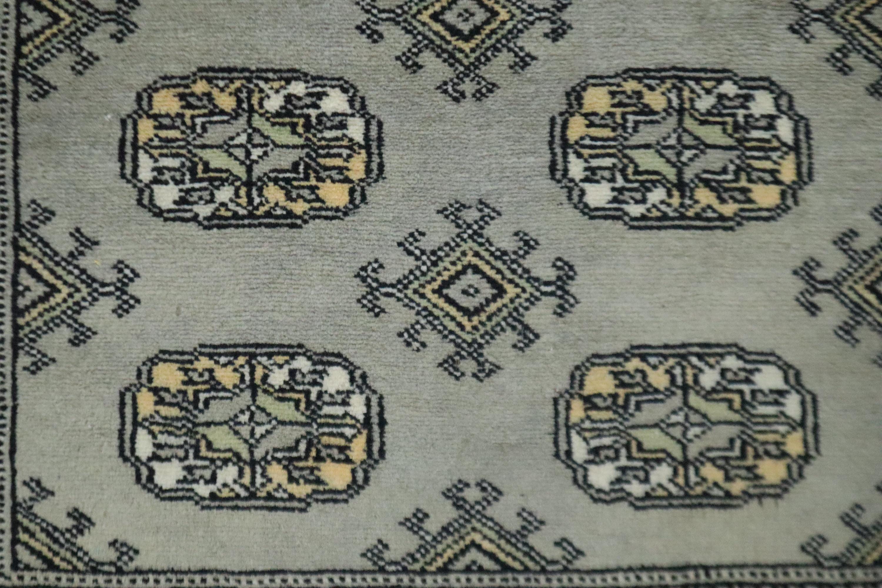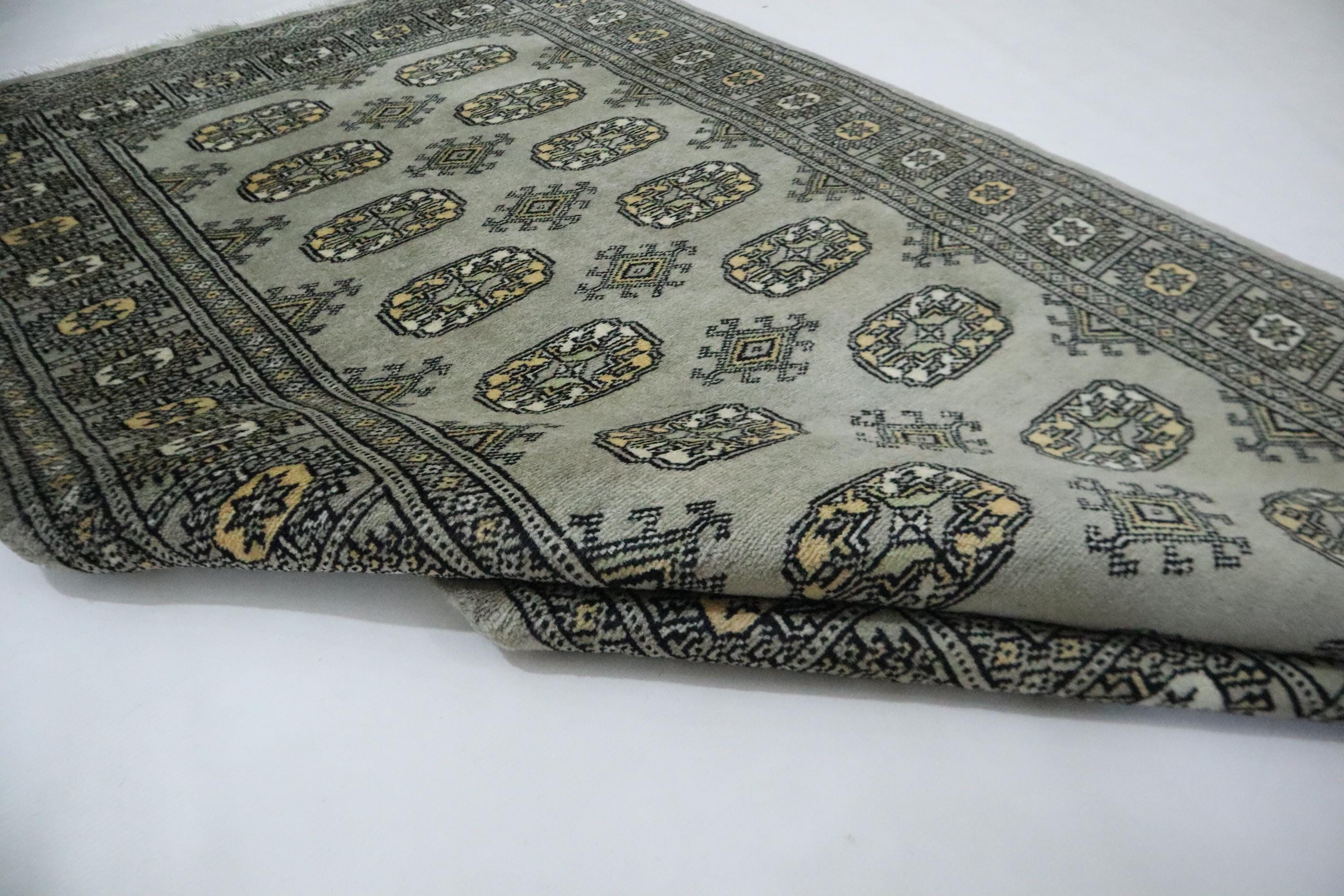 3x5 Ft Mori Bokhara Area Rug, Gray Rug, Hand Knotted Rug, Soft Wool Rug, Tribal Rug, Gul Motif Rug, Kitchen Rug, Study Room Rug, Foyer Rug