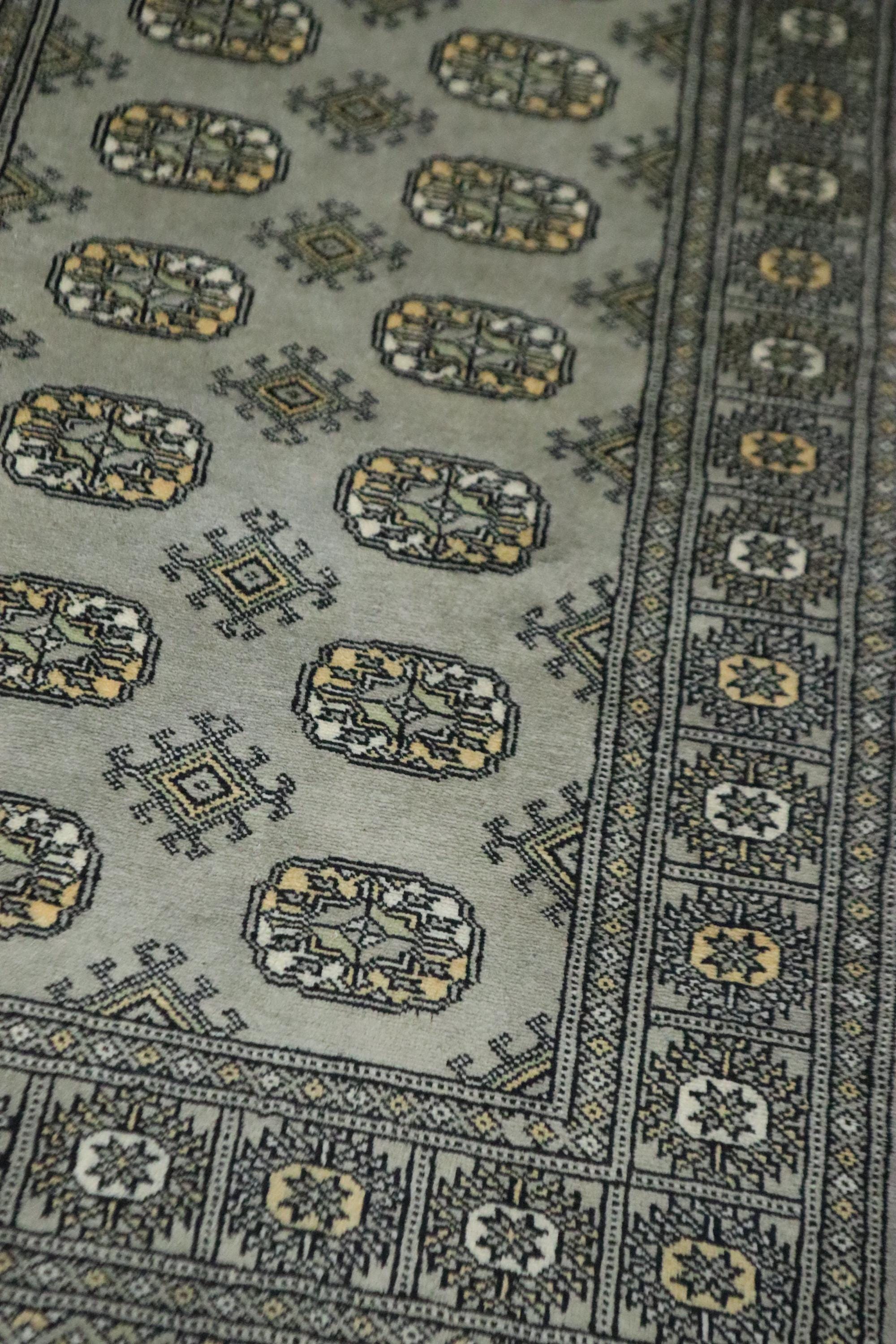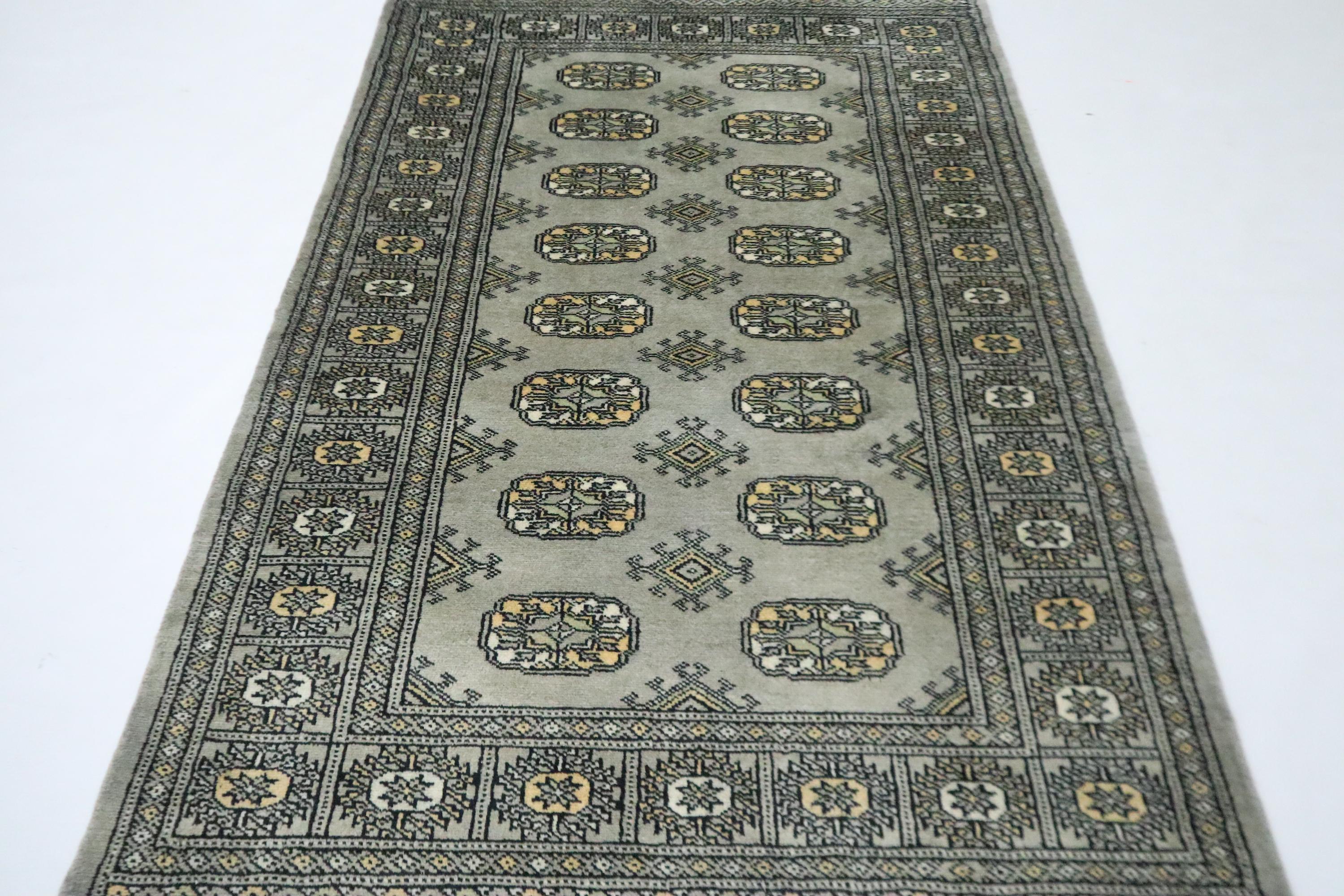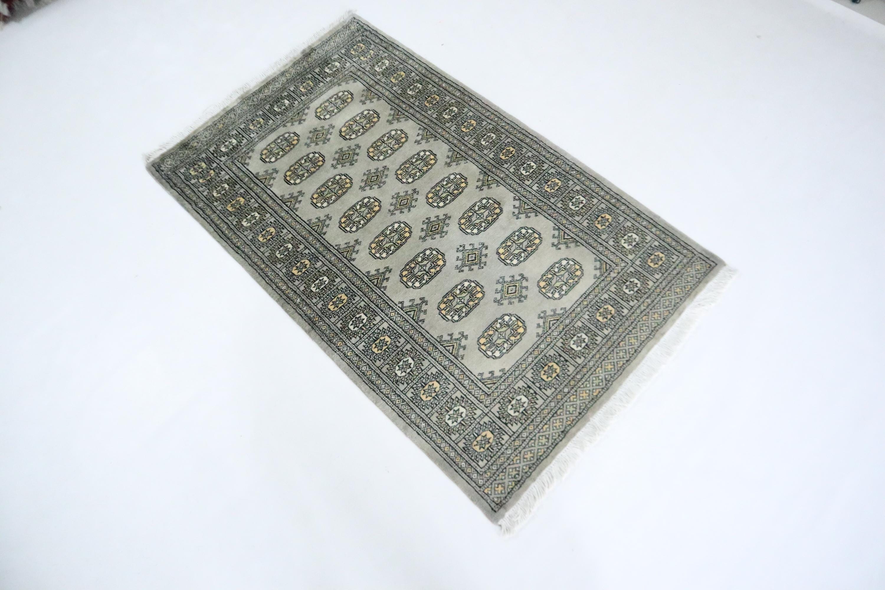 3x5 Ft Mori Bokhara Area Rug, Gray Rug, Hand Knotted Rug, Soft Wool Rug, Tribal Rug, Gul Motif Rug, Kitchen Rug, Study Room Rug, Foyer Rug