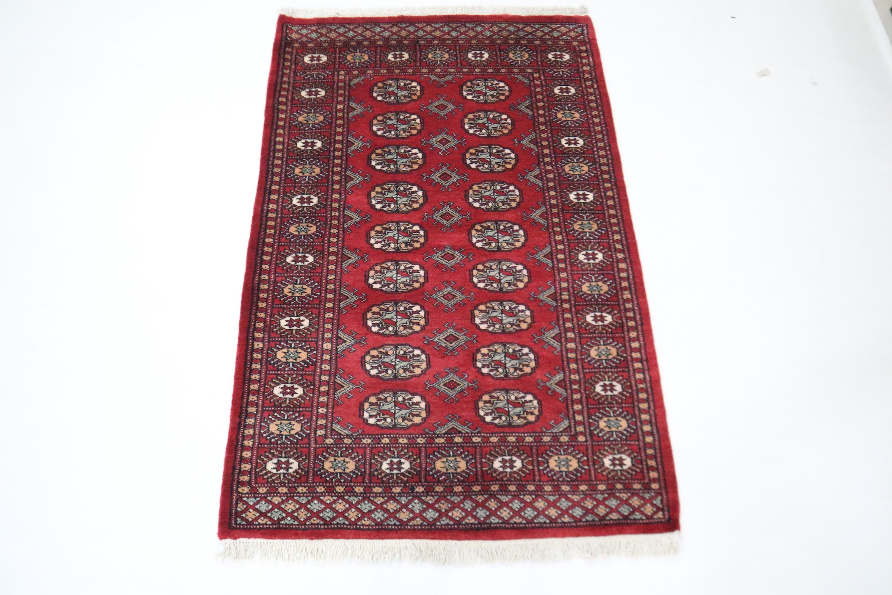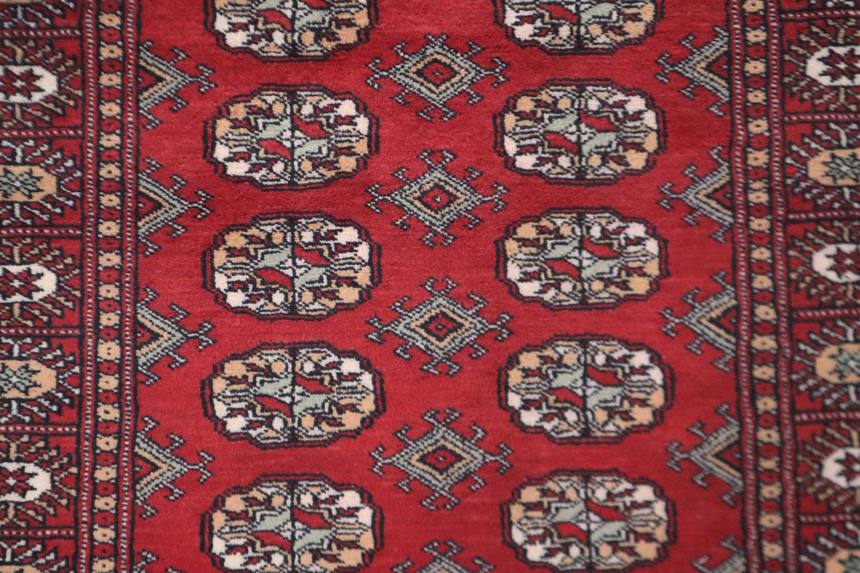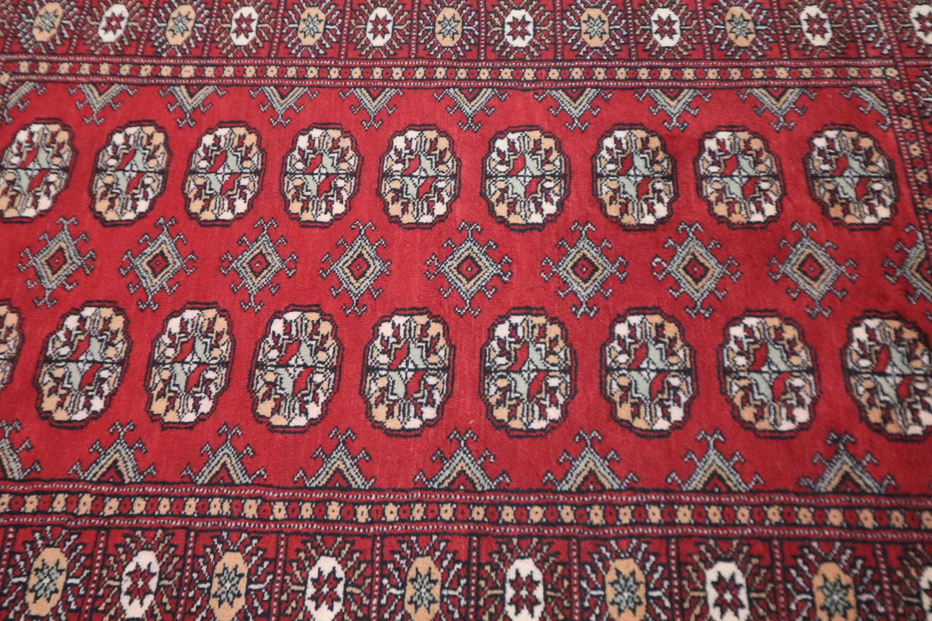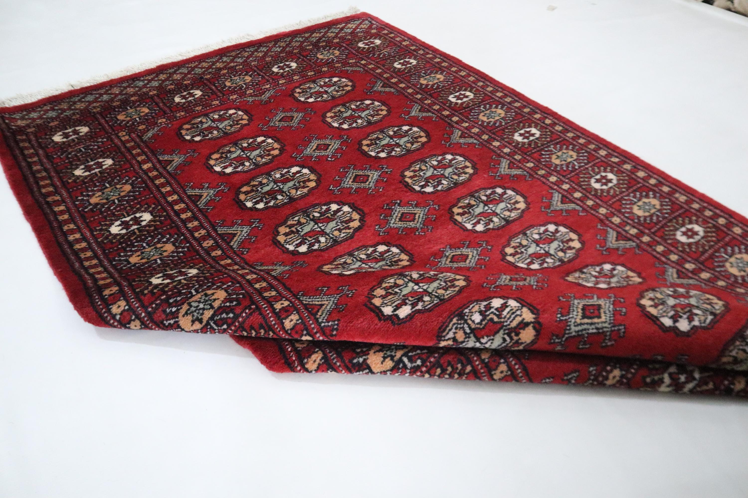 3x5 Ft Red Mori Bokhara Area Rug, Hand Knotted Soft Wool Rug, Tribal Rug, Geometric Rug, Gul Motif Rug, Bedroom Rug, Kitchen Rug, Office Rug