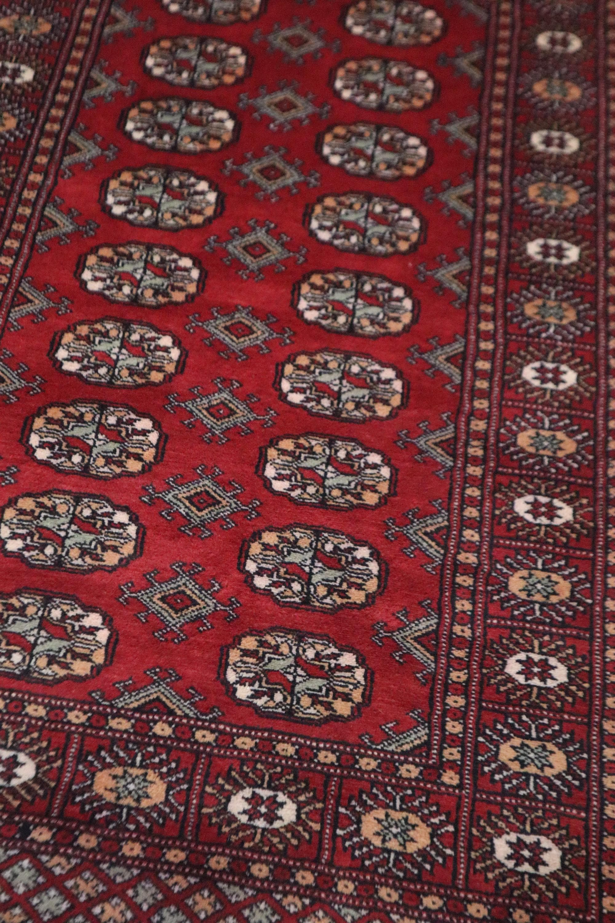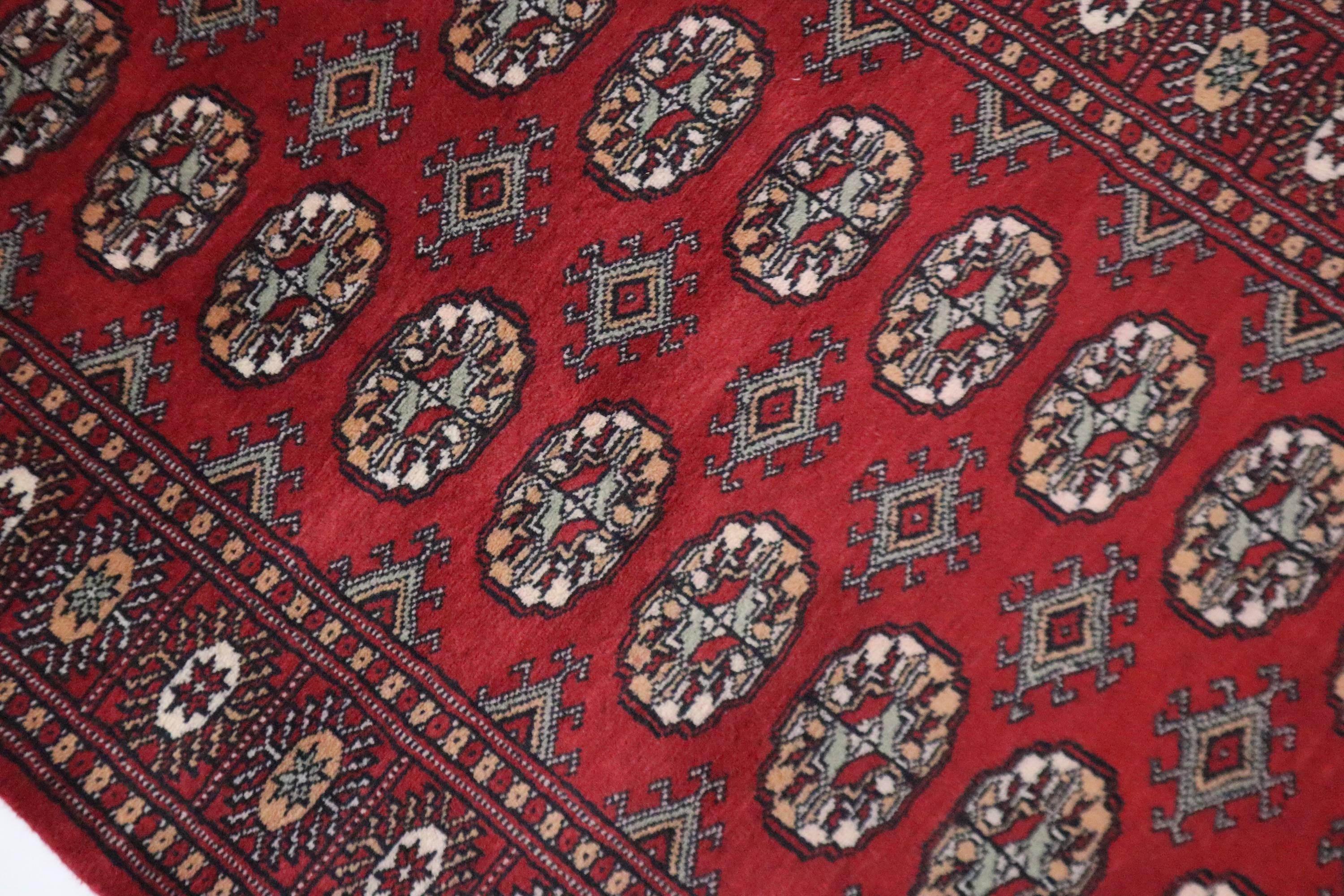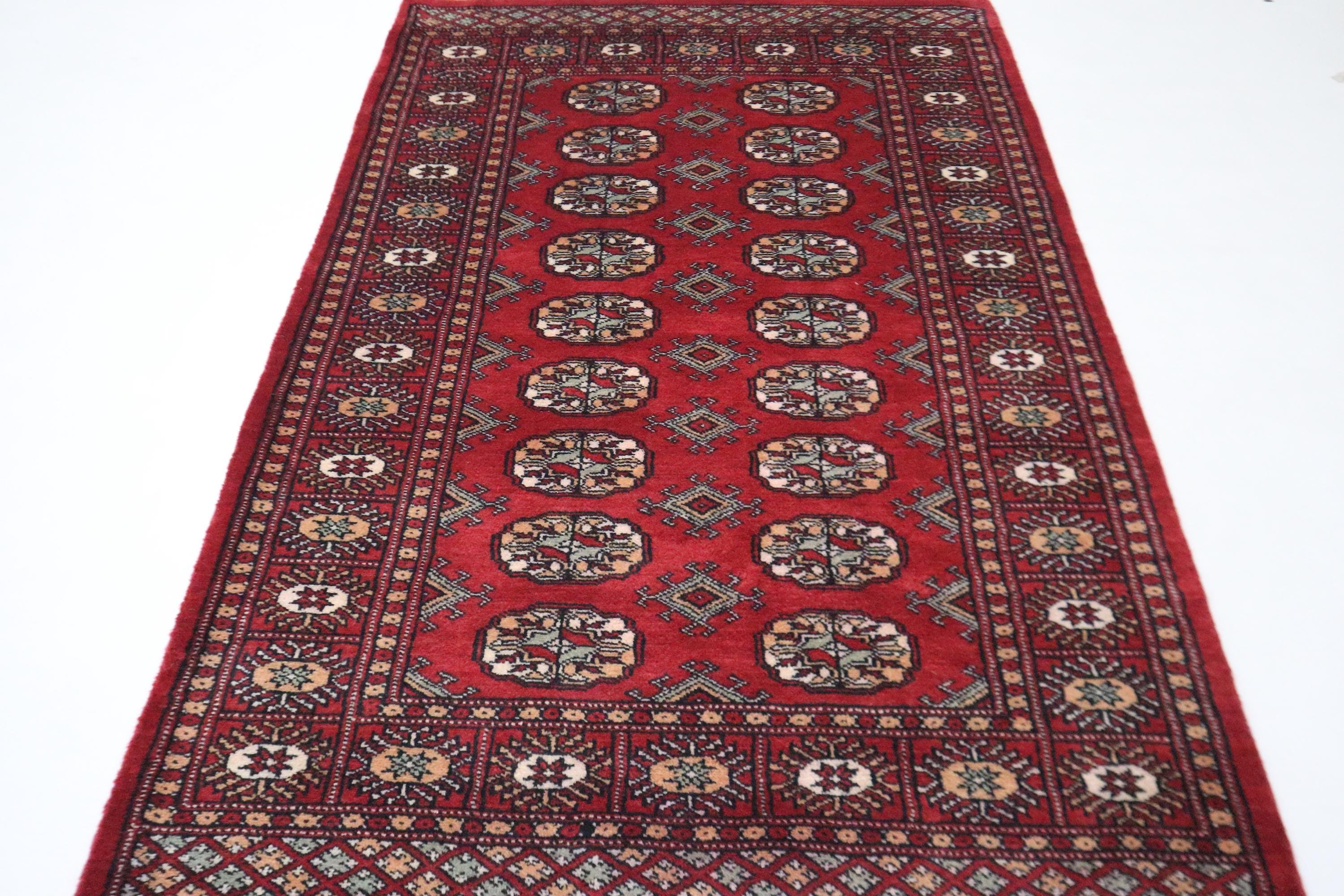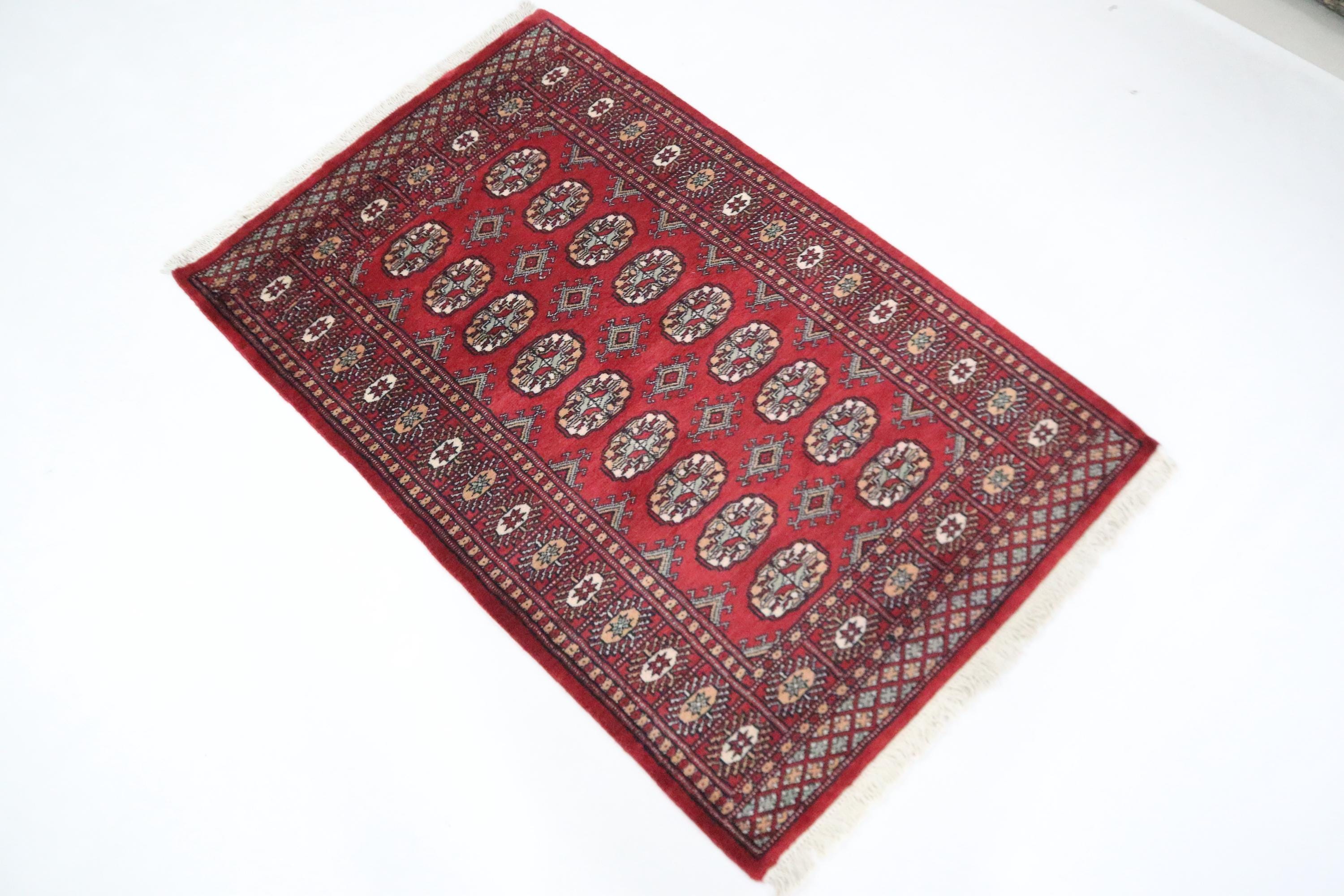 3x5 Ft Red Mori Bokhara Area Rug, Hand Knotted Soft Wool Rug, Tribal Rug, Geometric Rug, Gul Motif Rug, Bedroom Rug, Kitchen Rug, Office Rug