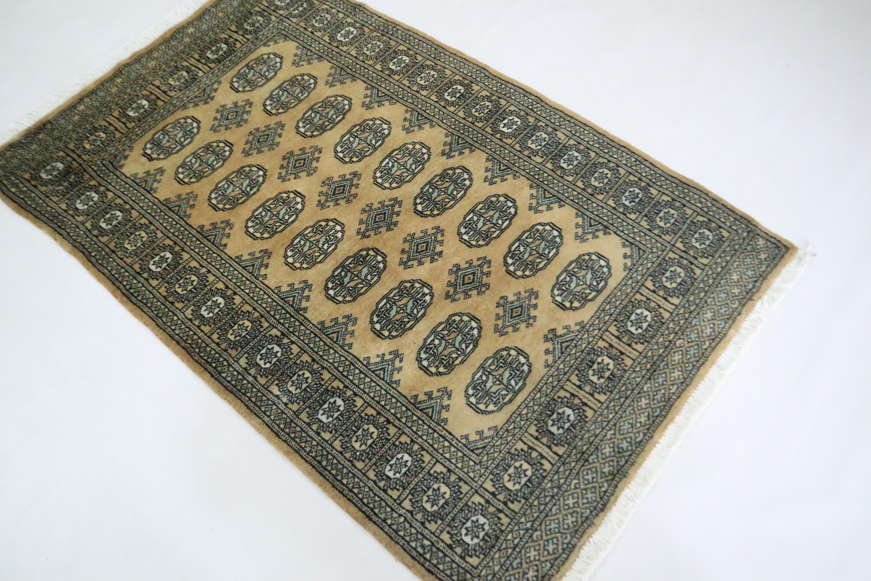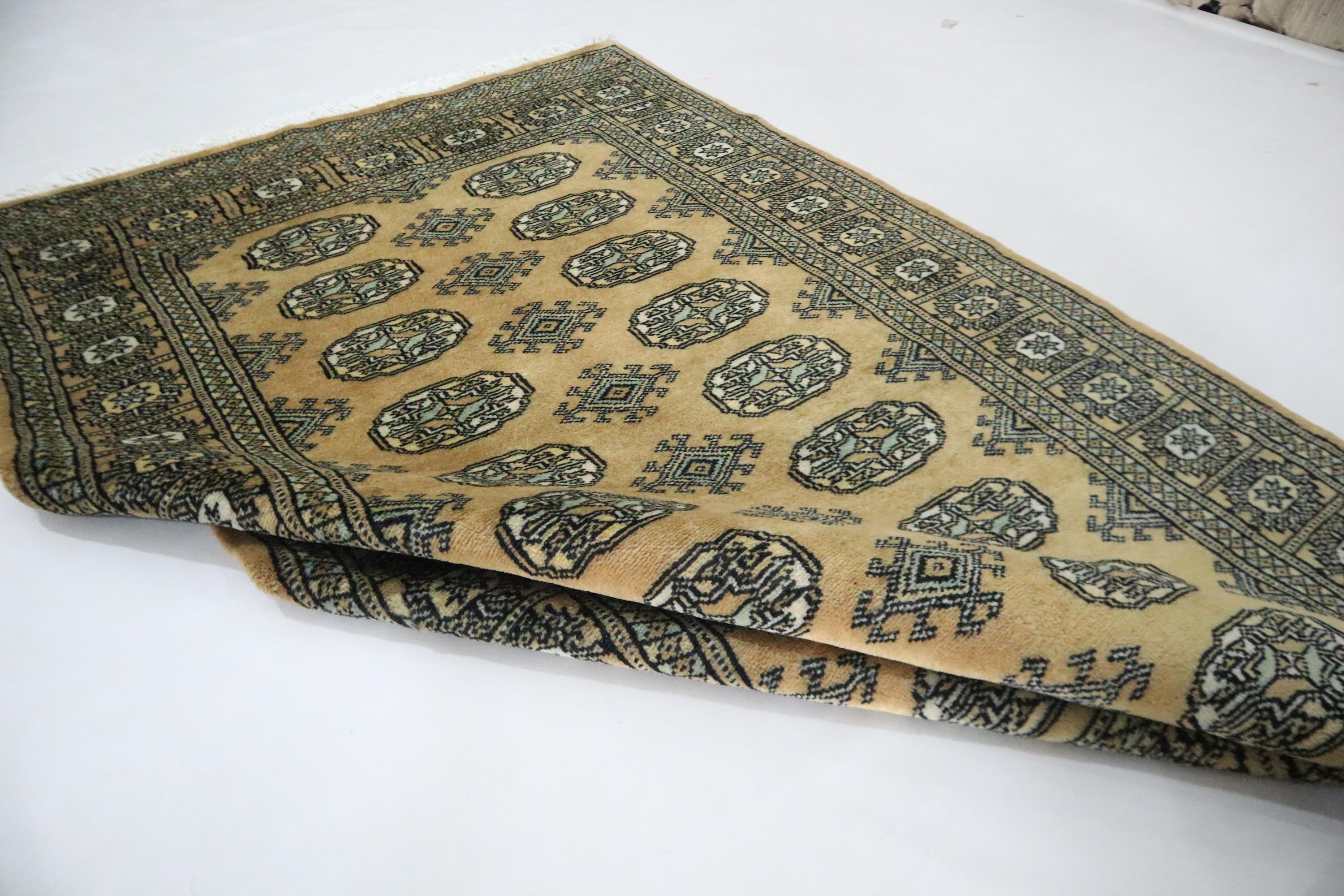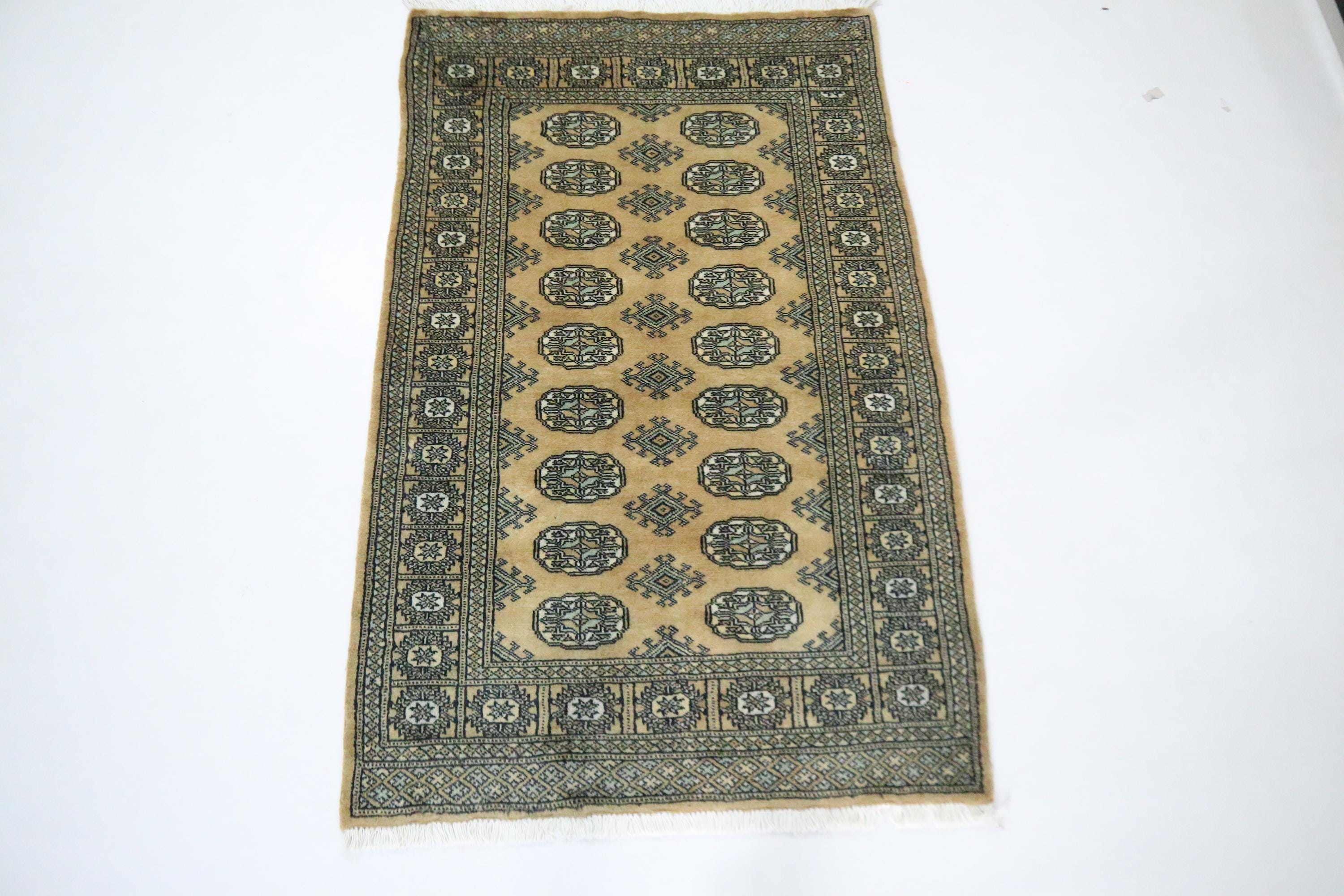3x5 Ft Beige Mori Bokhara Area Rug, Hand Knotted Soft Wool Rug, Tribal Rug, Geometric Rug, Gul Motif Rug, Kitchen Rug, Foyer Rug, Dorm Rug