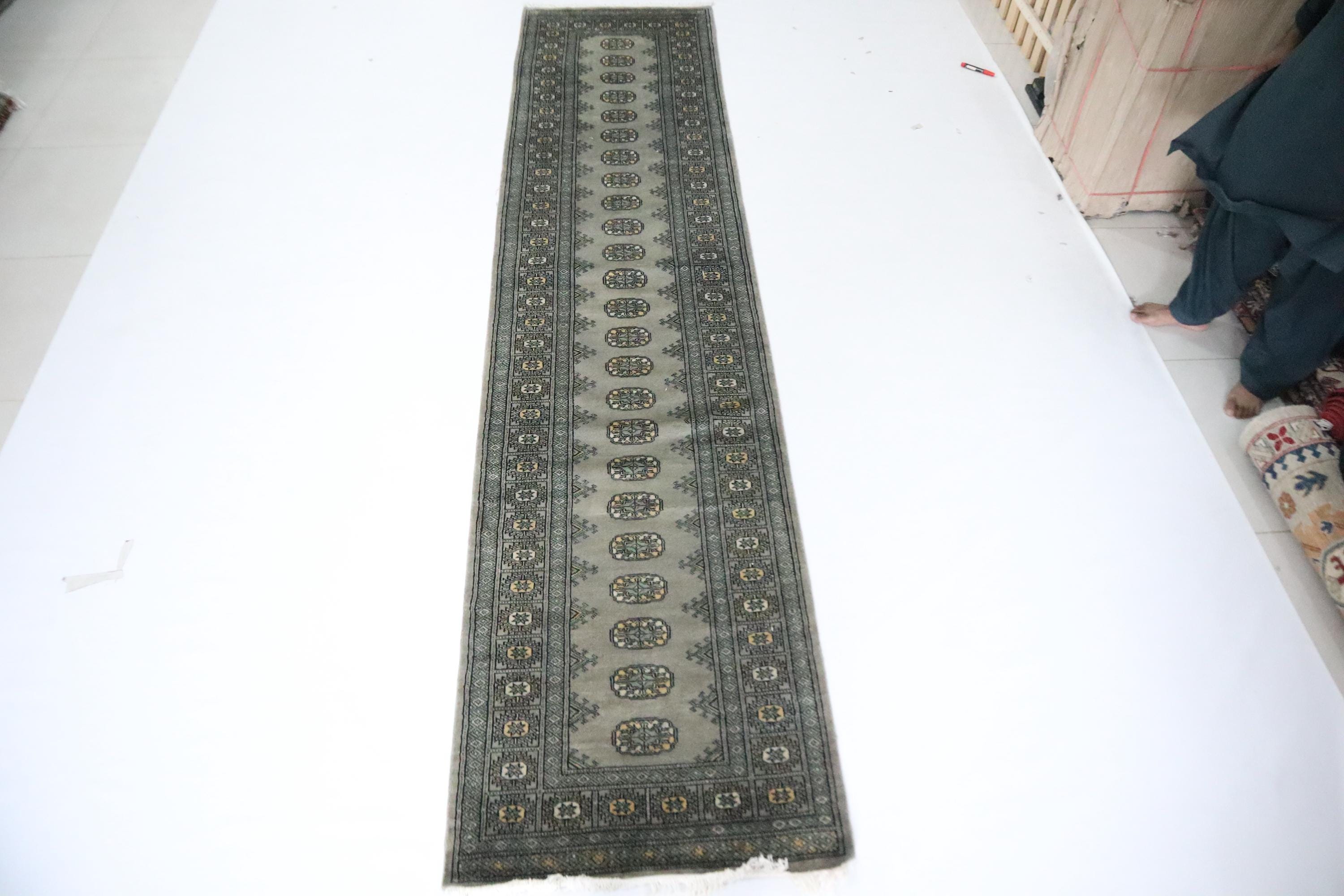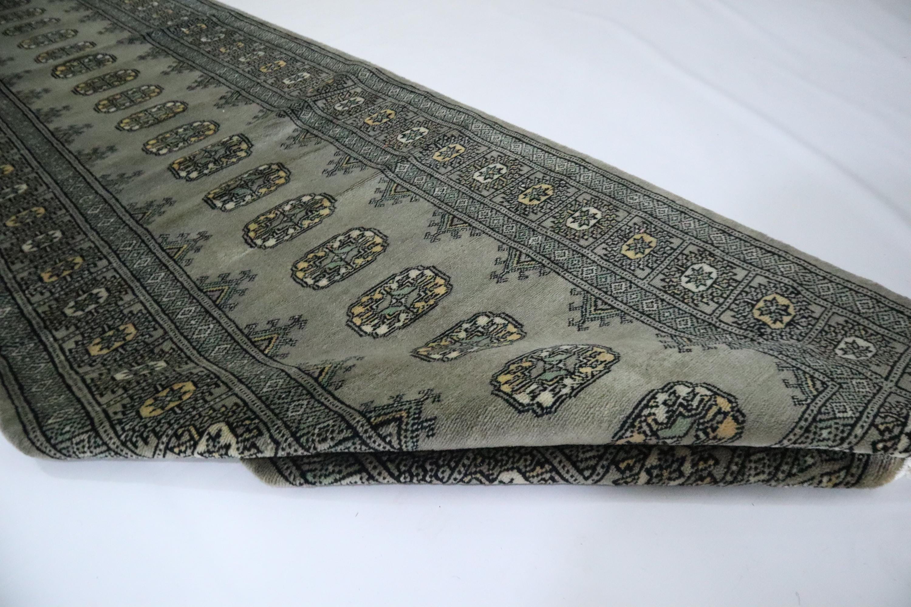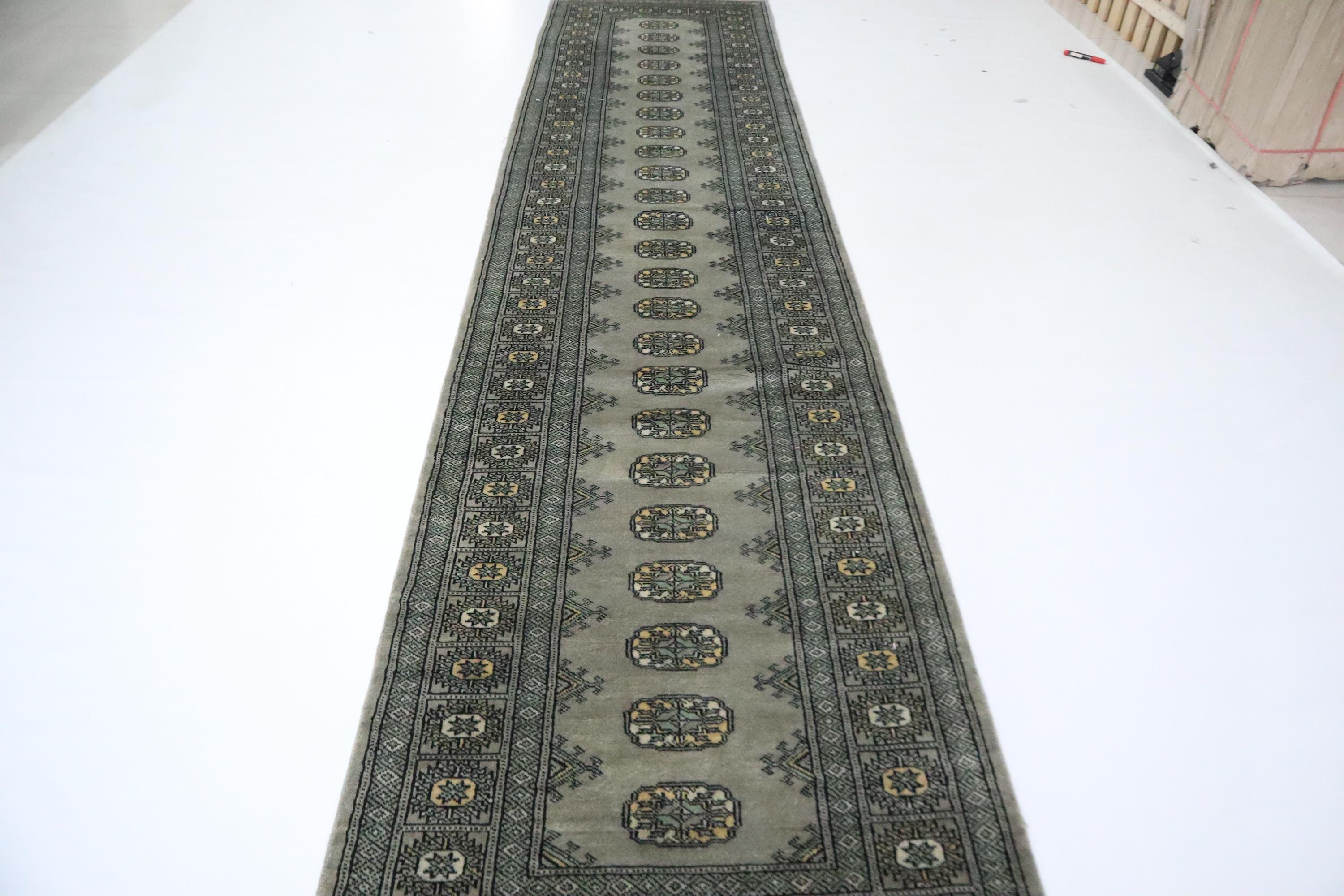 11 Ft Mori Bokhara Runner Rug, Gray Runners, Hand Knotted Runner, Geometric Runner, Tribal Runner, Wool Runner, Bedroom Runner, Runners
