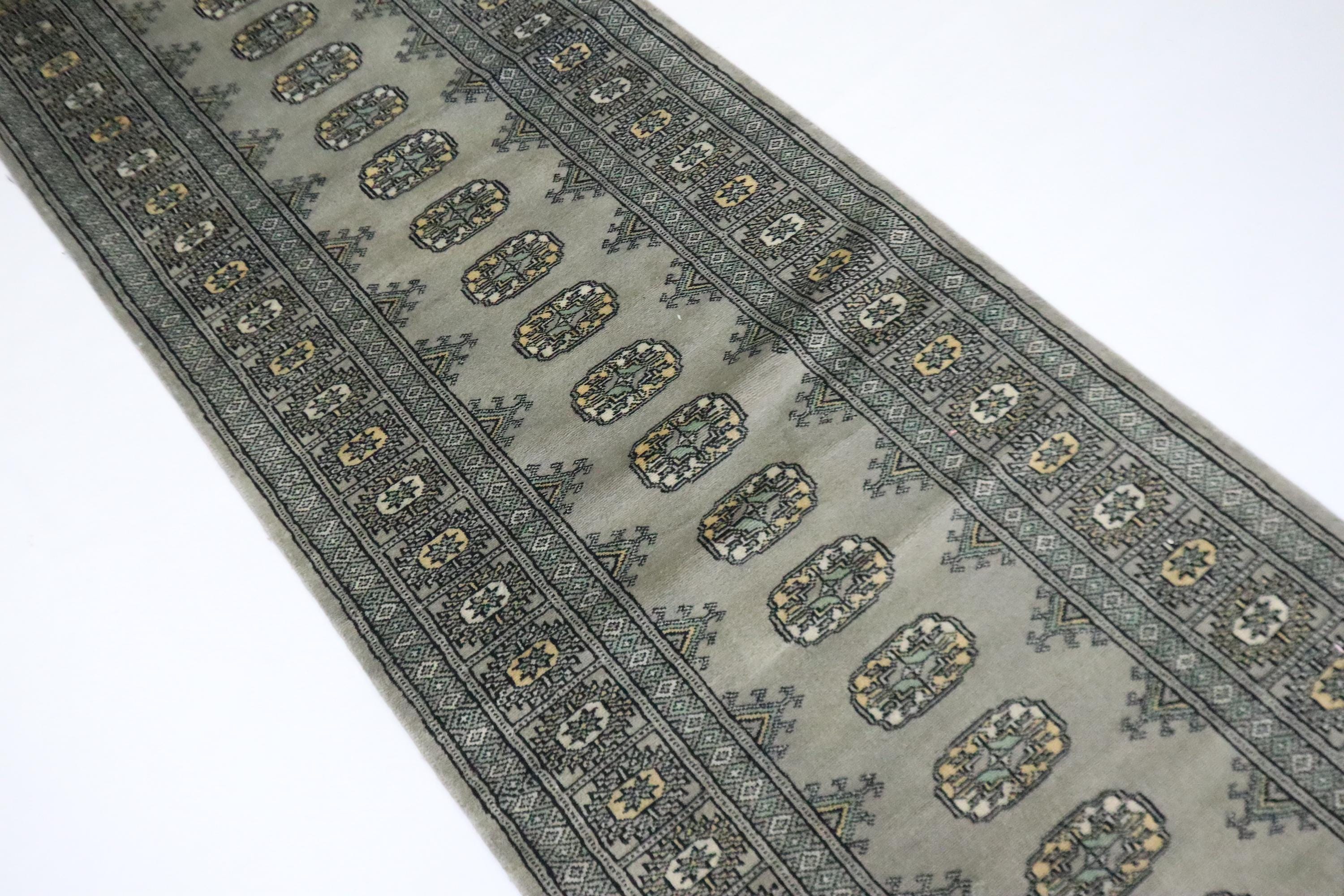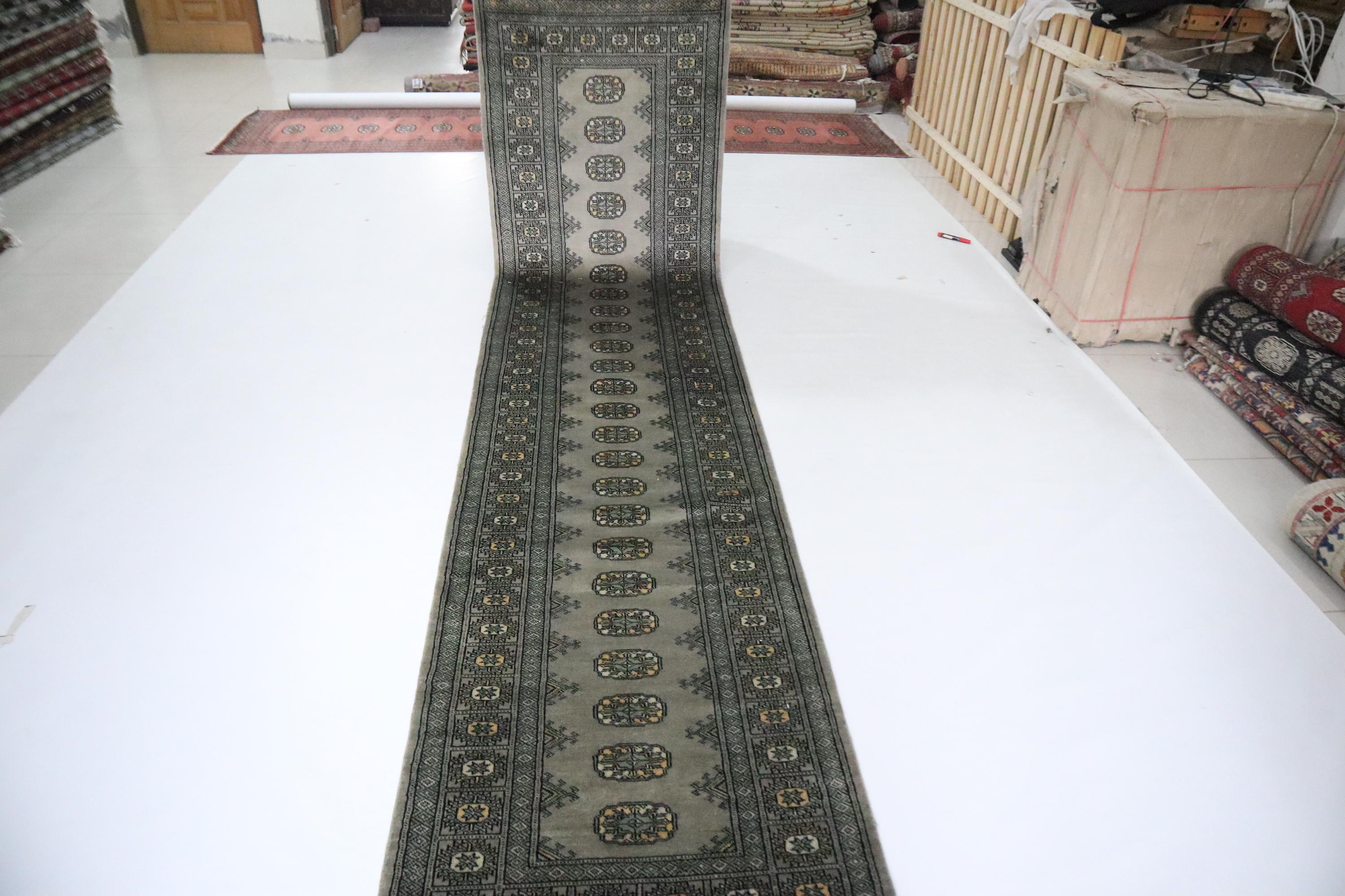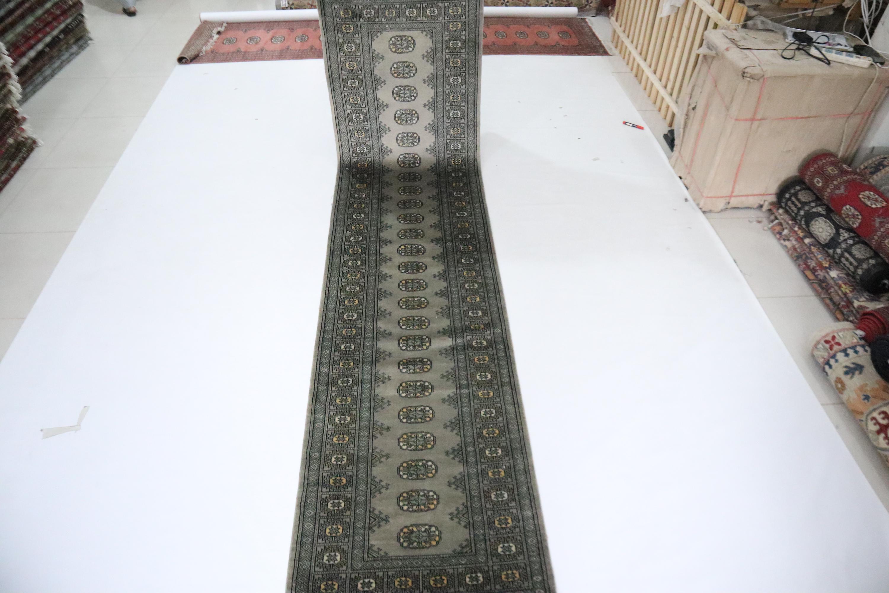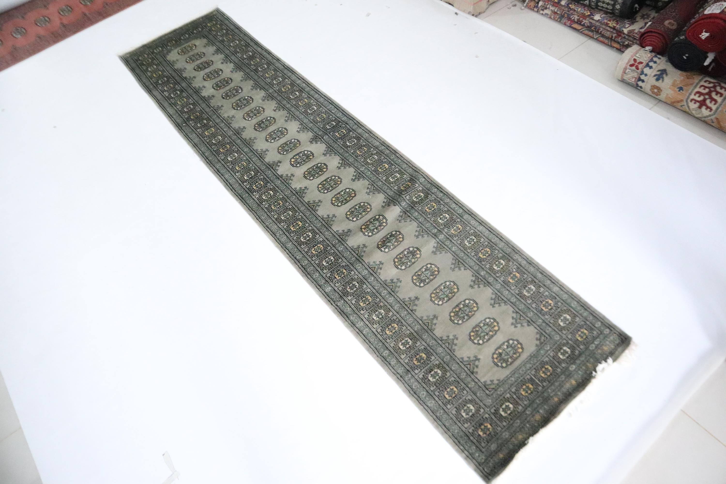 11 Ft Mori Bokhara Runner Rug, Gray Runners, Hand Knotted Runner, Geometric Runner, Tribal Runner, Wool Runner, Bedroom Runner, Runners