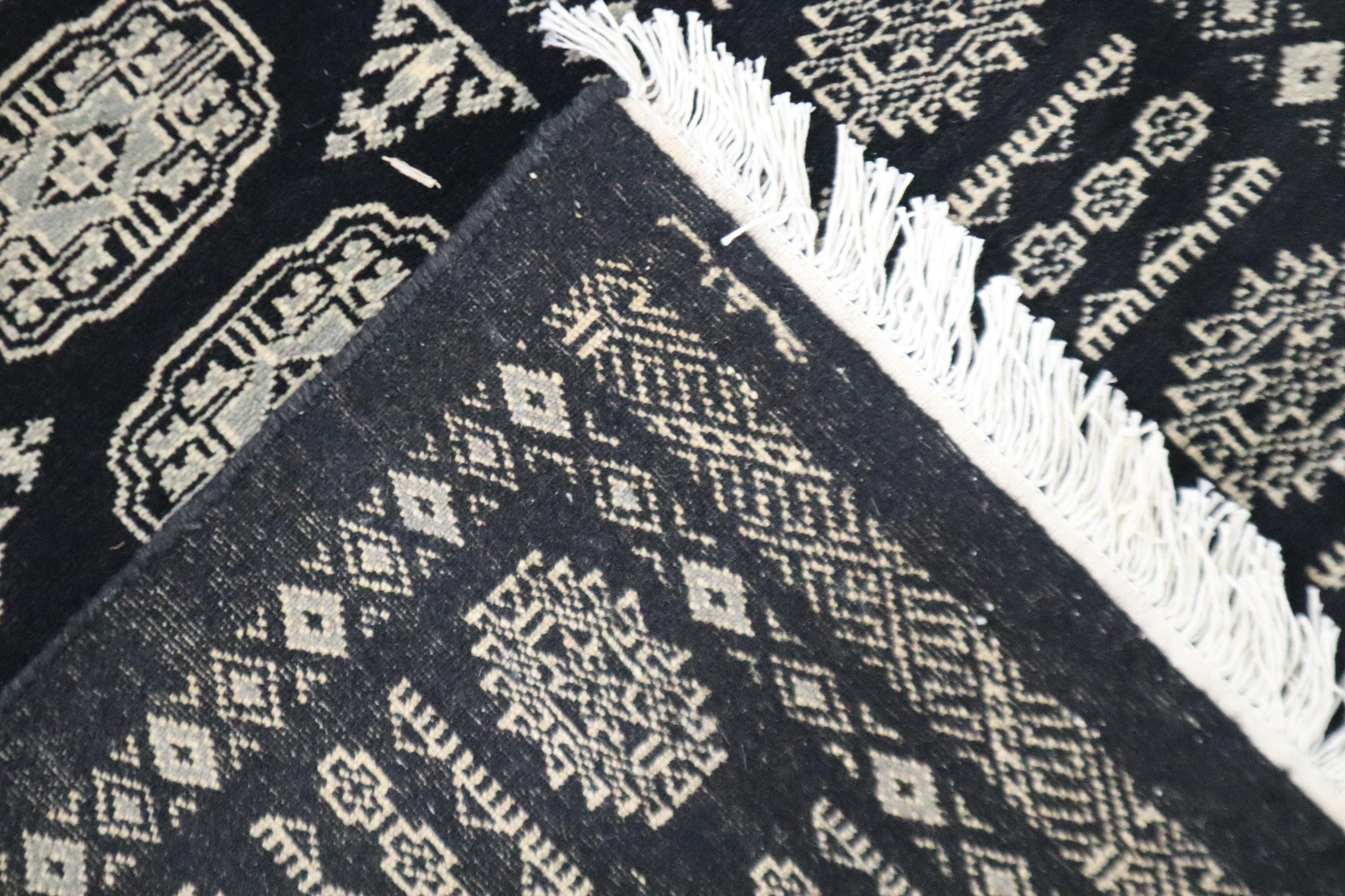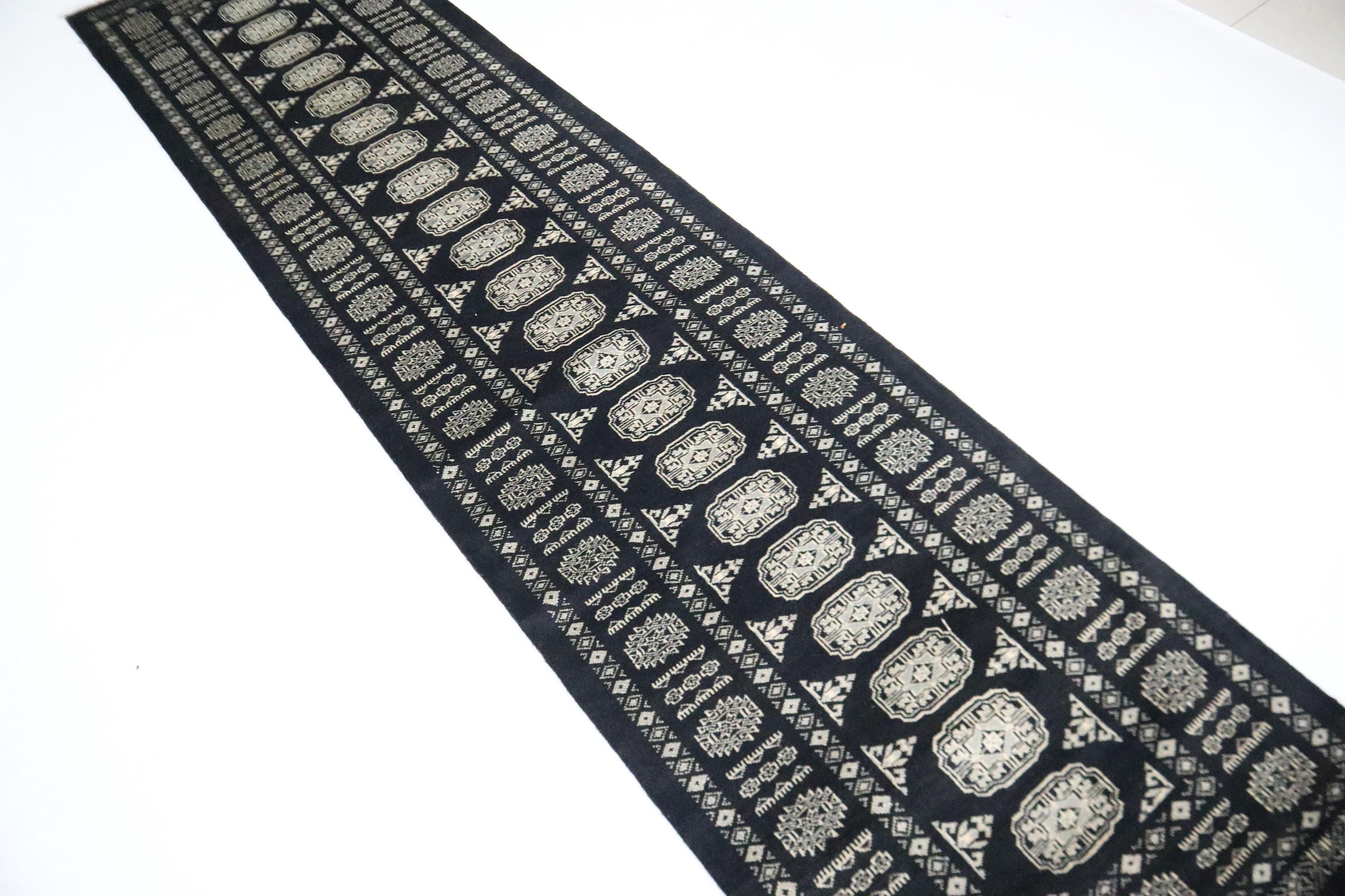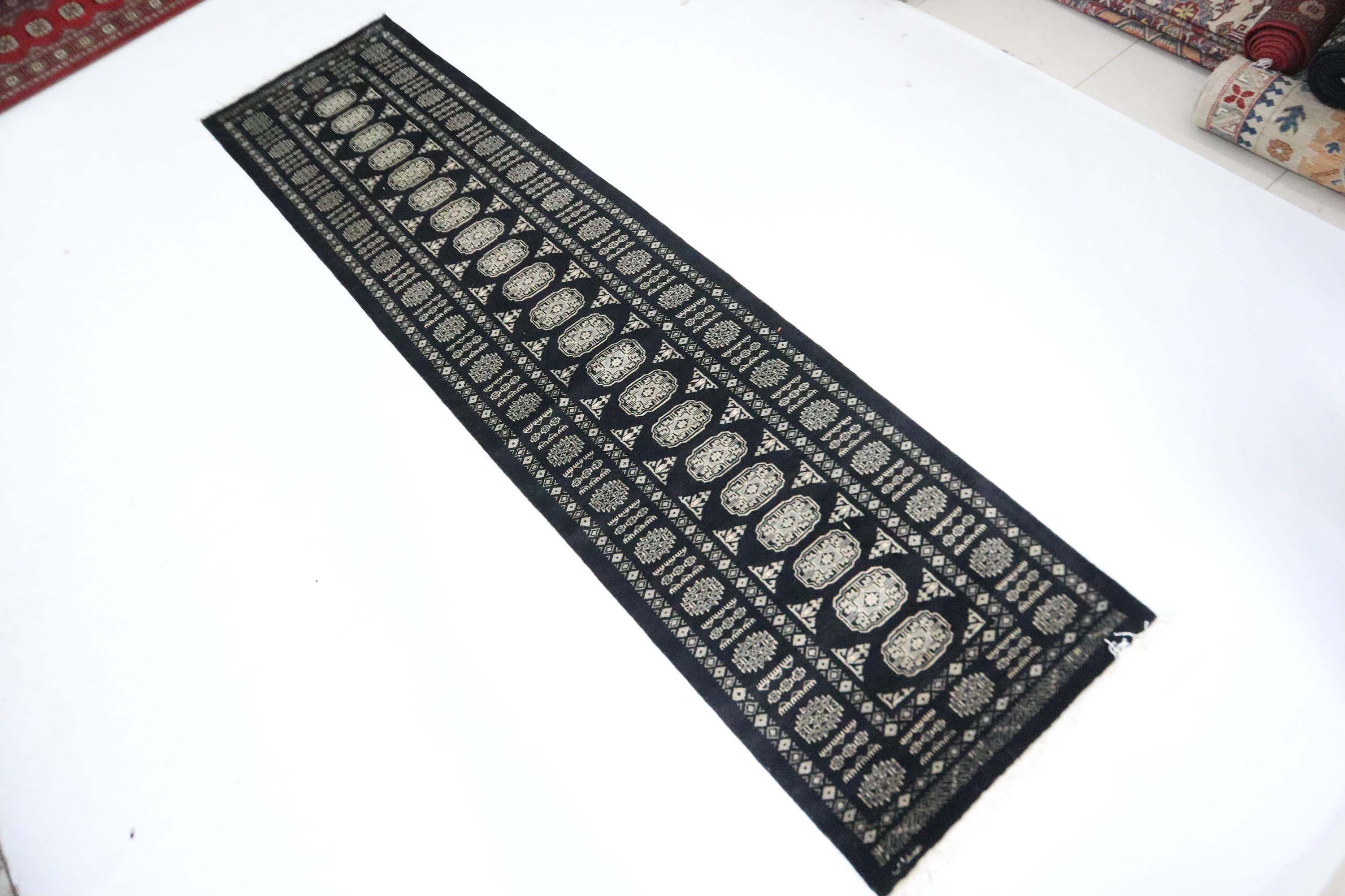 3x10 Ft Mori Bokhara Runner Rug, Black Runner, Hand Knotted Runner, Soft Wool Runner, Geometric Runner, Tribal Runner, Bedroom Runner